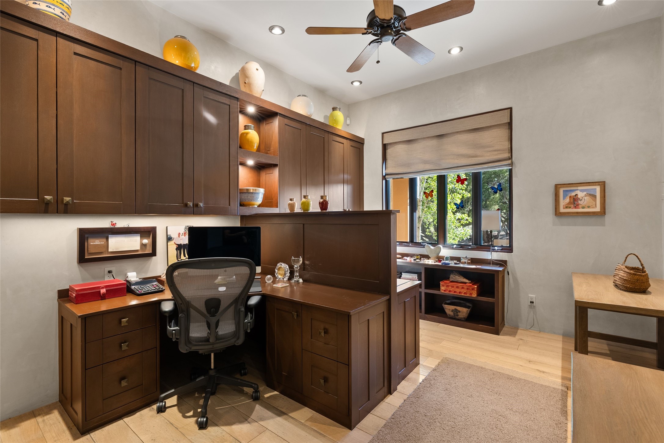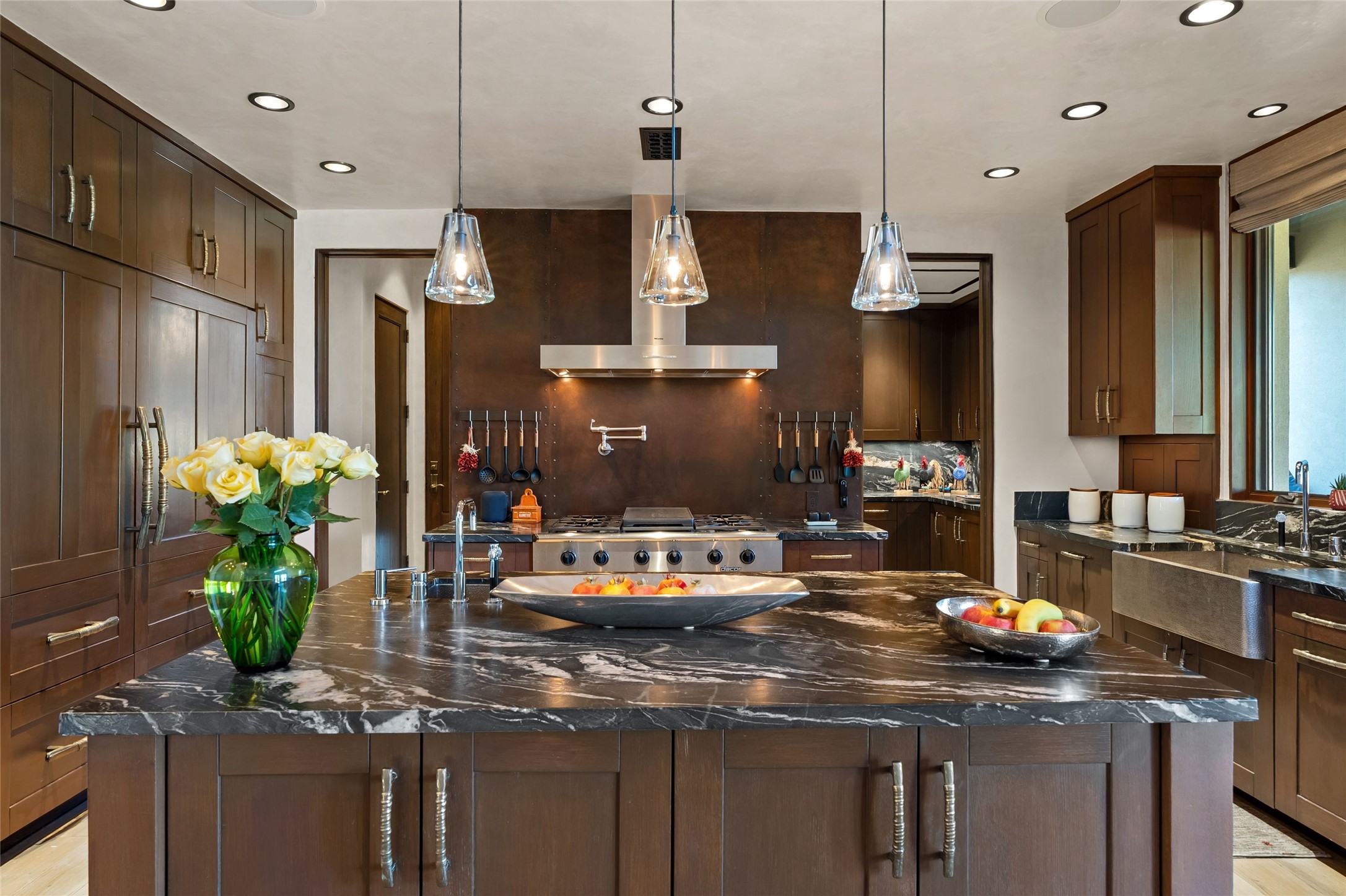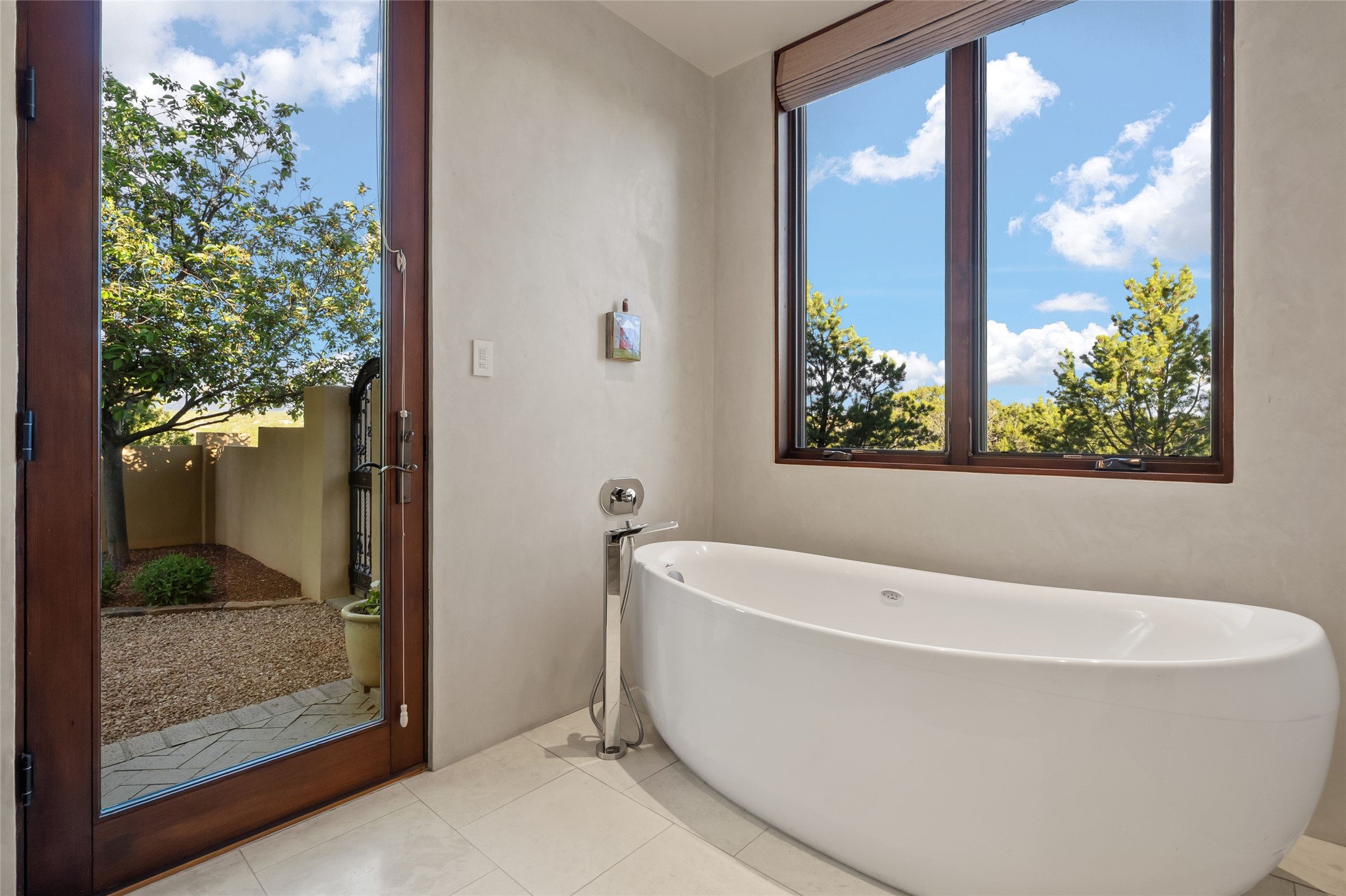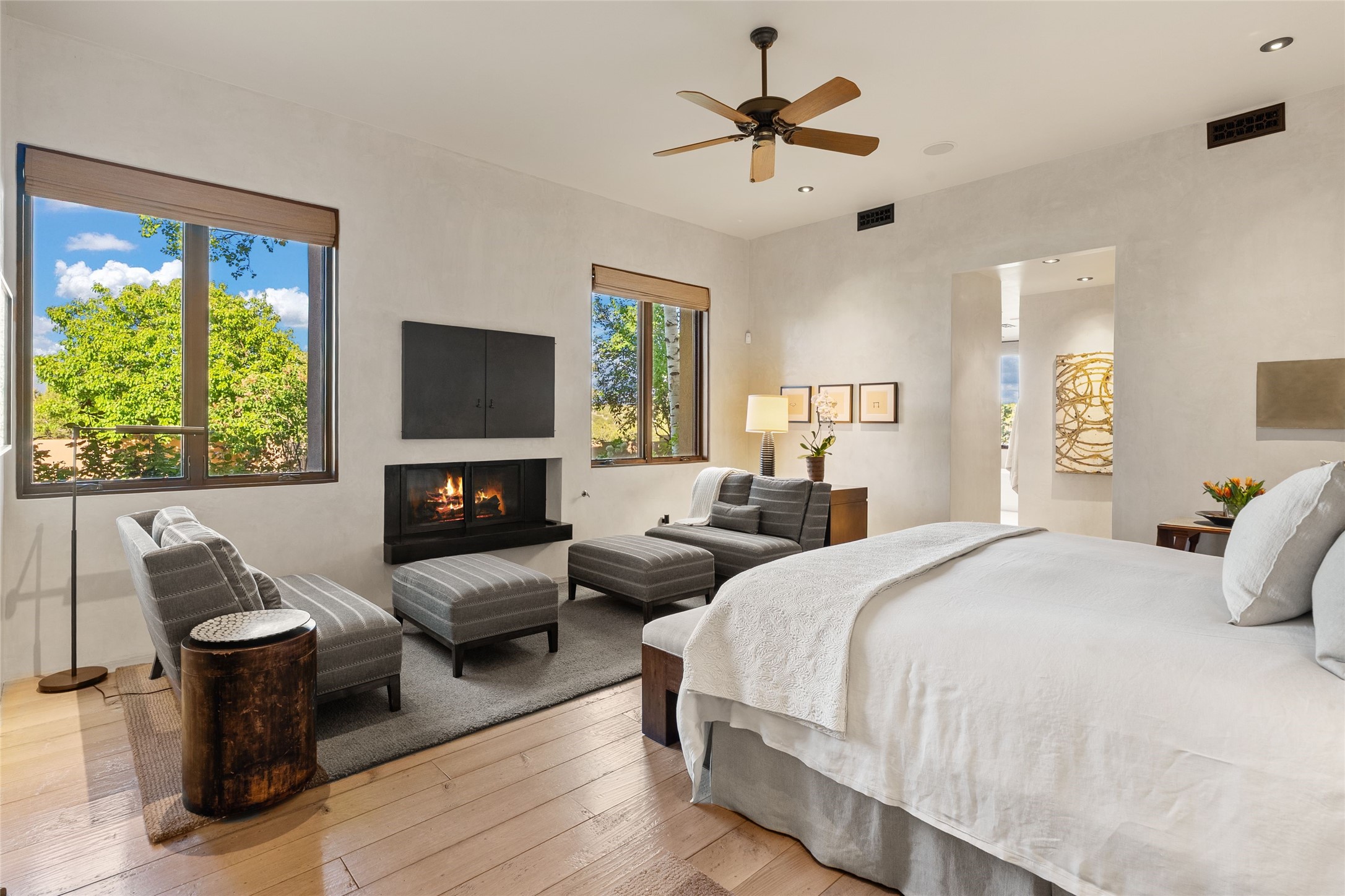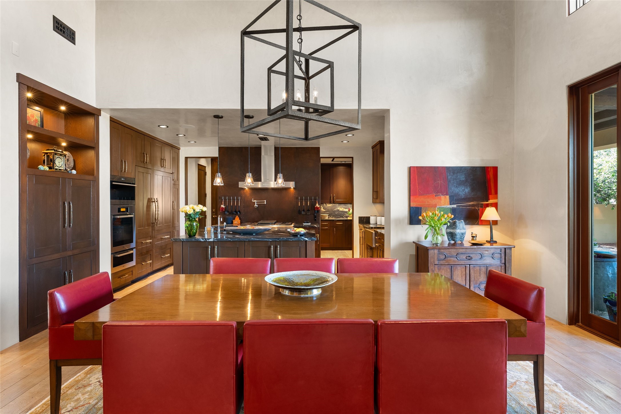 Nestled on nearly two secluded acres in prestigious Las Campanas, this extraordinary, custom interior designer's residence offers an unparalleled connection to Santa Fe's natural splendor. Wake to the majestic Sangre de Cristo mountains, painting an ever-changing canvas outside your window--snow-capped peaks in winter, golden sunset light at dusk, and songbirds as your daily companions. This isn't just a home; it's a masterpiece where every custom detail tells a story. The architecture is by acclaimed architect David Lorimer, and the interiors and furnishings are by award-winning ASID interior designer Jeannie Brown. From century-old reclaimed beams, antique Mexican doors to hand-hewn oak floors, each element was personally selected and designed. The result? A living work of art that only a designer's own sanctuary can achieve.The heart of the home flows seamlessly from the stunning Rumford fireplace to the gourmet kitchen with professional-grade appliances to an entertainer's portal, where you'll find yourself lingering over morning coffee or evening wine, mesmerized by the mountain vistas. Three thoughtfully designed bedrooms include a luxurious master retreat and private guest suite. Premium finishes throughout feature diamond plaster and custom lighting that creates pure magic at the golden hour. When you're ready, downtown Santa Fe's acclaimed restaurants and galleries await just minutes away. This home is more than luxury living--it's a lifestyle immersed in beauty, nature, and the unique spirit of Santa Fe, where luxury meets the land of enchantment.
