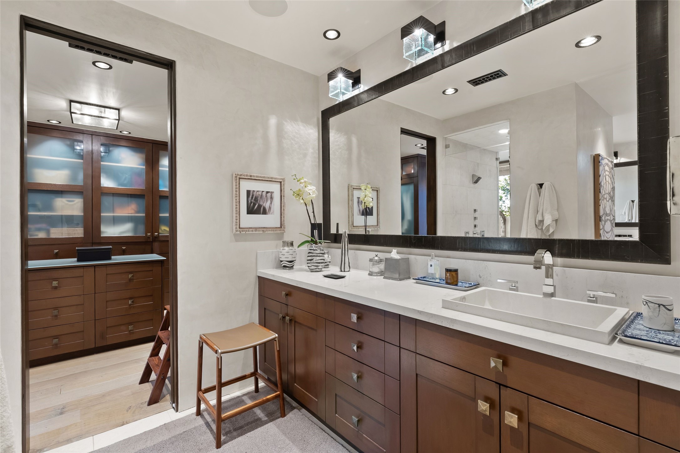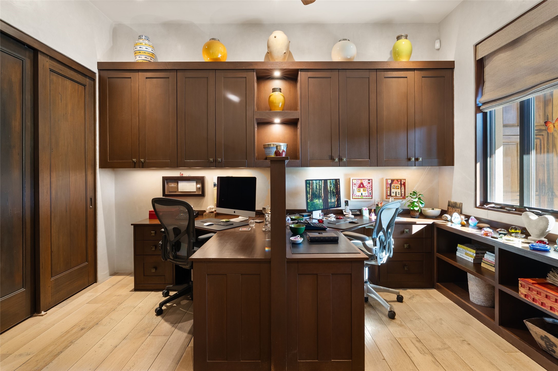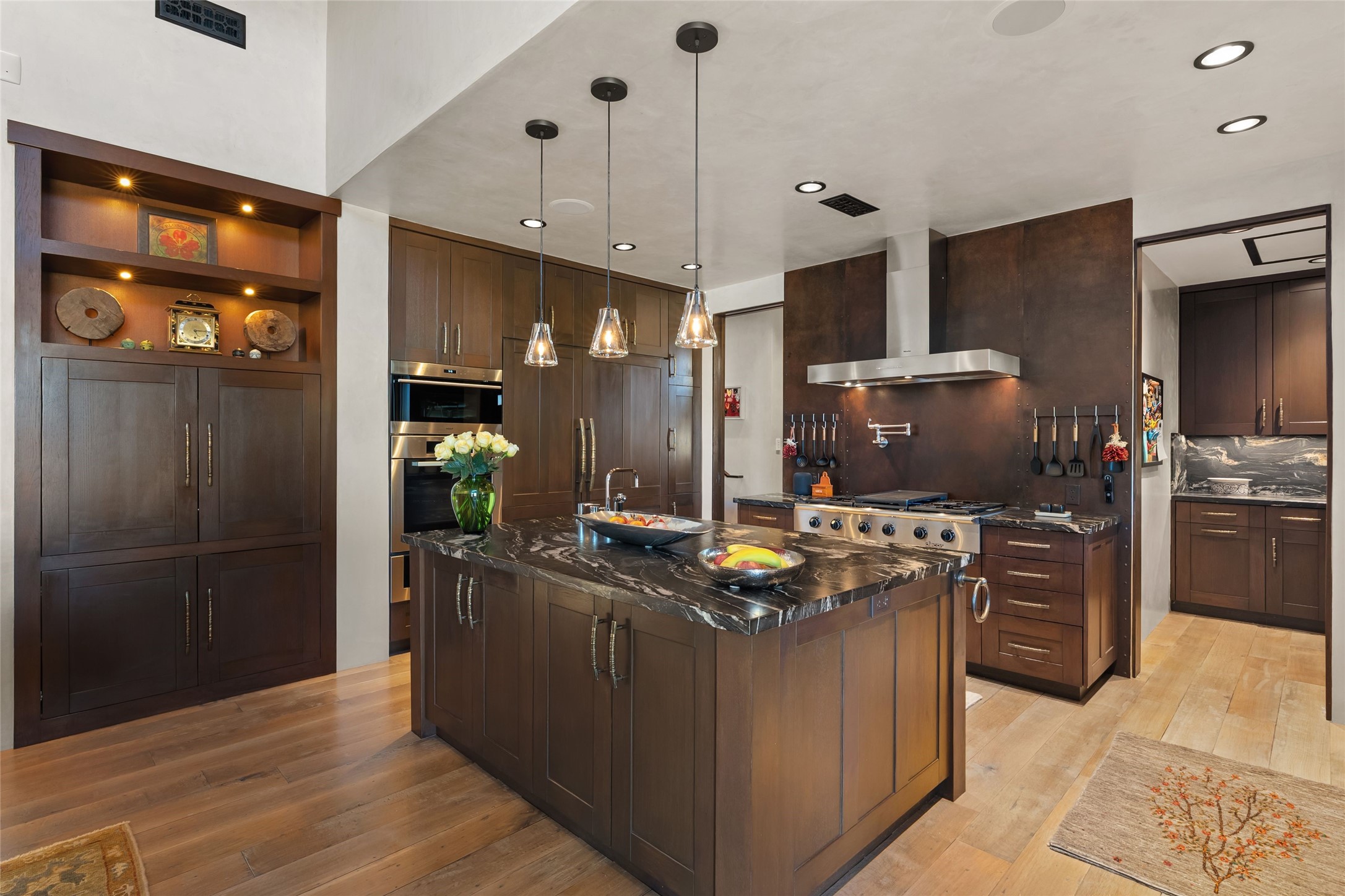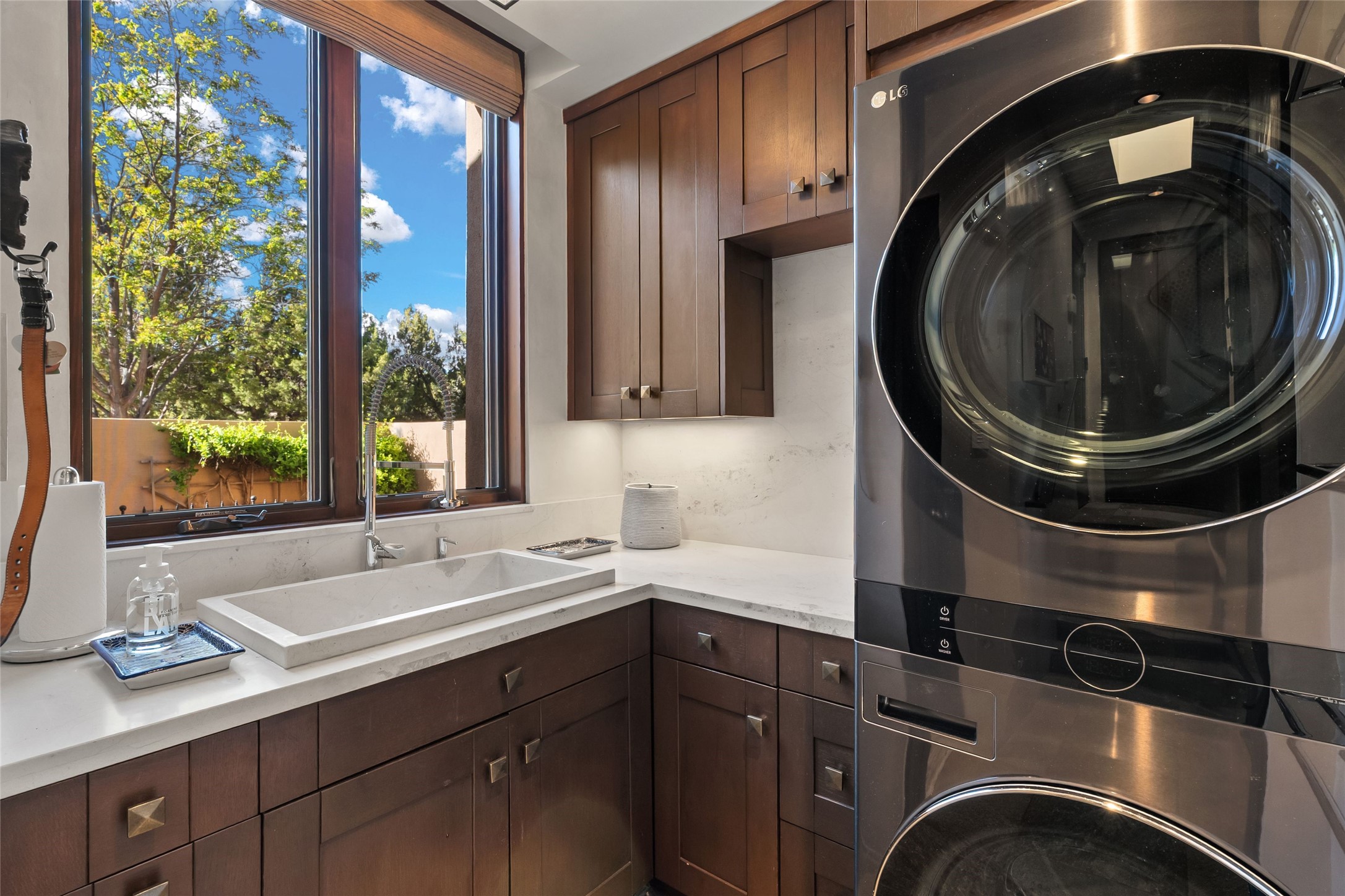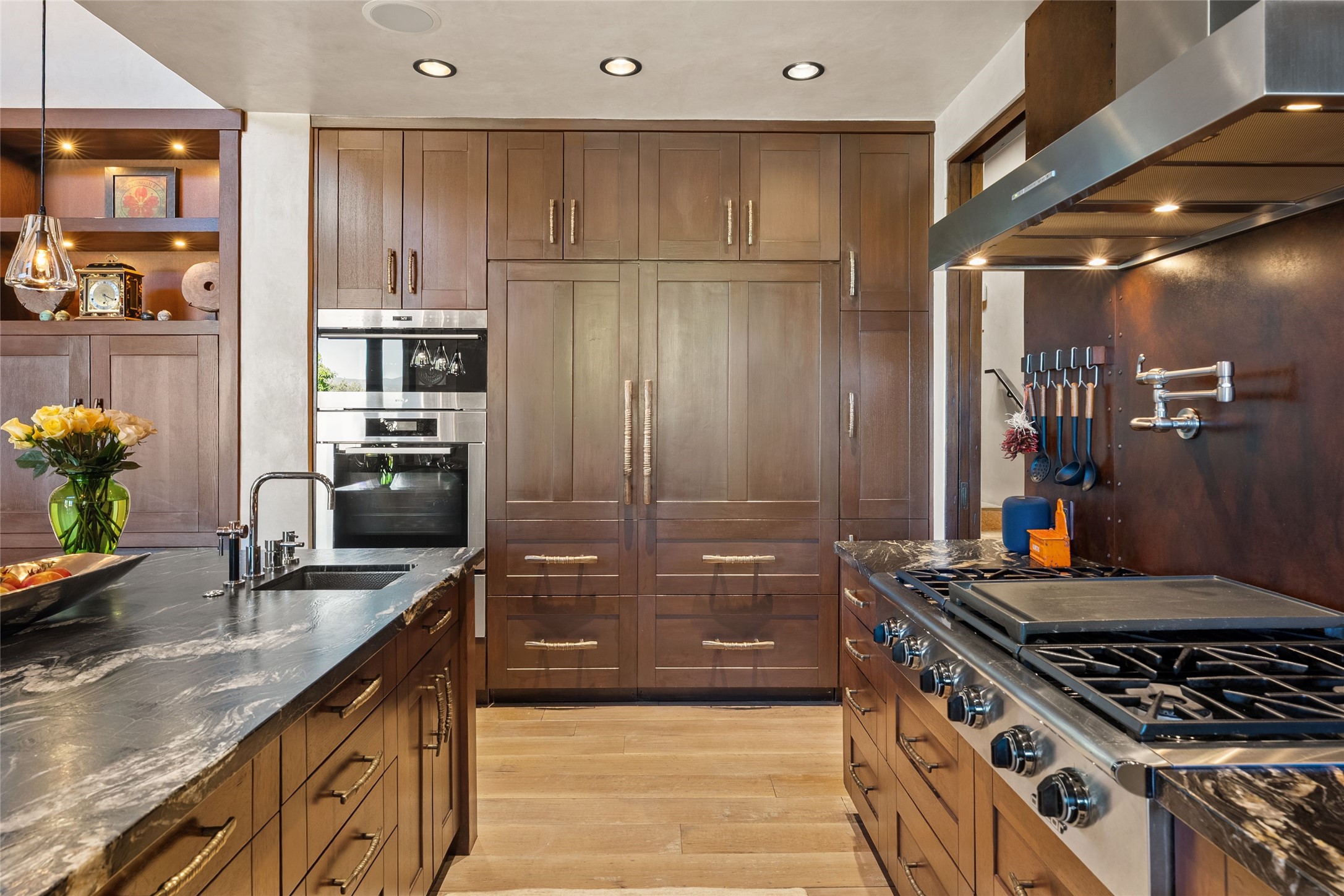 Nestled on nearly two secluded acres in prestigious Las Campanas, this extraordinary, custom interior designer's residence offers an unparalleled connection to Santa Fe's natural splendor. Wake to the majestic Sangre de Cristo mountains, painting an ever-changing canvas outside your window--snow-capped peaks in winter, golden sunset light at dusk, and songbirds as your daily companions. This isn't just a home; it's a masterpiece where every custom detail tells a story. The architecture is by acclaimed architect David Lorimer, and the interiors and furnishings are by award-winning ASID interior designer Jeannie Brown. From century-old reclaimed beams, antique Mexican doors to hand-hewn oak floors, each element was personally selected and designed. The result? A living work of art that only a designer's own sanctuary can achieve.The heart of the home flows seamlessly from the stunning Rumford fireplace to the gourmet kitchen with professional-grade appliances to an entertainer's portal, where you'll find yourself lingering over morning coffee or evening wine, mesmerized by the mountain vistas. Three thoughtfully designed bedrooms include a luxurious master retreat and private guest suite. Premium finishes throughout feature diamond plaster and custom lighting that creates pure magic at the golden hour. When you're ready, downtown Santa Fe's acclaimed restaurants and galleries await just minutes away. This home is more than luxury living--it's a lifestyle immersed in beauty, nature, and the unique spirit of Santa Fe, where luxury meets the land of enchantment.