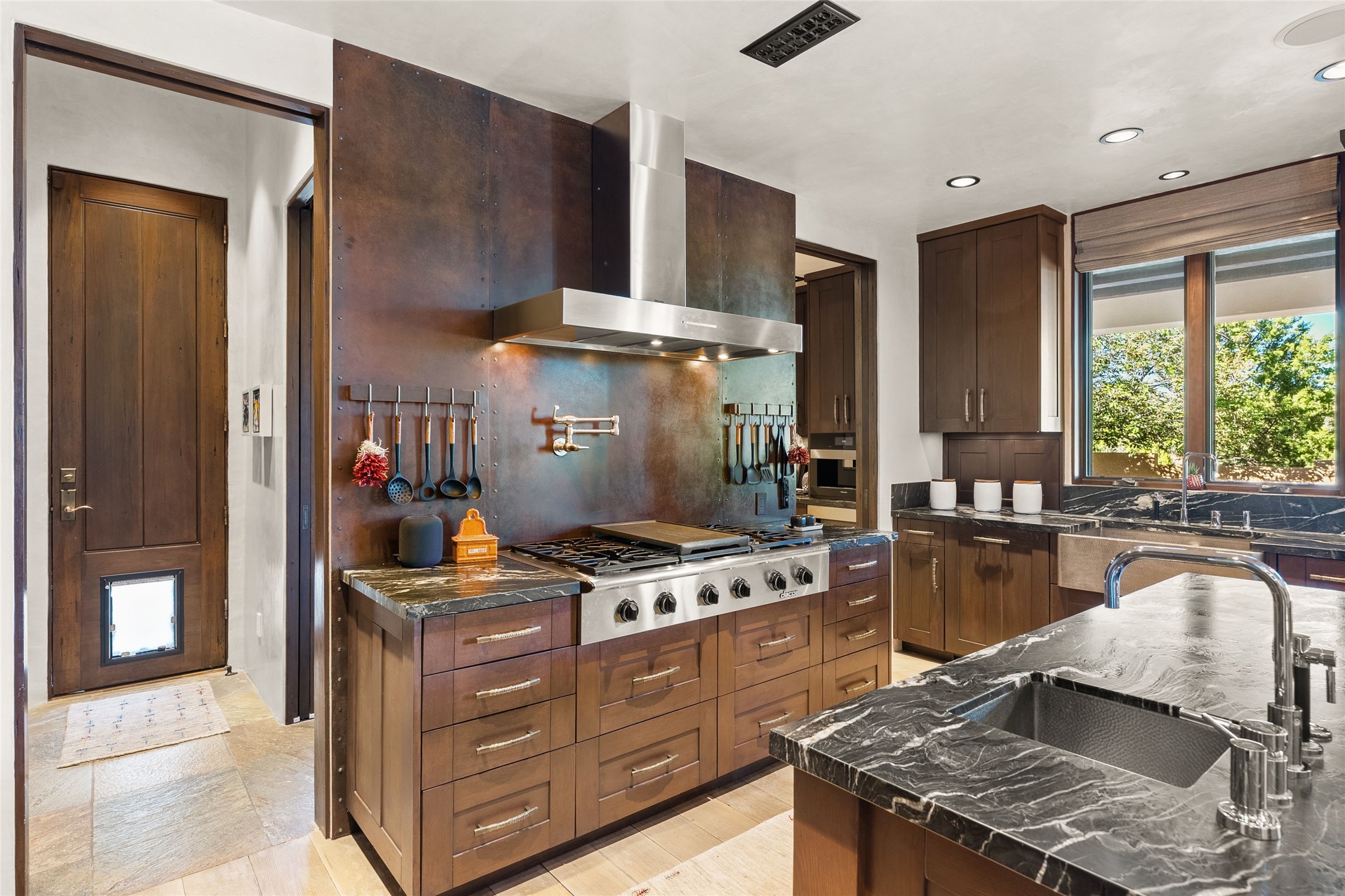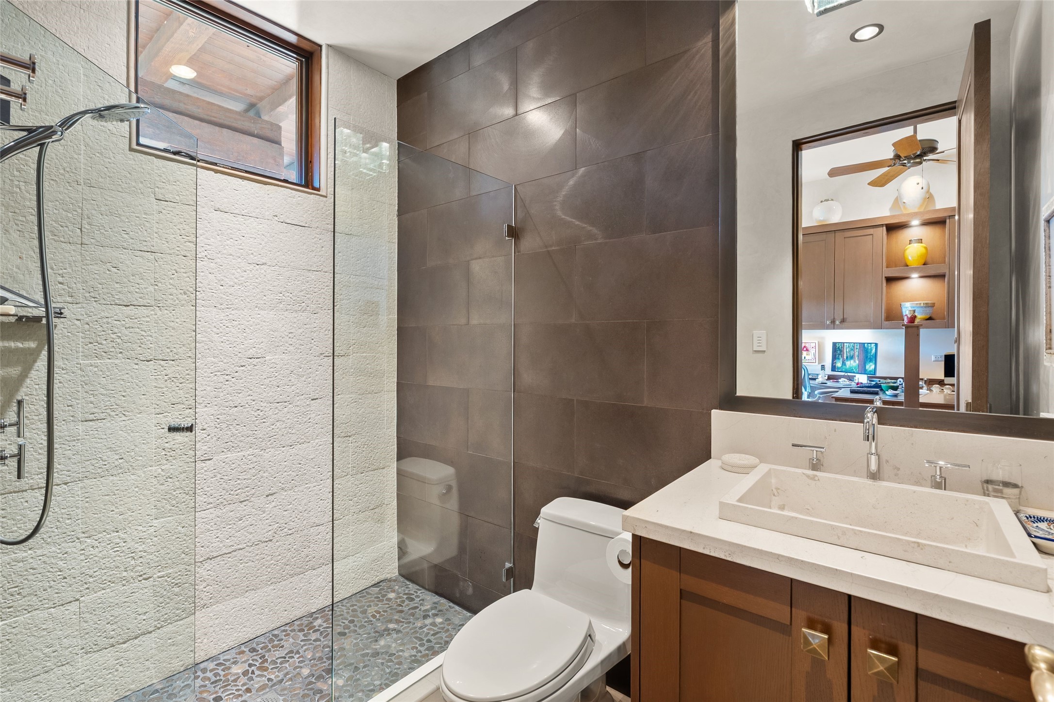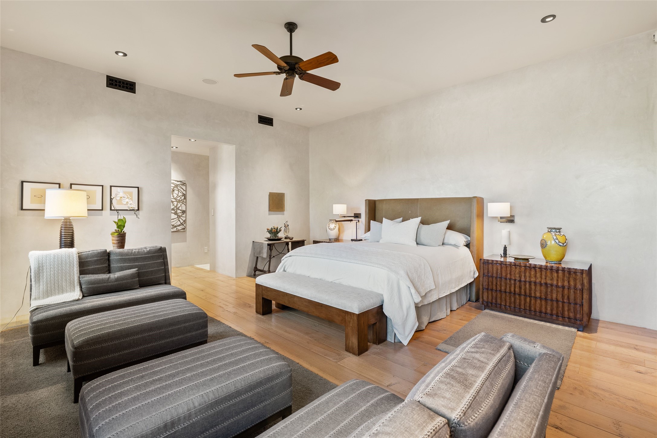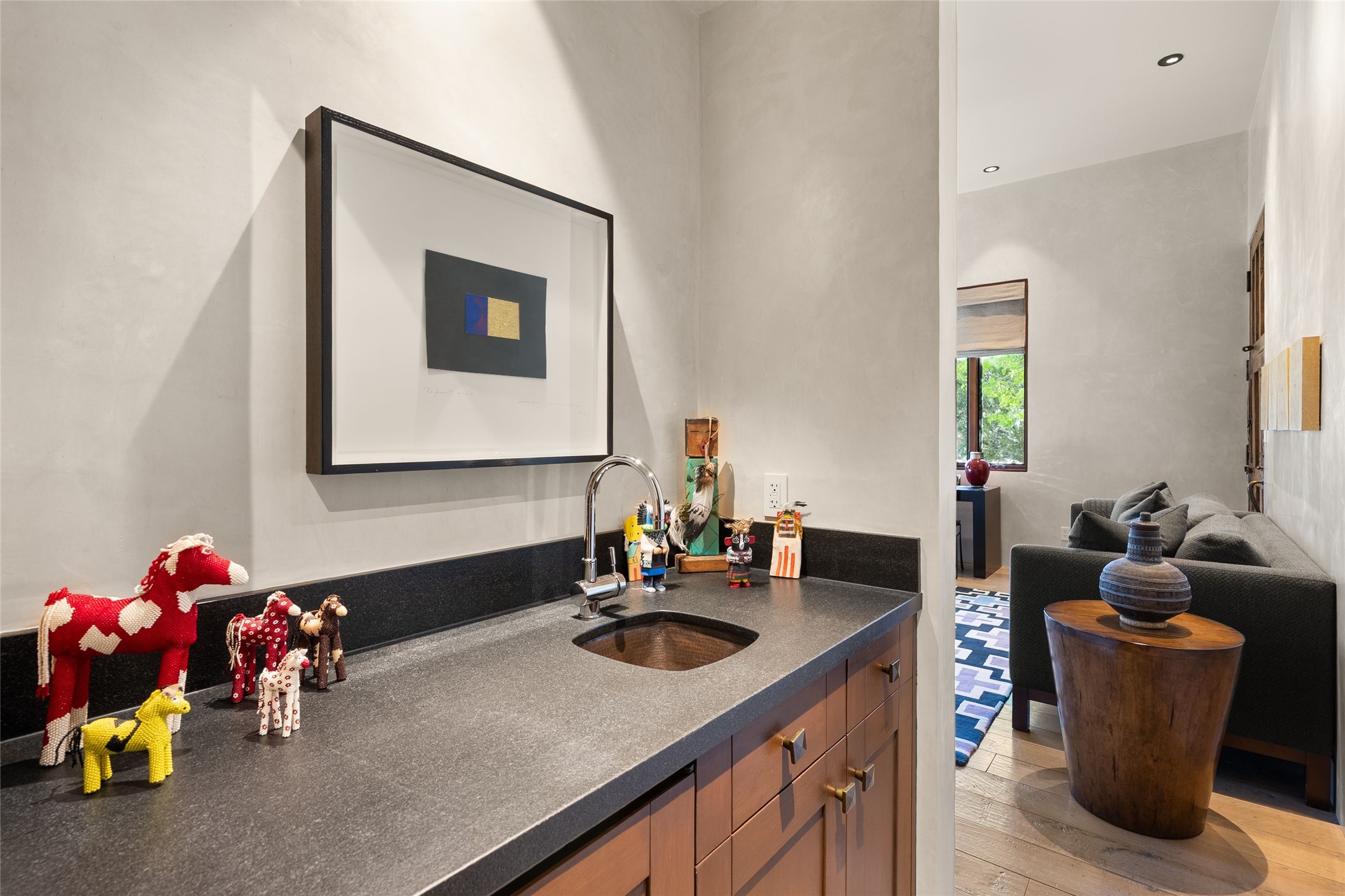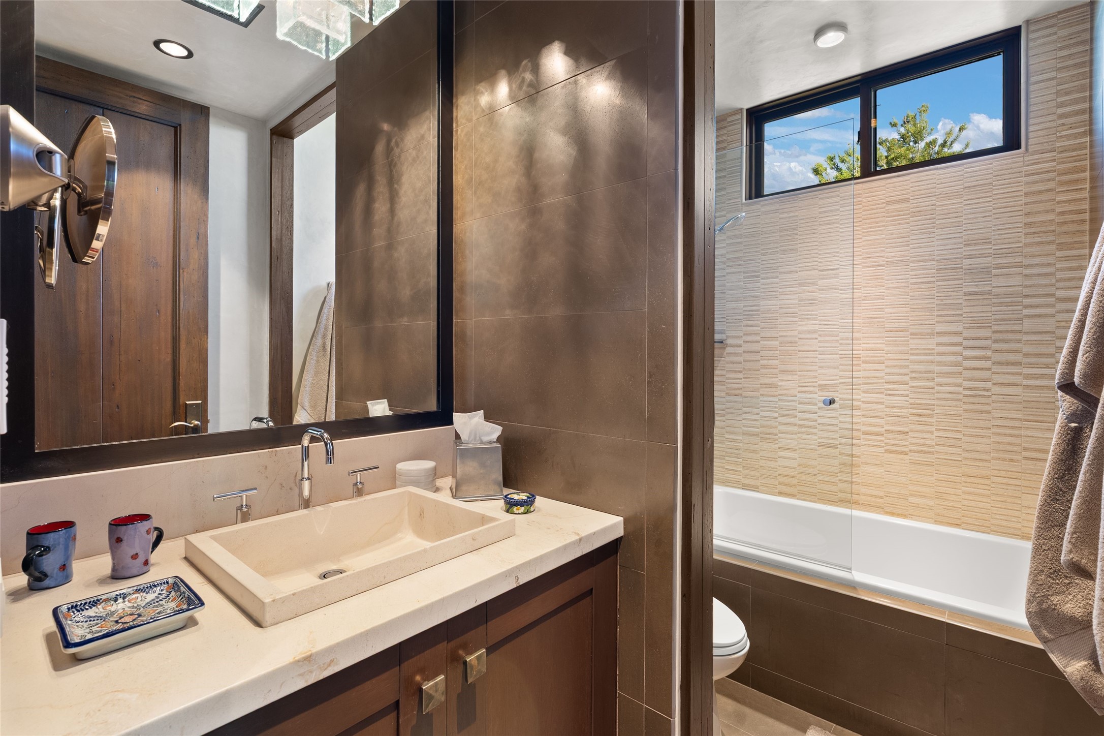 Nestled on nearly two secluded acres in prestigious Las Campanas, this extraordinary, custom interior designer's residence offers an unparalleled connection to Santa Fe's natural splendor. Wake to the majestic Sangre de Cristo mountains, painting an ever-changing canvas outside your window--snow-capped peaks in winter, golden sunset light at dusk, and songbirds as your daily companions. This isn't just a home; it's a masterpiece where every custom detail tells a story. The architecture is by acclaimed architect David Lorimer, and the interiors and furnishings are by award-winning ASID interior designer Jeannie Brown. From century-old reclaimed beams, antique Mexican doors to hand-hewn oak floors, each element was personally selected and designed. The result? A living work of art that only a designer's own sanctuary can achieve.The heart of the home flows seamlessly from the stunning Rumford fireplace to the gourmet kitchen with professional-grade appliances to an entertainer's portal, where you'll find yourself lingering over morning coffee or evening wine, mesmerized by the mountain vistas. Three thoughtfully designed bedrooms include a luxurious master retreat and private guest suite. Premium finishes throughout feature diamond plaster and custom lighting that creates pure magic at the golden hour. When you're ready, downtown Santa Fe's acclaimed restaurants and galleries await just minutes away. This home is more than luxury living--it's a lifestyle immersed in beauty, nature, and the unique spirit of Santa Fe, where luxury meets the land of enchantment.