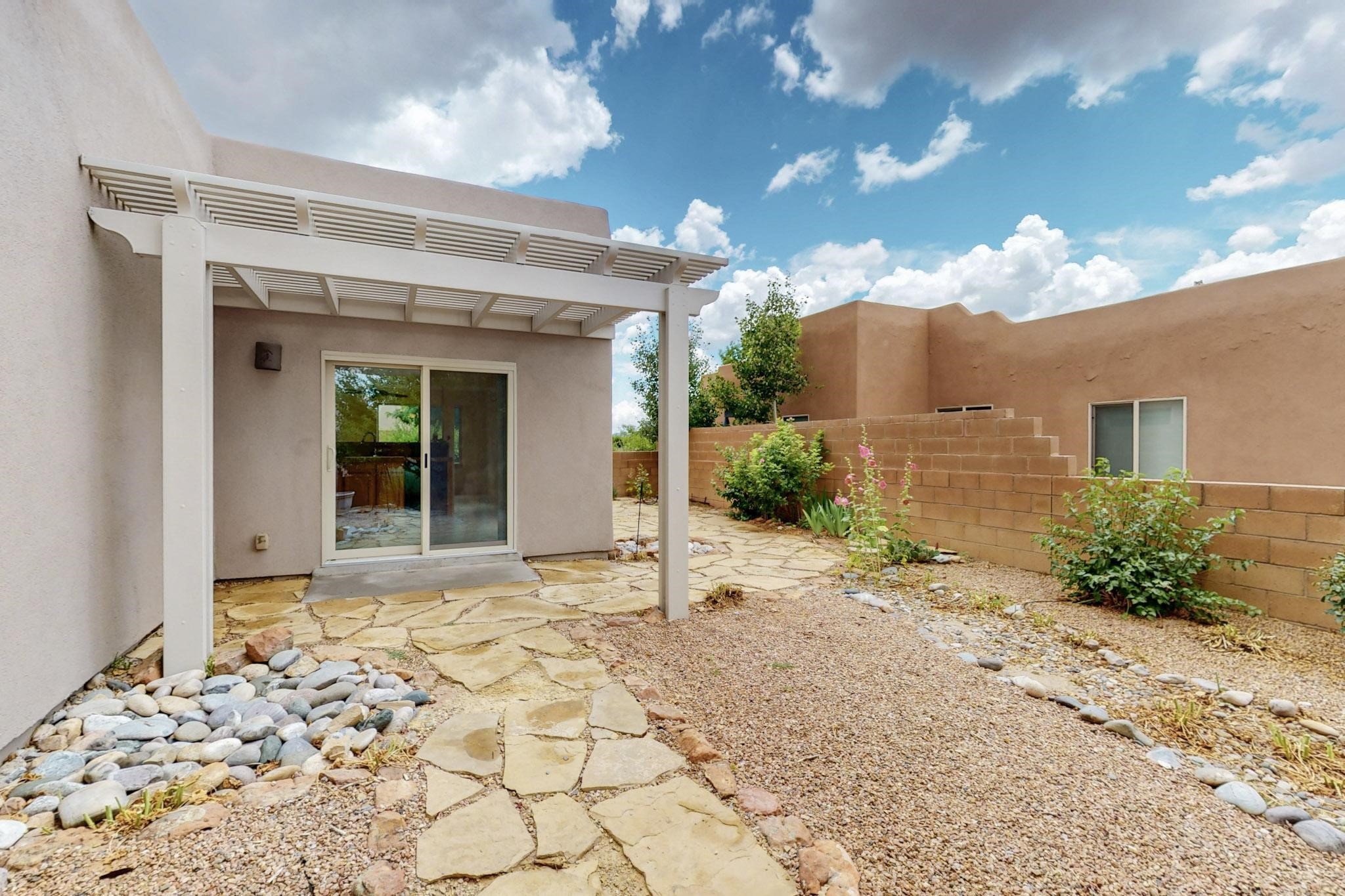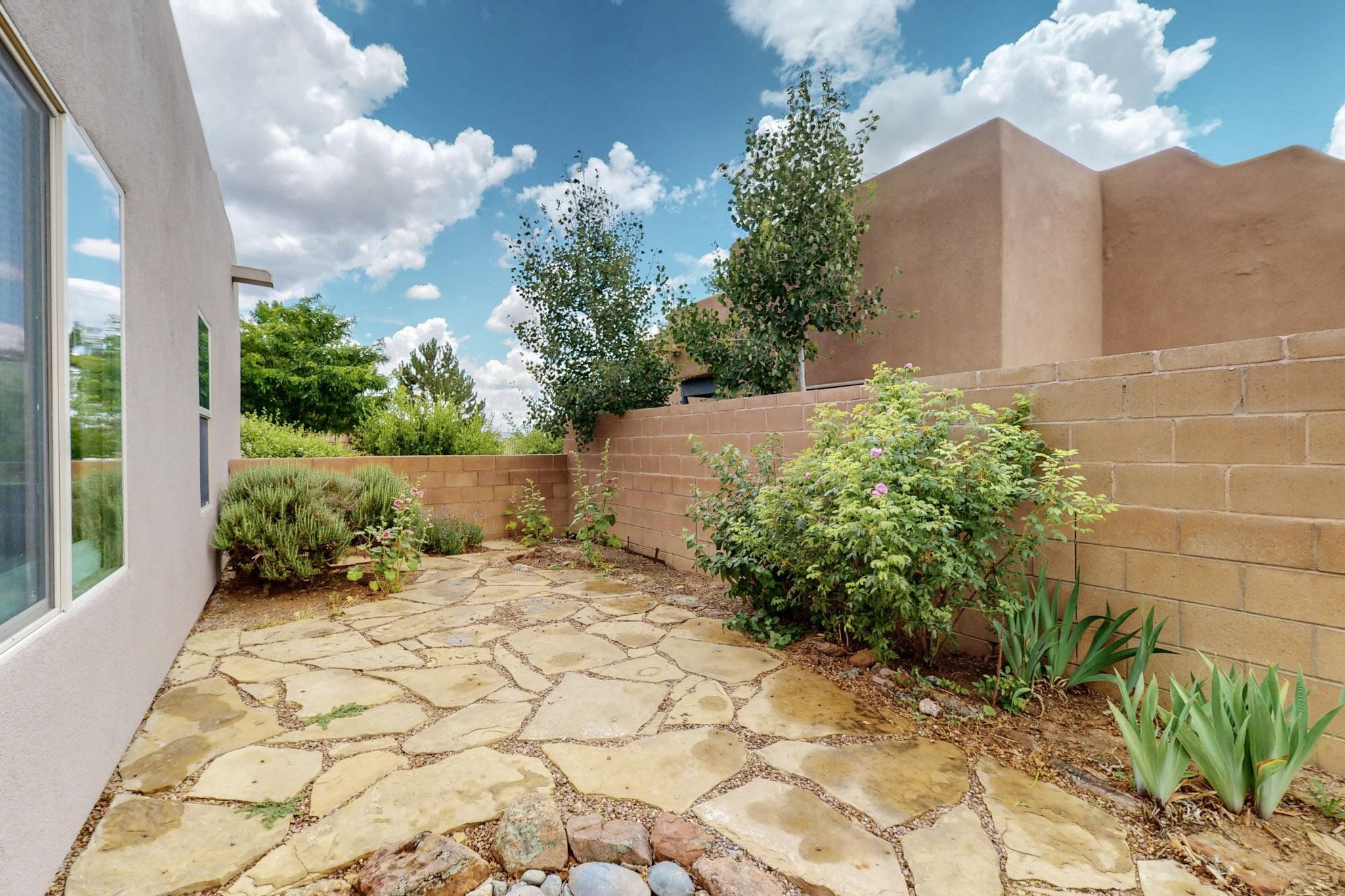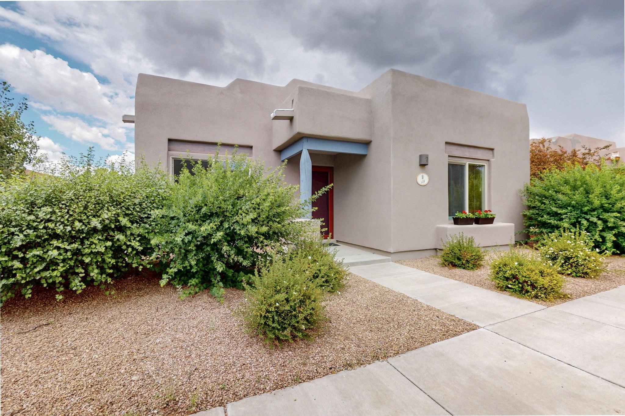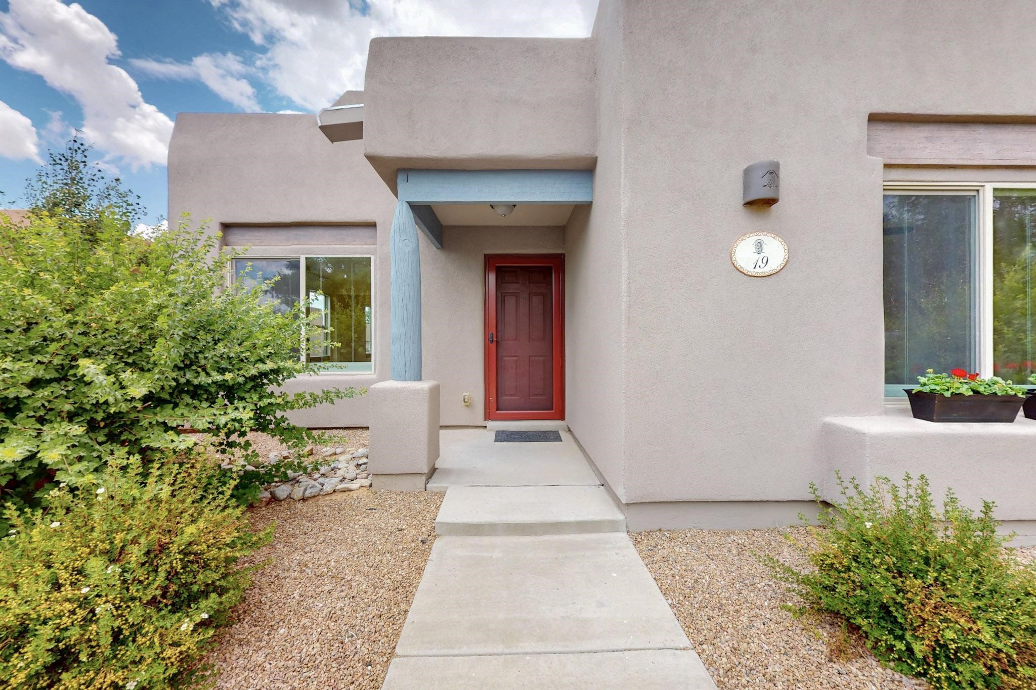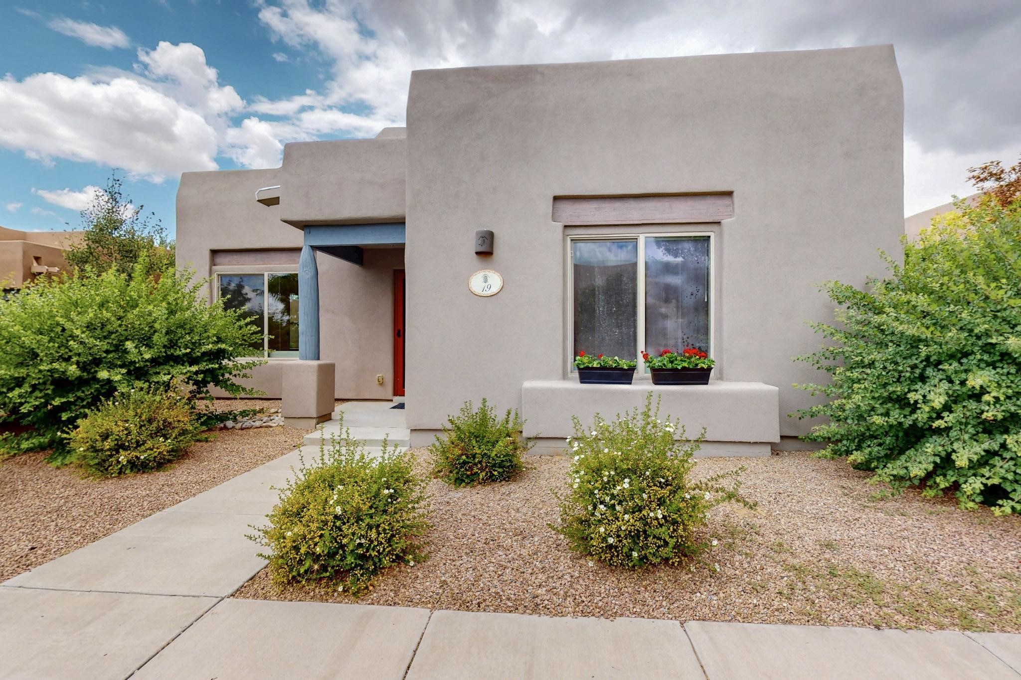 Discover the perfect sanctuary in this darling Rancho Viejo home. This inviting home offers 2 bedrooms, 2 bathrooms and a large walk-in master closet. It has a great single level layout with plenty of natural light that creates a warm and welcoming atmosphere that instantly feels like home. Just outside the kitchen is your own private backyard retreat with 2 big apple trees bursting with apples ready to eat. The yard is filled with mounds of stunning hollyhocks that are abundant in the spring. It is perfect for outdoor entertaining and an ideal setting for your morning breakfast or alfresco dining. Catch a little view of Tetilla Peak, too. Plenty of parking and a 2 car garage that provides lots of room for storage. Just steps from the house are stunning and eye-popping views of the Sangre de Cristo Mountains that will take your breath away. You can hit miles of Rancho Viejos's walking and hiking trails that connect to the Santa Fe Rail Trail - perfect for outdoor lovers. Plenty of parks nearby that offer a perfect blend of comfort, beauty and sense of community. Come see it -- your new chapter starts here!