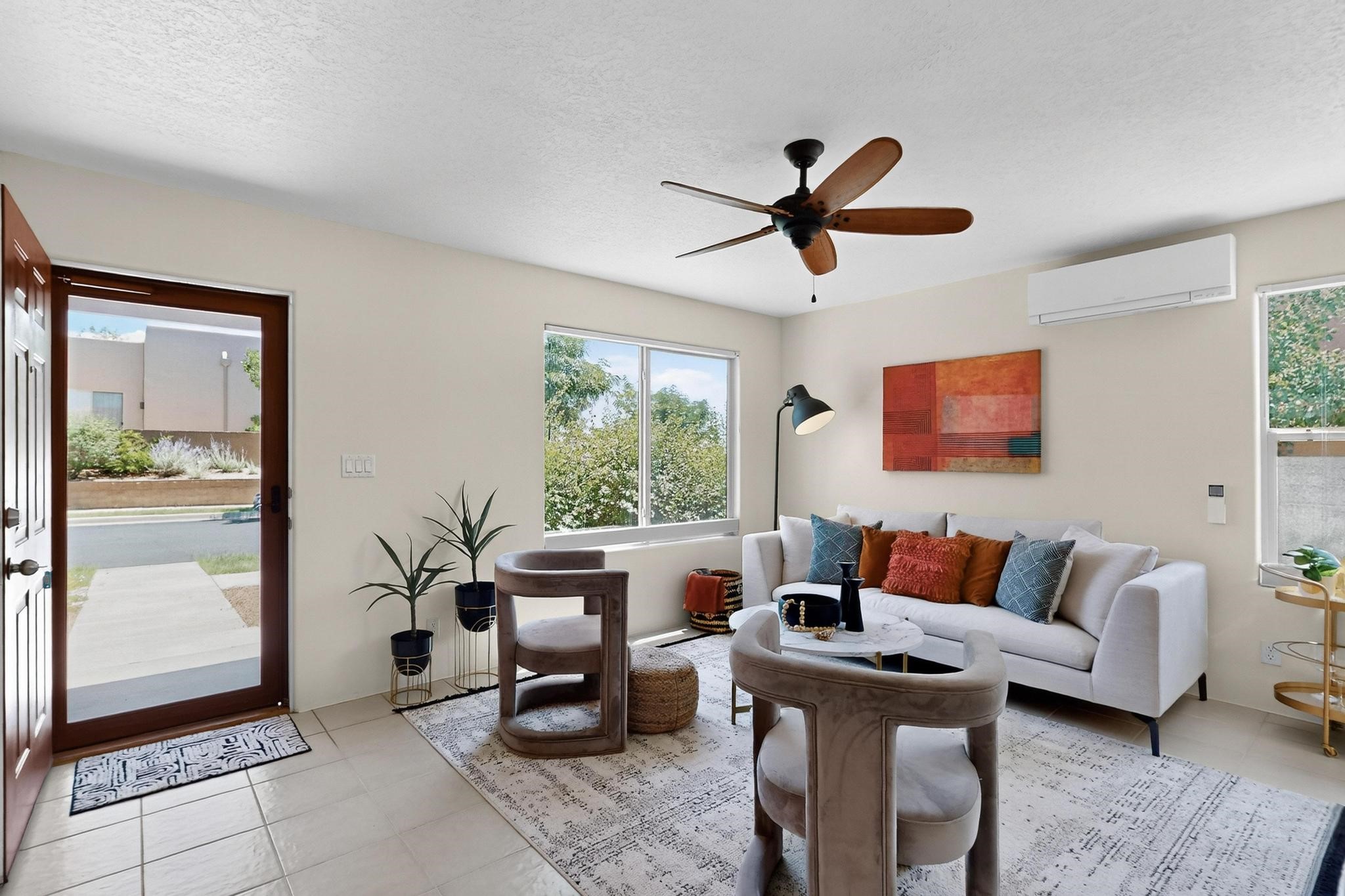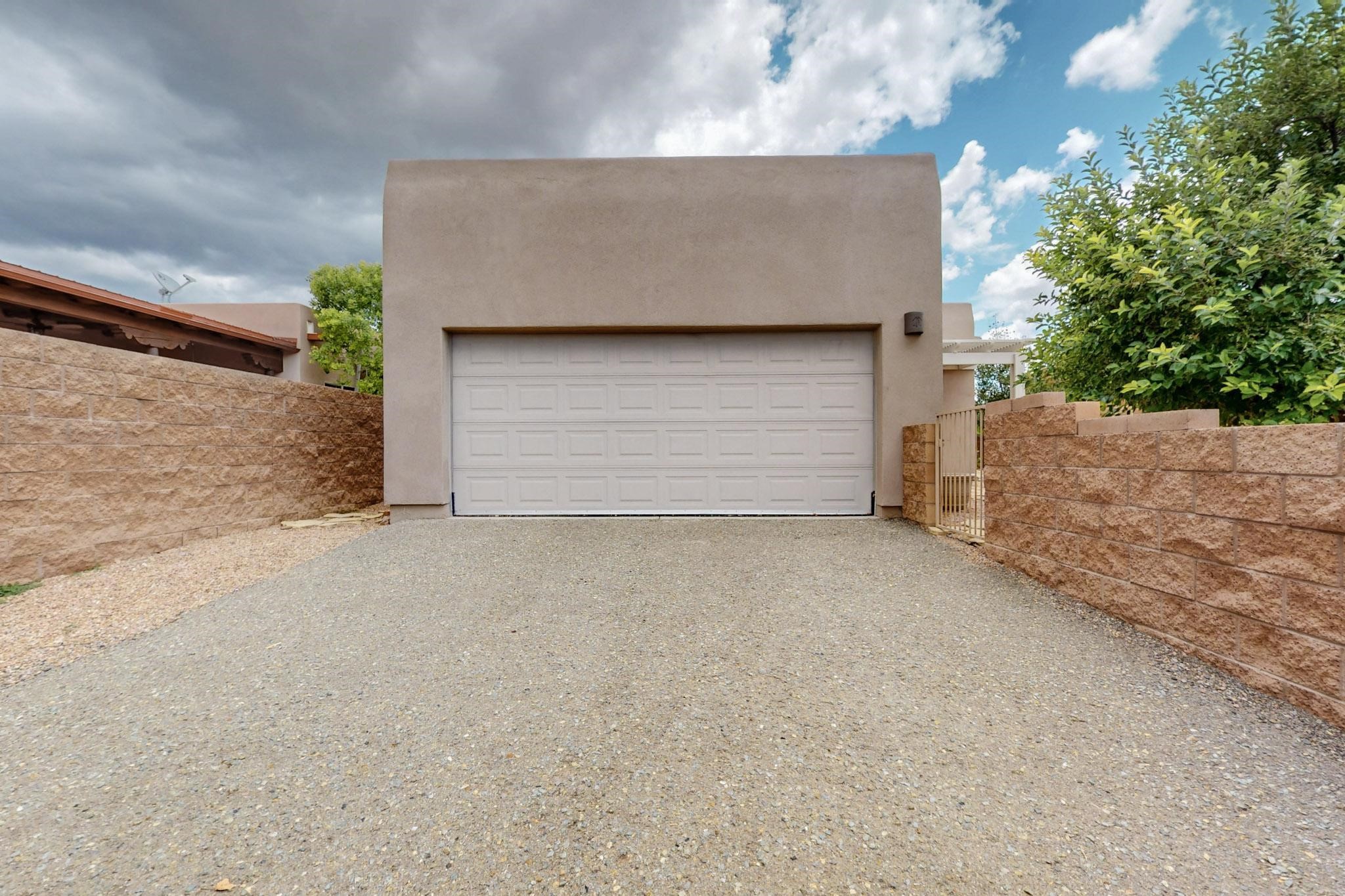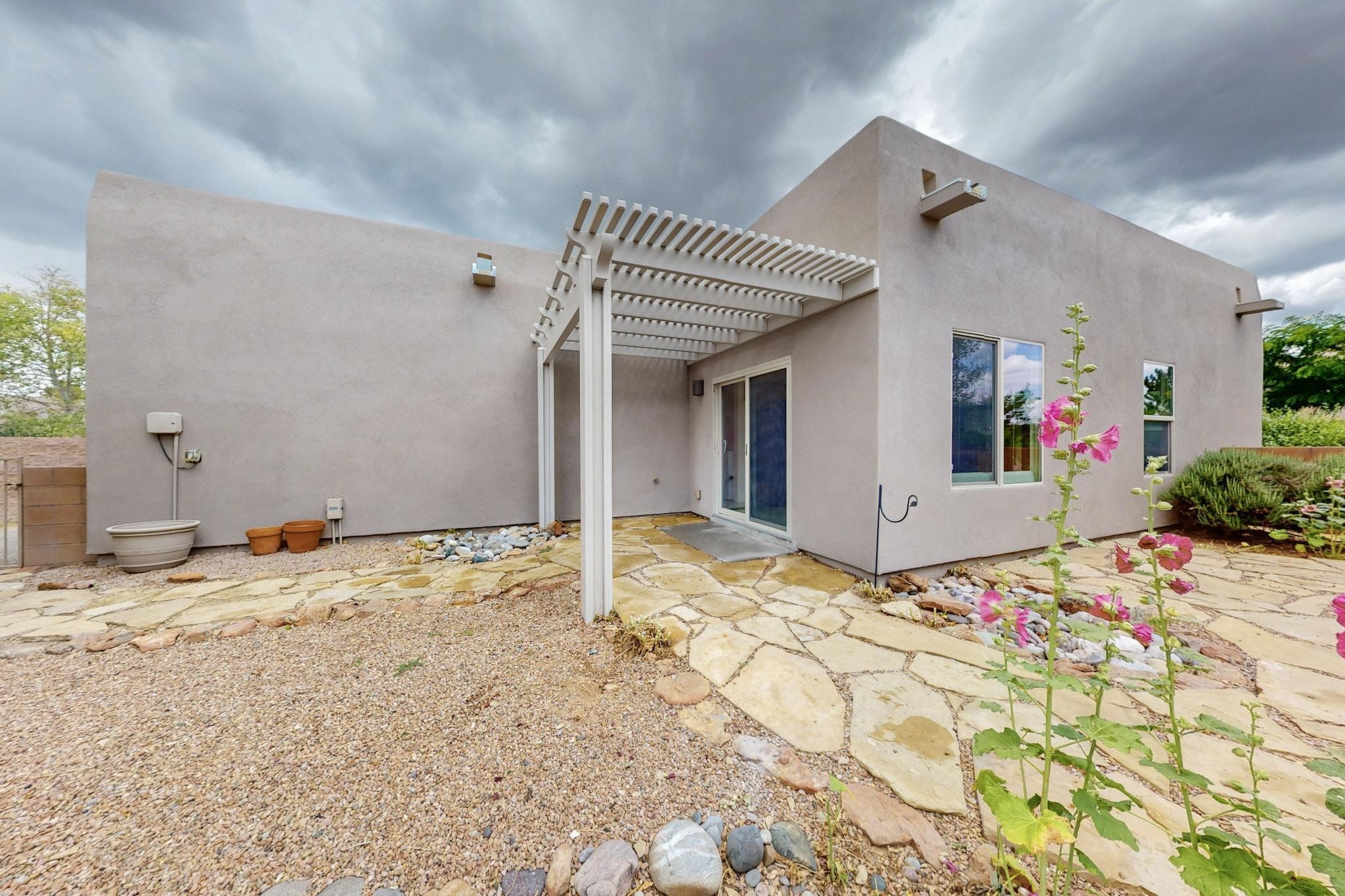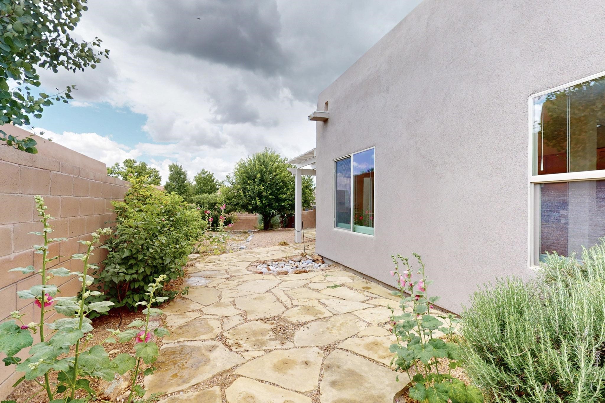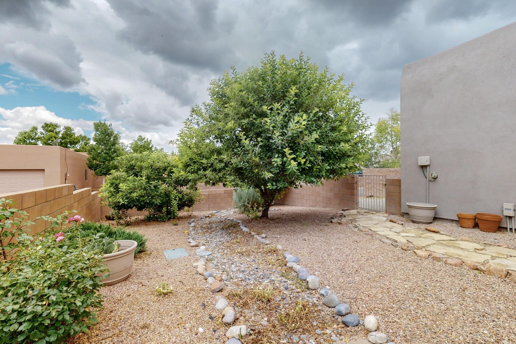 Discover the perfect sanctuary in this darling Rancho Viejo home. This inviting home offers 2 bedrooms, 2 bathrooms and a large walk-in master closet. It has a great single level layout with plenty of natural light that creates a warm and welcoming atmosphere that instantly feels like home. Just outside the kitchen is your own private backyard retreat with 2 big apple trees bursting with apples ready to eat. The yard is filled with mounds of stunning hollyhocks that are abundant in the spring. It is perfect for outdoor entertaining and an ideal setting for your morning breakfast or alfresco dining. Catch a little view of Tetilla Peak, too. Plenty of parking and a 2 car garage that provides lots of room for storage. Just steps from the house are stunning and eye-popping views of the Sangre de Cristo Mountains that will take your breath away. You can hit miles of Rancho Viejos's walking and hiking trails that connect to the Santa Fe Rail Trail - perfect for outdoor lovers. Plenty of parks nearby that offer a perfect blend of comfort, beauty and sense of community. Come see it -- your new chapter starts here!