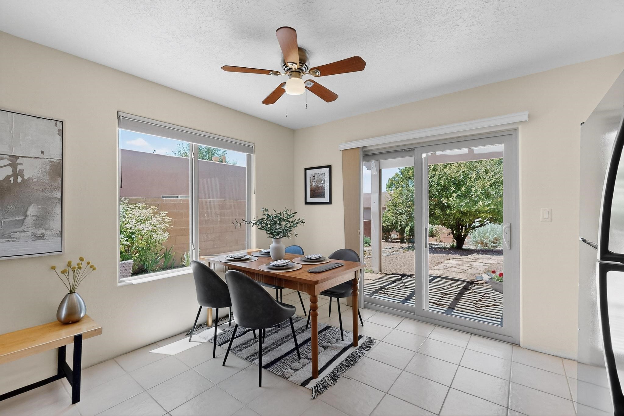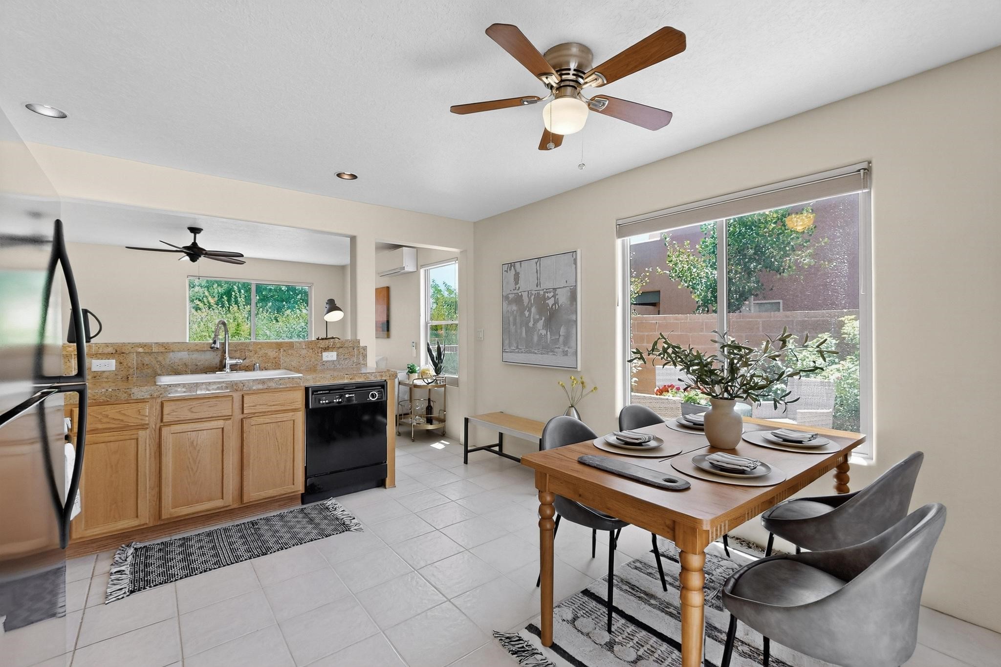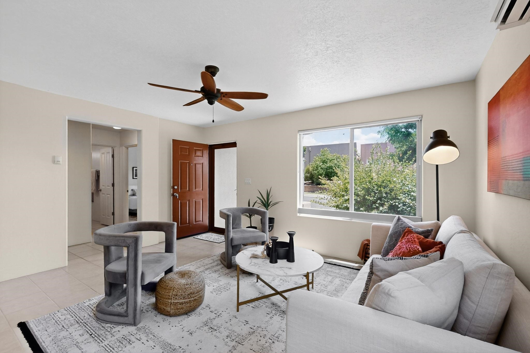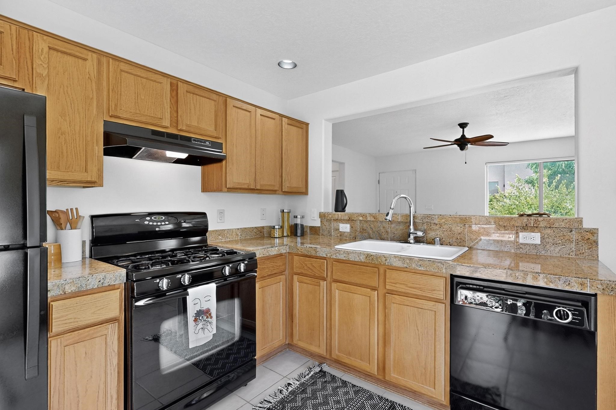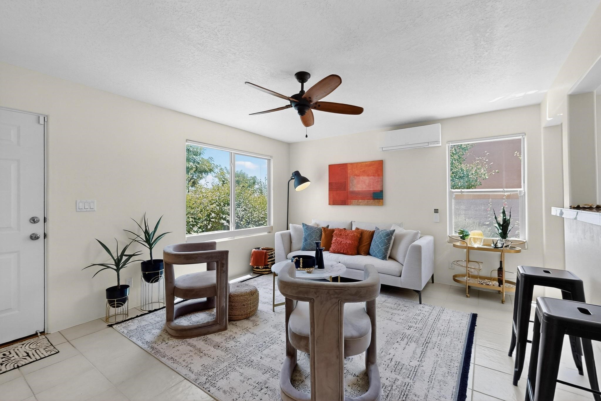 Discover the perfect sanctuary in this darling Rancho Viejo home. This inviting home offers 2 bedrooms, 2 bathrooms and a large walk-in master closet. It has a great single level layout with plenty of natural light that creates a warm and welcoming atmosphere that instantly feels like home. Just outside the kitchen is your own private backyard retreat with 2 big apple trees bursting with apples ready to eat. The yard is filled with mounds of stunning hollyhocks that are abundant in the spring. It is perfect for outdoor entertaining and an ideal setting for your morning breakfast or alfresco dining. Catch a little view of Tetilla Peak, too. Plenty of parking and a 2 car garage that provides lots of room for storage. Just steps from the house are stunning and eye-popping views of the Sangre de Cristo Mountains that will take your breath away. You can hit miles of Rancho Viejos's walking and hiking trails that connect to the Santa Fe Rail Trail - perfect for outdoor lovers. Plenty of parks nearby that offer a perfect blend of comfort, beauty and sense of community. Come see it -- your new chapter starts here!