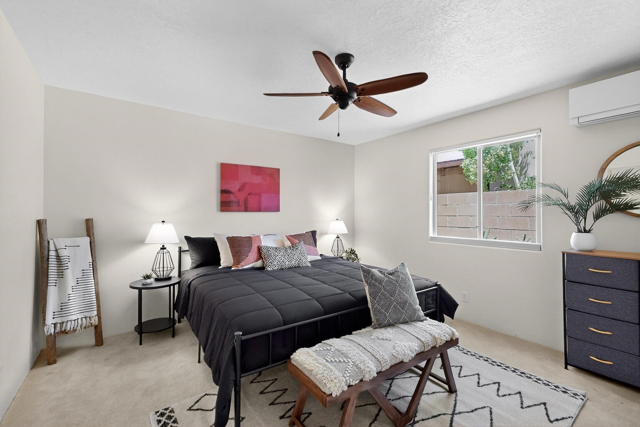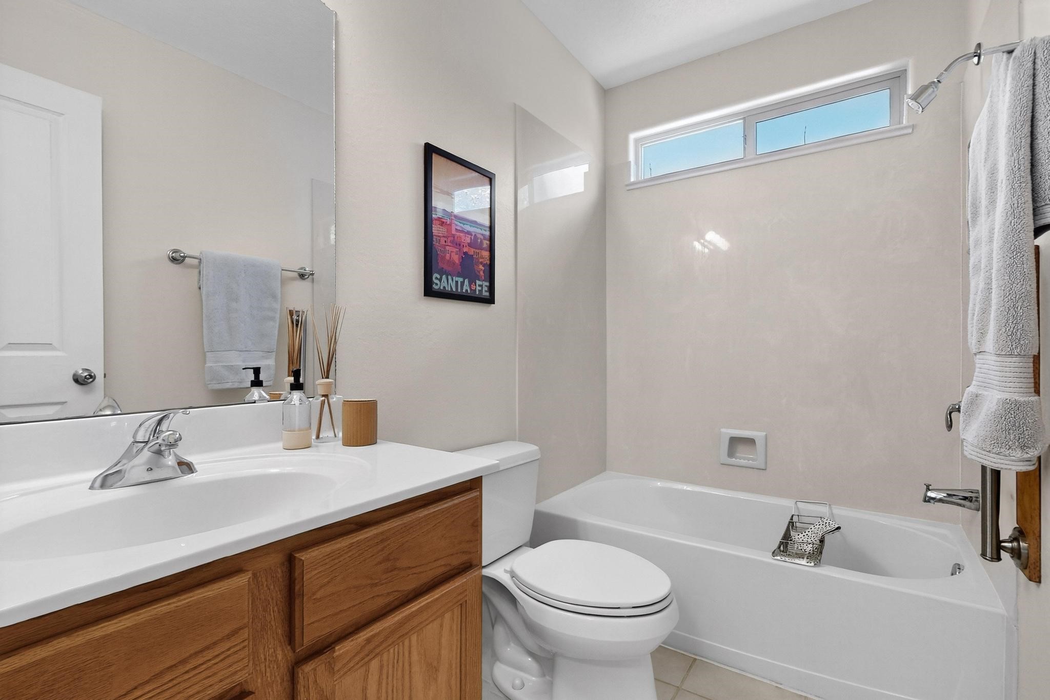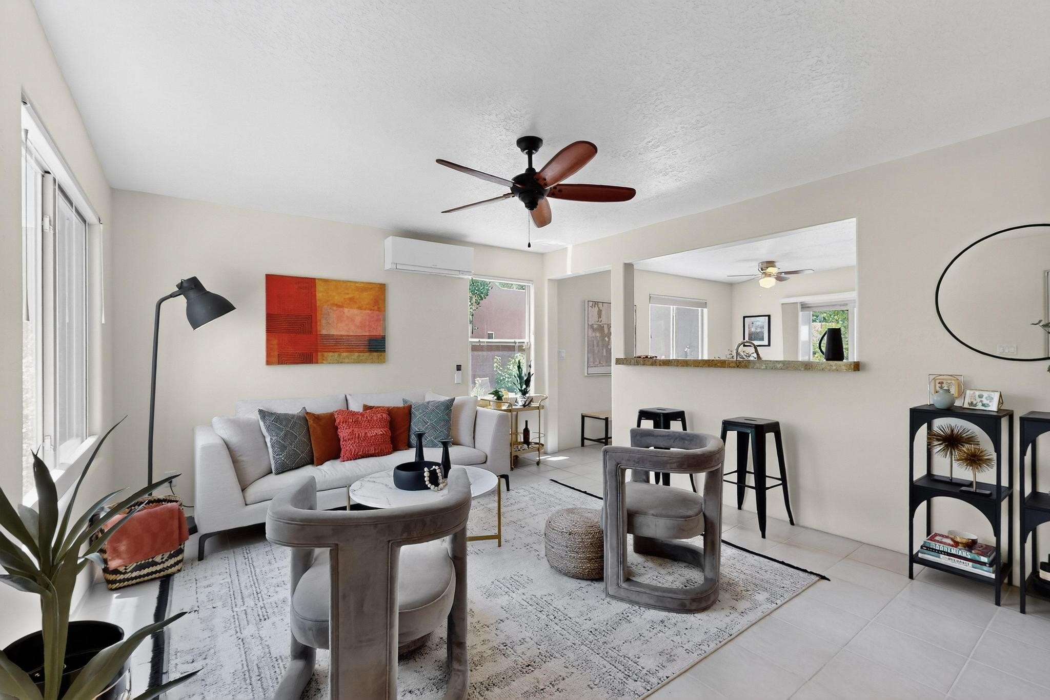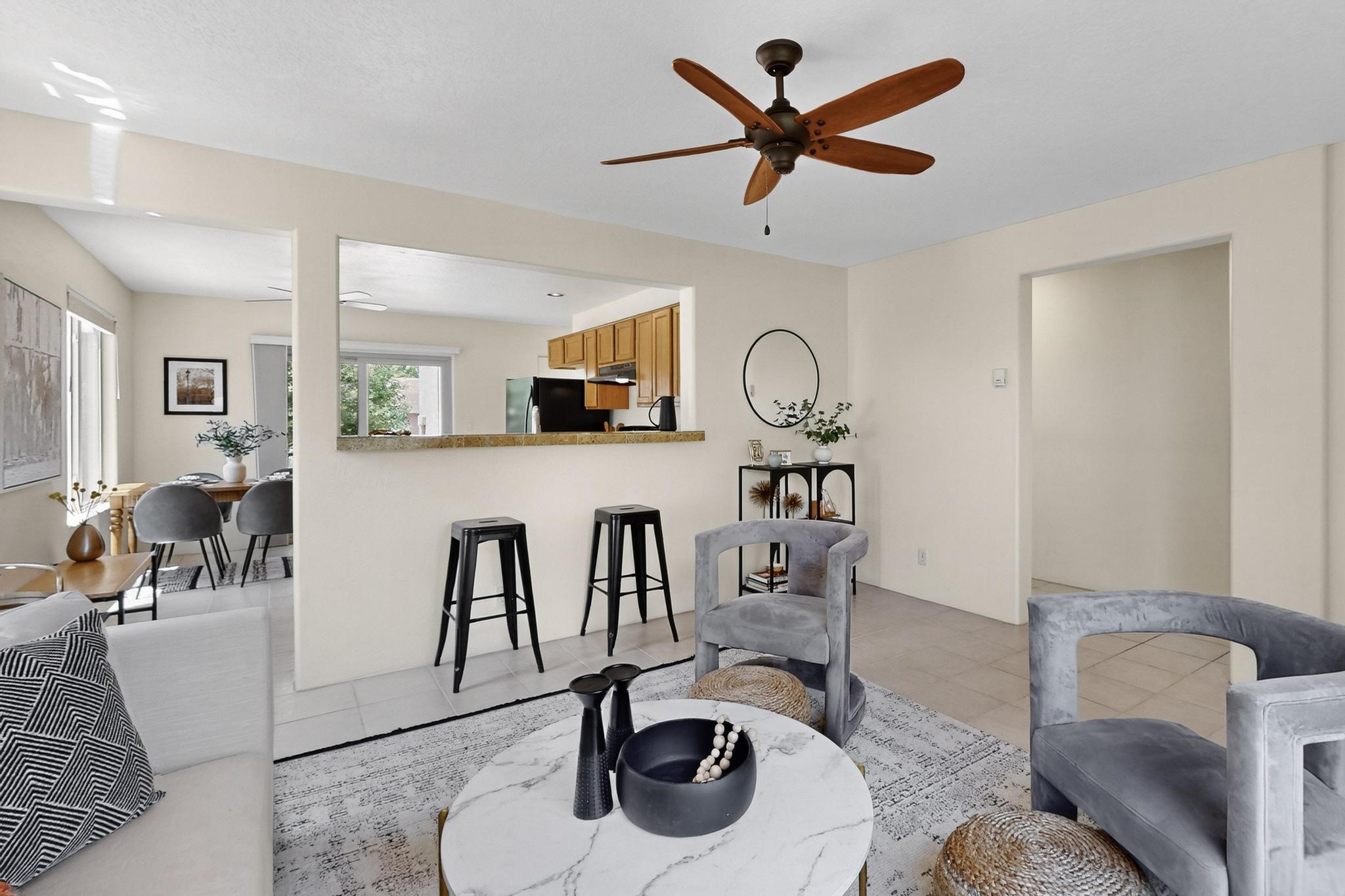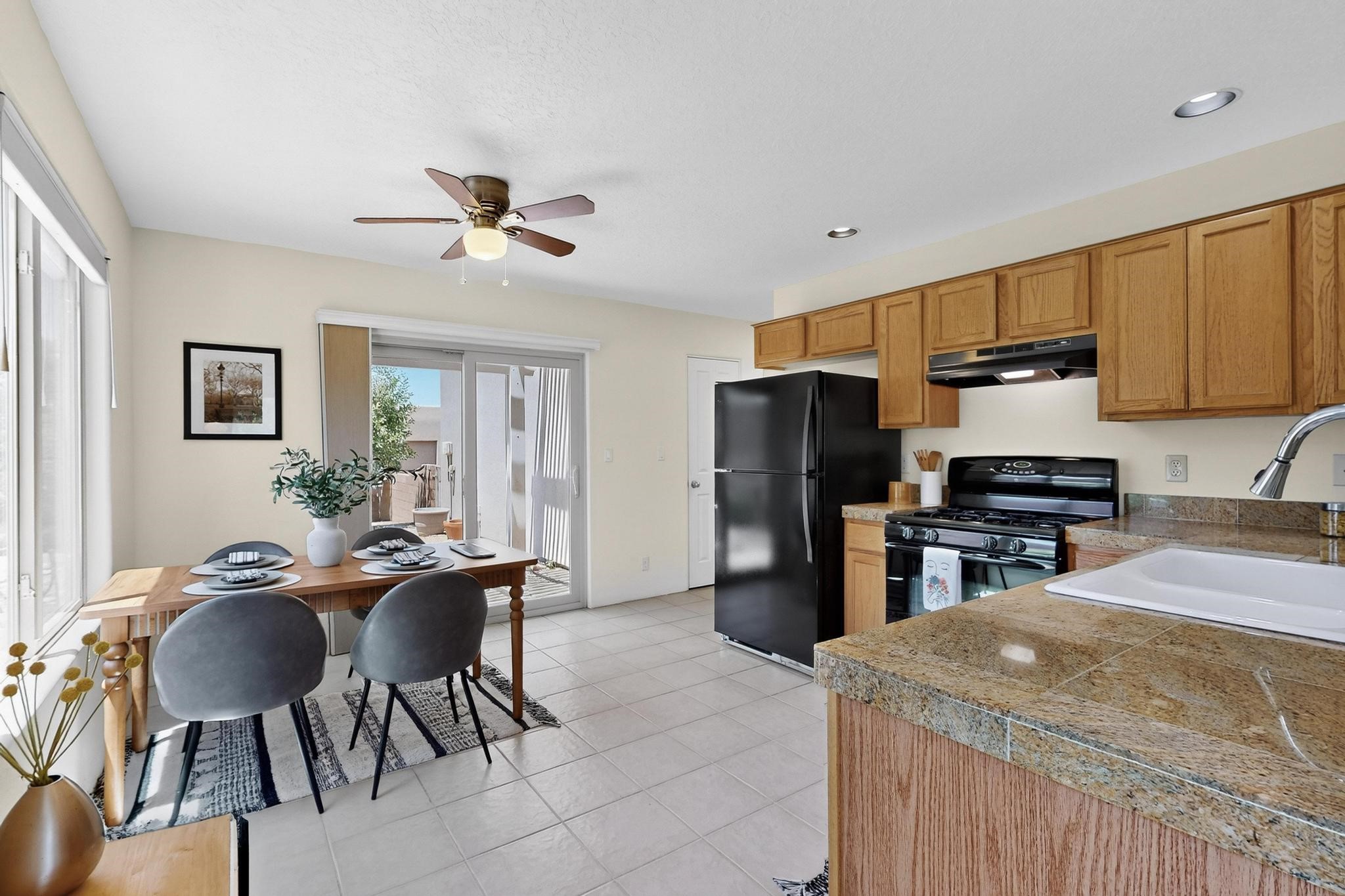 Discover the perfect sanctuary in this darling Rancho Viejo home. This inviting home offers 2 bedrooms, 2 bathrooms and a large walk-in master closet. It has a great single level layout with plenty of natural light that creates a warm and welcoming atmosphere that instantly feels like home. Just outside the kitchen is your own private backyard retreat with 2 big apple trees bursting with apples ready to eat. The yard is filled with mounds of stunning hollyhocks that are abundant in the spring. It is perfect for outdoor entertaining and an ideal setting for your morning breakfast or alfresco dining. Catch a little view of Tetilla Peak, too. Plenty of parking and a 2 car garage that provides lots of room for storage. Just steps from the house are stunning and eye-popping views of the Sangre de Cristo Mountains that will take your breath away. You can hit miles of Rancho Viejos's walking and hiking trails that connect to the Santa Fe Rail Trail - perfect for outdoor lovers. Plenty of parks nearby that offer a perfect blend of comfort, beauty and sense of community. Come see it -- your new chapter starts here!