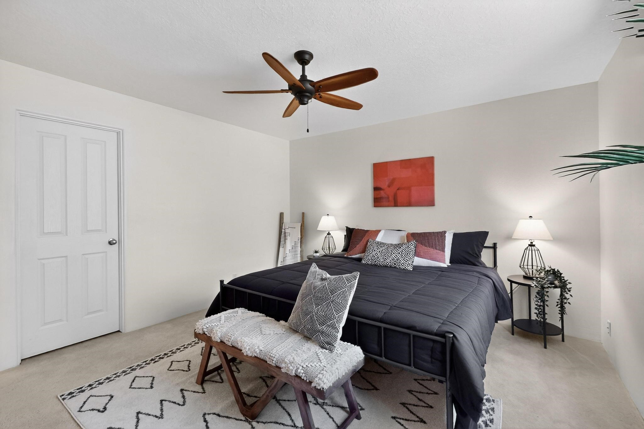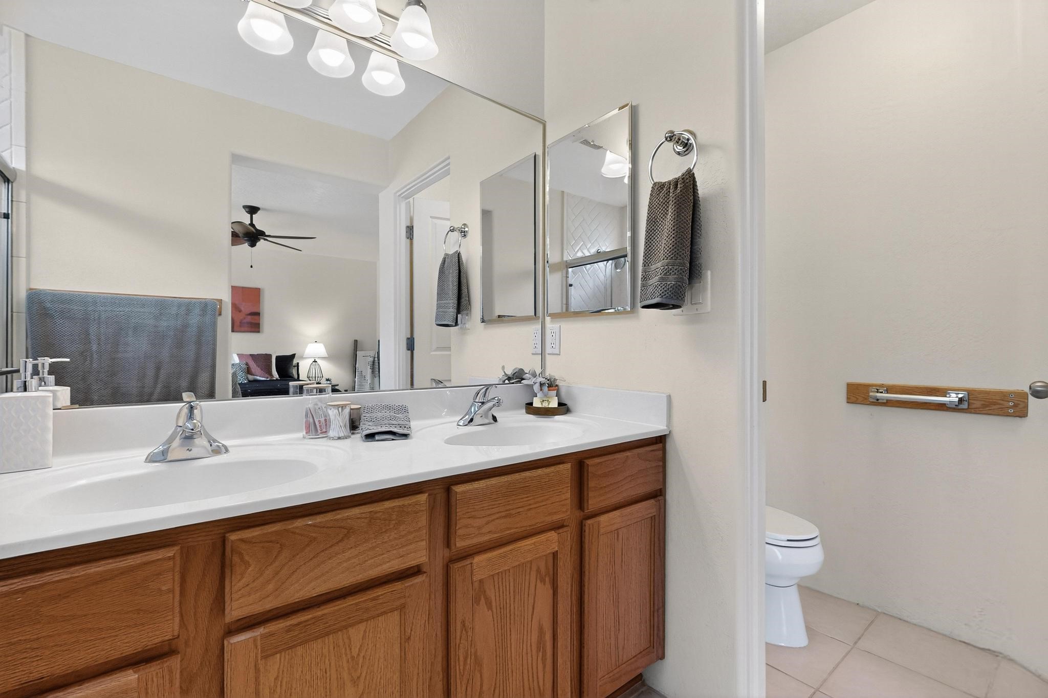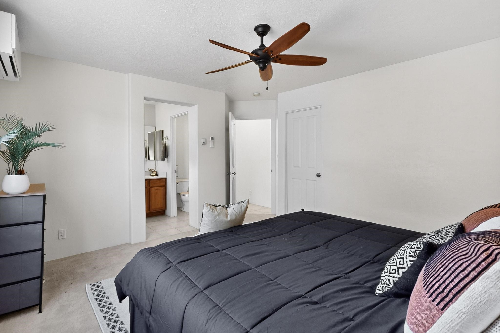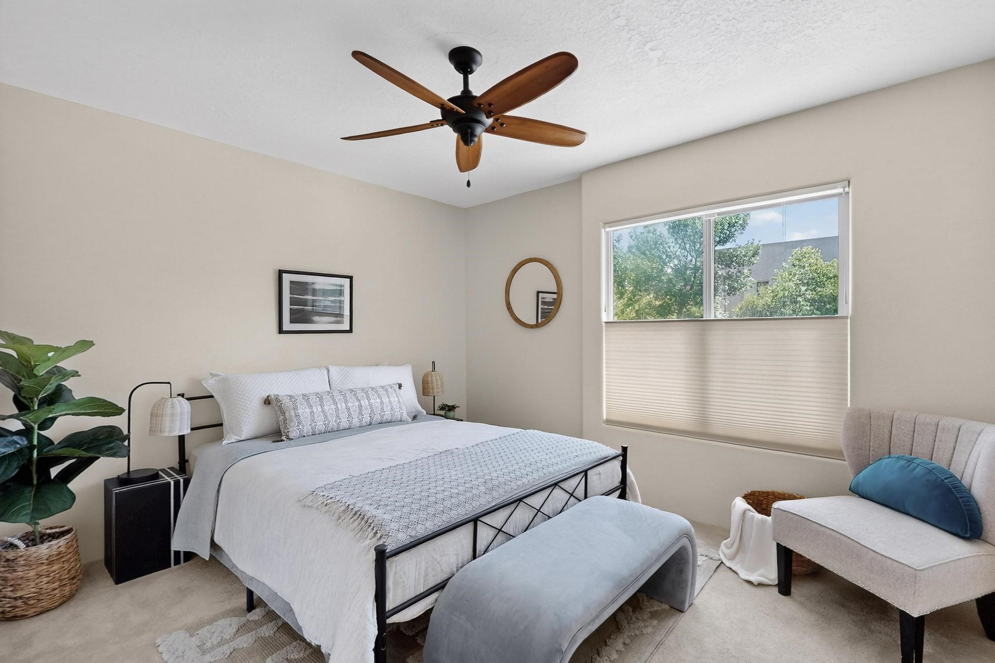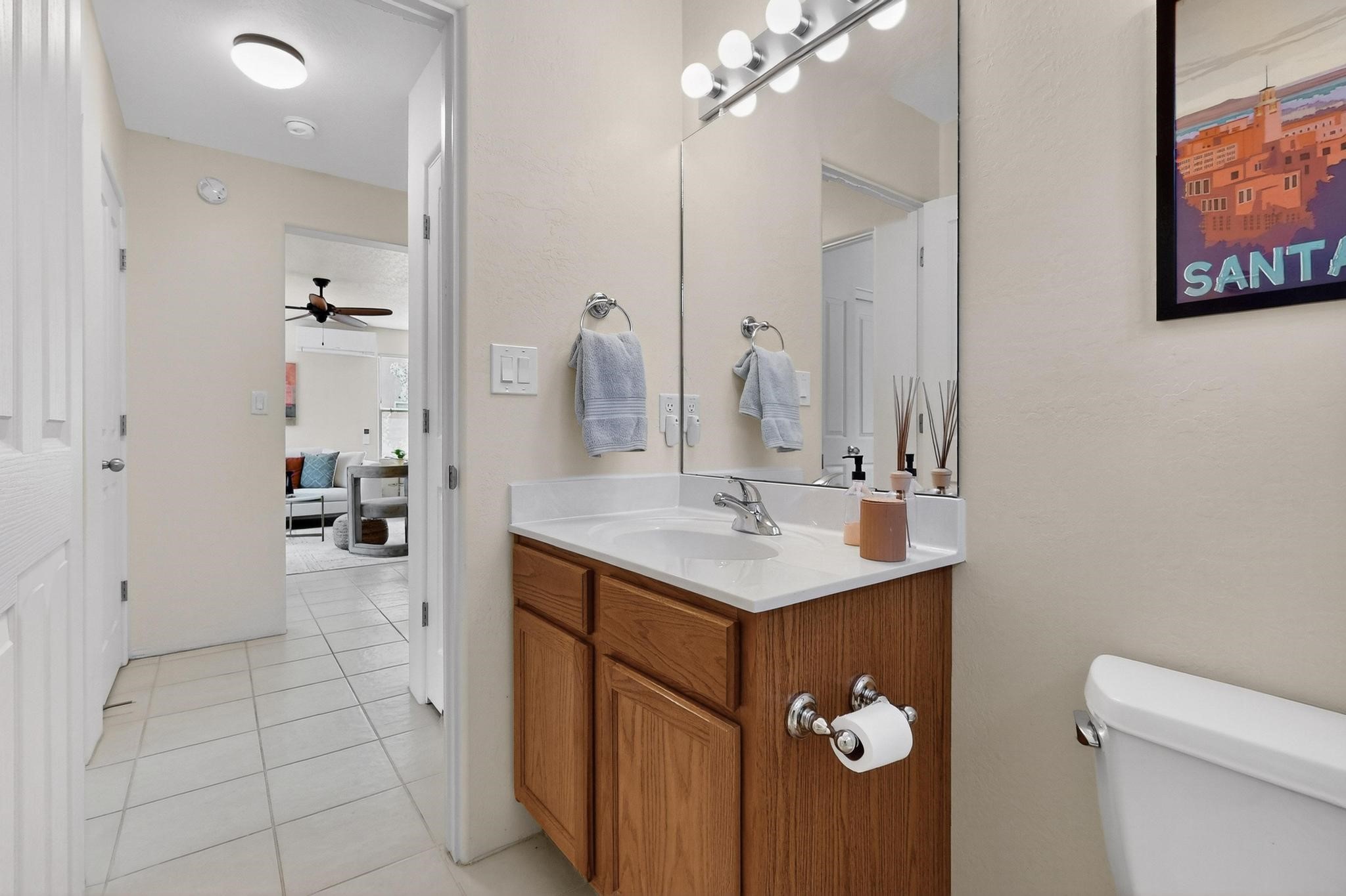 Discover the perfect sanctuary in this darling Rancho Viejo home. This inviting home offers 2 bedrooms, 2 bathrooms and a large walk-in master closet. It has a great single level layout with plenty of natural light that creates a warm and welcoming atmosphere that instantly feels like home. Just outside the kitchen is your own private backyard retreat with 2 big apple trees bursting with apples ready to eat. The yard is filled with mounds of stunning hollyhocks that are abundant in the spring. It is perfect for outdoor entertaining and an ideal setting for your morning breakfast or alfresco dining. Catch a little view of Tetilla Peak, too. Plenty of parking and a 2 car garage that provides lots of room for storage. Just steps from the house are stunning and eye-popping views of the Sangre de Cristo Mountains that will take your breath away. You can hit miles of Rancho Viejos's walking and hiking trails that connect to the Santa Fe Rail Trail - perfect for outdoor lovers. Plenty of parks nearby that offer a perfect blend of comfort, beauty and sense of community. Come see it -- your new chapter starts here!