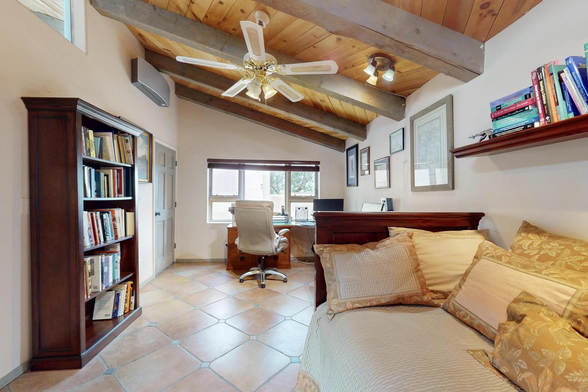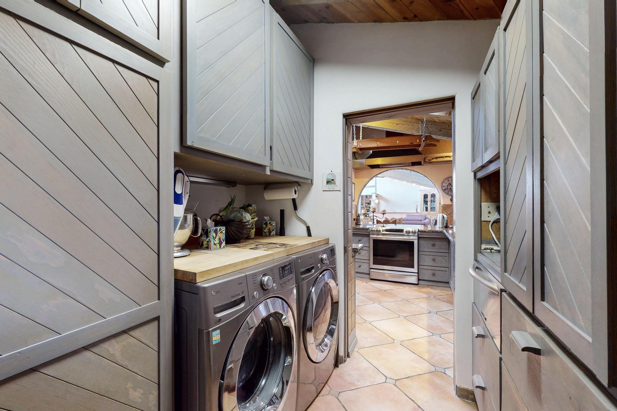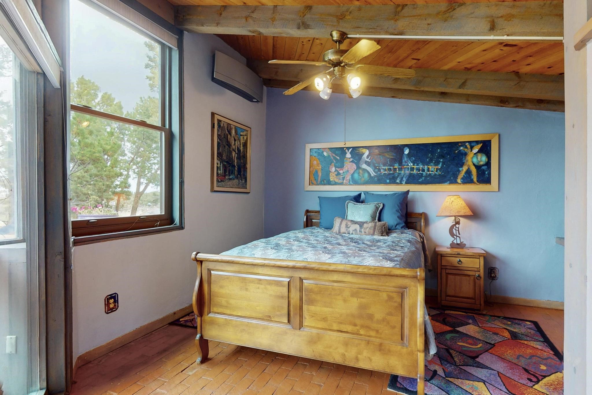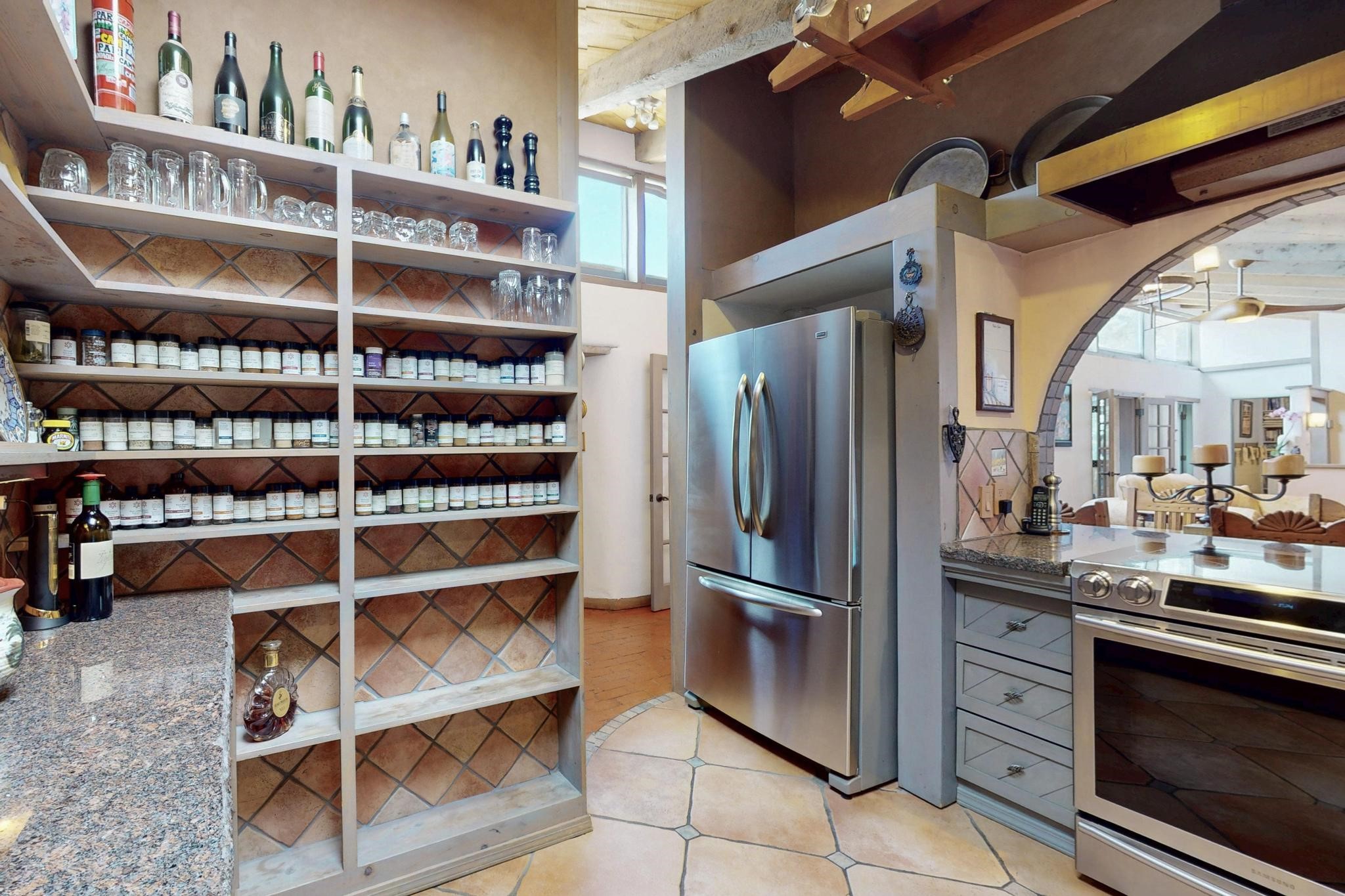 First time on the market! One-of-a-kind pitched roof propanel passive solar beauty with Old World Charm. Like a Swiss Chalet with a dash of Mid-Century Modern. A rarity in Eldorado! Set back off the road on a circular drive, with nary a house in sight, is this gorgeously maintained and landscaped 1.50 acre lot replete with a bubbling Koi and goldfish pond. A multitude of exterior dining and entertaining areas. Meander through the totally dripped irrigated garden which leads the way into a sun drenched, and massive, brick floor Atrium. In fact, the whole house has brick floors and Post and Beam high ceilings with French doors galore! Oversized Living/Dining room with floor to ceiling windows and remote controlled blinds. The wood stove has a catalytic converter which keeps the room toasty through those long winter nights with an 75% to 81% efficiency rating. Split bedroom floor plan. A fabulous Master with a Vermont casting wood stove, en-suite bath with an on-demand gas water heater and a remote controlled awning to keep the bright morning light at bay. Ginormous cedar closet in dressing room/walk-in closet which is the size of a NYC studio apartment! Both the Living Room and Bedrooms have mini-splits and ceiling fans. European-style kitchen has a warming drawer, open shelving and tons of cupboards. A wonderful long pantry with a utility area and space for all your pots, pans, spices and sundries. Outside the kitchen door is a dedicated gas connection for the BBQ. A long and wide two car detached tandem garage has tons of storage and a climate controlled wine room suitable for hundreds of bottles. One of a kind unique beauty.There's nothing like it!