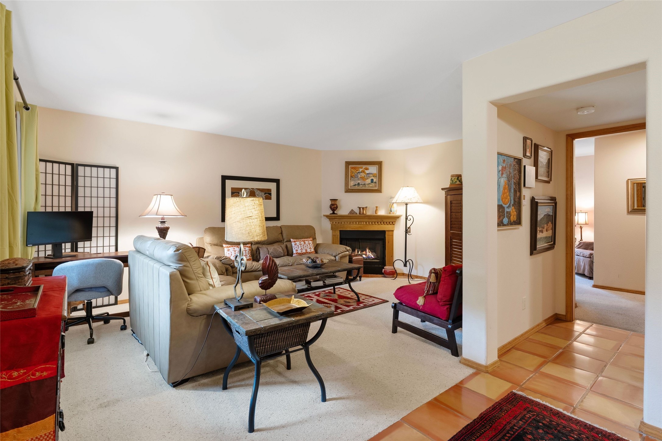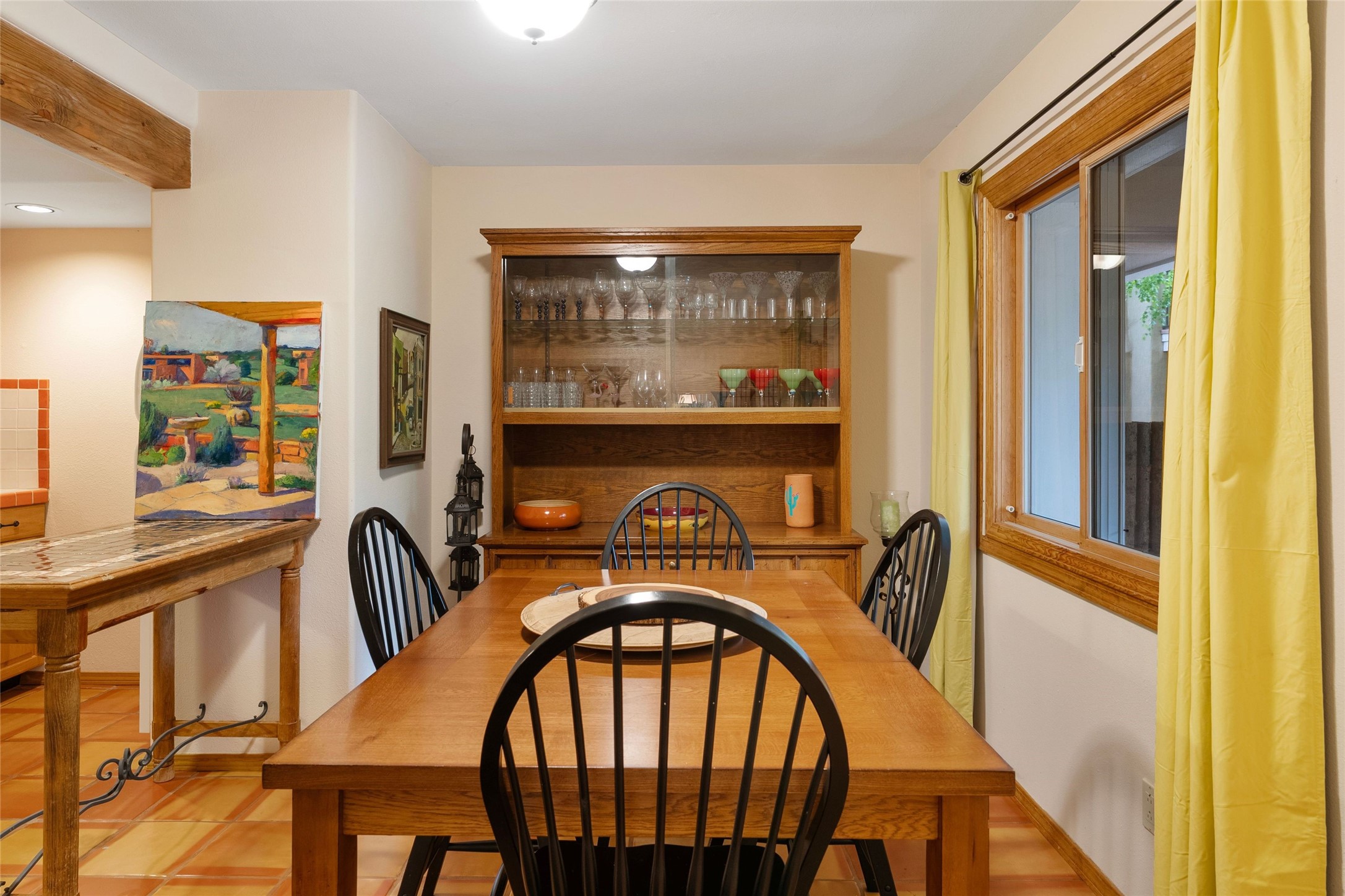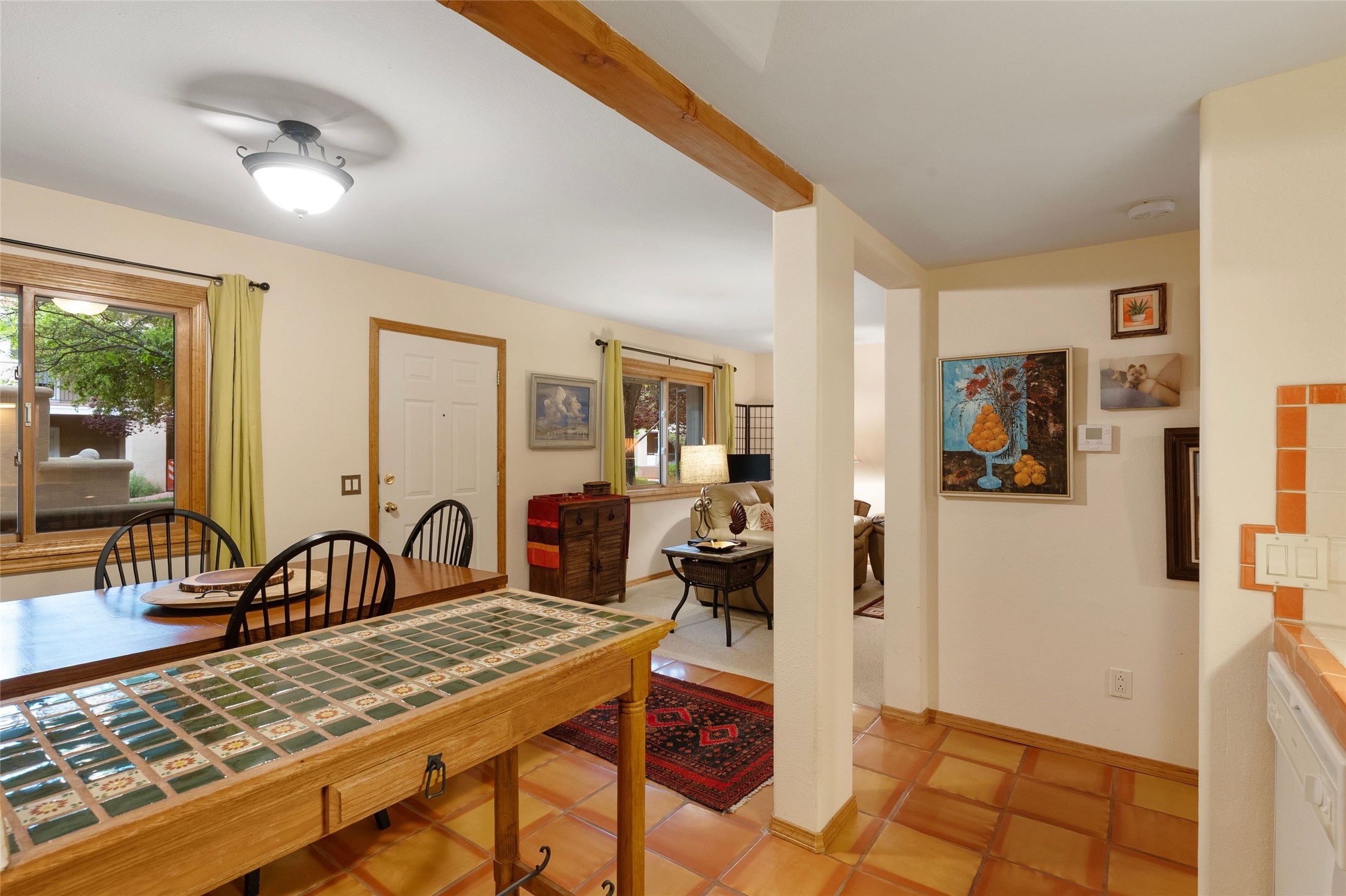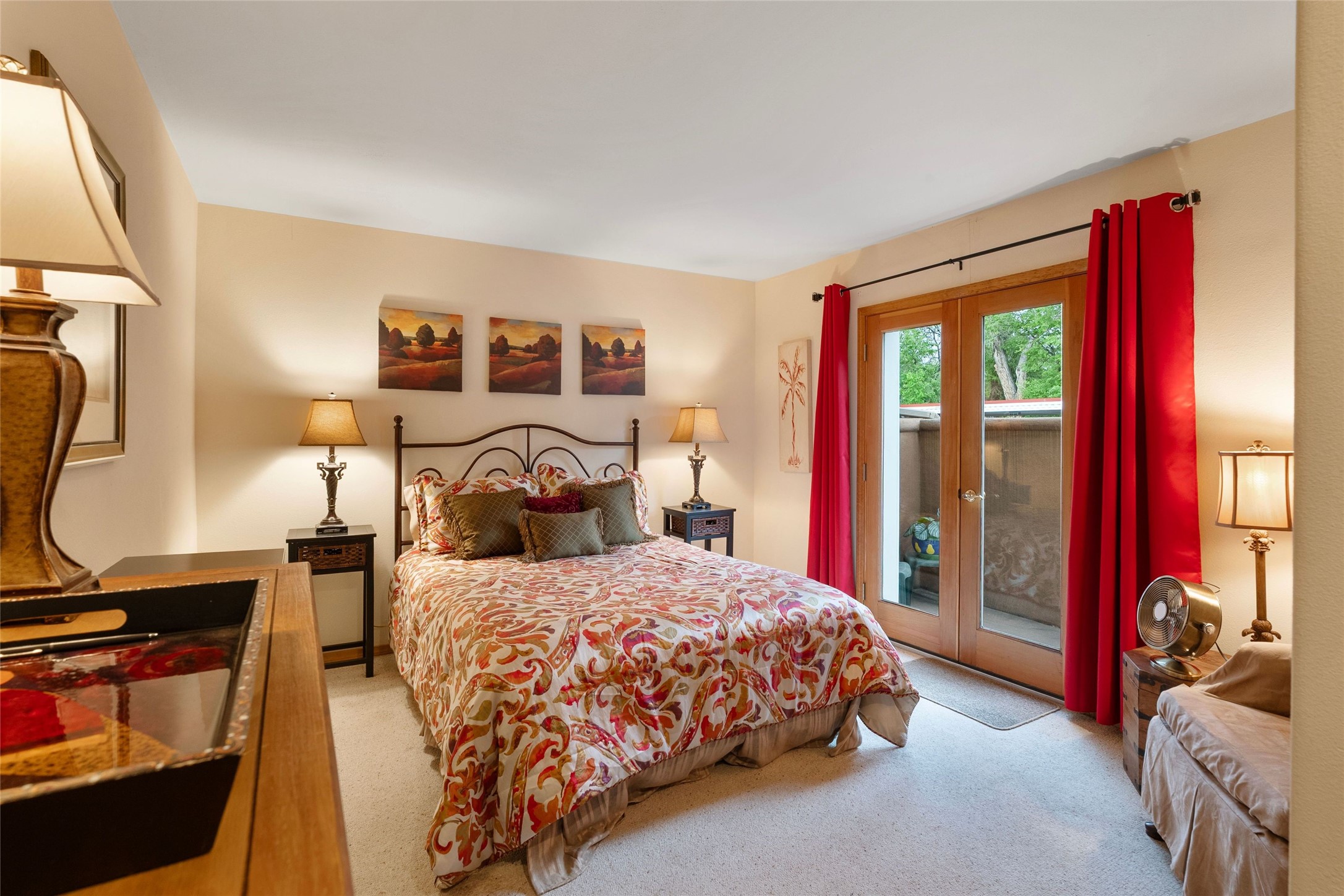 Absolutely ideal condo in coveted El Matador! Ideal because this unit is ground level, positioned to enjoy the gracious centered courtyard. Greenery is hard to find in Santa Fe and this "garden of eden" (to quote a neighbor) is a green oasis!You will often enjoy the shaded patio in the front: the white gate is low enough to encourage a chat with neighbors walking by. And off the bedroom is another more secluded patio, sunny for plants, and quiet for reading. This patio is a bonus because the bolted door opens to the parking spaces, and the parking spot for this unit is directly across. Think of the easy access for groceries, suitcases, etc.When you are looking at the photos keep in mind the unit comes completely furnished, with high-end furniture choices. The spaces are logical and well planned, there is a good flow from room to room, yet privacy in the bedrom if someone wants to go to bed early.This is a terrific location regardless of your agility. You can enjoy life just sitting in the front portal. Or, for a morning walk, a stroll through Ft Marcy Park would get your steps in for the day. This community park also has a swimming pool, exercise classes, small gym. And, if you have a dog, they would certainly enjoy this park - abundant dog smells! And, further walking can take you into the heart of town within a few blocks. Numerous restaurants in all prices ranges, local coffee shops, and truly excellent shopping possibilities - and of course, our Santa Fe Plaza. Festivals and activities year around, with numerous markets and celebrations, musical events and lots of happy people!