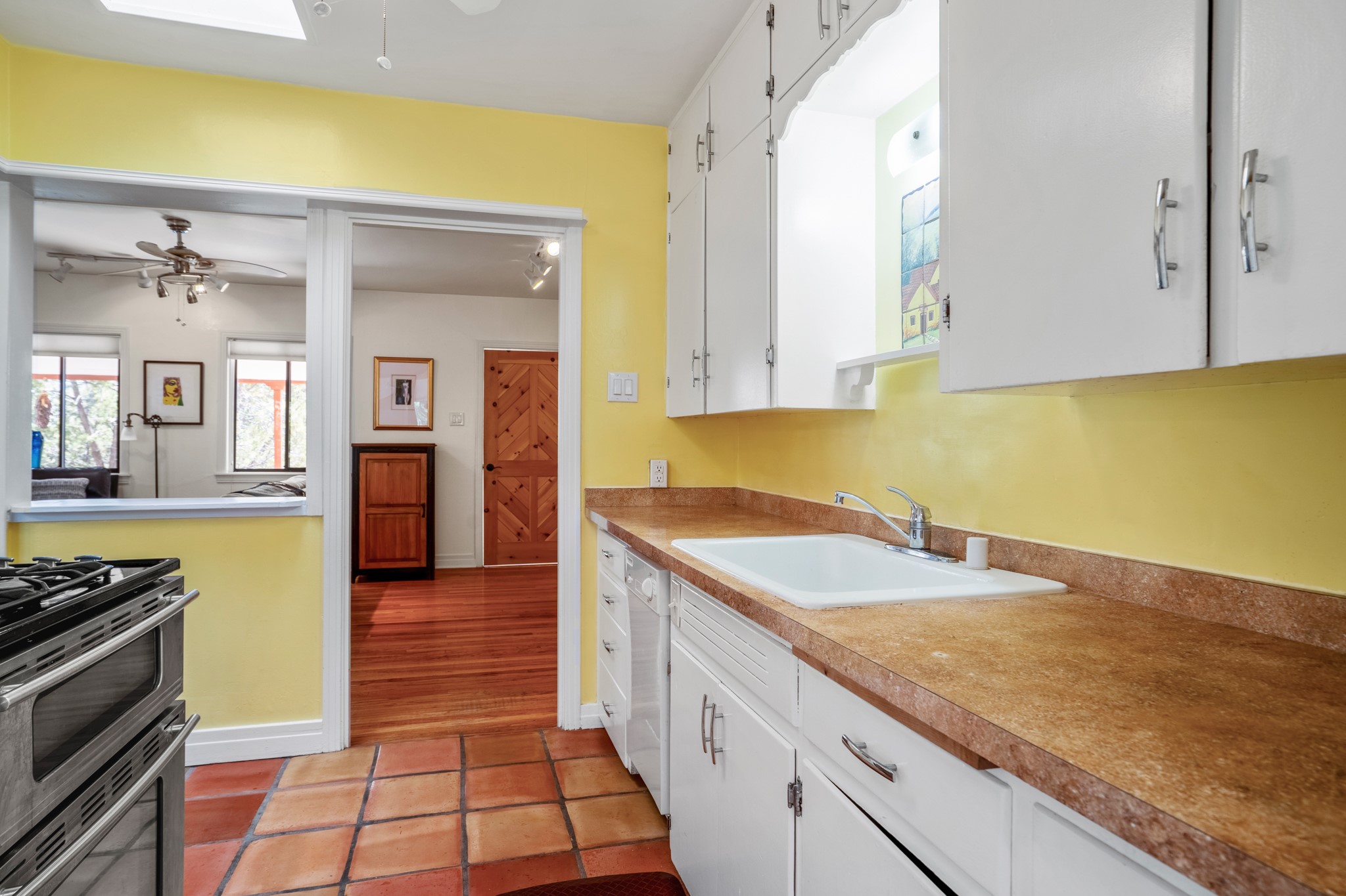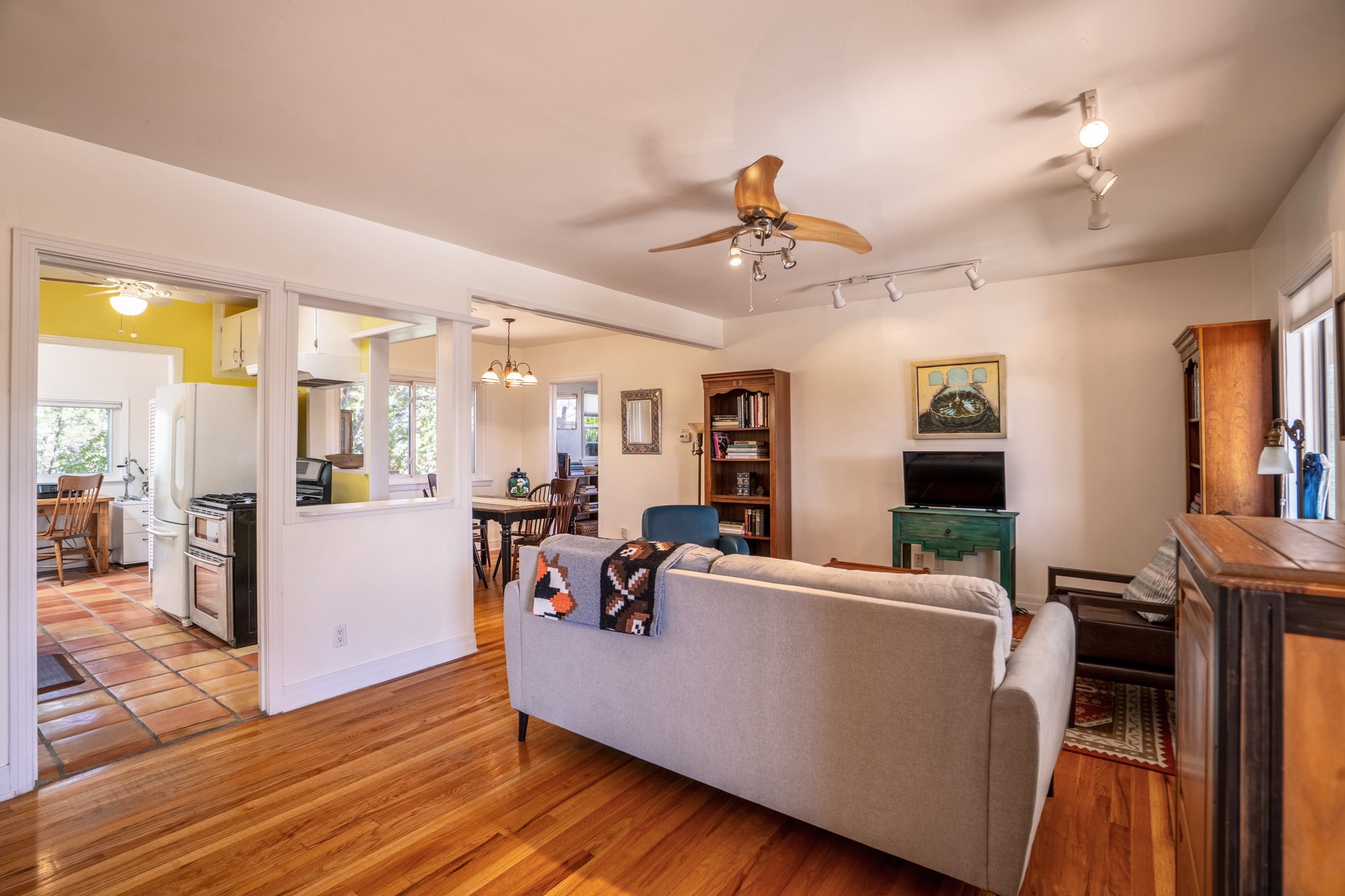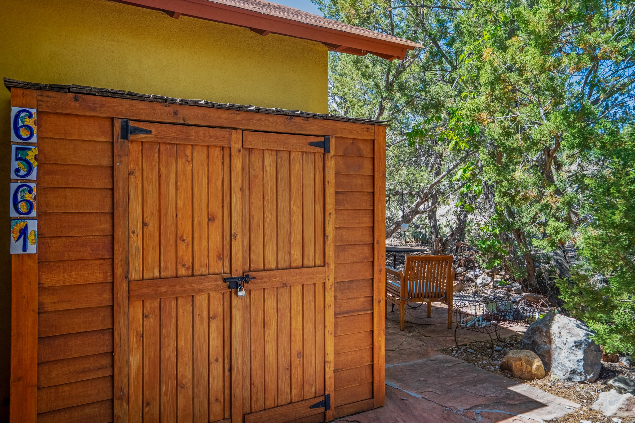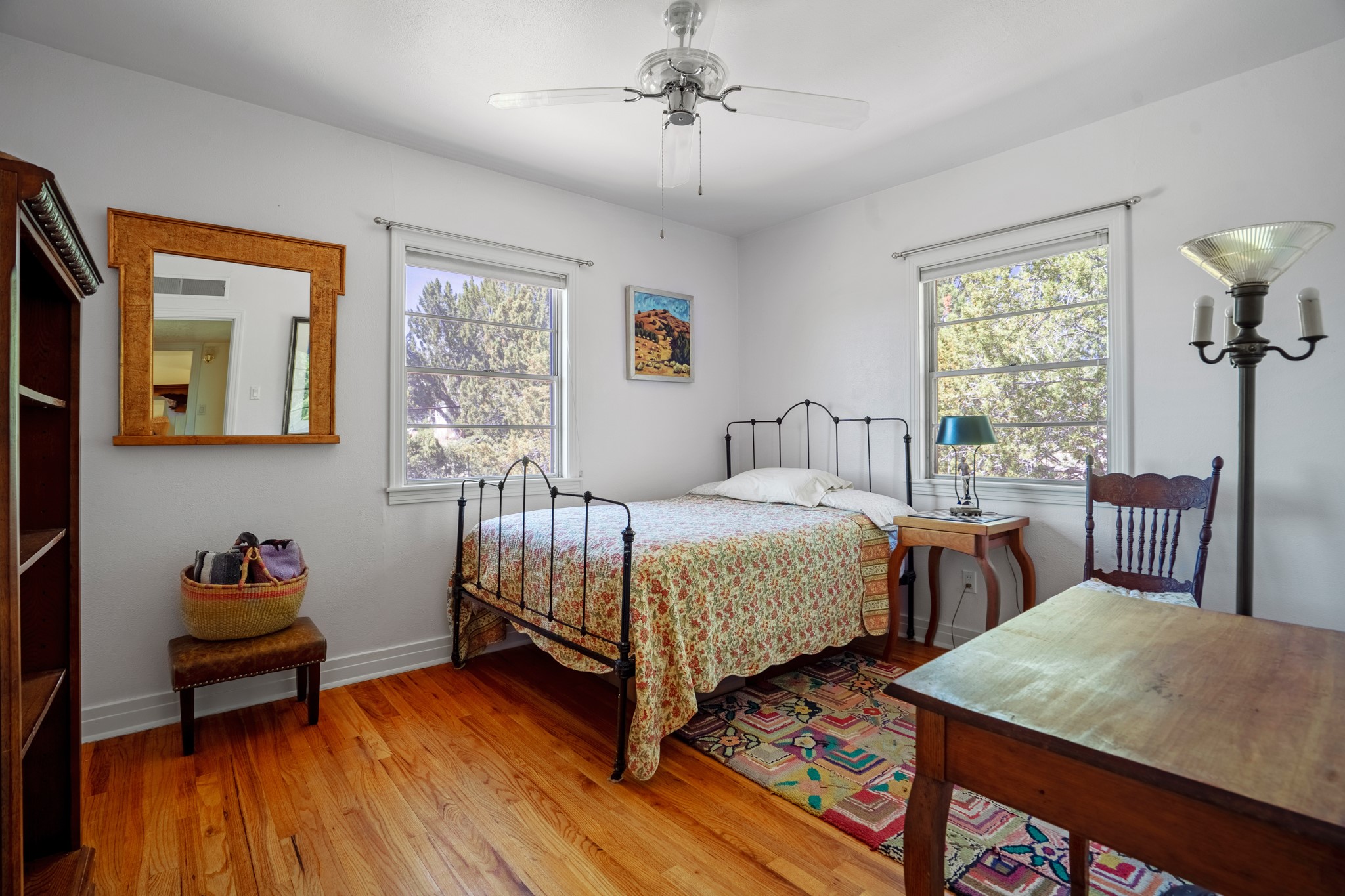 Nestled privately among Pinon and Juniper trees at Cochiti Lake, this well-maintained 3-bedroom, 2-bathroom home offers an inviting retreat. Step through the solid hardwood front door and discover real oak flooring flowing throughout most of the open floor plan, bathed in lots of natural light. Ceiling fans in every room ensure year-round comfort.The third bedroom is currently used as a versatile studio space and has its own bathroom, perfect for hobbies or a home office. Enjoy the convenience of a carport and an included storage shed. The landscaped back patio provides a peaceful outdoor oasis, with limited views of Tetilla Peak adding to the serene atmosphere. This cheery yellow home, with nearby lake access and golf, is an ideal sanctuary for those seeking a blend of comfort and nature. Schedule your showing today!