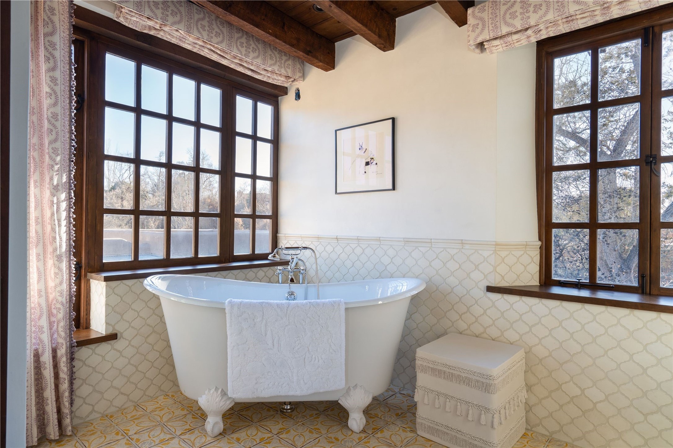 Experience the timeless elegance of The De La Pena/Frank Applegate Residence, a distinguished historical treasure nestled in Santa Fe's coveted Historic Eastside. An extraordinary opportunity to own a true piece of Santa Fe history, this landmark estate sits on 1.78 acres along a private lane, just moments from world-renowned Canyon Road and its celebrated galleries, boutiques, and fine dining. Constructed in 1650, and recognized for its National Historic Status, this remarkable property was acquired in 1845 by Spanish officer Francisco de la Pea and later purchased by esteemed artist and architect Frank Applegate. Meticulously restored to honor its past while seamlessly integrating modern luxury, the estate is designed around a picturesque placita courtyard, with a stunning 5-bedroom, 7-bath main residence and a welcoming guest casita. With every detail reflecting the finest level of artisanal craftsmanship, this incomparable estate offers a custom wine cellar with refrigeration, two garages, a clay tennis court, a ramada, and a private well for irrigation. The idyllic outdoor areas offer fabulous entertaining spaces, mature trees, multiple courtyards, along with a lush lawn, portals, and an abundance of privacy. Modern amenities are seamlessly integrated into the estate with a Control 4 Smart Home operating system. With its premier location and unparalleled provenance, this estate is a rare gem for discerning buyers seeking a luxurious lifestyle in the heart of Santa Fe.
