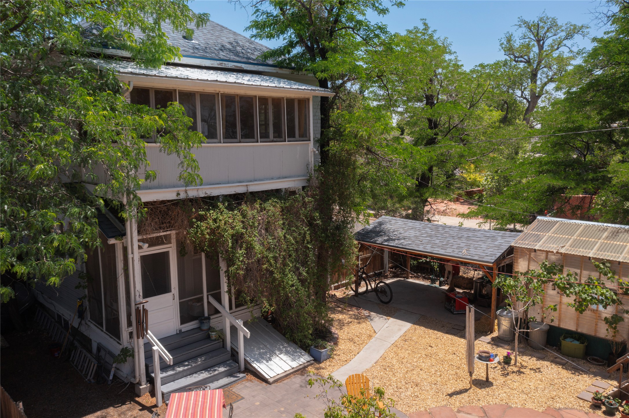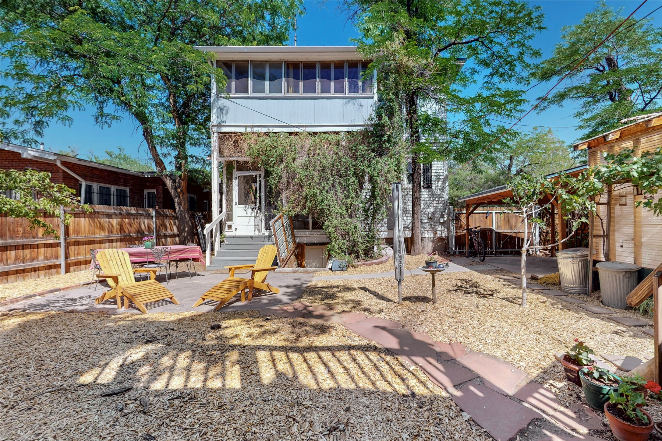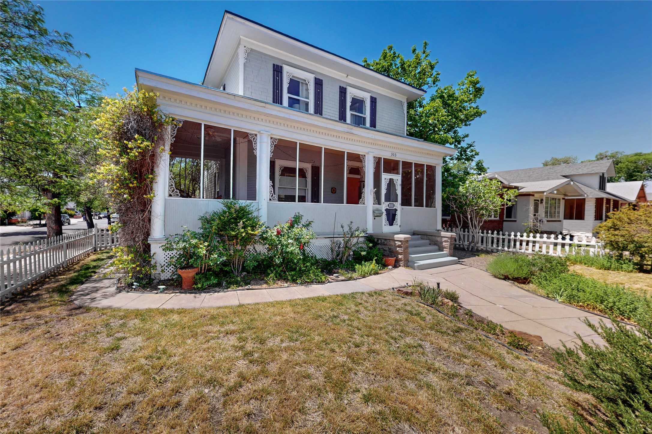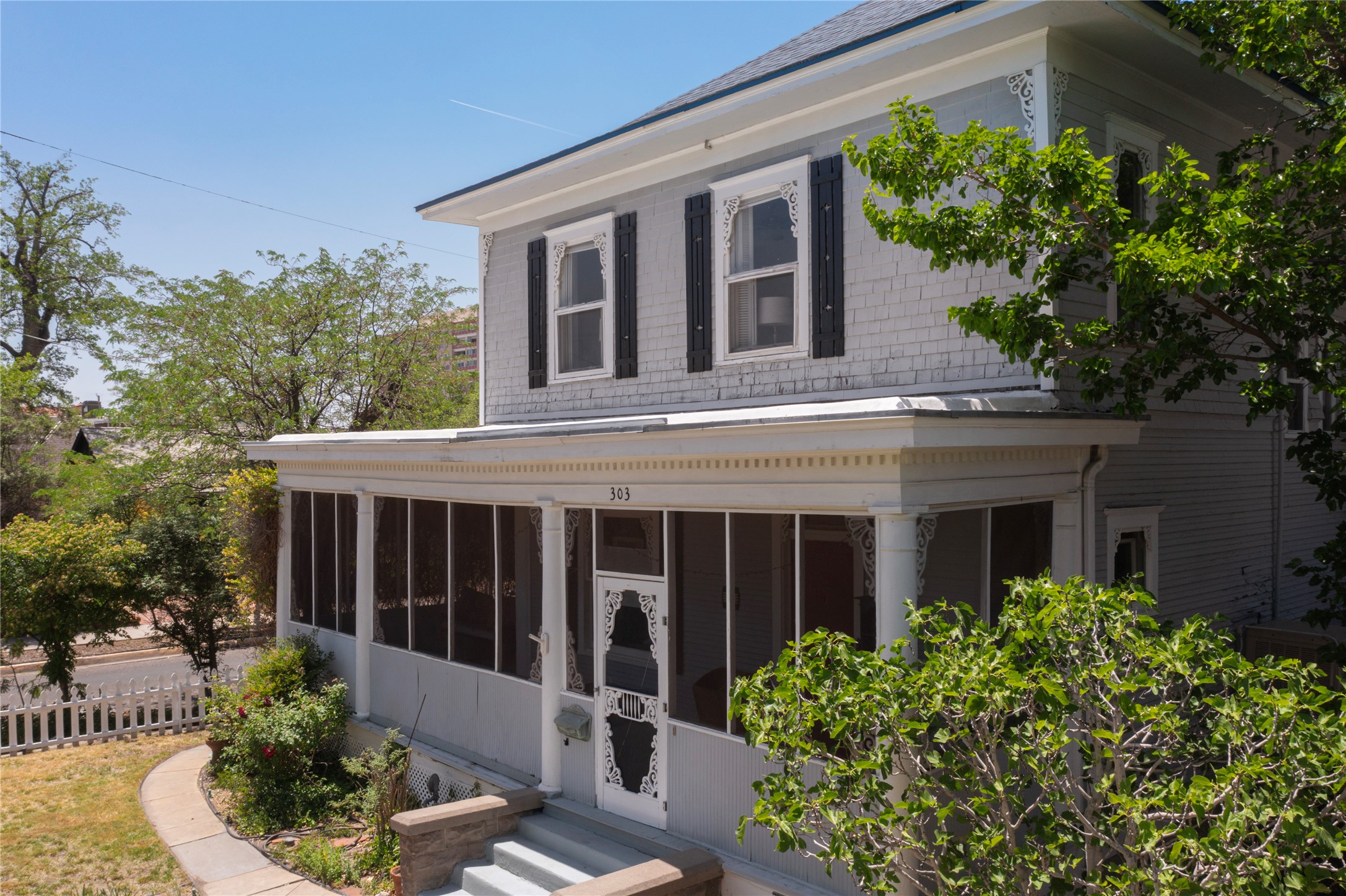 Welcome to the Robertson House - a distinctive and beautifully maintained monument of Albuquerque history, culture and architecture. Located at 303 12th Street NW in the heart of downtown's 4th Ward, this iconic residence offers a rare opportunity to own a historic property with notable income producing potential. Built with classic Greek Revival architectural details, the Robertson House showcases the elegance of its era with a wraparound veranda, vintage fireplace, columned foyer, formal dining room with pocket doors, butler's pantry, and formal and servants' stairways. Hardwood floors, high ceilings, millwork, dentils, crown moulding, built-ins and ornate cast iron radiators add to the home's sense of early 20th century style and regality. The .17 acre lot features a spacious fully fenced backyard with a treehouse built around a century old Cottonwood tree, a greenhouse for gardening, a hen house, and carport. Lush landscaping and flowers add to exterior curb appeal. Formerly a carriage house, the property now provides 2 studio rental units with street side parking and separate entryway, currently occupied and generating income. Whether you are an architecture or history lover or simply seeking a vintage Albuquerque lifestyle with charm and character, the Robertson House is a special chance to own a piece of Albuquerque's legacy in one of the city's most sought-after neighborhoods. Call to schedule a private tour.