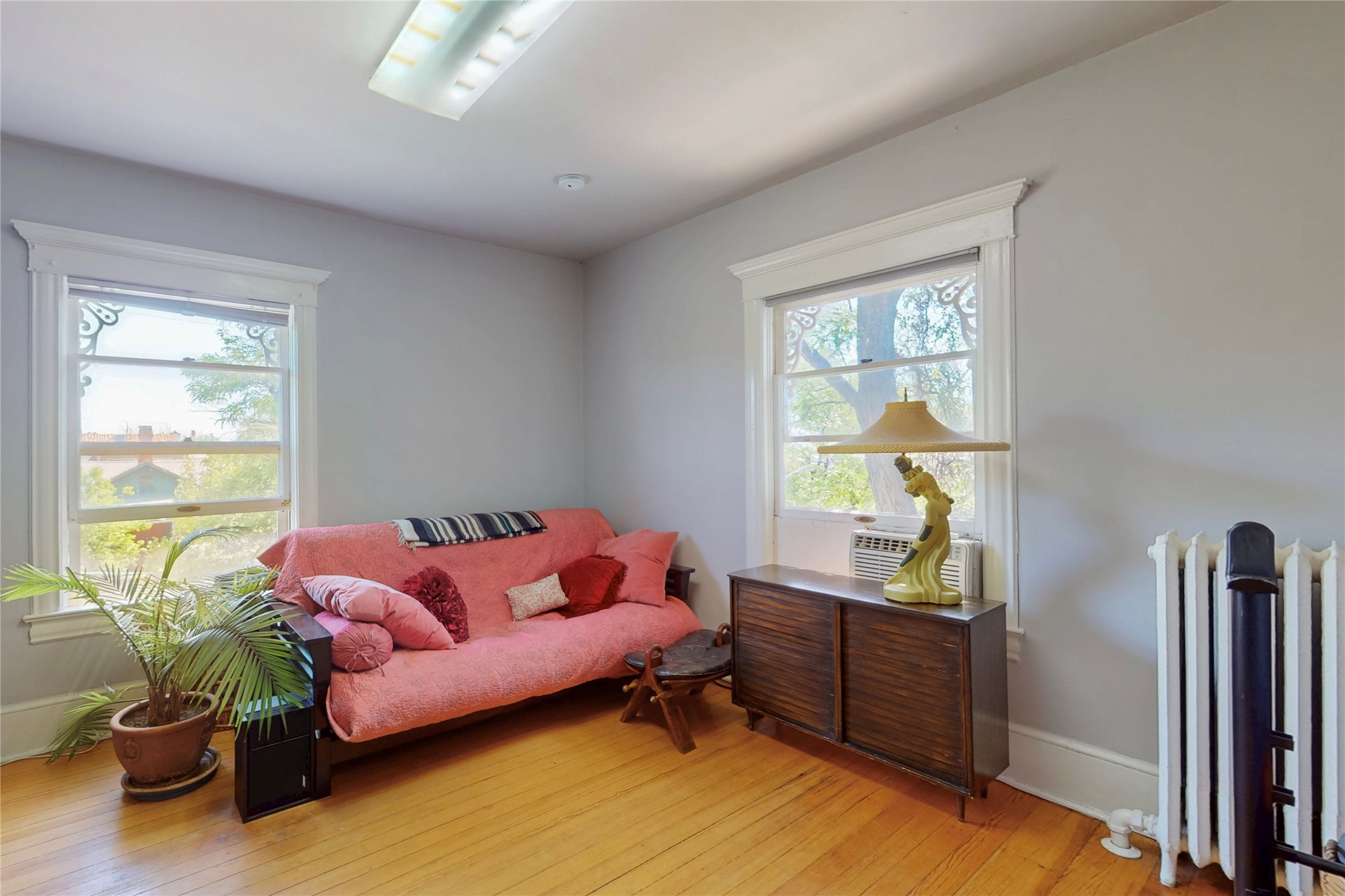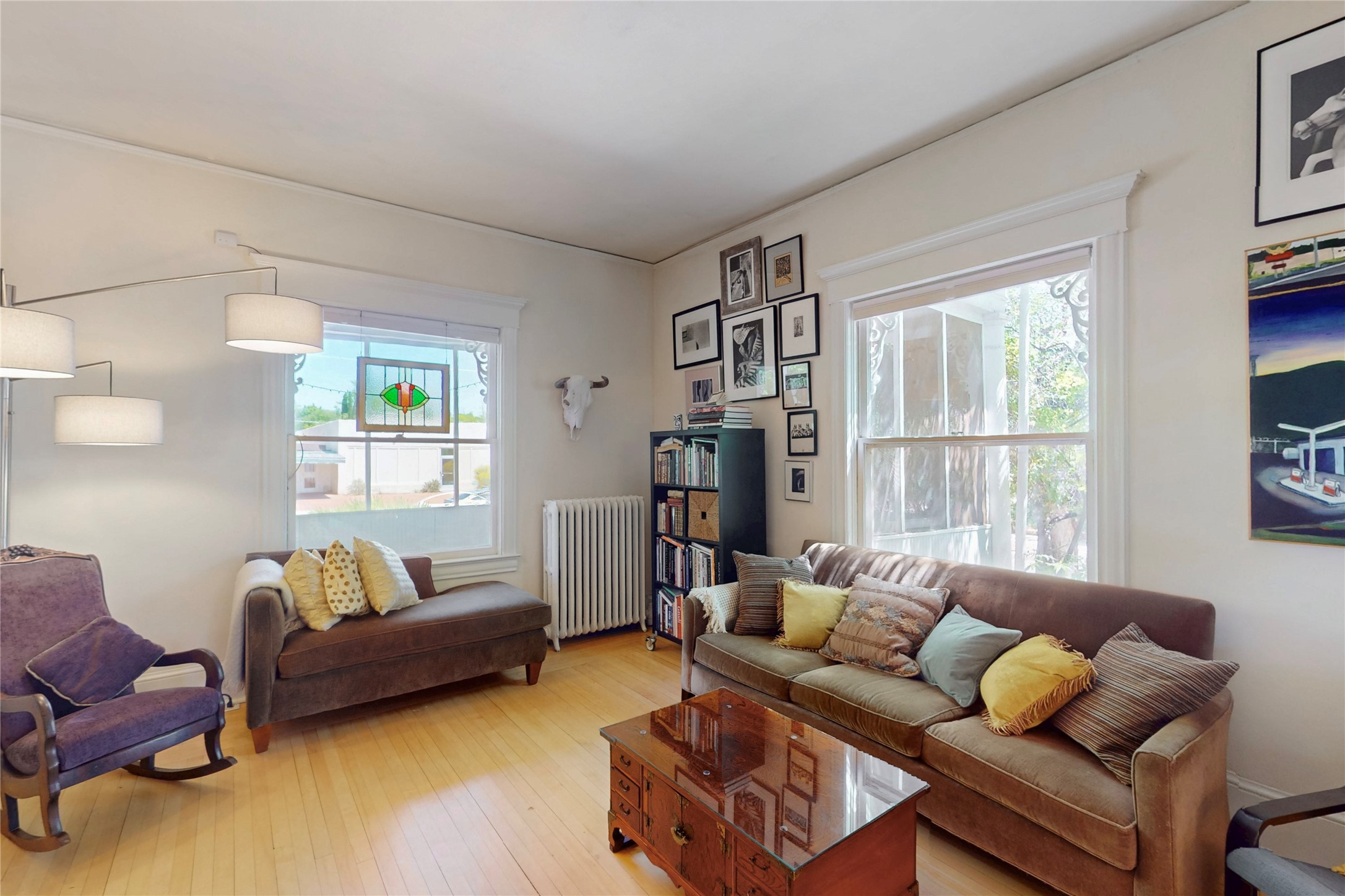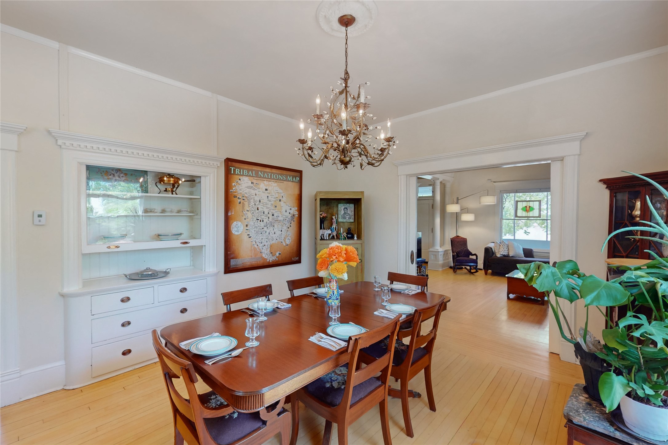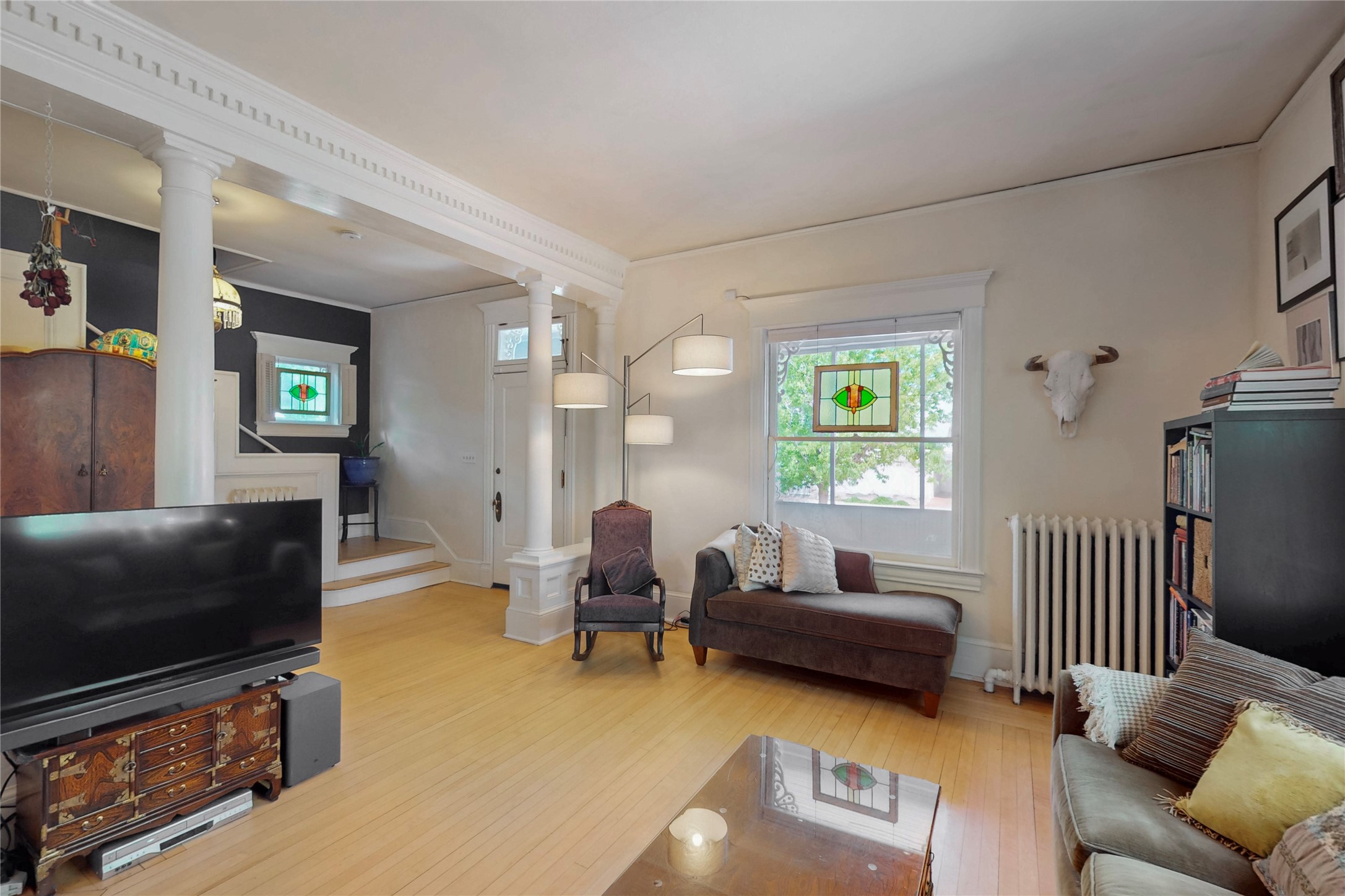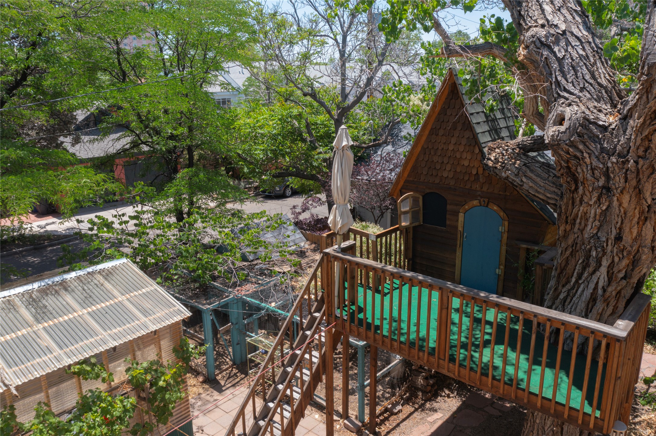 Welcome to the Robertson House - a distinctive and beautifully maintained monument of Albuquerque history, culture and architecture. Located at 303 12th Street NW in the heart of downtown's 4th Ward, this iconic residence offers a rare opportunity to own a historic property with notable income producing potential. Built with classic Greek Revival architectural details, the Robertson House showcases the elegance of its era with a wraparound veranda, vintage fireplace, columned foyer, formal dining room with pocket doors, butler's pantry, and formal and servants' stairways. Hardwood floors, high ceilings, millwork, dentils, crown moulding, built-ins and ornate cast iron radiators add to the home's sense of early 20th century style and regality. The .17 acre lot features a spacious fully fenced backyard with a treehouse built around a century old Cottonwood tree, a greenhouse for gardening, a hen house, and carport. Lush landscaping and flowers add to exterior curb appeal. Formerly a carriage house, the property now provides 2 studio rental units with street side parking and separate entryway, currently occupied and generating income. Whether you are an architecture or history lover or simply seeking a vintage Albuquerque lifestyle with charm and character, the Robertson House is a special chance to own a piece of Albuquerque's legacy in one of the city's most sought-after neighborhoods. Call to schedule a private tour.