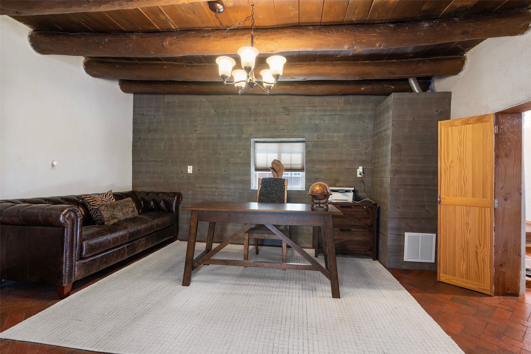 Step into a living conversation between past and present at 2 Short Road, an exceptional historic adobe in the heart of Nambe. Originally constructed in 1904, this soulful home honors its origins while embracing the artistry and evolution that make Northern New Mexico so enduringly compelling.Spanning 3,223 square feet, the residence unfolds with timeless character--thick adobe walls, generous proportions, and a sense of permanence that only history can provide--balanced by the openness and creative spirit that continue to shape the home today. Set on nearly half an acre (.479 acres), the property offers a tranquil, private setting with room to breathe, gather, and reflect.One of the home's most remarkable features is the hand-painted mural on the back portal, a powerful bridge between generations. Painted by the Seller's grandfather, the mural is both a personal legacy and a recognized work of regional significance, featured in Adobe! Homes and Interiors of Taos, Santa Fe and the Southwest by Sandra and Laurel Seth. It beautifully weaves cultural history with artistic expression, grounding the home in its past while speaking vibrantly to the present. Easy access to Los Alamos 19 miles.