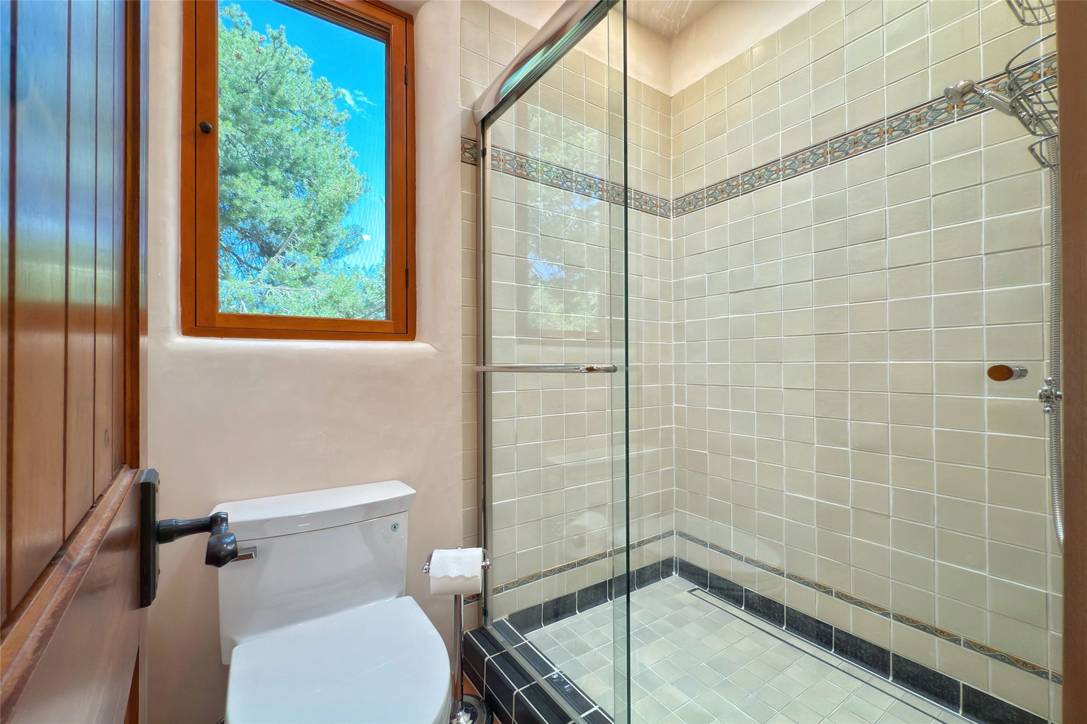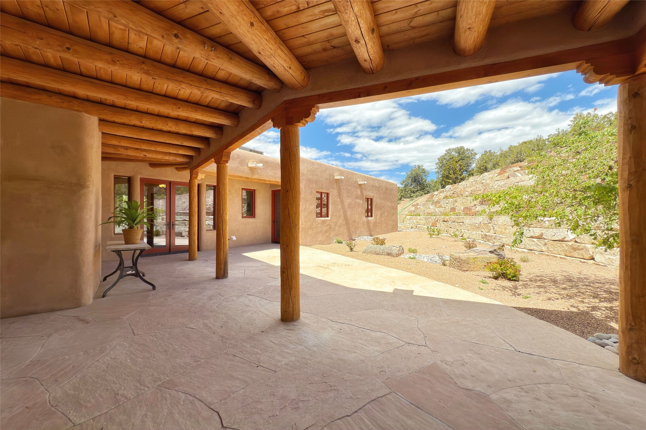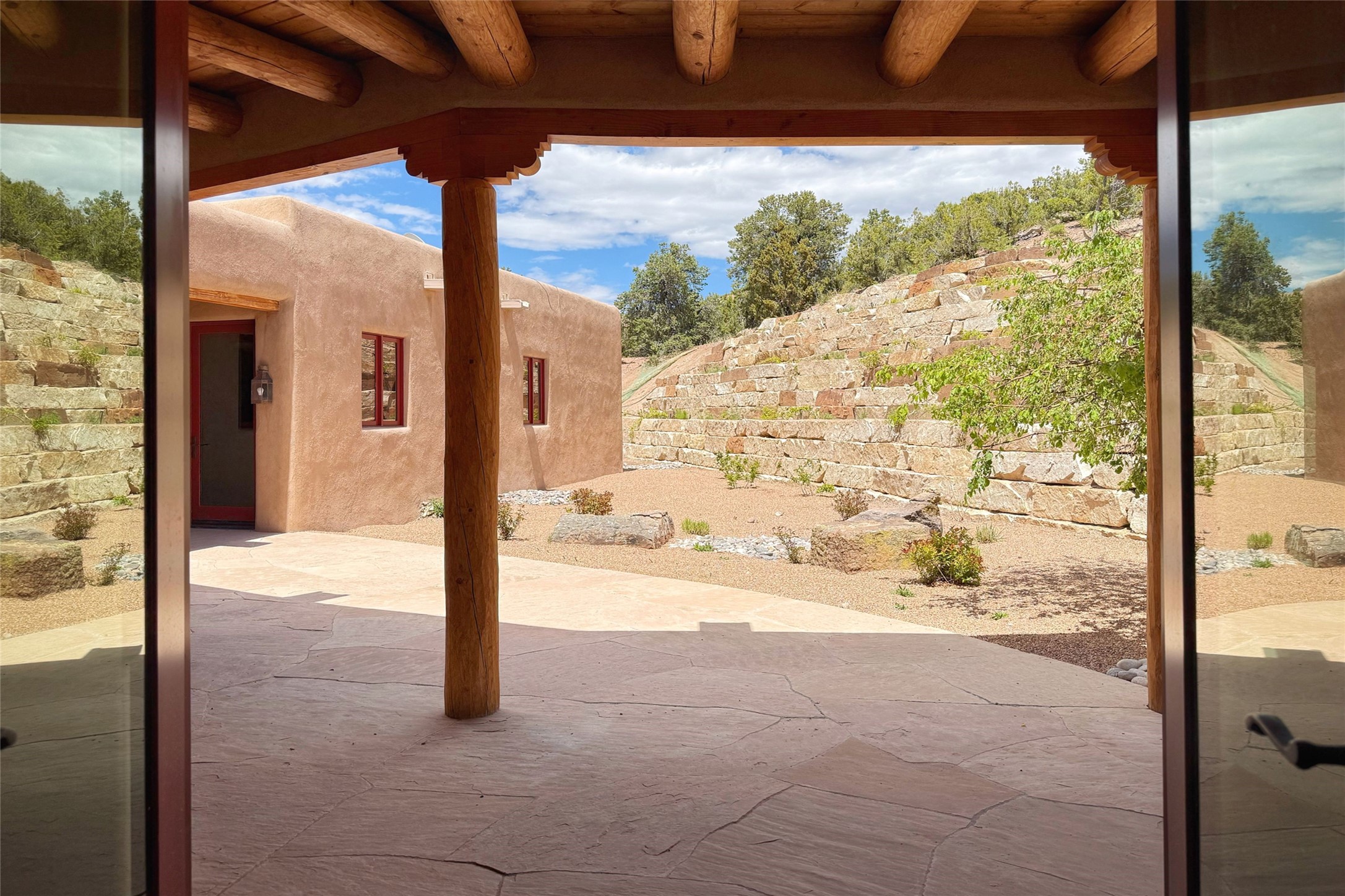 Southwest Elegance Meets Modern Luxury - Tesuque Estate Near Santa FeExperience timeless charm and refined upgrades in this exceptional Tesuque estate just 15 minutes from downtown Santa Fe. The property includes a beautifully renovated main house, a private guesthouse, and a versatile third structure ideal as a studio, barn, or additional guest quarters.The main residence showcases superior craftsmanship with diamond plaster walls, Loewen windows and doors, and Saltillo tile floors. The chef's kitchen features SubZero and Wolf appliances, an Asko dishwasher, an imported porcelain farmhouse sink, and striking Taj Mahal quartz countertops. The great room impresses with soaring ceilings, dual chandeliers, a wood-burning fireplace, and expansive western views, flowing onto two covered flagstone patios--perfect for indoor-outdoor living.The primary suite offers a luxurious retreat with its own fireplace, a spa-like bath with soaking tub, walk-in shower, dual pedestal sinks, and an adjacent study with fireplace and patio access. Two additional bedrooms complete the home--one with ensuite bath, the other with access to a nearby half bath. Comforts include radiant floor heating and central A/C.The guesthouse offers two bedrooms and two baths, with upgrades mirroring the main home: diamond plaster walls, quartz countertops, radiant heating, central A/C, and Loewen windows. Its primary suite features a kiva fireplace, soaking tub, and walk-in shower, while the second bedroom enjoys tranquil western views. A cozy living/dining area with kiva fireplace and a private flagstone patio complete the space.Set on a beautifully landscaped lot with mature junipers, fenced areas, and irrigated gardens, this private estate offers peace and elegance just minutes from the heart of Santa Fe.