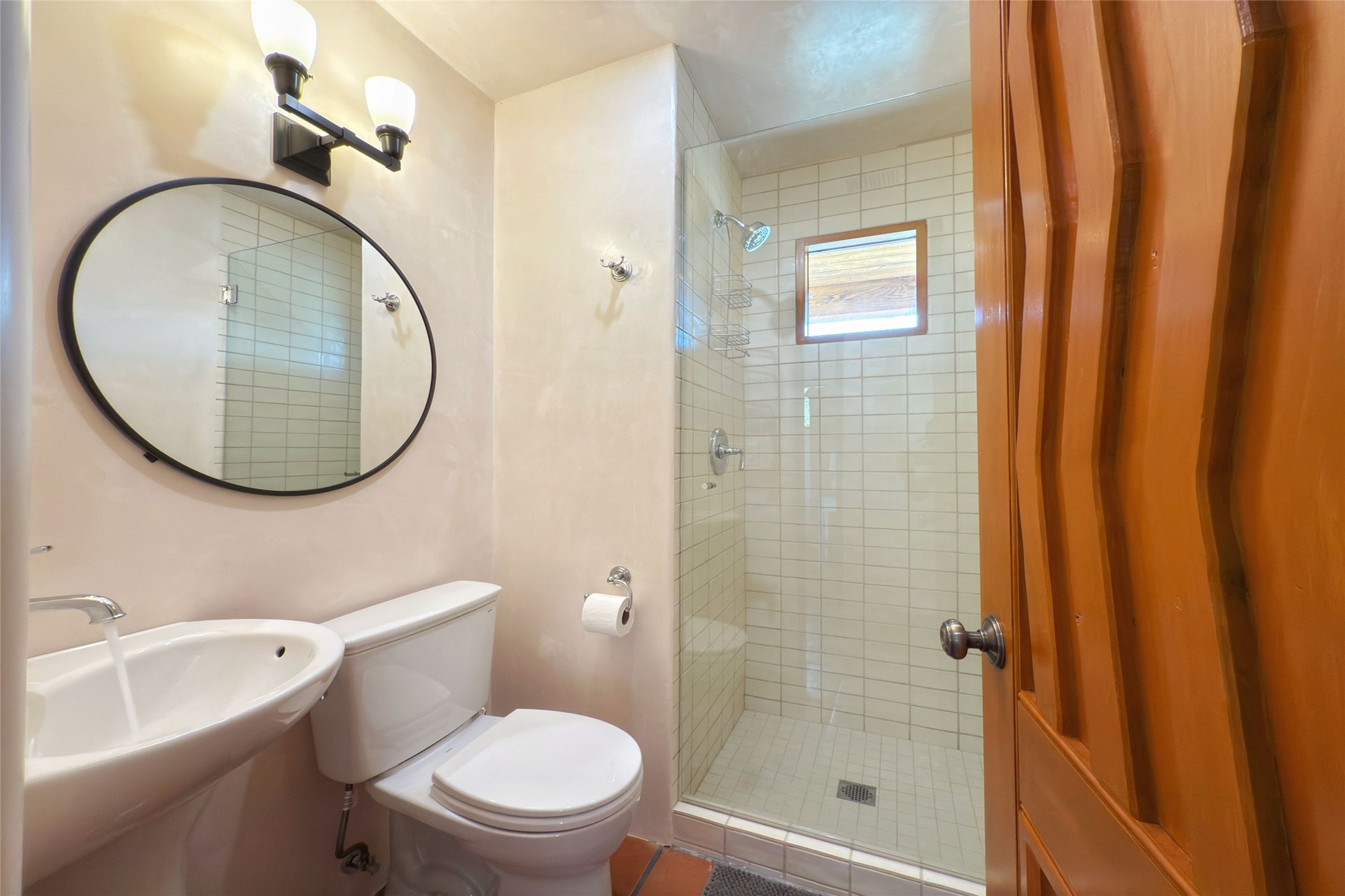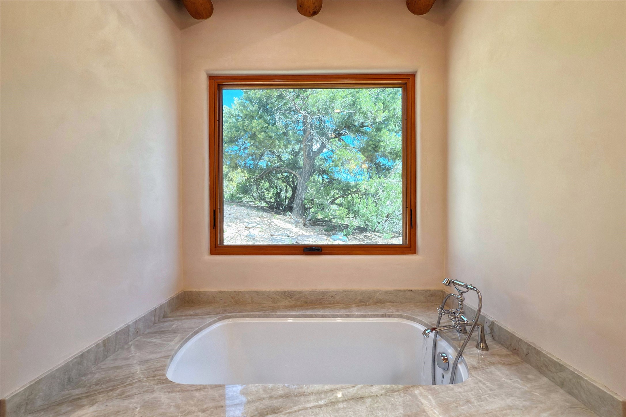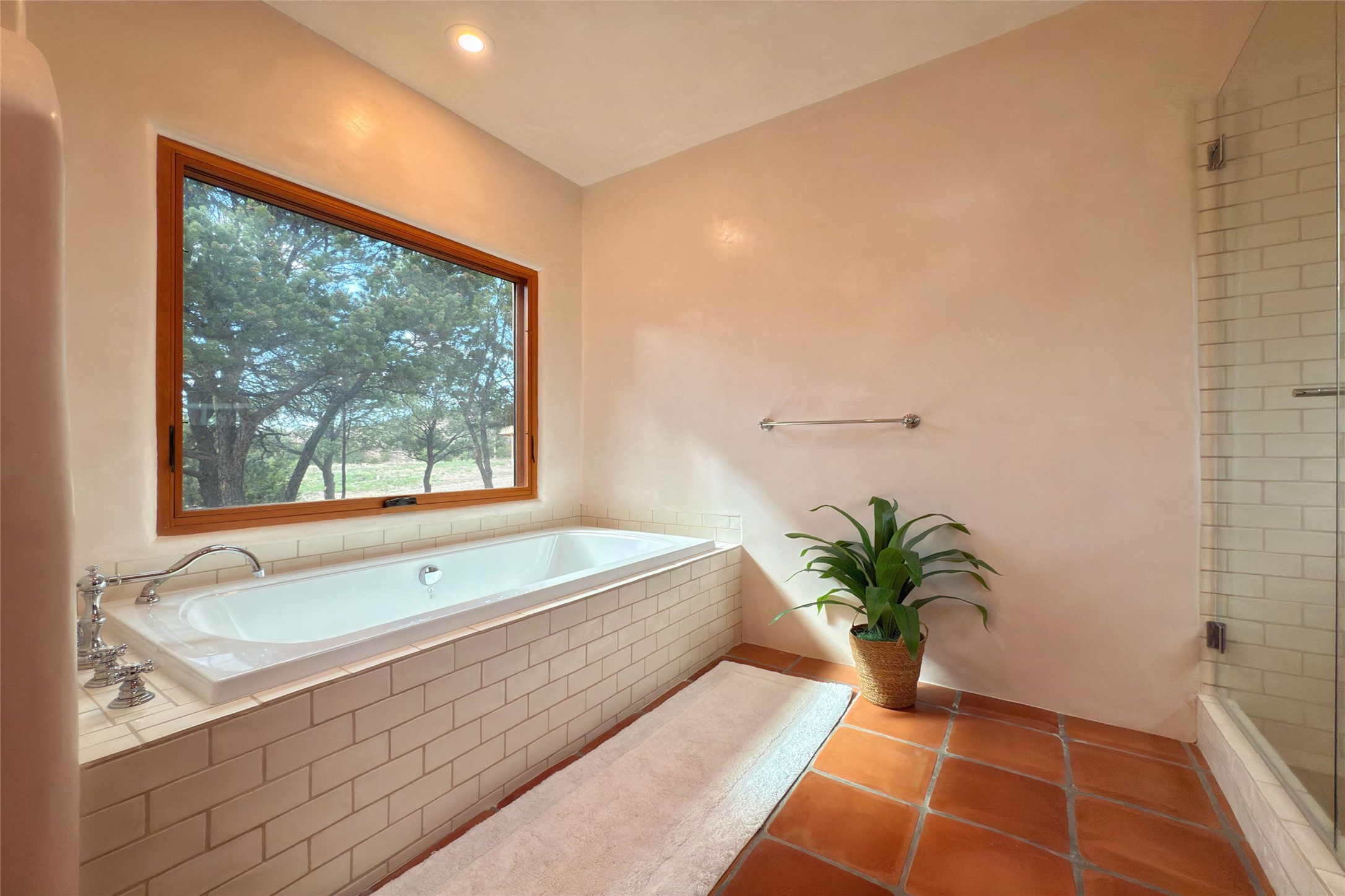 Southwest Elegance Meets Modern Luxury - Tesuque Estate Near Santa FeExperience timeless charm and refined upgrades in this exceptional Tesuque estate just 15 minutes from downtown Santa Fe. The property includes a beautifully renovated main house, a private guesthouse, and a versatile third structure ideal as a studio, barn, or additional guest quarters.The main residence showcases superior craftsmanship with diamond plaster walls, Loewen windows and doors, and Saltillo tile floors. The chef's kitchen features SubZero and Wolf appliances, an Asko dishwasher, an imported porcelain farmhouse sink, and striking Taj Mahal quartz countertops. The great room impresses with soaring ceilings, dual chandeliers, a wood-burning fireplace, and expansive western views, flowing onto two covered flagstone patios--perfect for indoor-outdoor living.The primary suite offers a luxurious retreat with its own fireplace, a spa-like bath with soaking tub, walk-in shower, dual pedestal sinks, and an adjacent study with fireplace and patio access. Two additional bedrooms complete the home--one with ensuite bath, the other with access to a nearby half bath. Comforts include radiant floor heating and central A/C.The guesthouse offers two bedrooms and two baths, with upgrades mirroring the main home: diamond plaster walls, quartz countertops, radiant heating, central A/C, and Loewen windows. Its primary suite features a kiva fireplace, soaking tub, and walk-in shower, while the second bedroom enjoys tranquil western views. A cozy living/dining area with kiva fireplace and a private flagstone patio complete the space.Set on a beautifully landscaped lot with mature junipers, fenced areas, and irrigated gardens, this private estate offers peace and elegance just minutes from the heart of Santa Fe.
