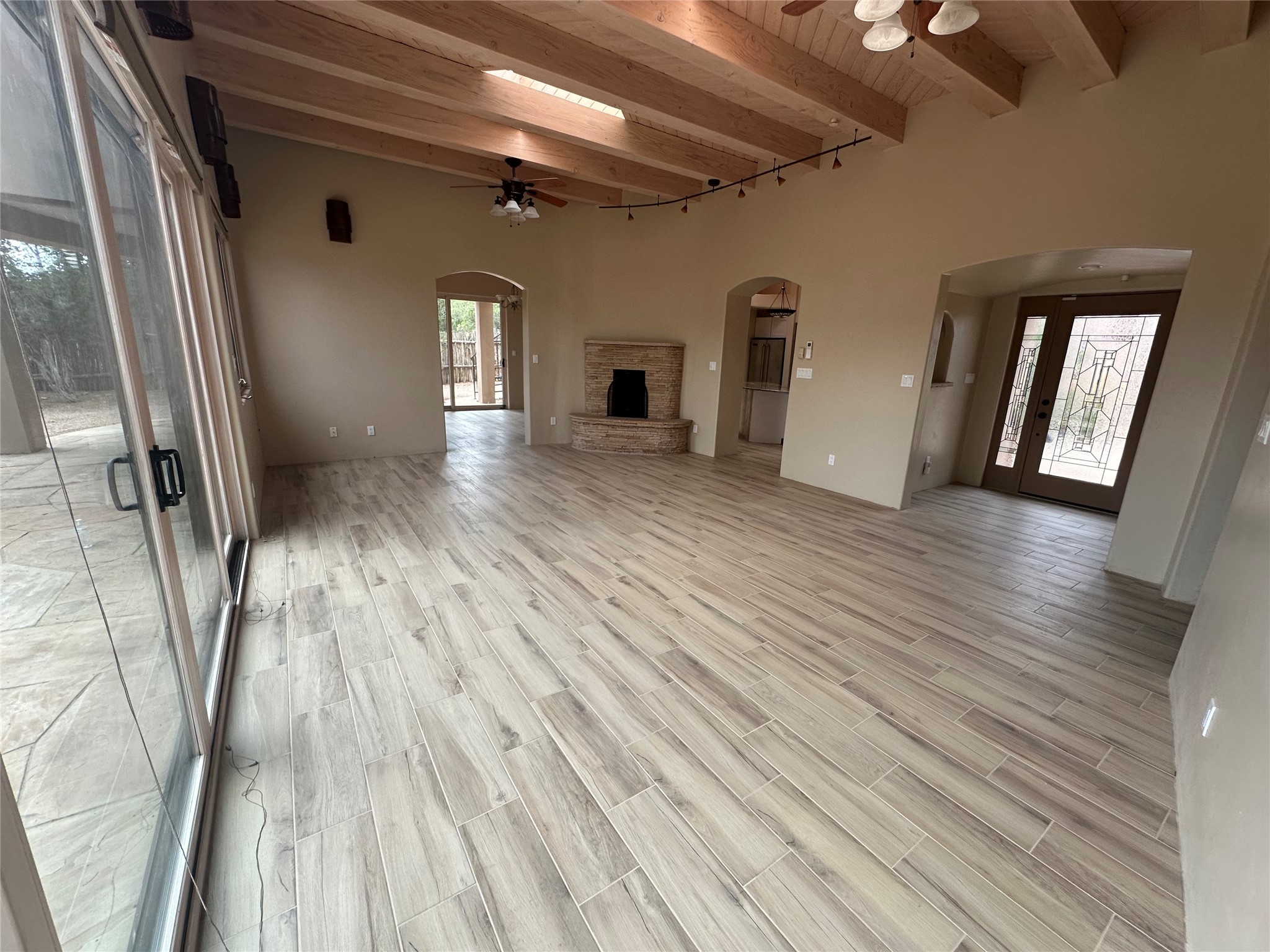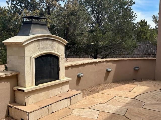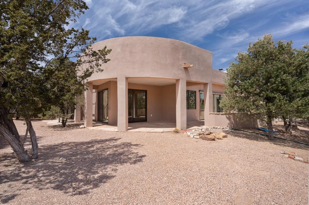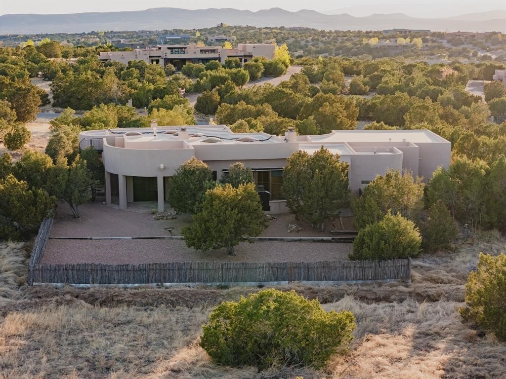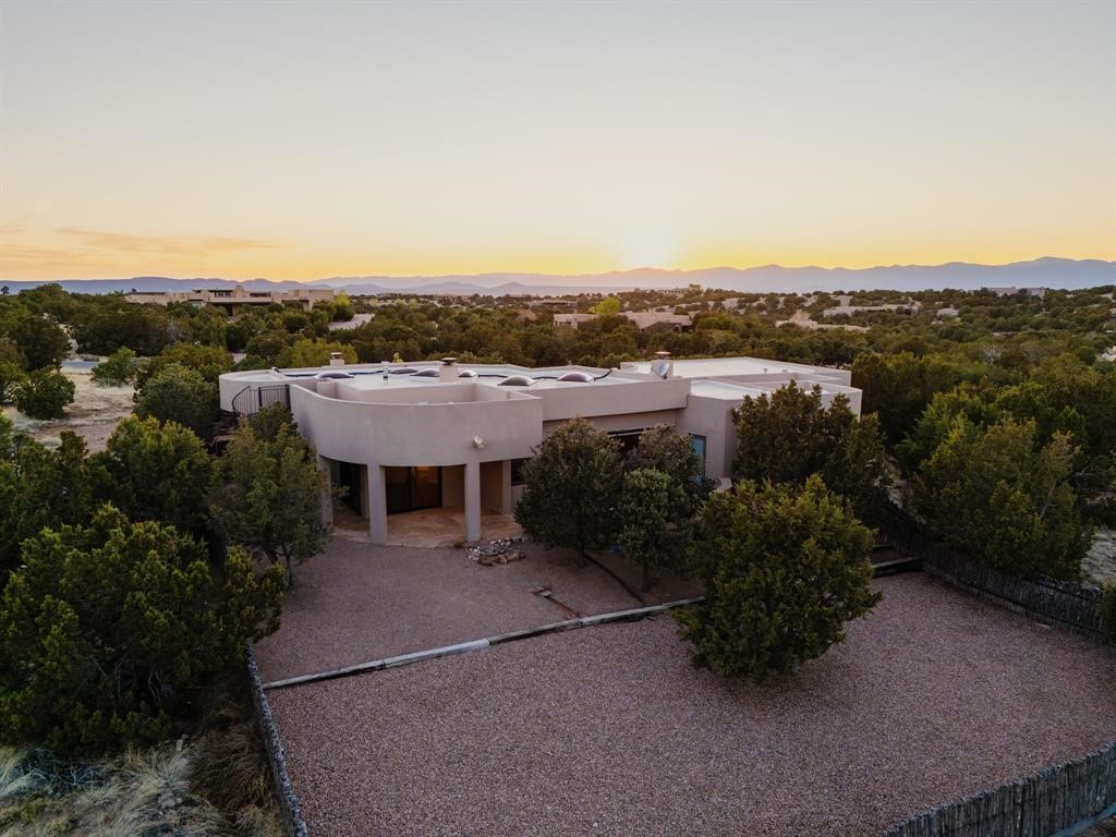 Luxury living in Sundance subdivision! This is where elegance meets natural beauty. This home is stunning with custom design and high-end finishes, an abundance of fireplaces, uniquely designed wood ceiling features and delightful nichos. You will find lovely outdoor portals, and an outdoor fireplace with lots of privacy to relax in a serene environment. Spiral staircase to the rooftop allows you to enjoy captivating views of the Sangre and Jemez. The gourmet kitchen features custom cabinetry, a high-end Viking stove, granite island that any gourmet cook would enjoy. 3 Bedrooms/3 1/2 bathrooms along with beautiful light filled living room, Formal Dining room, separate office as well as a guest wing with guest bedrooms with en-suite baths and their own private family room/media room. Enjoy the hiking path located directly behind the fenced-in back yard which leads to miles of La Tierrez hiking and biking. Your "Home Sweet Home" is calling your name.