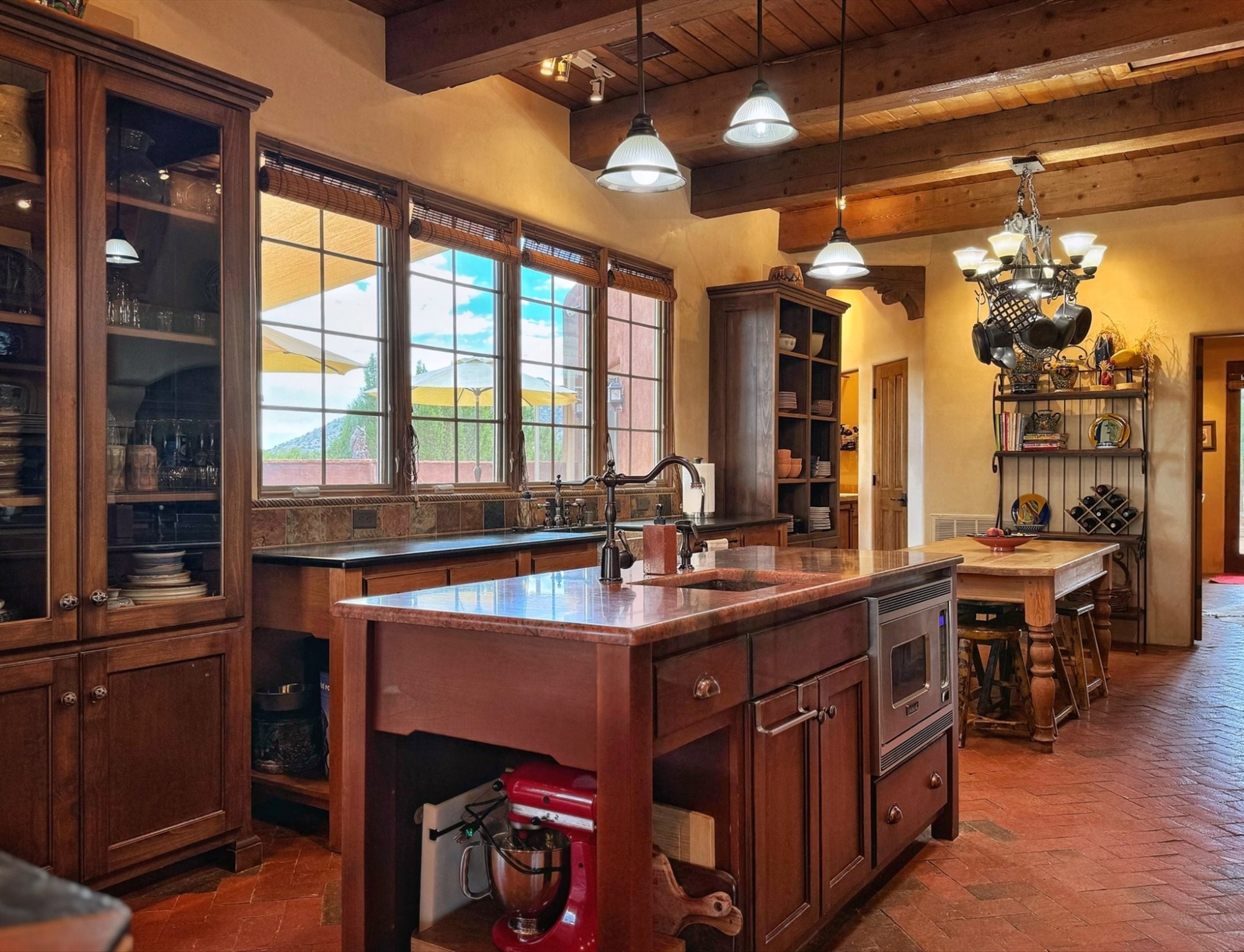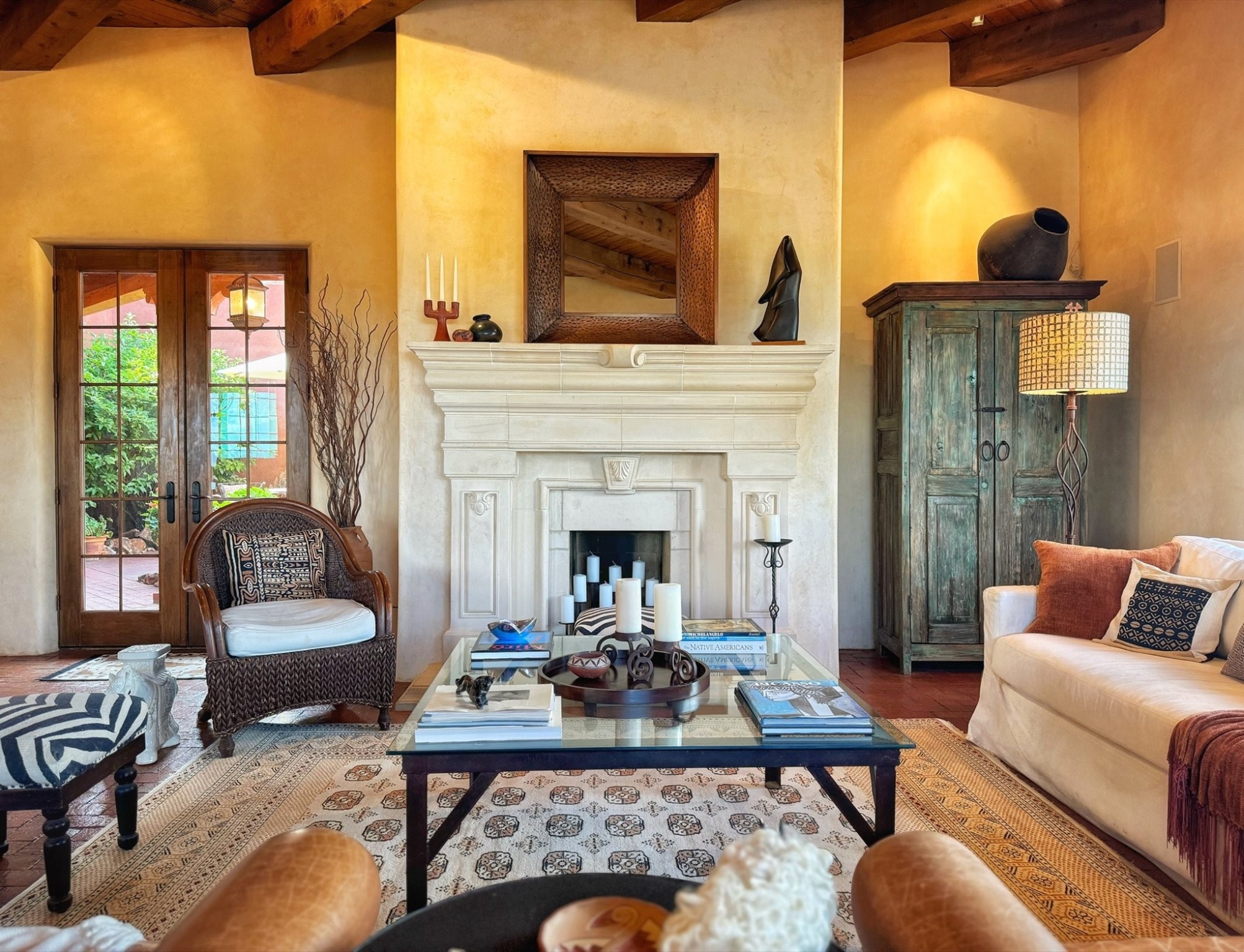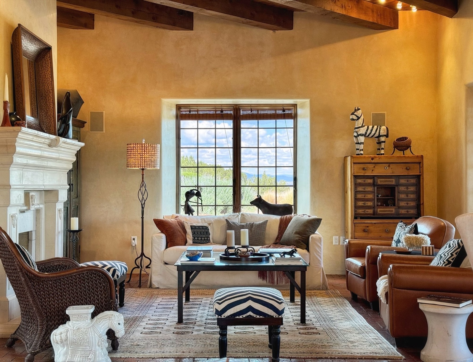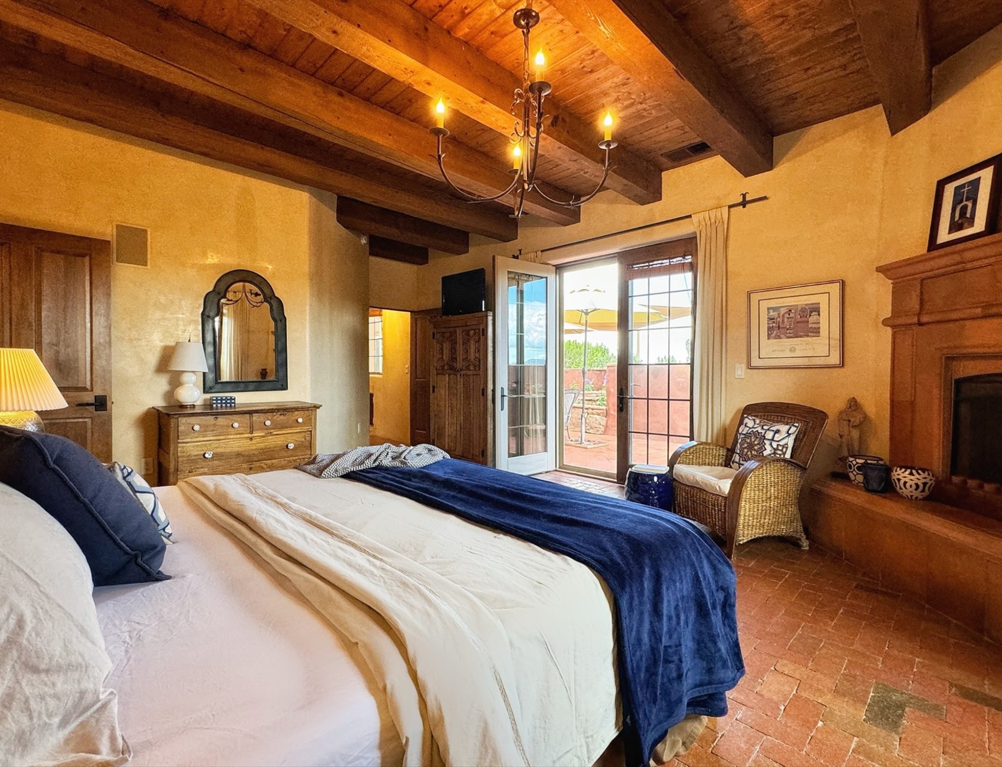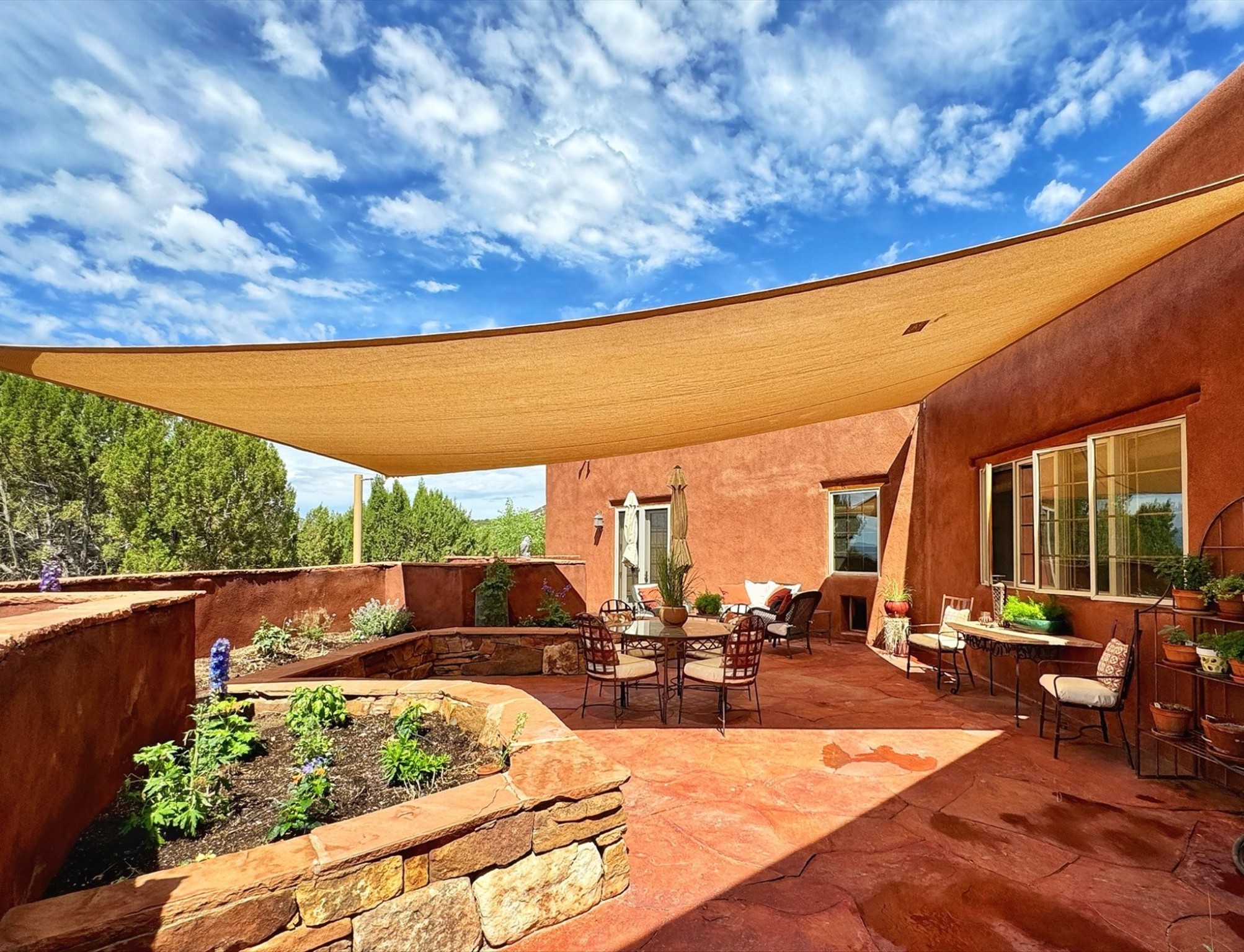 Luxurious single-level custom-built home in Silver Hills Ranch, just 20 mins from Santa Fe & 50 mins from Albuquerque International Sunport. Set on 14.37 acres adjacent to BLM and county open space, the property offers ample room to build equestrian facilities and accommodates up to 7 horses. The 3,360 sq ft main home--recently re-stuccoed--is paired with an 820 sq ft adobe casita--both enjoying 360 panoramic views of the Galisteo Basin, Cerrillos Hills, Sangre de Cristo, Sandia & Ortiz Mountains. The main home features 3 bedrooms, office/library, & 3 bathrooms (2 full, 1- 3/4), and welcomes you through a spacious courtyard with antique mesquite doors. Inside, the foyer features an exposed brick accent wall that adds character and warmth. The great room boasts soaring ceilings with wood beams & tongue-and-groove planks. A chef's kitchen offers Viking Pro appliances, alder cabinetry, honed granite & slate countertops, dual islands, custom hood, & two sinks (granite farm & copper). The primary suite includes a spacious walk-in closet and a luxurious full bathroom with dual marble sinks. Additional features include a library/flex room, media room, & 3 wood-burning fireplaces w/gas starters. Elegant finishes include herringbone brick & fossilized stone floors, hand-troweled plaster walls & Pella Architect Series windows. Seven sets of elegant 8-foot Pella French doors open effortlessly to five serene patios and courtyards, providing expansive outdoor living spaces perfect for entertaining, relaxing, and enjoying breathtaking panoramic views. Modern comforts: central A/C, in-floor radiant & forced-air heating, built-in fridge & whole-home stereo. Eco-friendly features include 24 solar panels, 500-gal propane tank, & 3 rainwater-harvesting cisterns. The casita offers stylish modern finishes & a bath--ideal for guests. Located in a desirable neighborhood w/low HOA fees & sensible CC&Rs. A rare blend of luxury, functionality & sustainability in an unmatched natural setting.