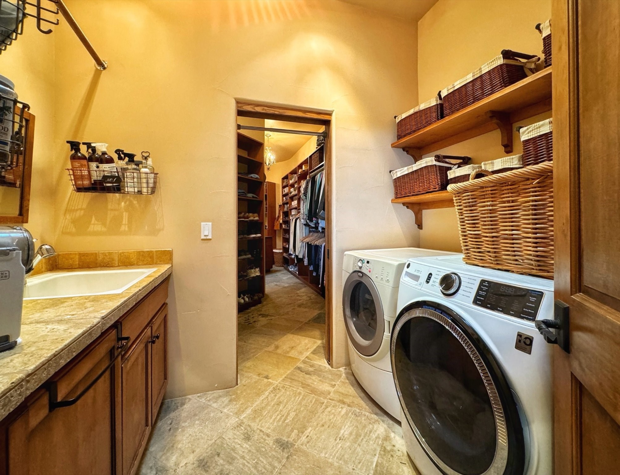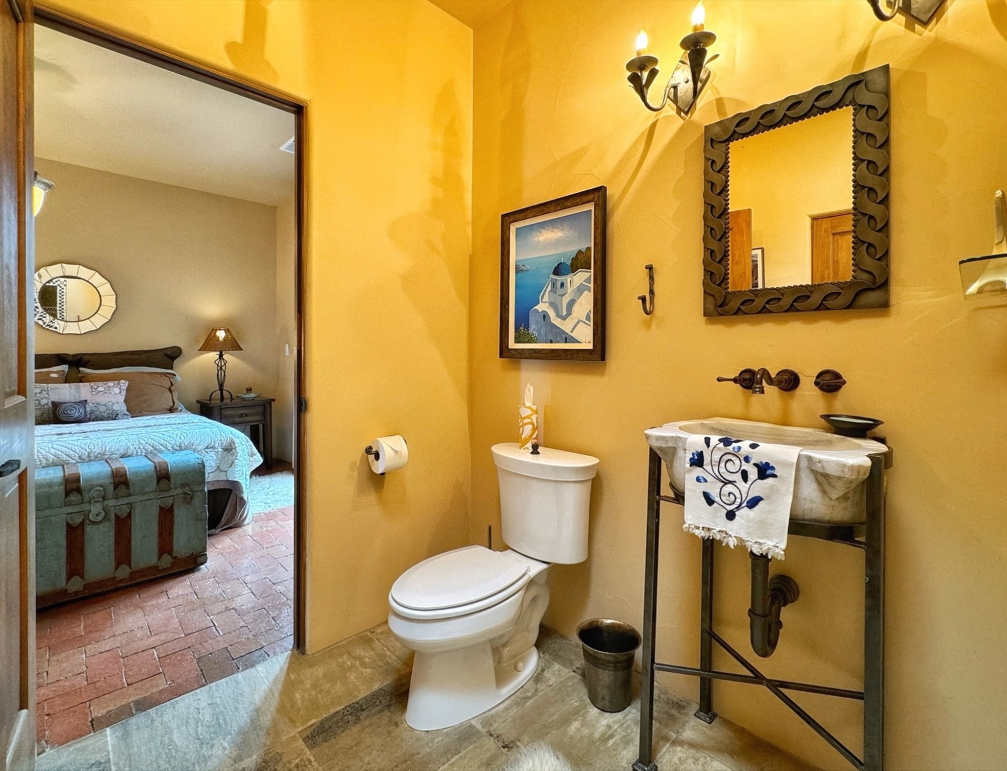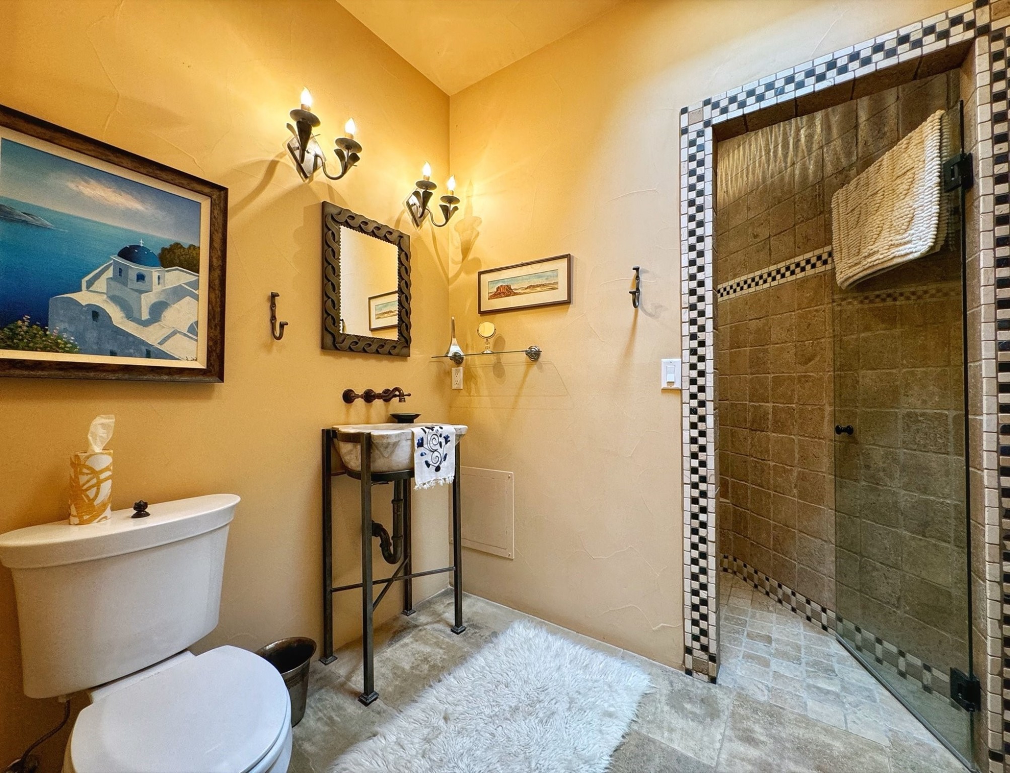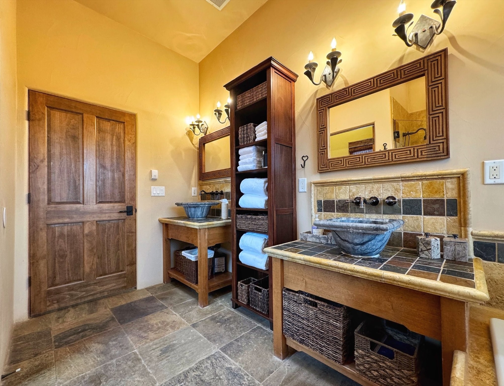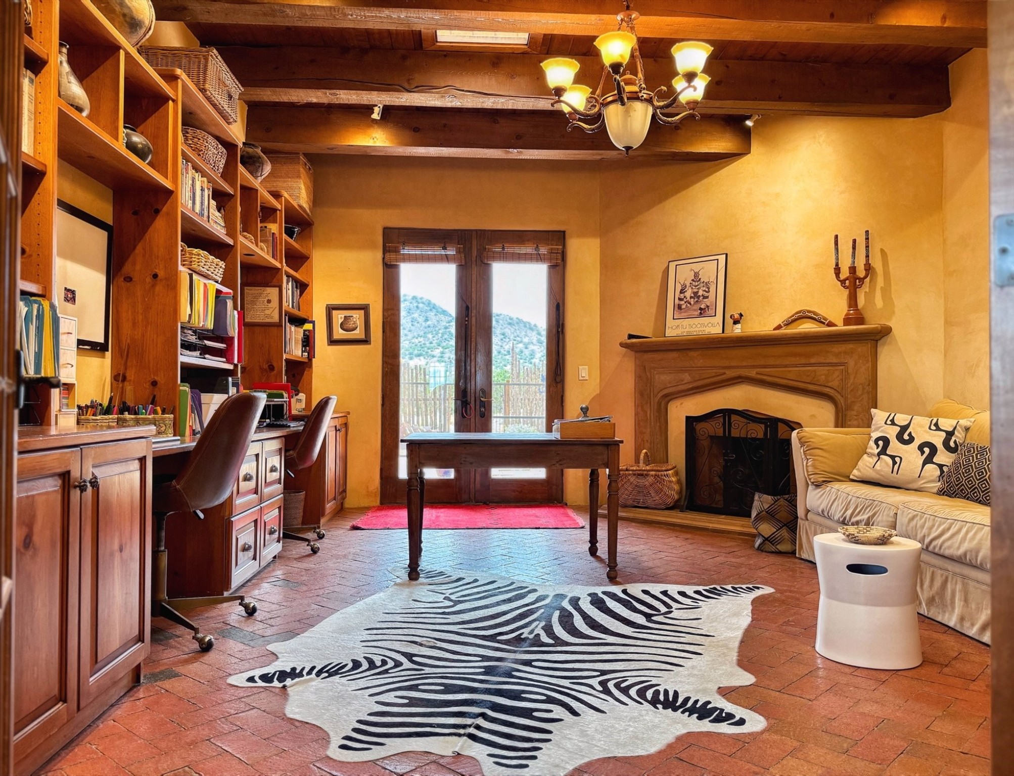Luxurious single-level custom-built home in Silver Hills Ranch, just 20 mins from Santa Fe & 50 mins from Albuquerque International Sunport. Set on 14.37 acres adjacent to BLM and county open space, the property offers ample room to build equestrian facilities and accommodates up to 7 horses. The 3,360 sq ft main home--recently re-stuccoed--is paired with an 820 sq ft adobe casita--both enjoying 360 panoramic views of the Galisteo Basin, Cerrillos Hills, Sangre de Cristo, Sandia & Ortiz Mountains. The main home features 3 bedrooms, office/library, & 3 bathrooms (2 full, 1- 3/4), and welcomes you through a spacious courtyard with antique mesquite doors. Inside, the foyer features an exposed brick accent wall that adds character and warmth. The great room boasts soaring ceilings with wood beams & tongue-and-groove planks. A chef's kitchen offers Viking Pro appliances, alder cabinetry, honed granite & slate countertops, dual islands, custom hood, & two sinks (granite farm & copper). The primary suite includes a spacious walk-in closet and a luxurious full bathroom with dual marble sinks. Additional features include a library/flex room, media room, & 3 wood-burning fireplaces w/gas starters. Elegant finishes include herringbone brick & fossilized stone floors, hand-troweled plaster walls & Pella Architect Series windows. Seven sets of elegant 8-foot Pella French doors open effortlessly to five serene patios and courtyards, providing expansive outdoor living spaces perfect for entertaining, relaxing, and enjoying breathtaking panoramic views. Modern comforts: central A/C, in-floor radiant & forced-air heating, built-in fridge & whole-home stereo. Eco-friendly features include 24 solar panels, 500-gal propane tank, & 3 rainwater-harvesting cisterns. The casita offers stylish modern finishes & a bath--ideal for guests. Located in a desirable neighborhood w/low HOA fees & sensible CC&Rs. A rare blend of luxury, functionality & sustainability in an unmatched natural setting.