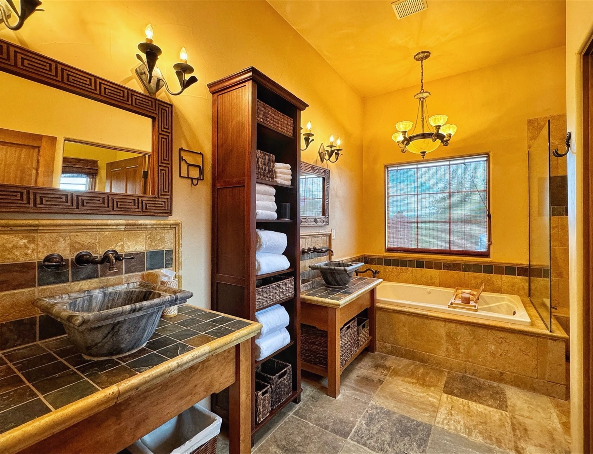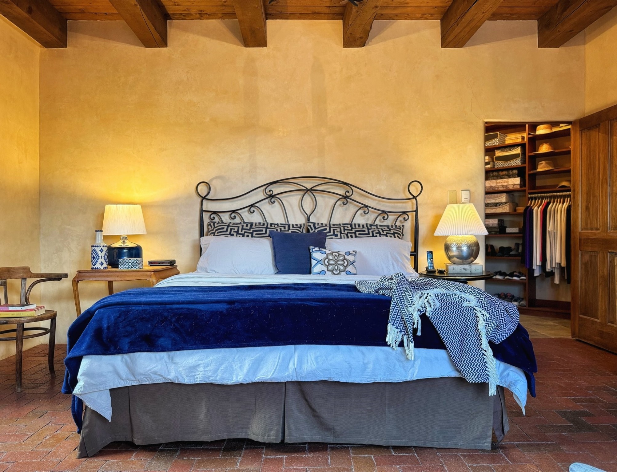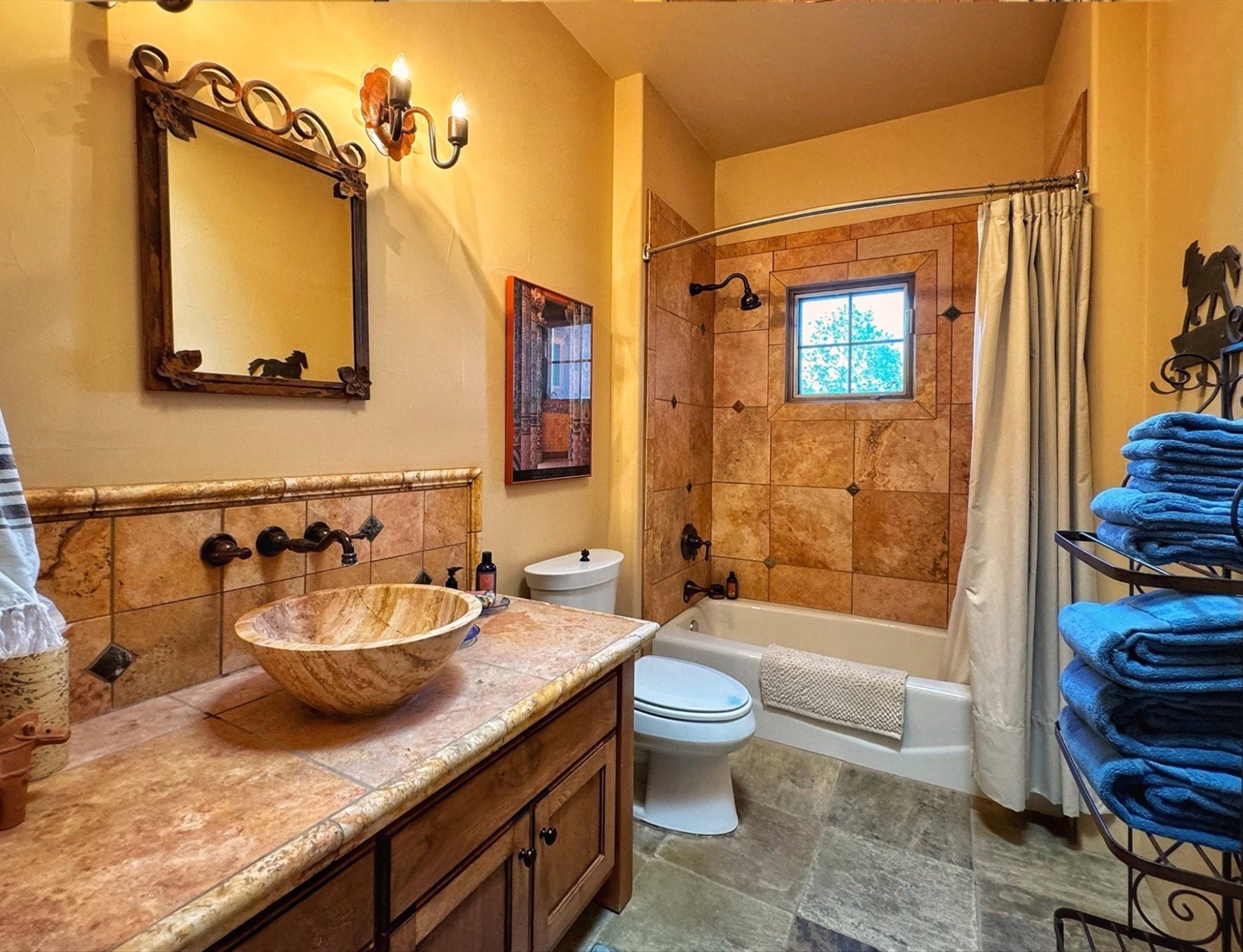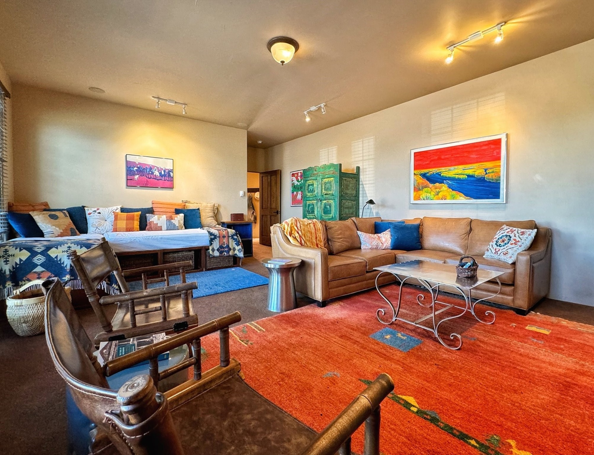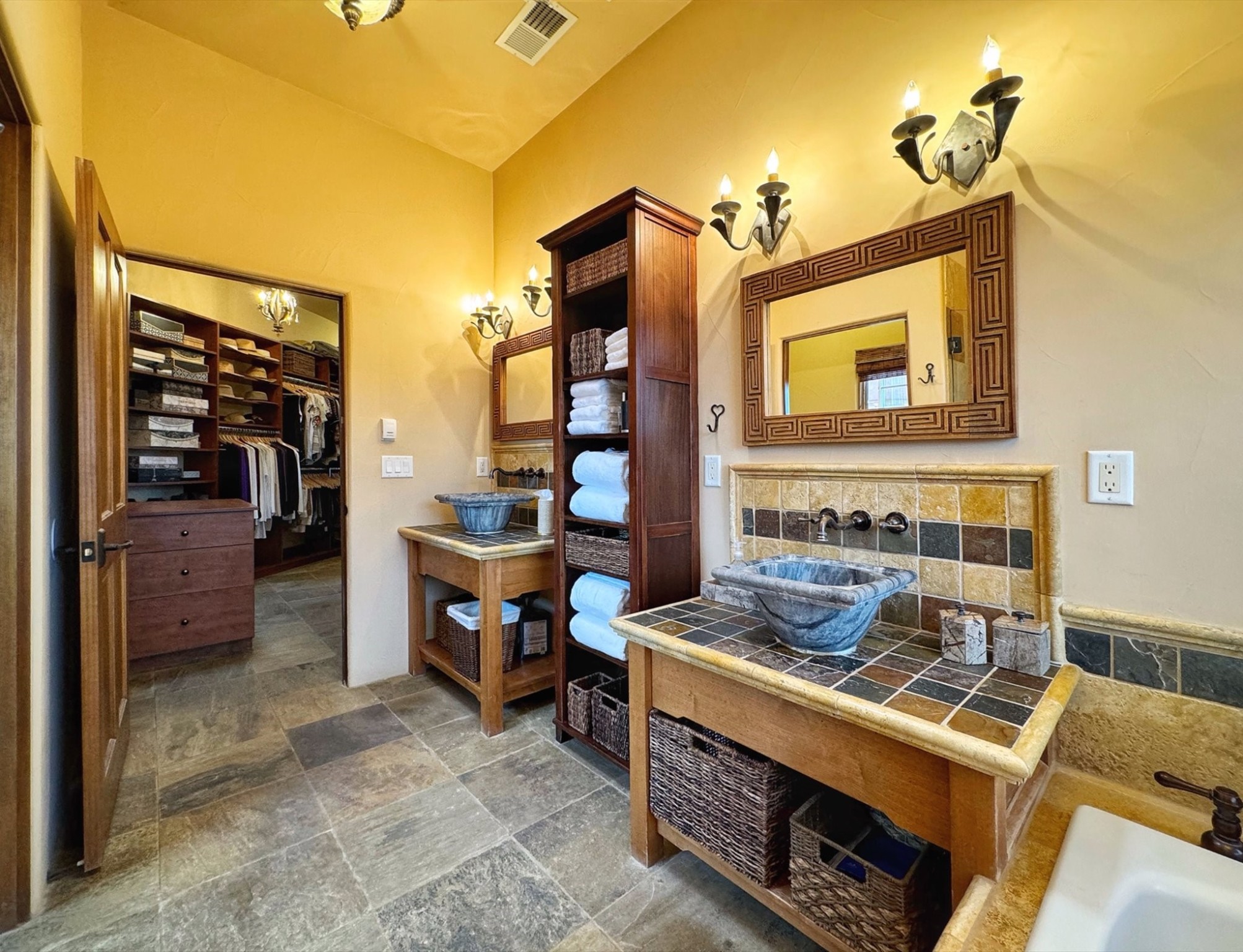 Luxurious single-level custom-built home in Silver Hills Ranch, just 20 mins from Santa Fe & 50 mins from Albuquerque International Sunport. Set on 14.37 acres adjacent to BLM and county open space, the property offers ample room to build equestrian facilities and accommodates up to 7 horses. The 3,360 sq ft main home--recently re-stuccoed--is paired with an 820 sq ft adobe casita--both enjoying 360 panoramic views of the Galisteo Basin, Cerrillos Hills, Sangre de Cristo, Sandia & Ortiz Mountains. The main home features 3 bedrooms, office/library, & 3 bathrooms (2 full, 1- 3/4), and welcomes you through a spacious courtyard with antique mesquite doors. Inside, the foyer features an exposed brick accent wall that adds character and warmth. The great room boasts soaring ceilings with wood beams & tongue-and-groove planks. A chef's kitchen offers Viking Pro appliances, alder cabinetry, honed granite & slate countertops, dual islands, custom hood, & two sinks (granite farm & copper). The primary suite includes a spacious walk-in closet and a luxurious full bathroom with dual marble sinks. Additional features include a library/flex room, media room, & 3 wood-burning fireplaces w/gas starters. Elegant finishes include herringbone brick & fossilized stone floors, hand-troweled plaster walls & Pella Architect Series windows. Seven sets of elegant 8-foot Pella French doors open effortlessly to five serene patios and courtyards, providing expansive outdoor living spaces perfect for entertaining, relaxing, and enjoying breathtaking panoramic views. Modern comforts: central A/C, in-floor radiant & forced-air heating, built-in fridge & whole-home stereo. Eco-friendly features include 24 solar panels, 500-gal propane tank, & 3 rainwater-harvesting cisterns. The casita offers stylish modern finishes & a bath--ideal for guests. Located in a desirable neighborhood w/low HOA fees & sensible CC&Rs. A rare blend of luxury, functionality & sustainability in an unmatched natural setting.