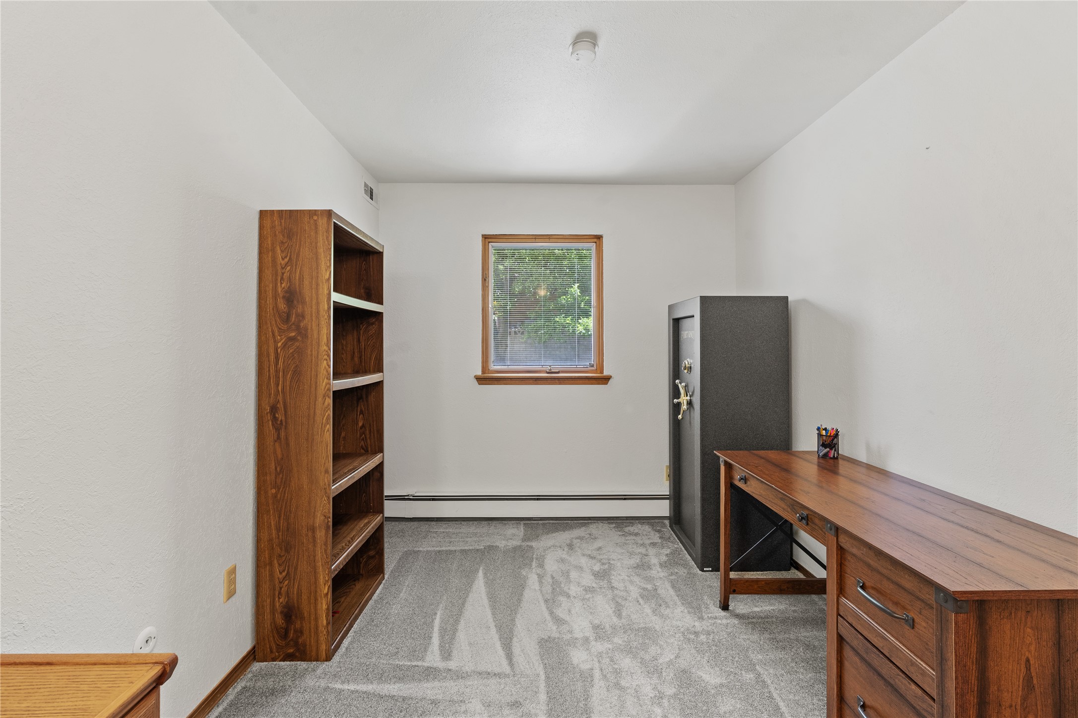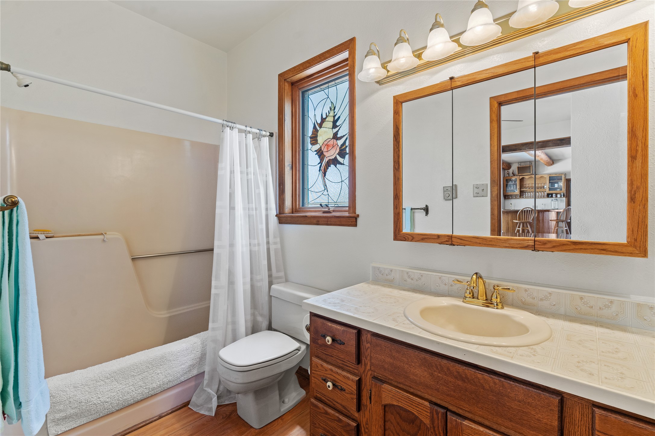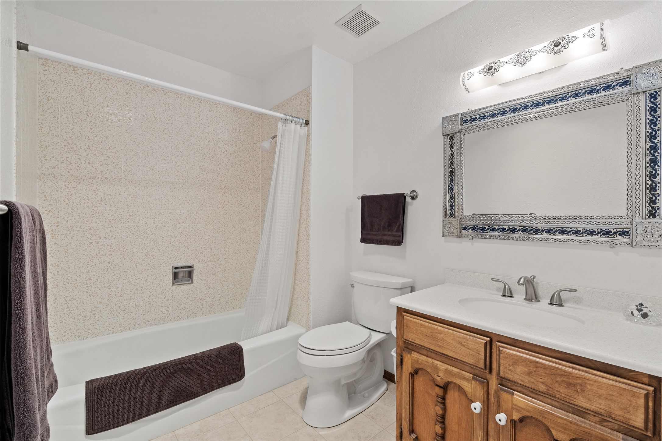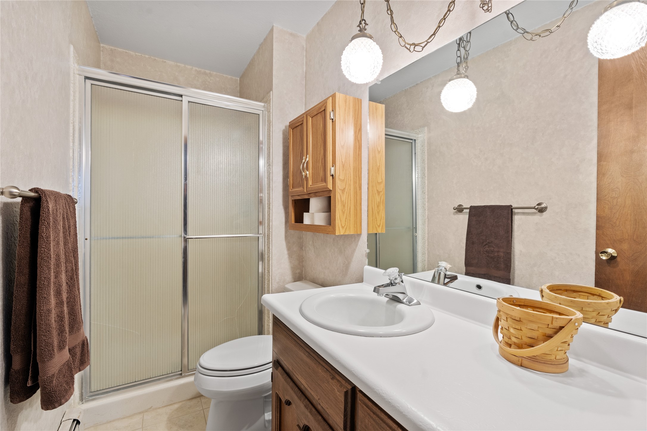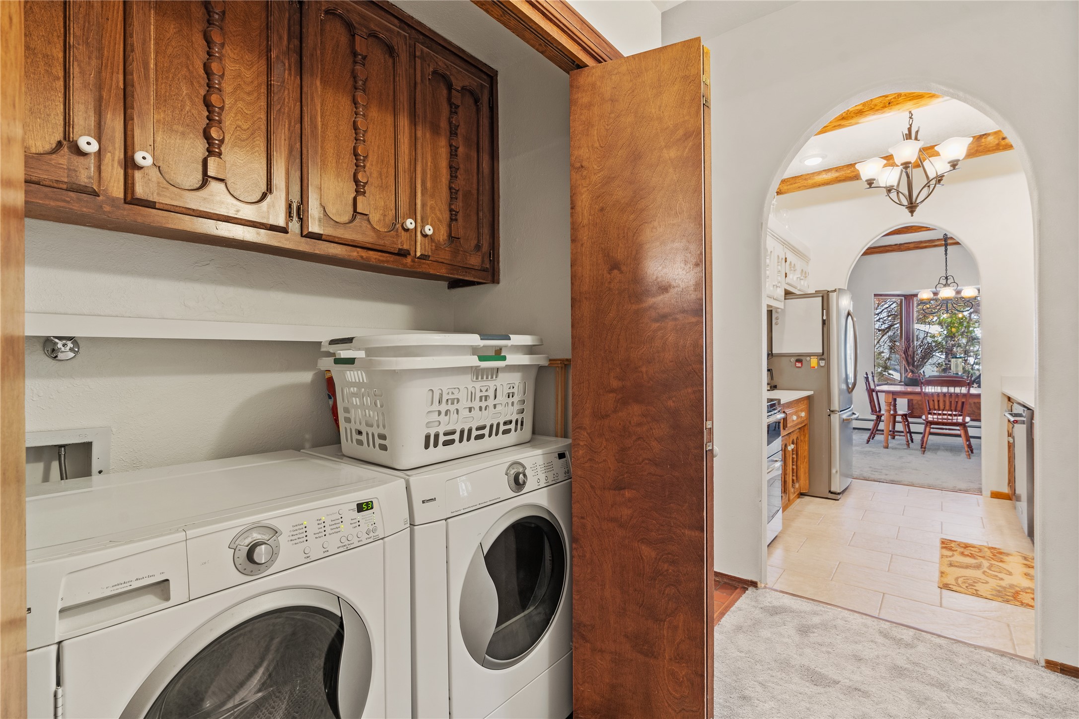 Charming Two-Story Corner Lot Home in North Mesa! Nestled behind a lush wall of mature trees and bushes, this home offers privacy, character, and a peaceful setting. Step inside through the brick-accented entry to discover warm vigas-beamed ceilings that carry throughout the main living spaces, adding rustic elegance. A cozy carpeted living room with a large front-facing window floods the space with natural light. Flowing seamlessly from the living room is the open great room, which combines the dining area and spacious family room anchored by a gas kiva fireplace and a tiled sunroom, offering a tranquil space to enjoy year-round. Adjacent to the great room is a white galley-style kitchen featuring quartz counters, stainless steel appliances, and a beautiful chandelier that highlights the ceiling beams. A convenient pass-through counter doubles as bar seating and opens to the family room, making it perfect for entertaining or casual meals. Down the hallway are two guest bedrooms and a guest bathroom. A spacious primary en-suite offers multiple closets and a bathroom with a walk-in shower. Also on this level is a laundry closet, as well as access to a two-car garage. Upstairs, the home continues to impress with a secondary family room featuring rich oak wood floors, a cozy wood-burning stove, and a wet bar--ideal for relaxing or hosting. A second tiled sunroom provides additional light-filled living space, while sliding doors open to a partially covered deck with ample room for lounge seating, outdoor dining, and entertaining. This upper level also includes an additional guest bedroom and a guest bathroom, offering flexible space for guests or hobbies. Throughout the home, you'll find double-pane windows with built-in blinds for energy efficiency and clean aesthetics. The backyard offers a private oasis with a grassy lawn with mature fruit trees. Also, take note of the large concrete driveway with RV parking and 30A RV power hookup.