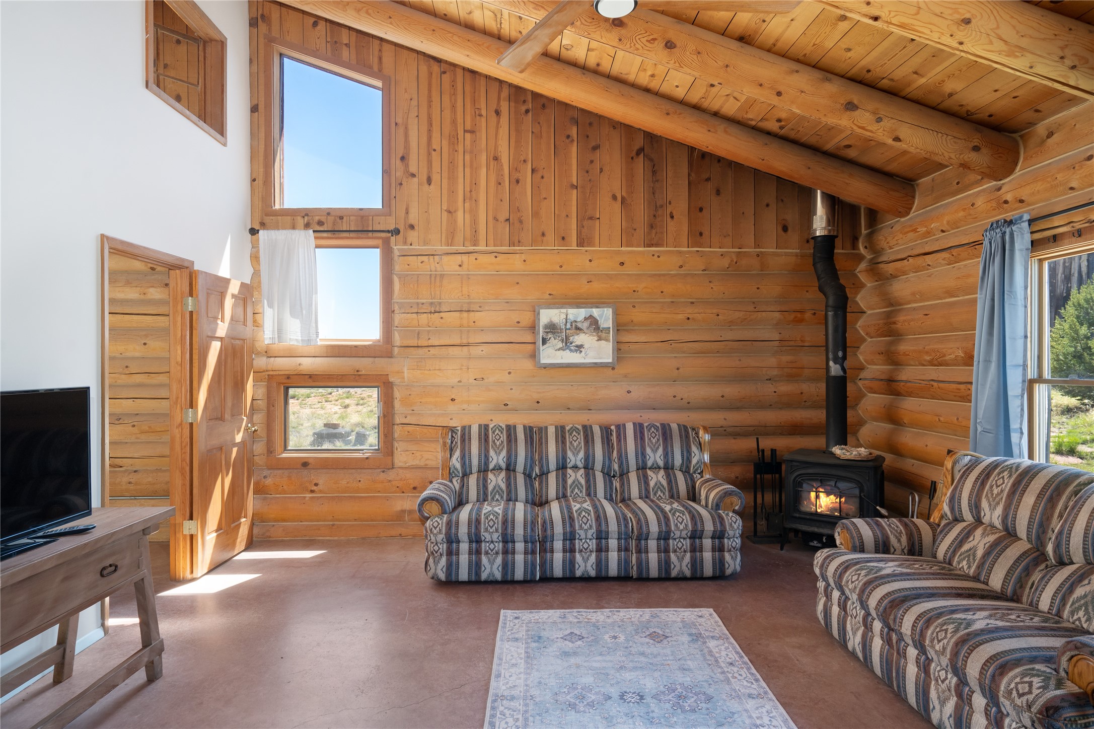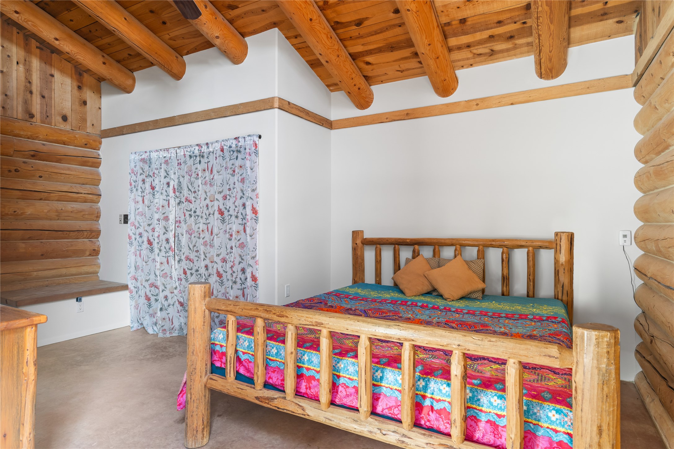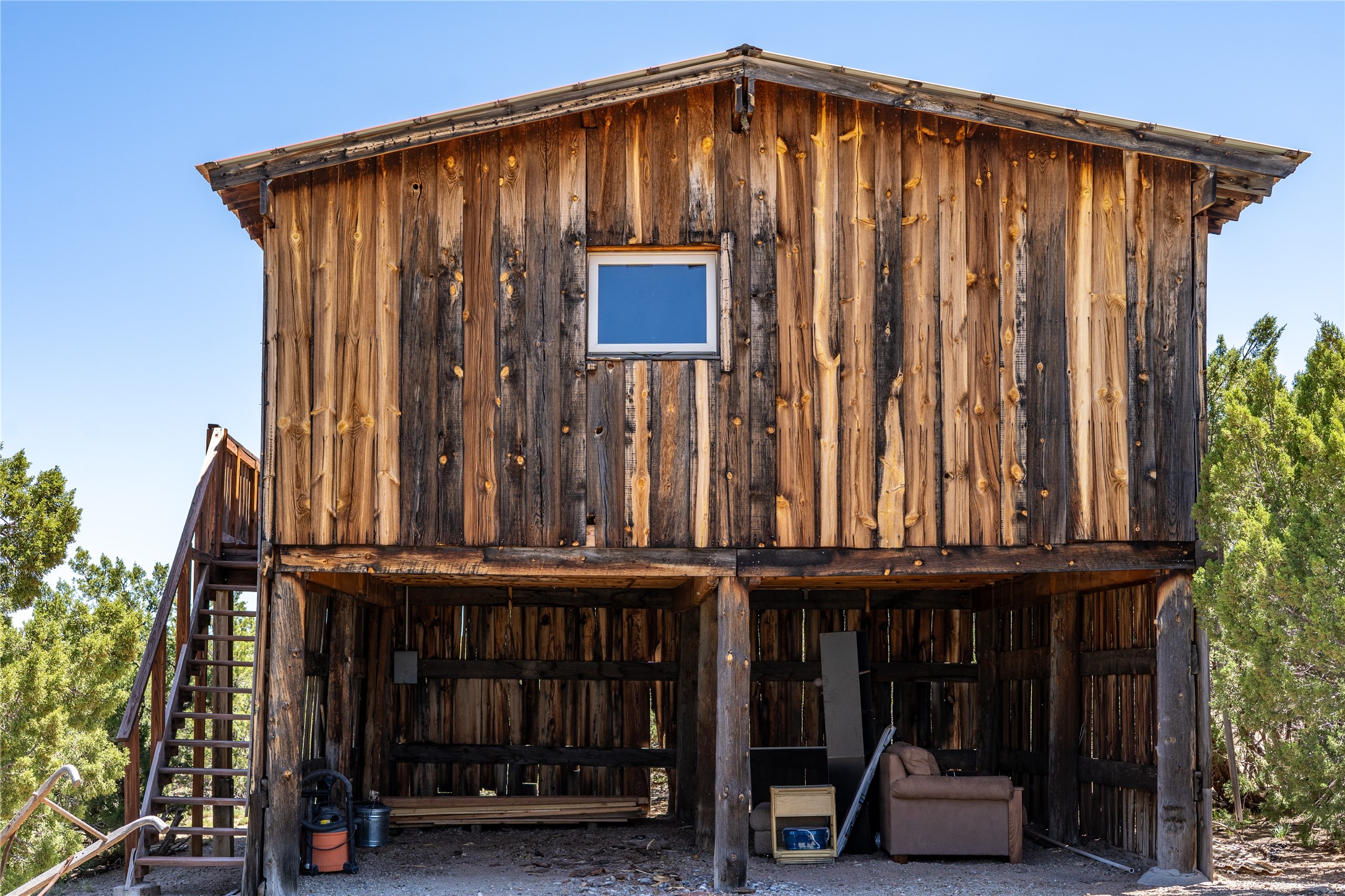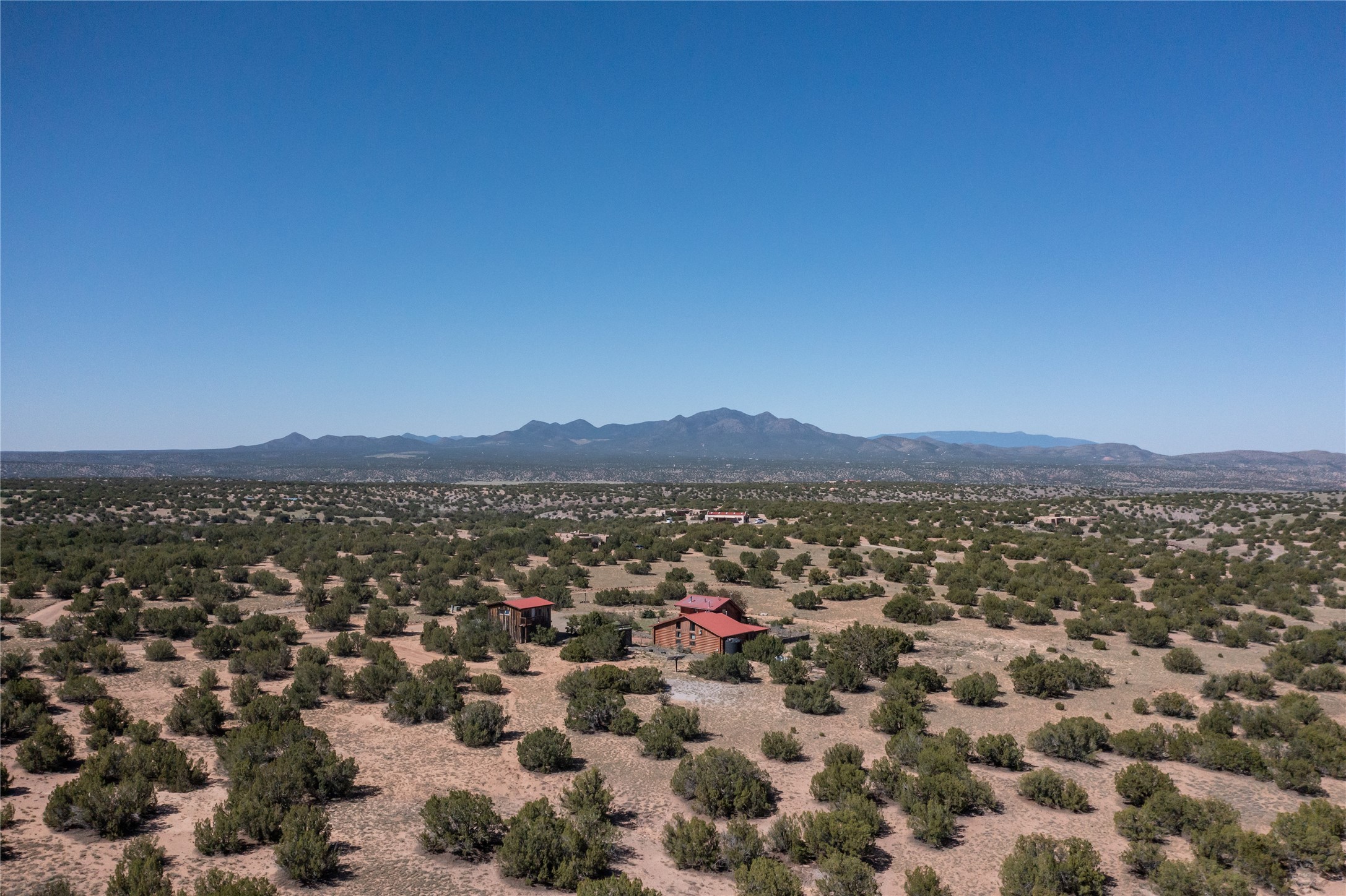 Escape to your private slice of the Wild West with this stunning 2-story, 2-bedroom, 2-bathroom true log cabin. Nestled on over 10 sprawling acres with an enviable address on the historic Camino Los Abuelos, this home is surrounded by wide open skies and rolling desert terrain, and enjoys paved road the whole way to the driveway.Step inside and enjoy the warmth of handcrafted log walls, soaring ceilings, and a cozy wood-burning stove. Downstairs, a well-appointed kitchen flows into 2 living spaces, the primary suite, and an unfinished sunroom. Upstairs, a spacious loft-style bedroom with its own 3/4 bath is perched, awaiting your southwestern accents.Whether you're sipping coffee on the porch, stargazing in the clear New Mexico skies, or exploring your very own high desert acreage, this home is a true retreat. Ideal for artists, adventurers, homesteaders, or anyone craving solitude and inspiration. Located within minutes of the San Marcos Feed Store and Beer Creek Brewery, and close enough to Santa Fe's rich culture, galleries, and cuisine--but far enough to enjoy peace, privacy, and panoramic views.