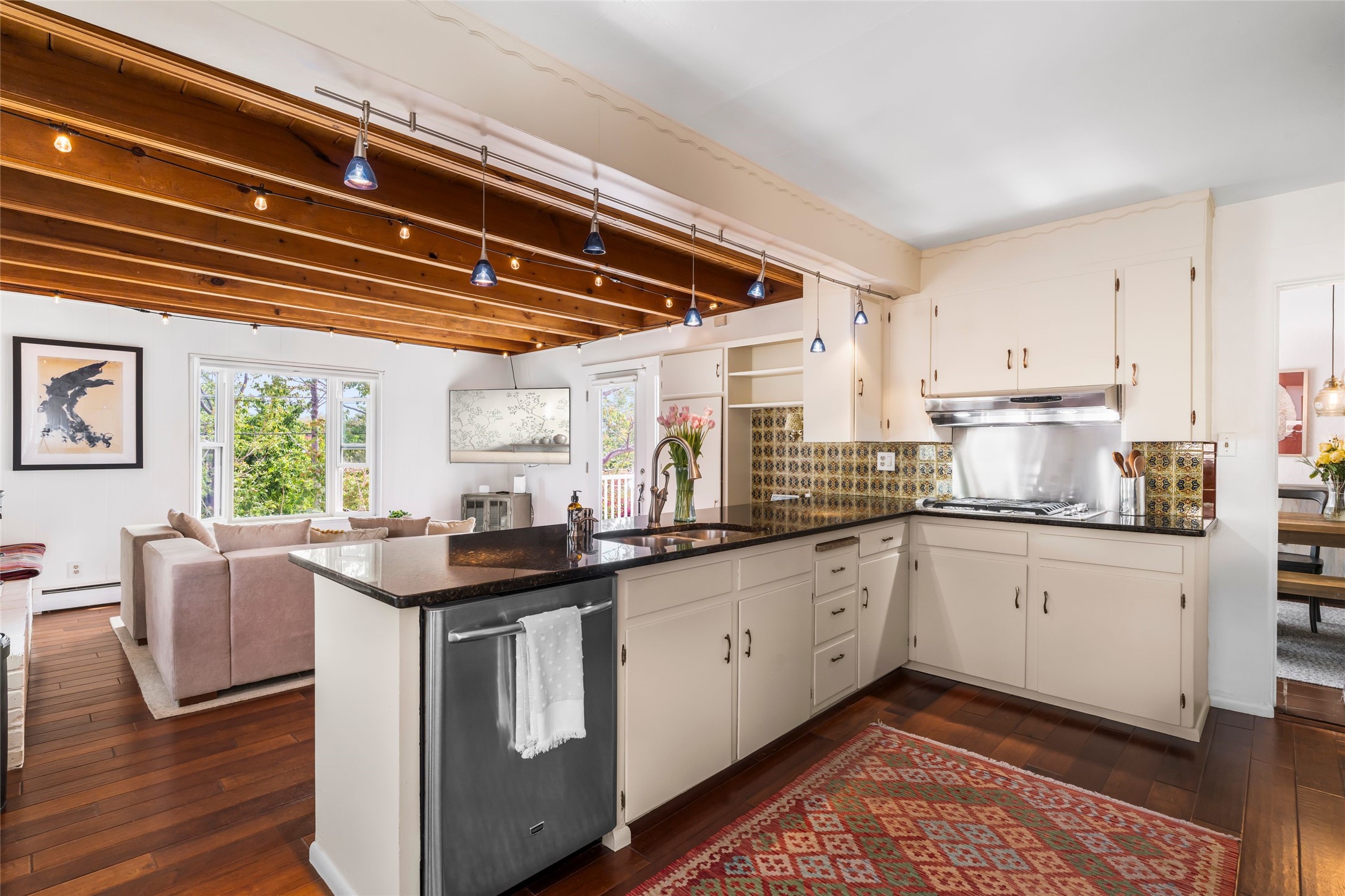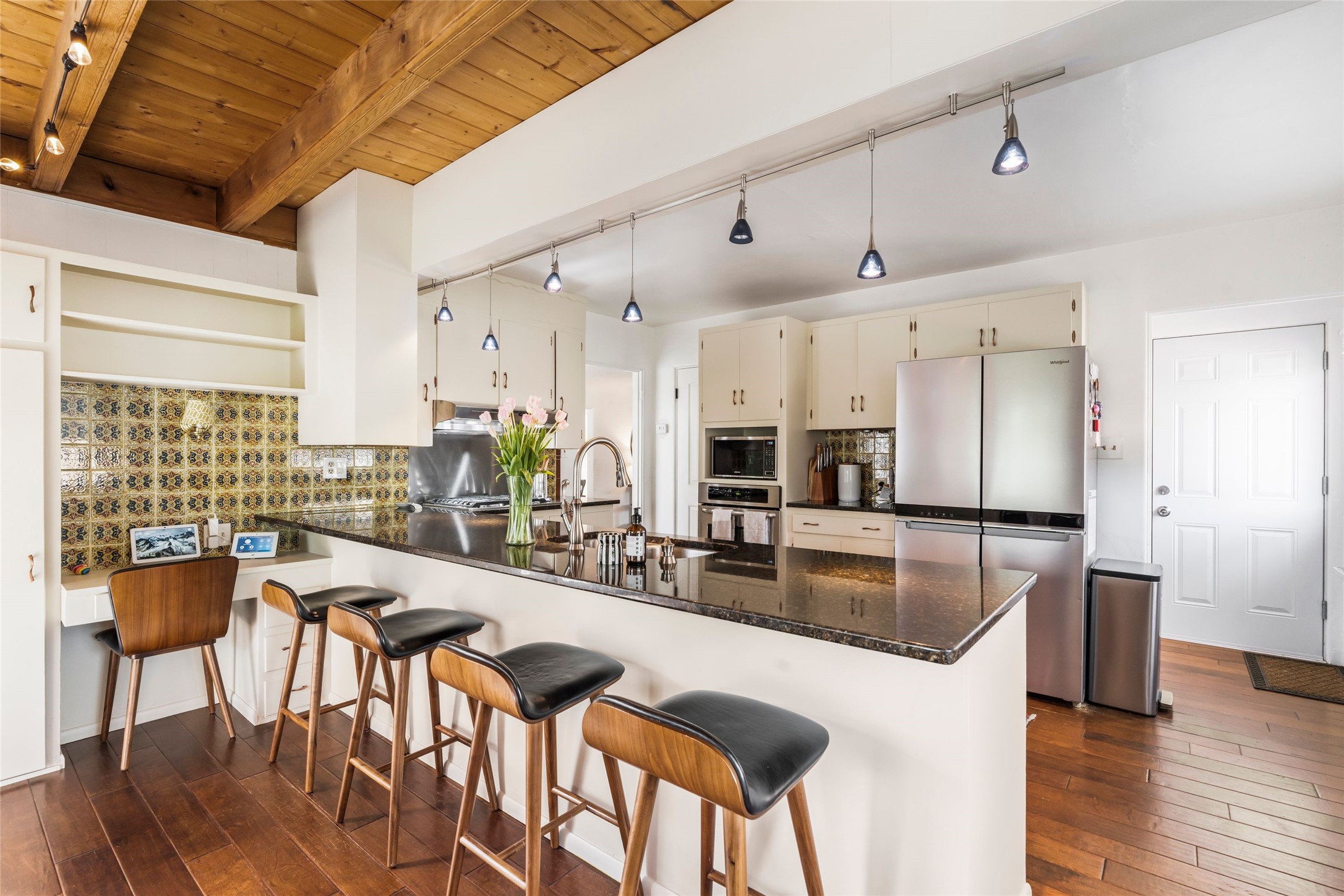 Centrally located in this quiet South Capitol neighborhood, this chic and updated 2,470 sq.ft., two-story single family home is situated on a quiet street with a large landscaped lot and updated interior finishes throughout the home. There are are a total of 3 bedrooms and 3 bathrooms (two bedrooms/1 full bathroom at the entry level, and 1 bedroom and 2 baths on the lower level). The open-concept living/dining room look out onto treed and landscaped views with private walled and gated outdoor space, perfect for seasonal living and plenty of room for entertaining. The nearby kitchen with bar seating, stainless appliances, and granite countertops has another family room adjacent to it with upper deck access and treetop views. A wood burning kiva fireplace centers this living area with an additional kiva wood-burning fireplace in the formal entry living room. Downstairs, a third living area could function as a private guest quarters with its own access, or a flex space/office perfect for growing family or professionals needing additional work space. The home has large view windows, bathing the spaces in natural light. Wood and tile floors cascade throughout adding to the organic warmth of the home. The large back yard has a bubbling fountain, in-ground trampoline and grassed area, ideal for entertaining or quiet privacy. A direct access 1-car oversized garage and off-street parking comes with the property. Accessibility to the downtown and midtown area is what makes this lovingly maintained property an ideal location to call home.