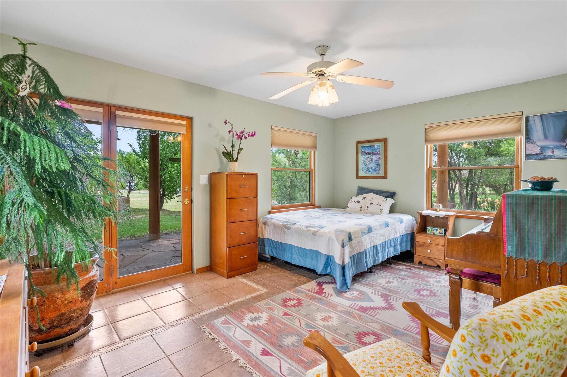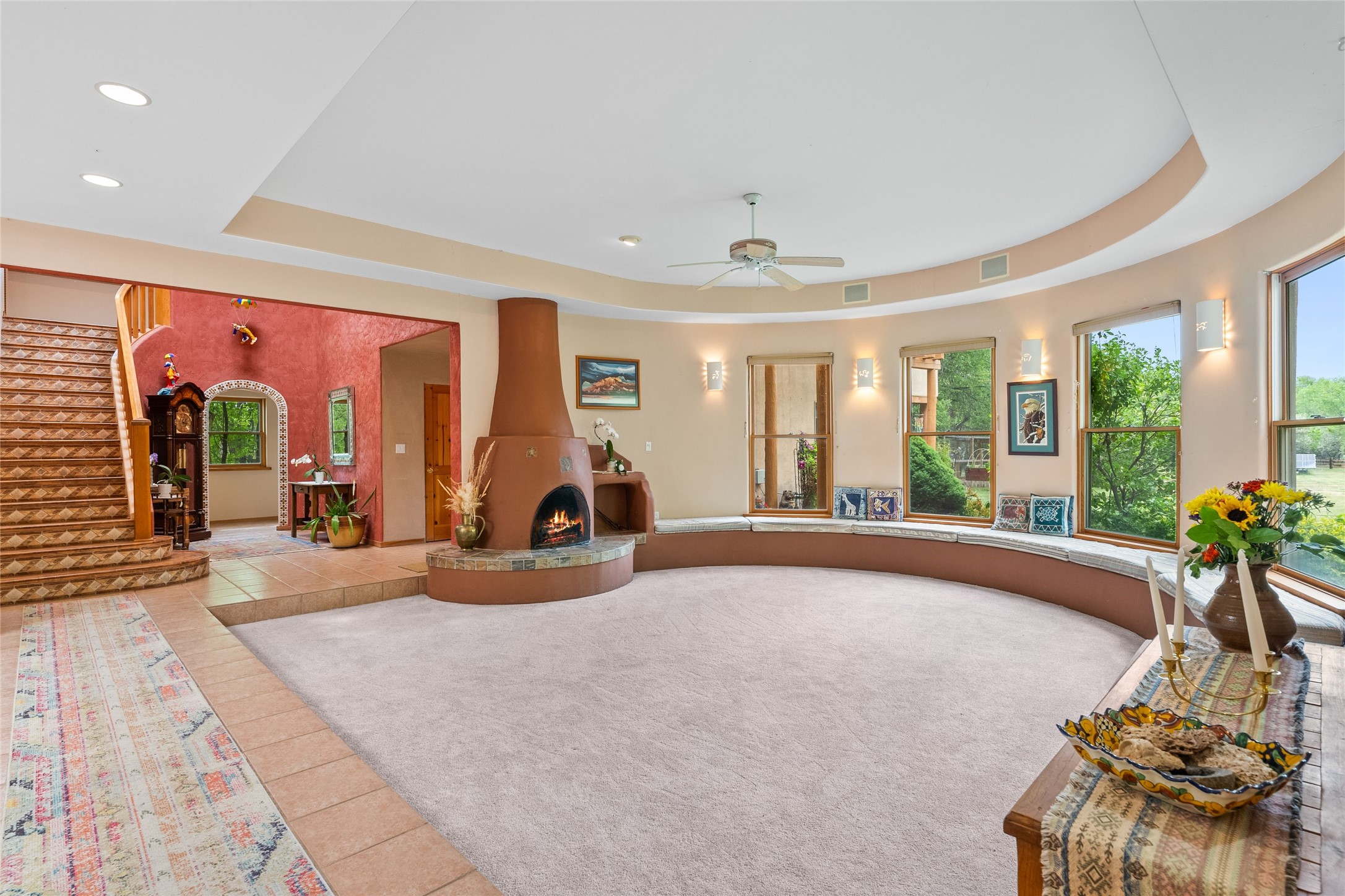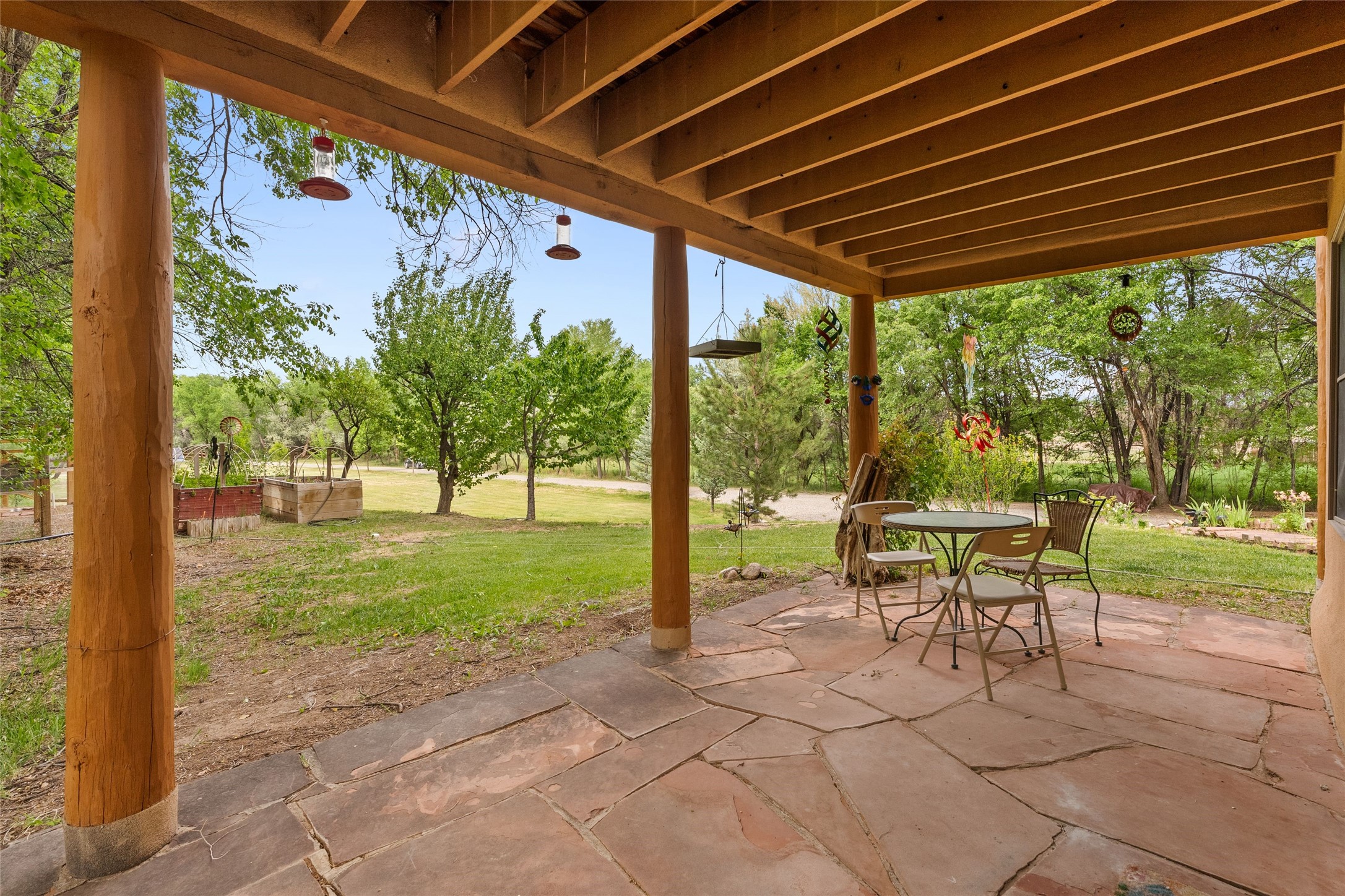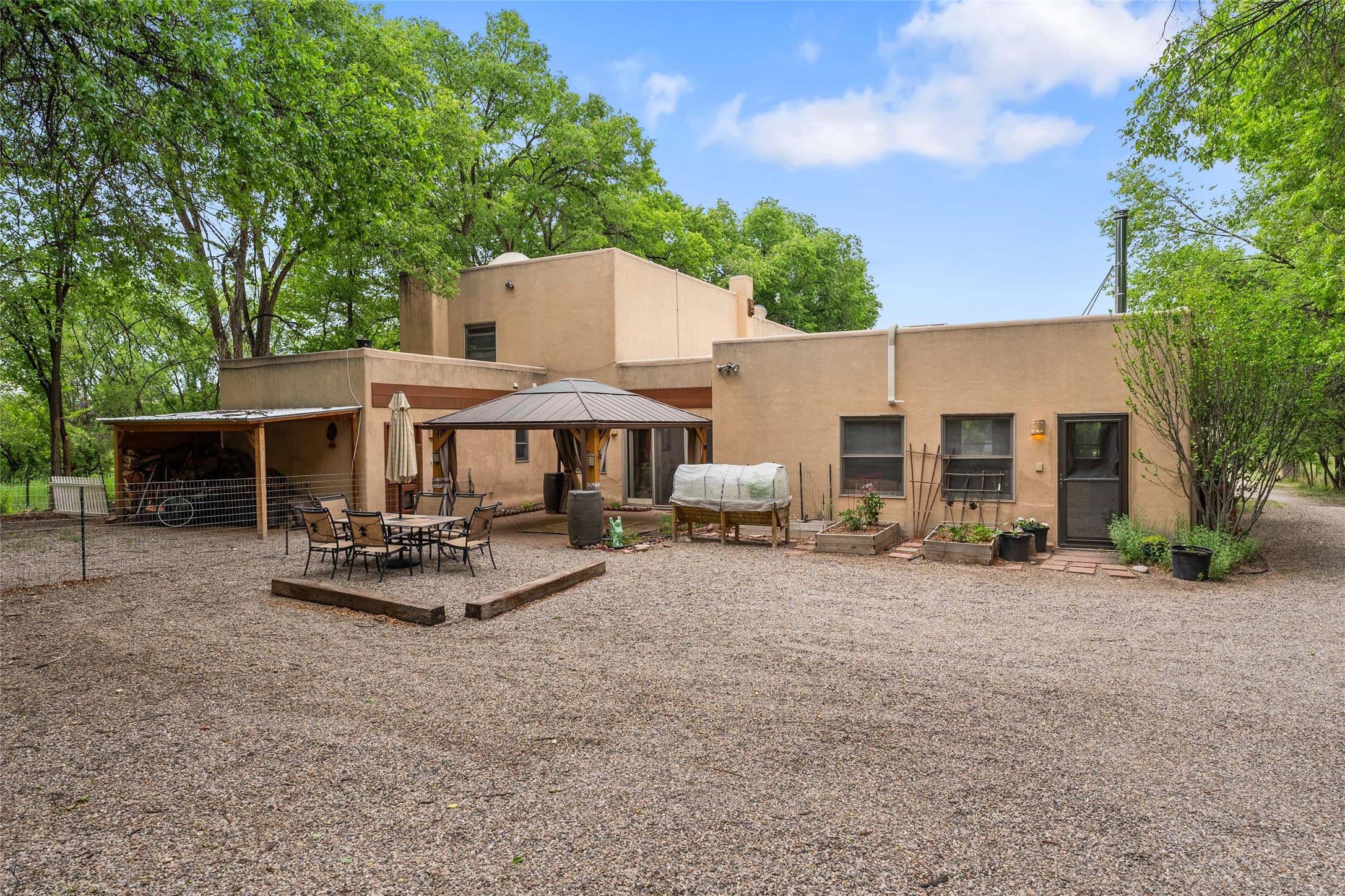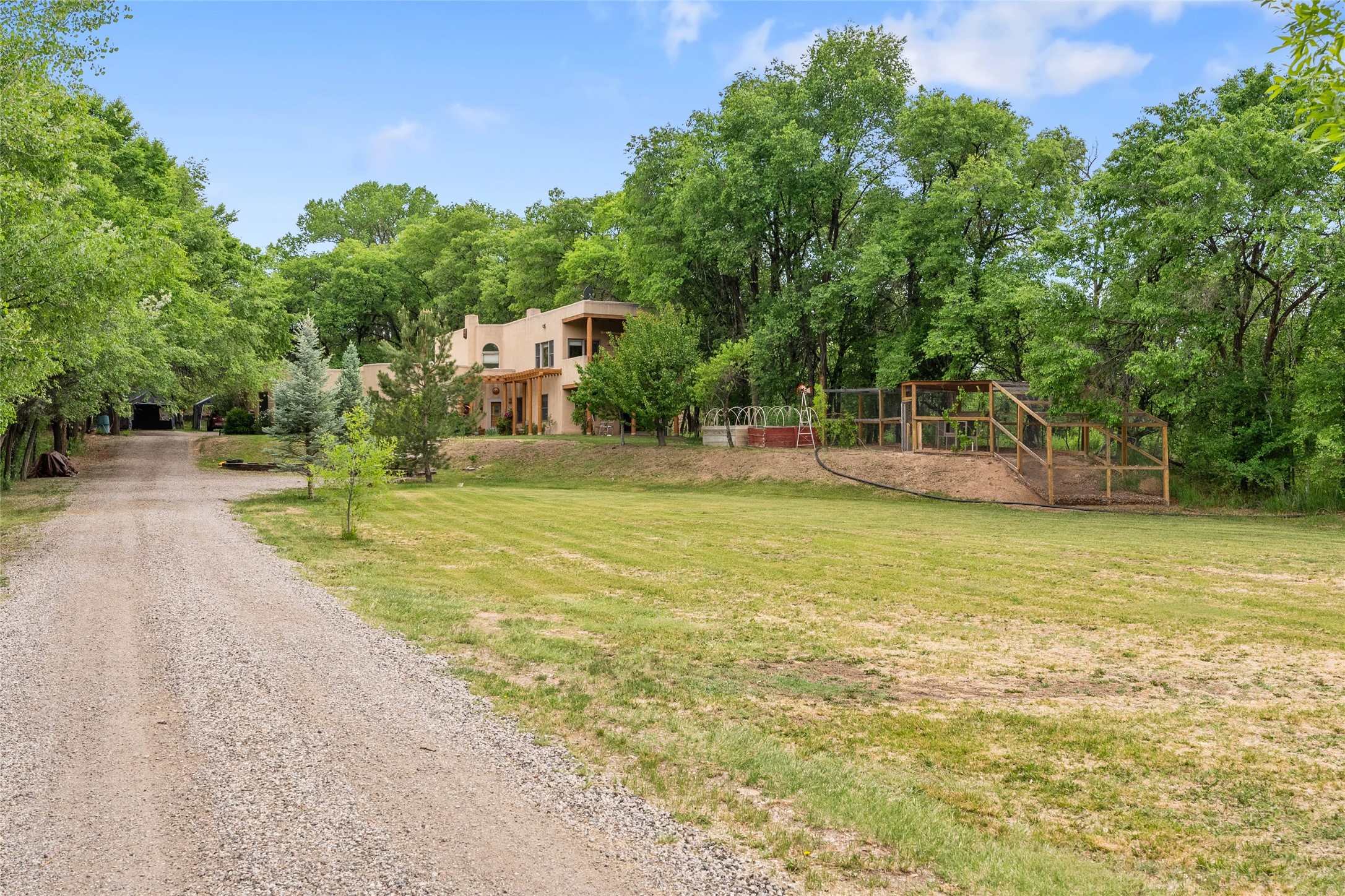 Welcome to 65 E. Sombrillo--Private and secluded--a stunning rural retreat nestled in a peaceful valley between mountain ranges and surrounded by small farming parcels. This custom-built, 4,007 sq. ft single-family home offers 3 bedrooms and 3 bathrooms, office and chapel, on over 2 acres of private, gated land. Built by Tyaga and Company, the home combines modern comfort with country charm, featuring active solar panels, radiant floor heating, ceiling fans in every room, and mini-split systems for efficient heating and cooling. Enjoy cozy evenings with 2 wood-burning fireplaces and a wood stove. The property includes a new boiler and hot water heater, a private well, 2.4 acre-feet of surface irrigation rights (just $150/year), underground sprinklers, a fully enclosed 350 sq ft chicken coop and a 75' by 30' fully enclosed dog run. The GACO-upgraded roof includes a 50-year warranty for peace of mind. River frontage, horse and farm animal-friendly, light-filled throughout, this home is perfect for those seeking tranquility without sacrificing convenience--located just 25 miles from of Santa Fe, with an easy commute to Los Alamos or Taos. Whether you're tending a garden, raising animals, or as a great base for hiking, river running and ski trips This property offers an exceptional lifestyle in the heart of Northern New Mexico.