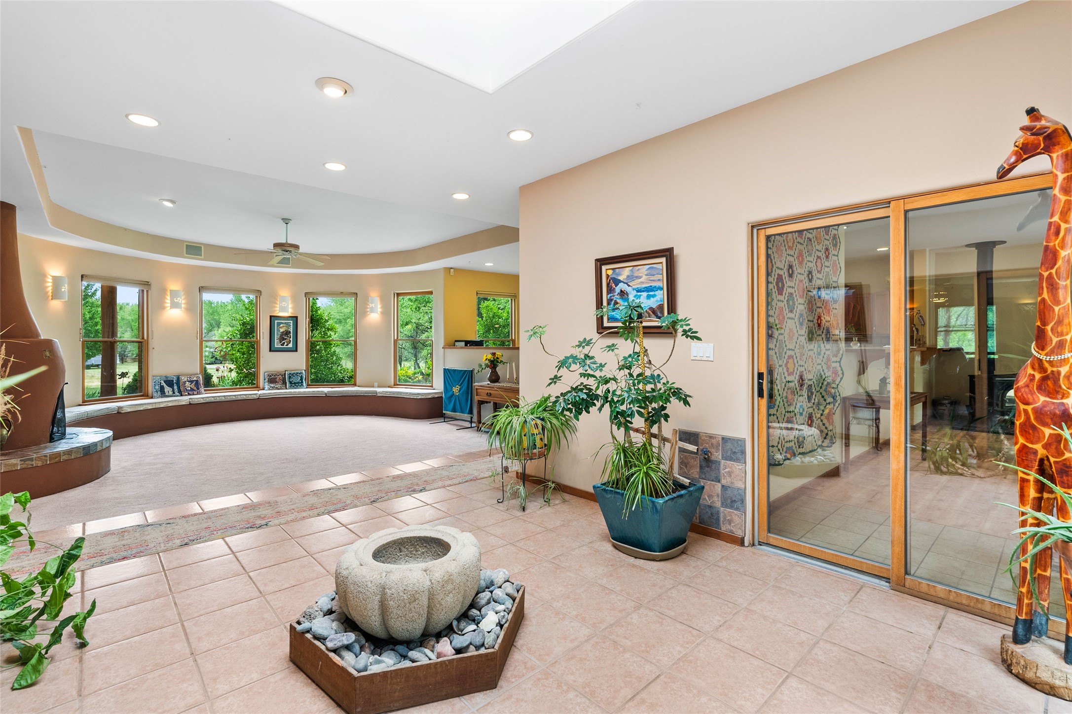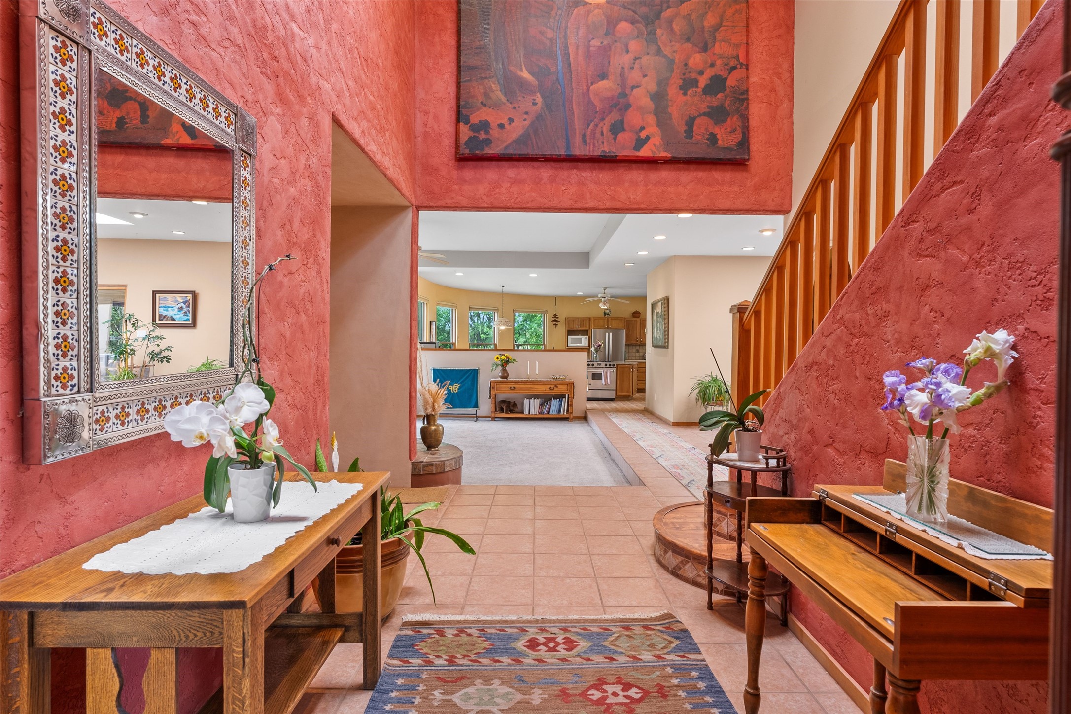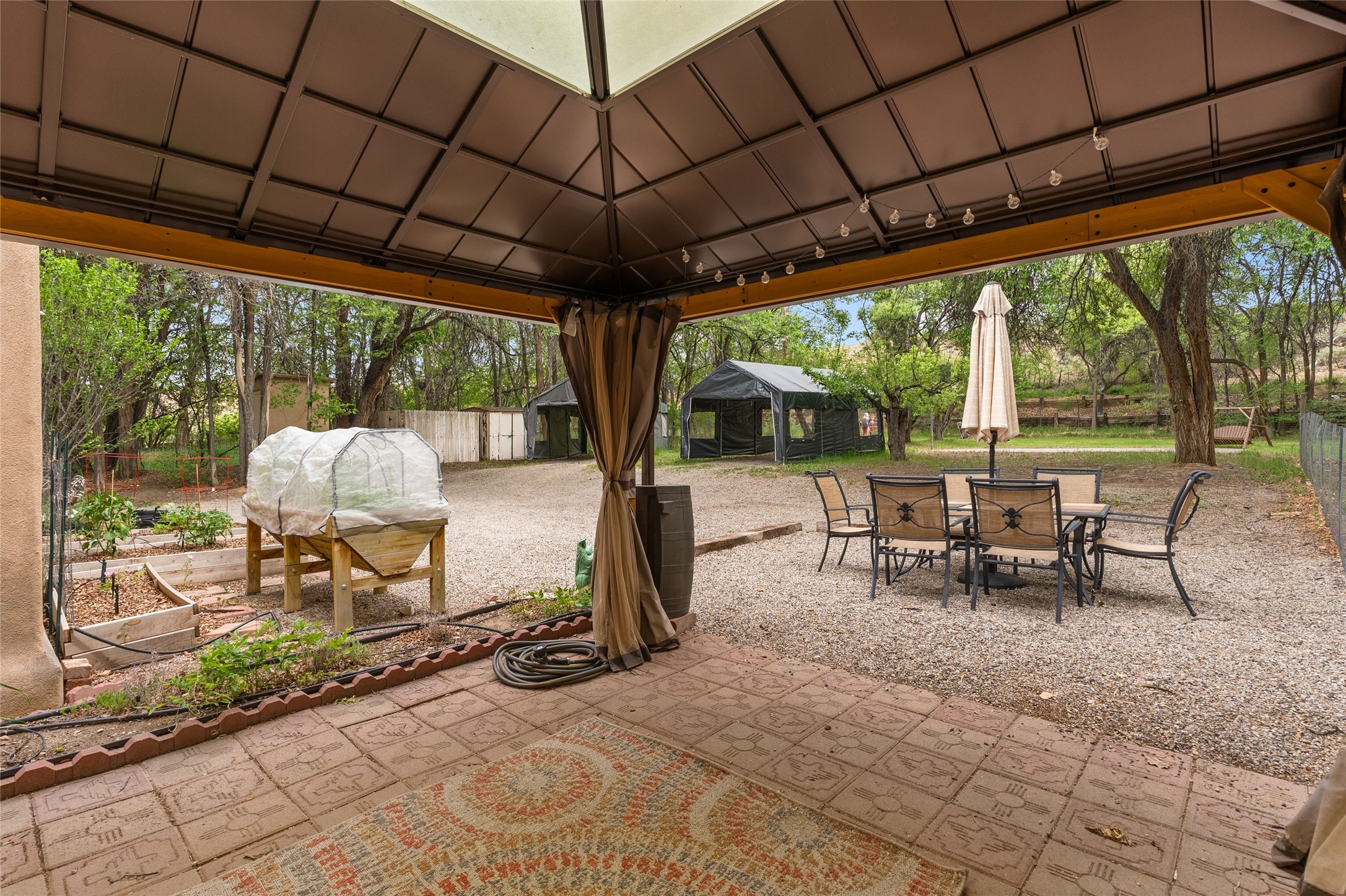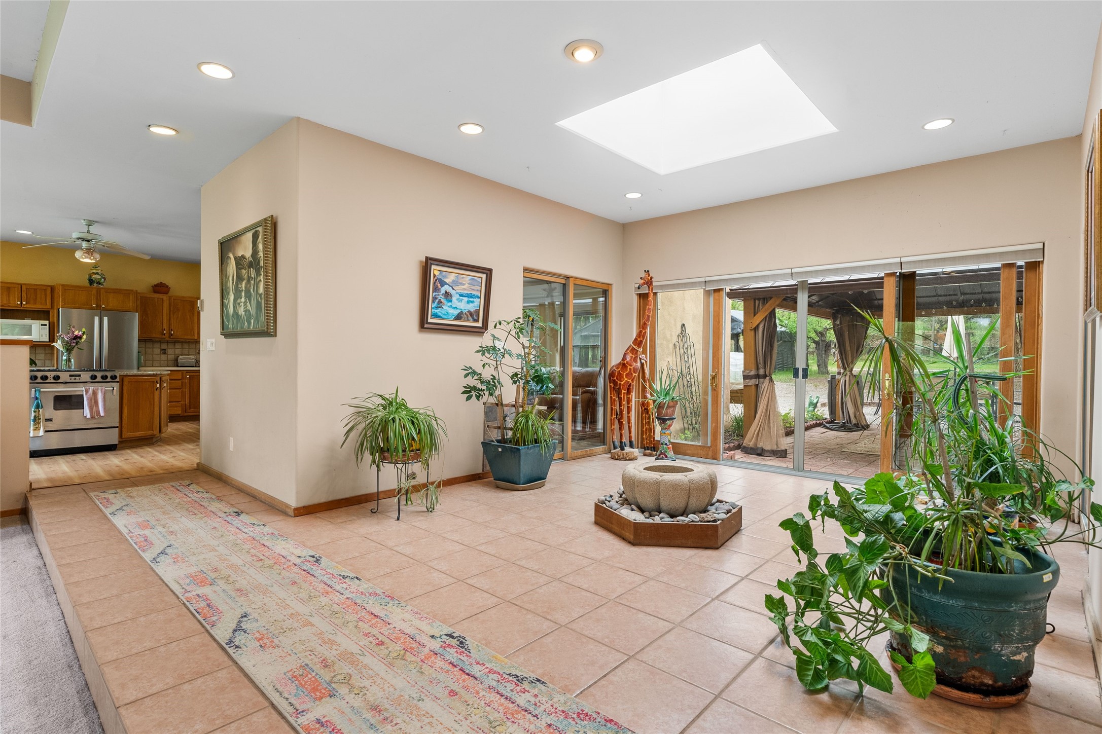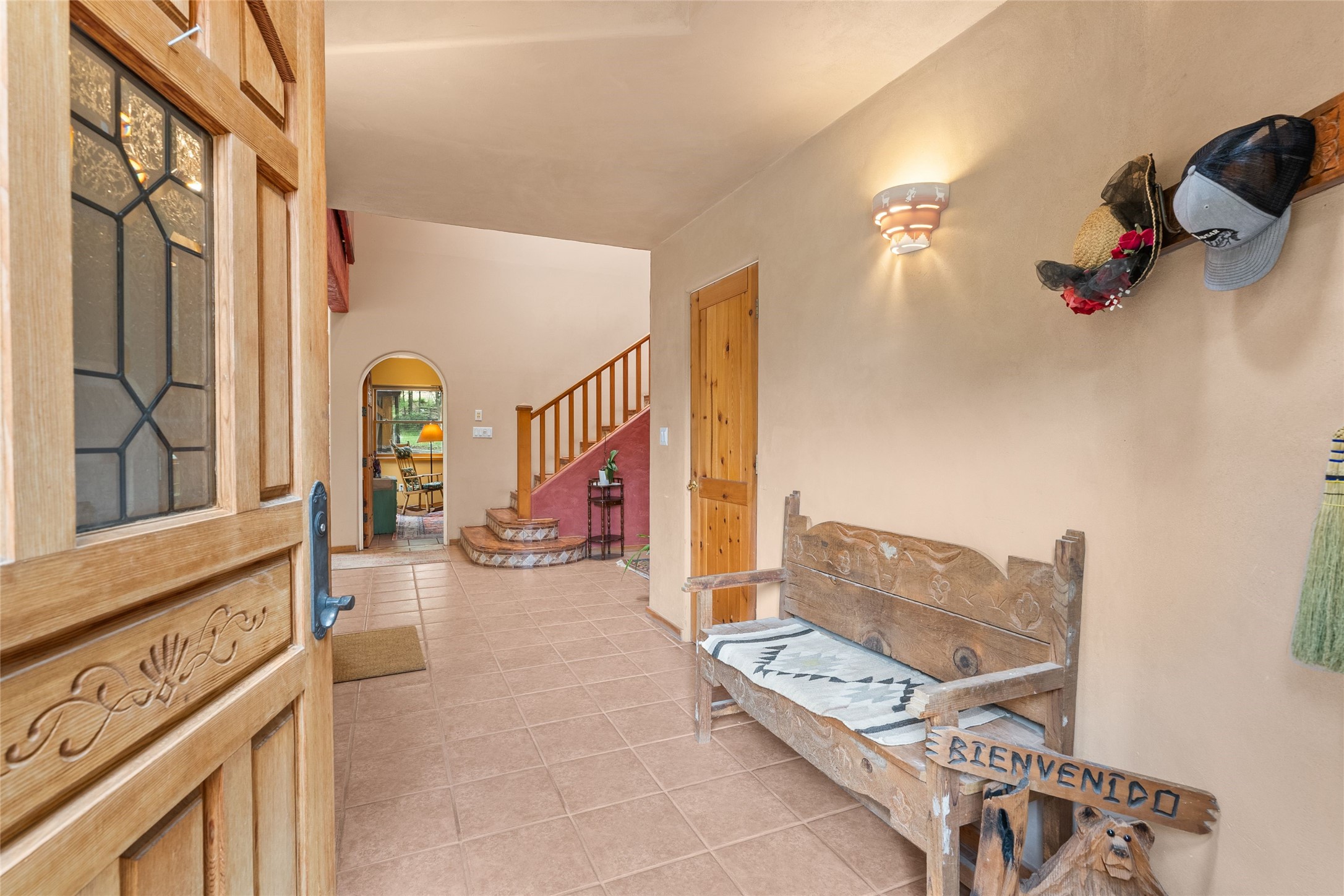 Welcome to 65 E. Sombrillo--Private and secluded--a stunning rural retreat nestled in a peaceful valley between mountain ranges and surrounded by small farming parcels. This custom-built, 4,007 sq. ft single-family home offers 3 bedrooms and 3 bathrooms, office and chapel, on over 2 acres of private, gated land. Built by Tyaga and Company, the home combines modern comfort with country charm, featuring active solar panels, radiant floor heating, ceiling fans in every room, and mini-split systems for efficient heating and cooling. Enjoy cozy evenings with 2 wood-burning fireplaces and a wood stove. The property includes a new boiler and hot water heater, a private well, 2.4 acre-feet of surface irrigation rights (just $150/year), underground sprinklers, a fully enclosed 350 sq ft chicken coop and a 75' by 30' fully enclosed dog run. The GACO-upgraded roof includes a 50-year warranty for peace of mind. River frontage, horse and farm animal-friendly, light-filled throughout, this home is perfect for those seeking tranquility without sacrificing convenience--located just 25 miles from of Santa Fe, with an easy commute to Los Alamos or Taos. Whether you're tending a garden, raising animals, or as a great base for hiking, river running and ski trips This property offers an exceptional lifestyle in the heart of Northern New Mexico.
