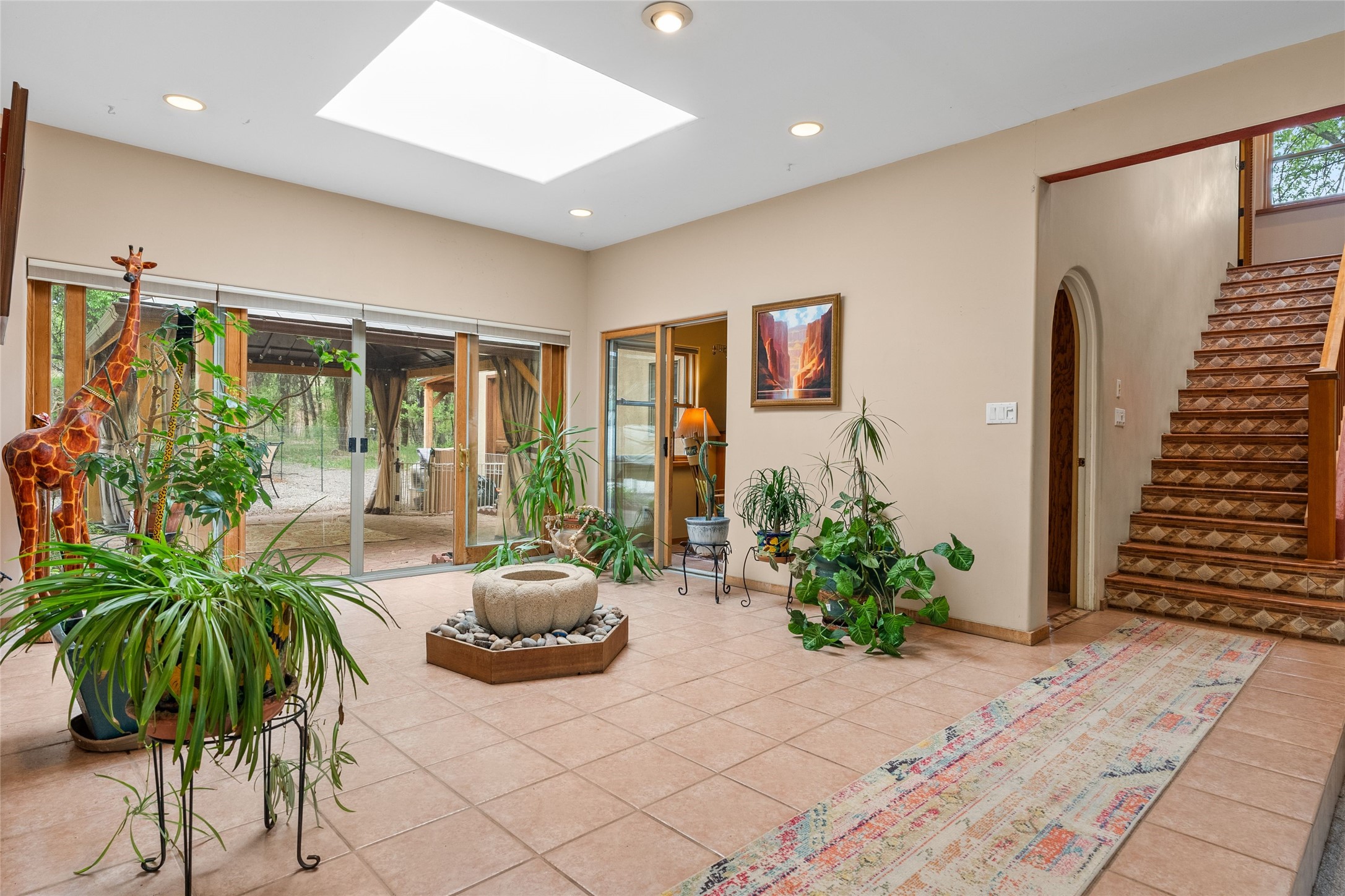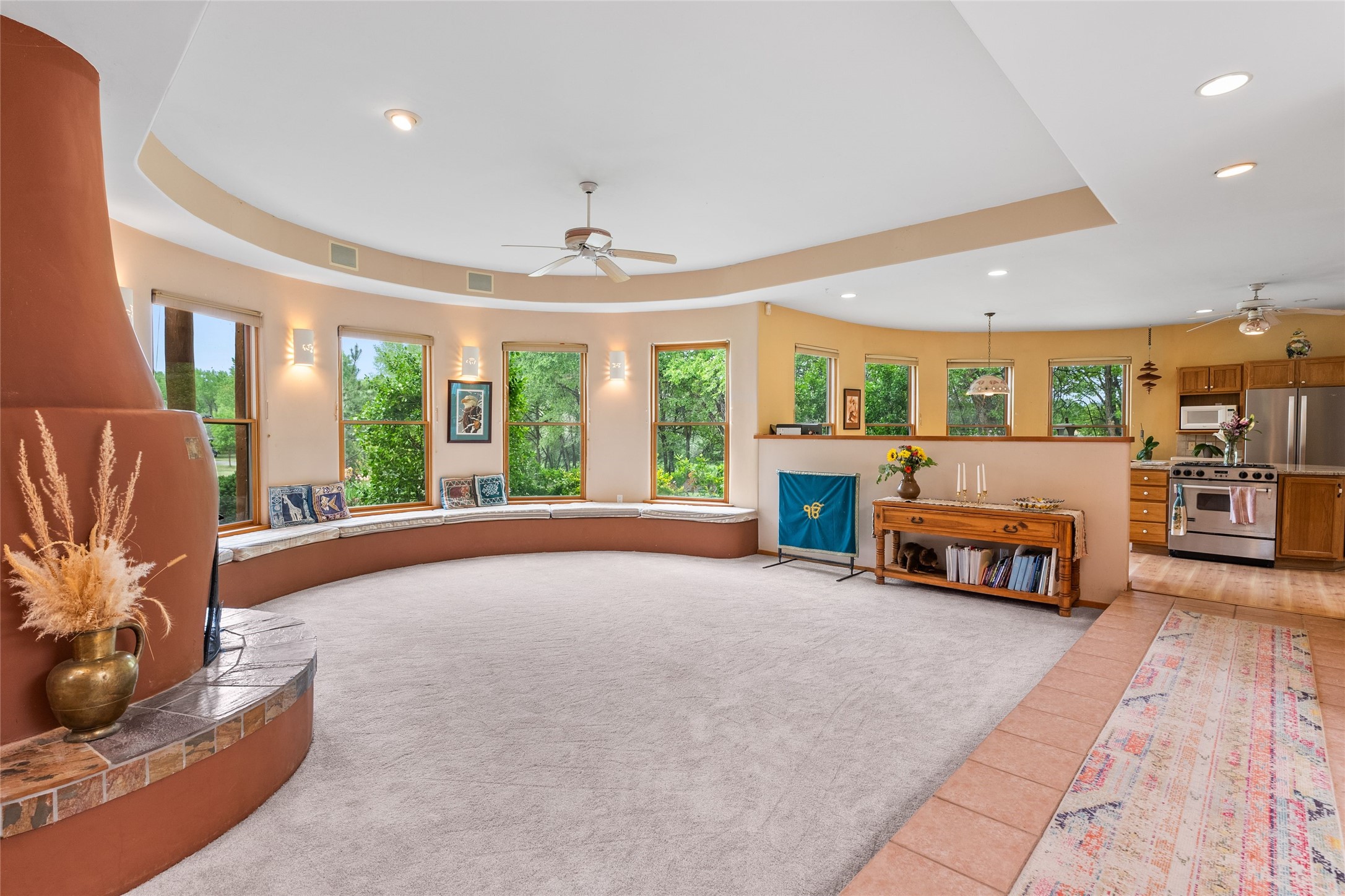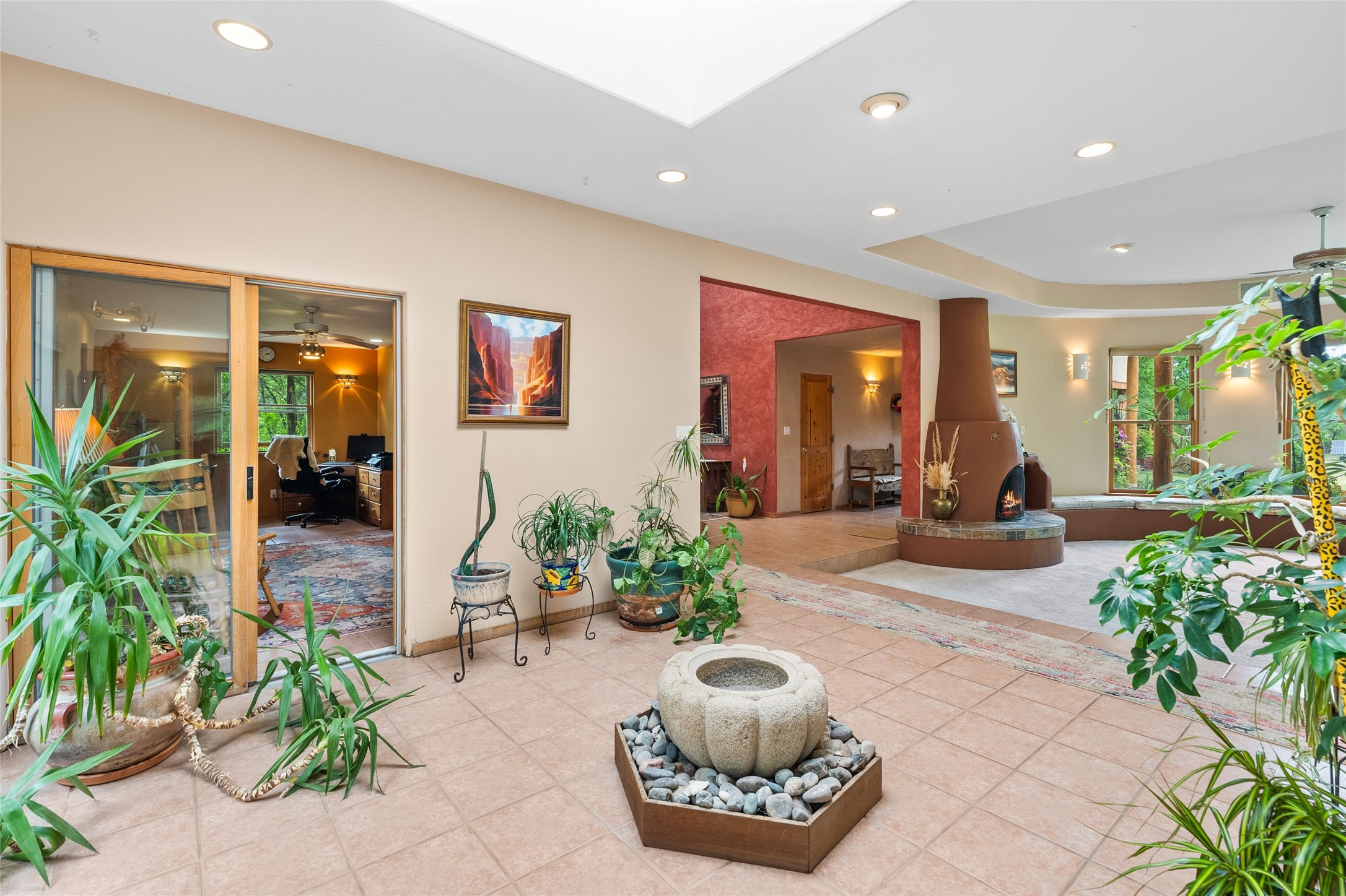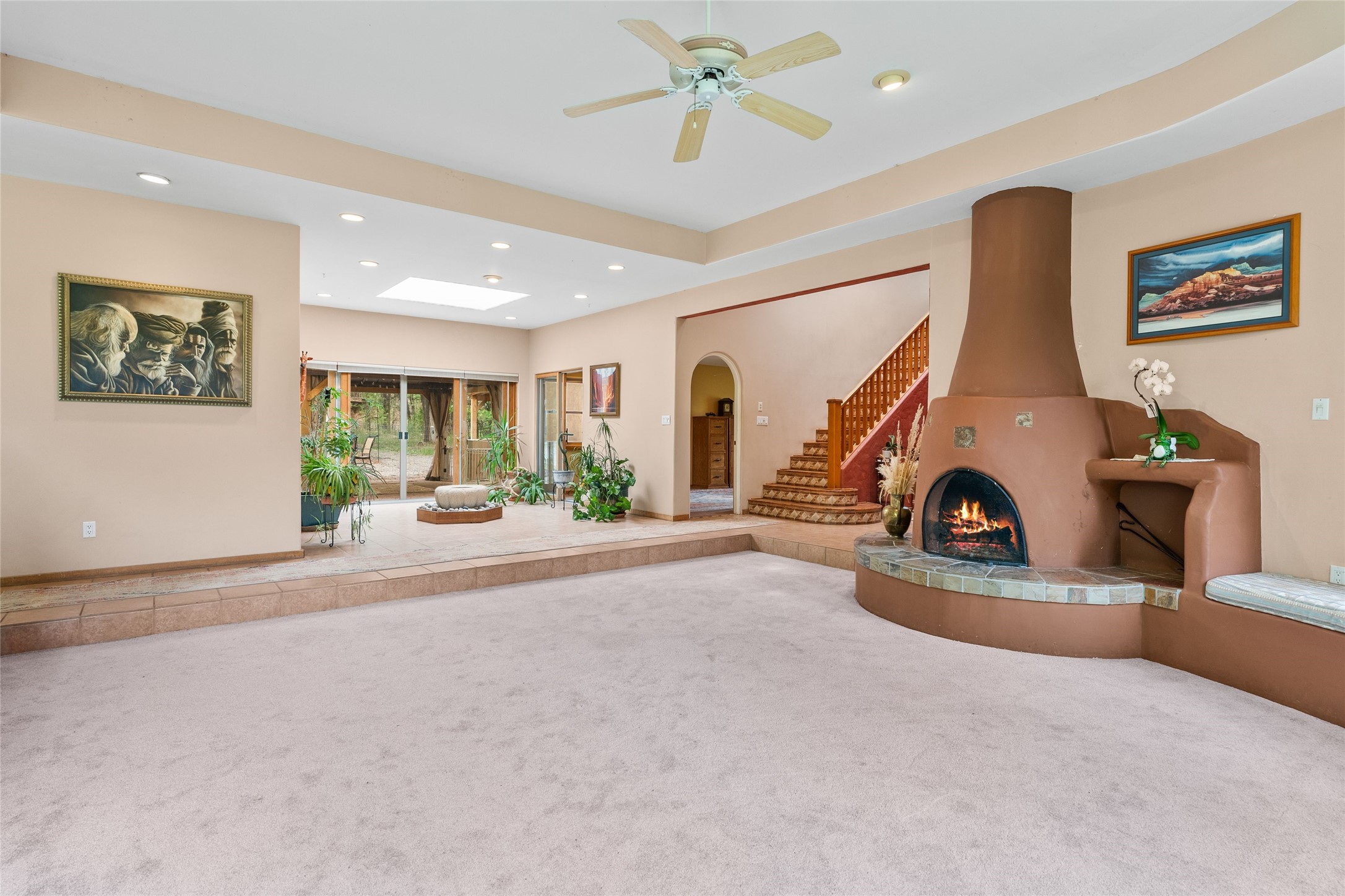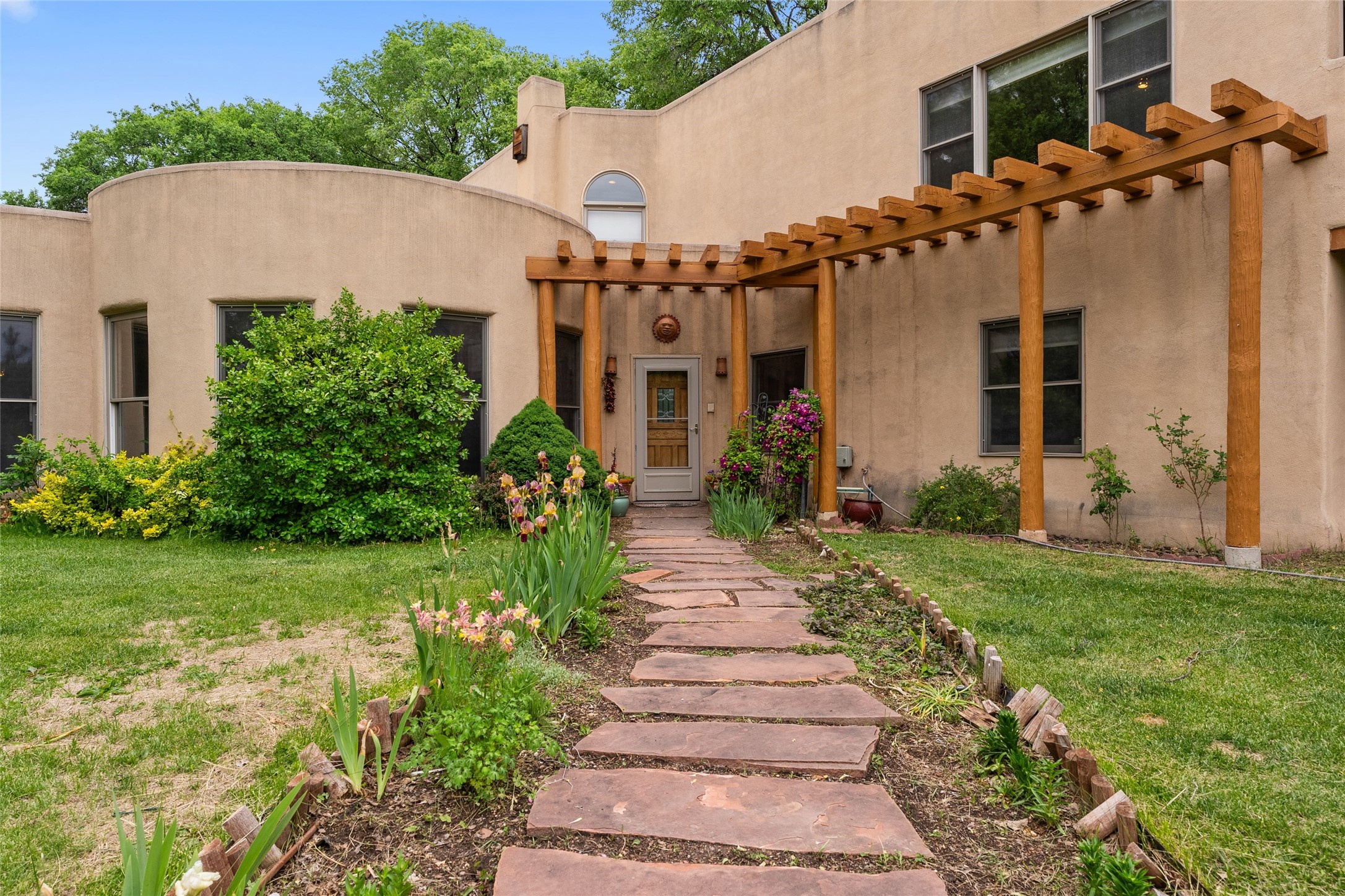 Welcome to 65 E. Sombrillo--Private and secluded--a stunning rural retreat nestled in a peaceful valley between mountain ranges and surrounded by small farming parcels. This custom-built, 4,007 sq. ft single-family home offers 3 bedrooms and 3 bathrooms, office and chapel, on over 2 acres of private, gated land. Built by Tyaga and Company, the home combines modern comfort with country charm, featuring active solar panels, radiant floor heating, ceiling fans in every room, and mini-split systems for efficient heating and cooling. Enjoy cozy evenings with 2 wood-burning fireplaces and a wood stove. The property includes a new boiler and hot water heater, a private well, 2.4 acre-feet of surface irrigation rights (just $150/year), underground sprinklers, a fully enclosed 350 sq ft chicken coop and a 75' by 30' fully enclosed dog run. The GACO-upgraded roof includes a 50-year warranty for peace of mind. River frontage, horse and farm animal-friendly, light-filled throughout, this home is perfect for those seeking tranquility without sacrificing convenience--located just 25 miles from of Santa Fe, with an easy commute to Los Alamos or Taos. Whether you're tending a garden, raising animals, or as a great base for hiking, river running and ski trips This property offers an exceptional lifestyle in the heart of Northern New Mexico.