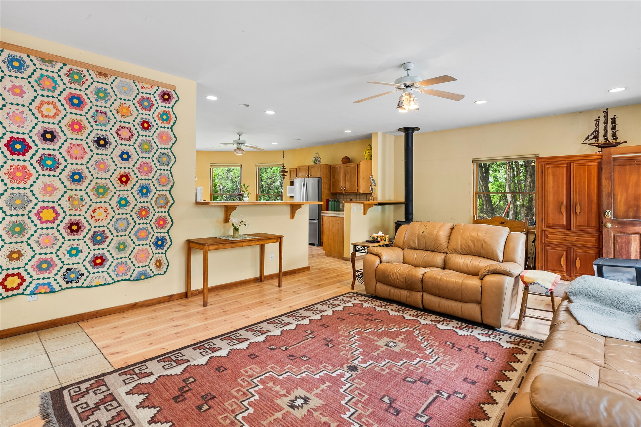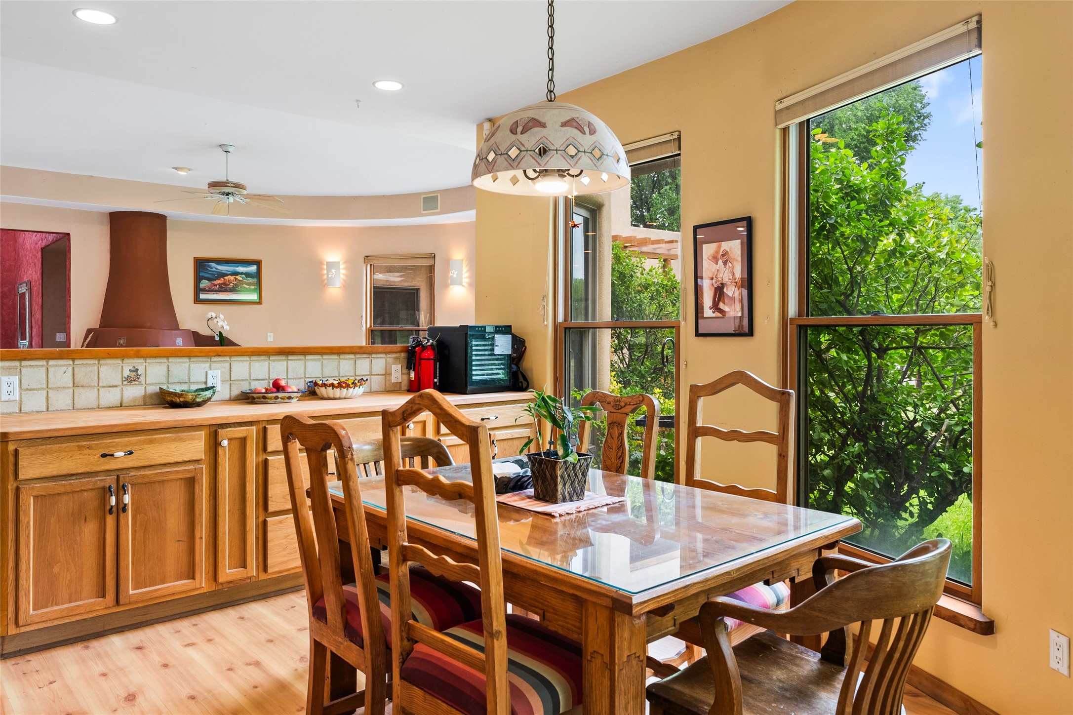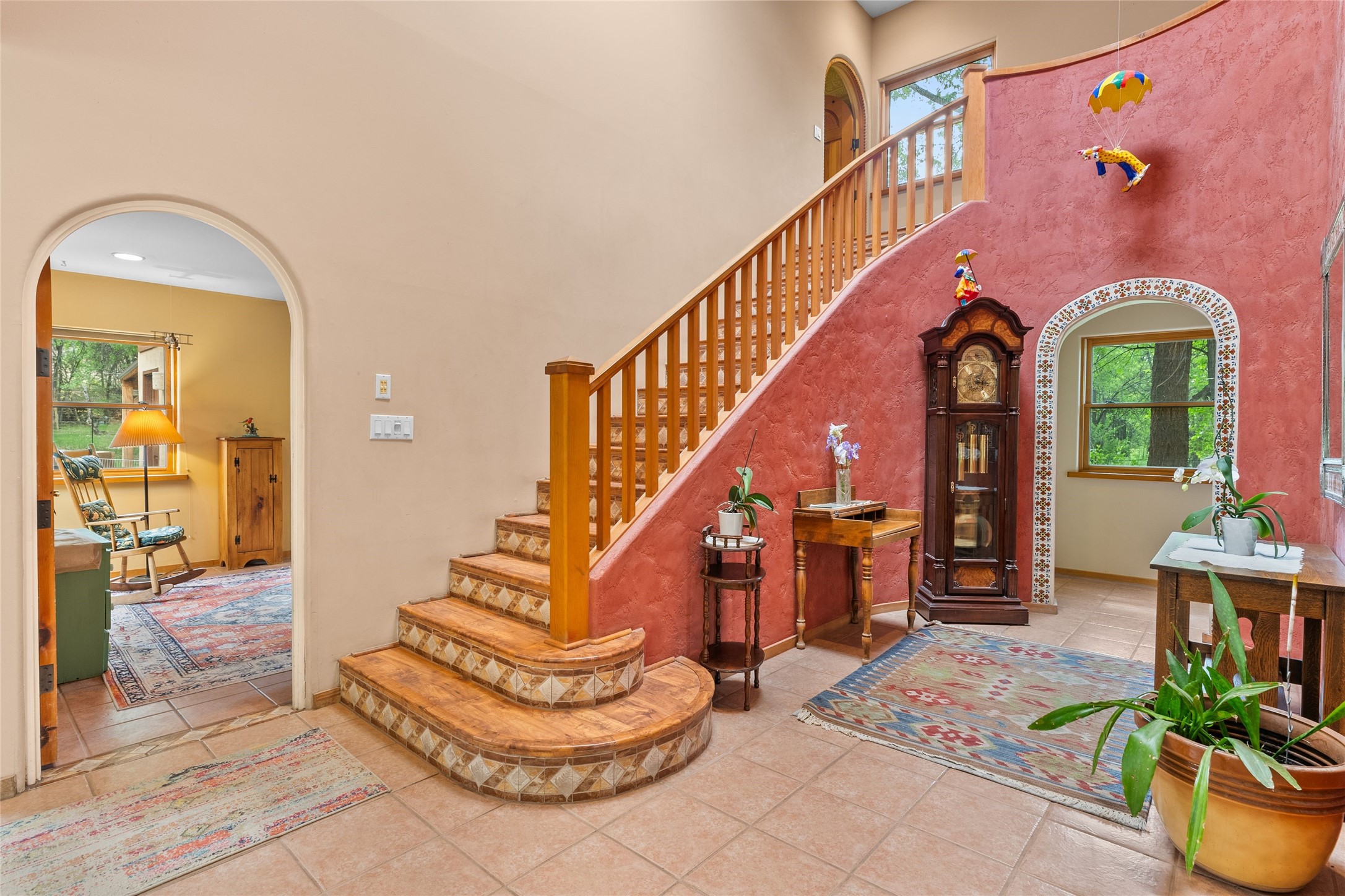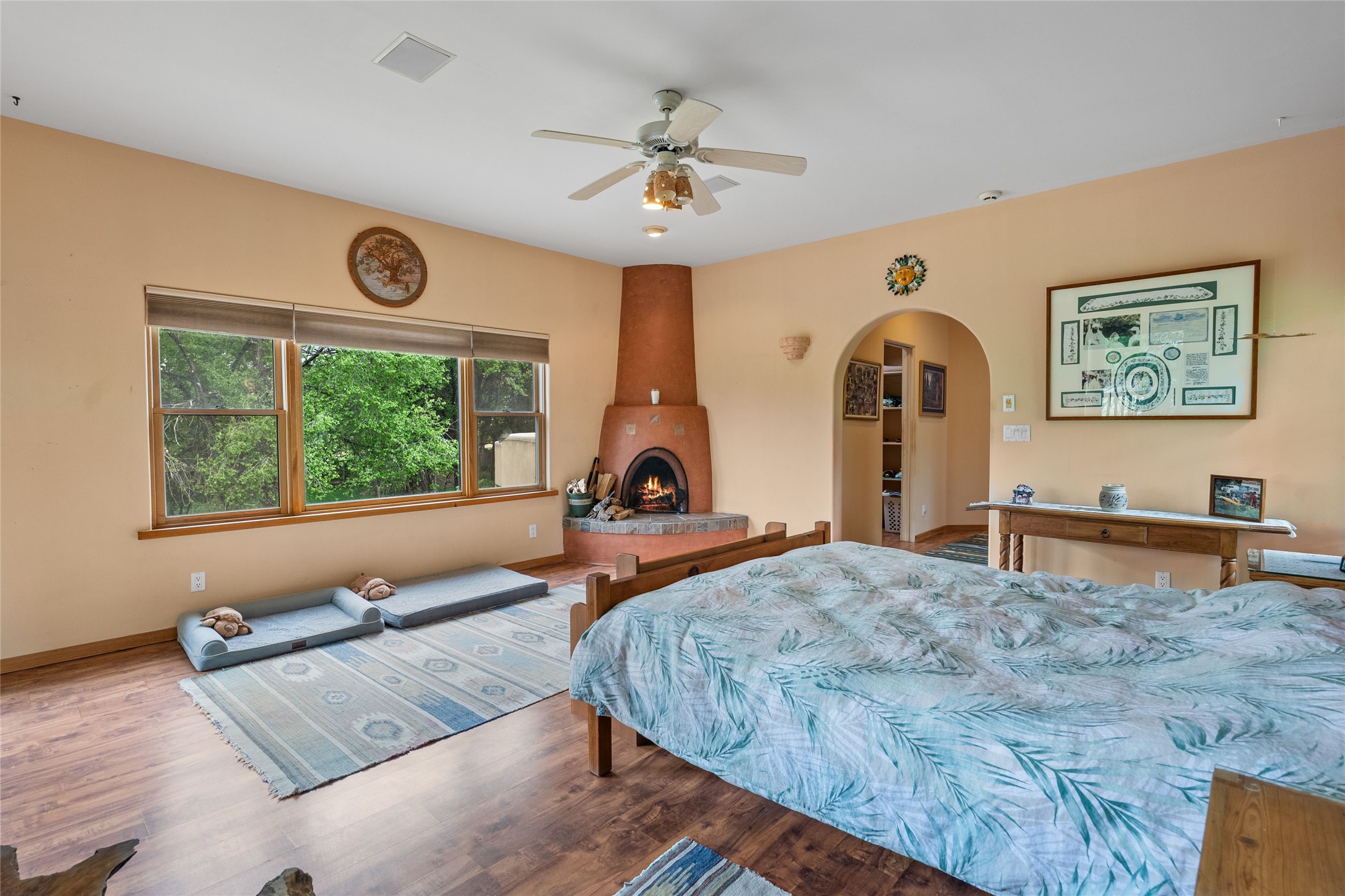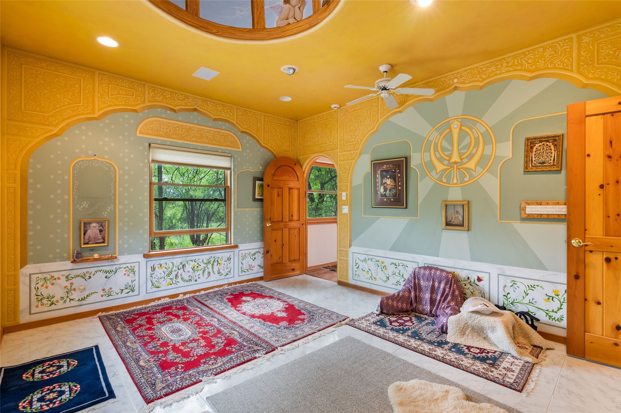 Welcome to 65 E. Sombrillo--Private and secluded--a stunning rural retreat nestled in a peaceful valley between mountain ranges and surrounded by small farming parcels. This custom-built, 4,007 sq. ft single-family home offers 3 bedrooms and 3 bathrooms, office and chapel, on over 2 acres of private, gated land. Built by Tyaga and Company, the home combines modern comfort with country charm, featuring active solar panels, radiant floor heating, ceiling fans in every room, and mini-split systems for efficient heating and cooling. Enjoy cozy evenings with 2 wood-burning fireplaces and a wood stove. The property includes a new boiler and hot water heater, a private well, 2.4 acre-feet of surface irrigation rights (just $150/year), underground sprinklers, a fully enclosed 350 sq ft chicken coop and a 75' by 30' fully enclosed dog run. The GACO-upgraded roof includes a 50-year warranty for peace of mind. River frontage, horse and farm animal-friendly, light-filled throughout, this home is perfect for those seeking tranquility without sacrificing convenience--located just 25 miles from of Santa Fe, with an easy commute to Los Alamos or Taos. Whether you're tending a garden, raising animals, or as a great base for hiking, river running and ski trips This property offers an exceptional lifestyle in the heart of Northern New Mexico.