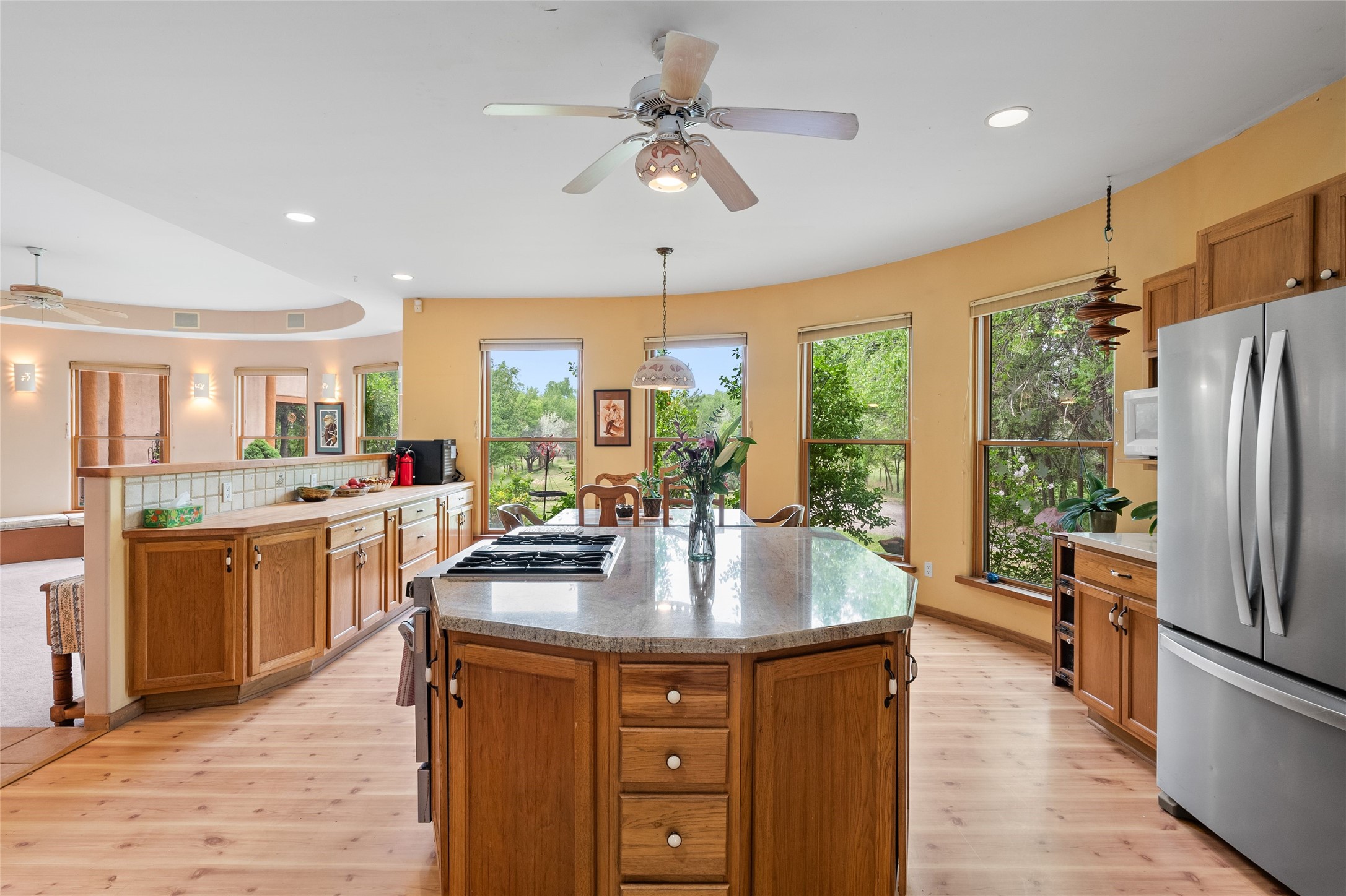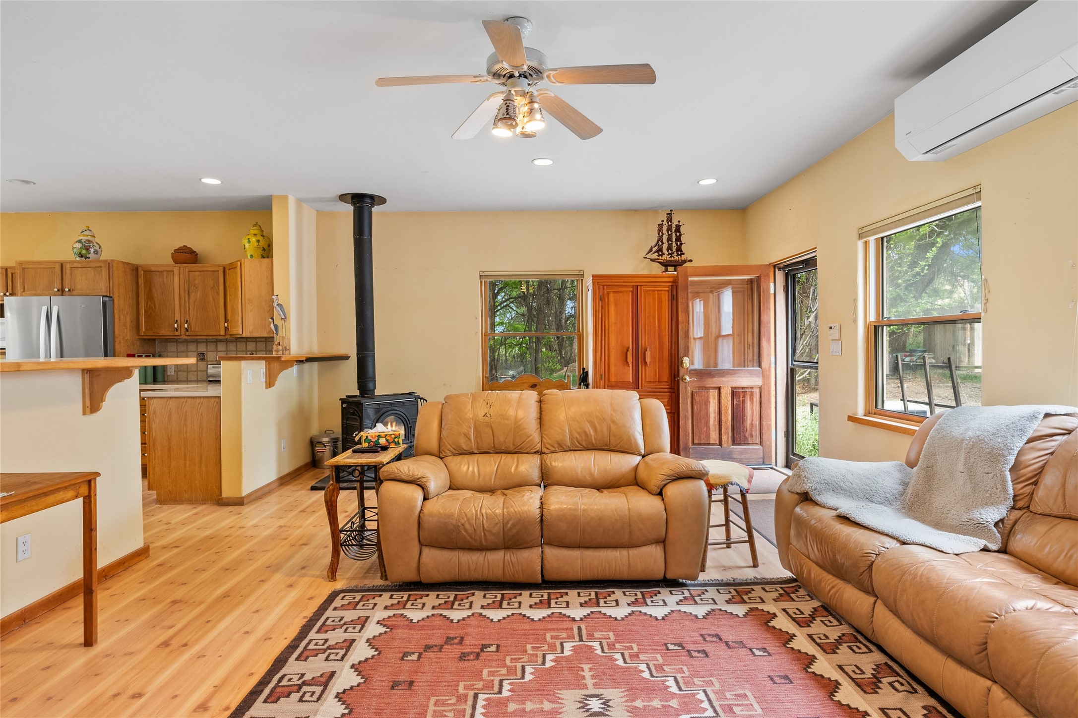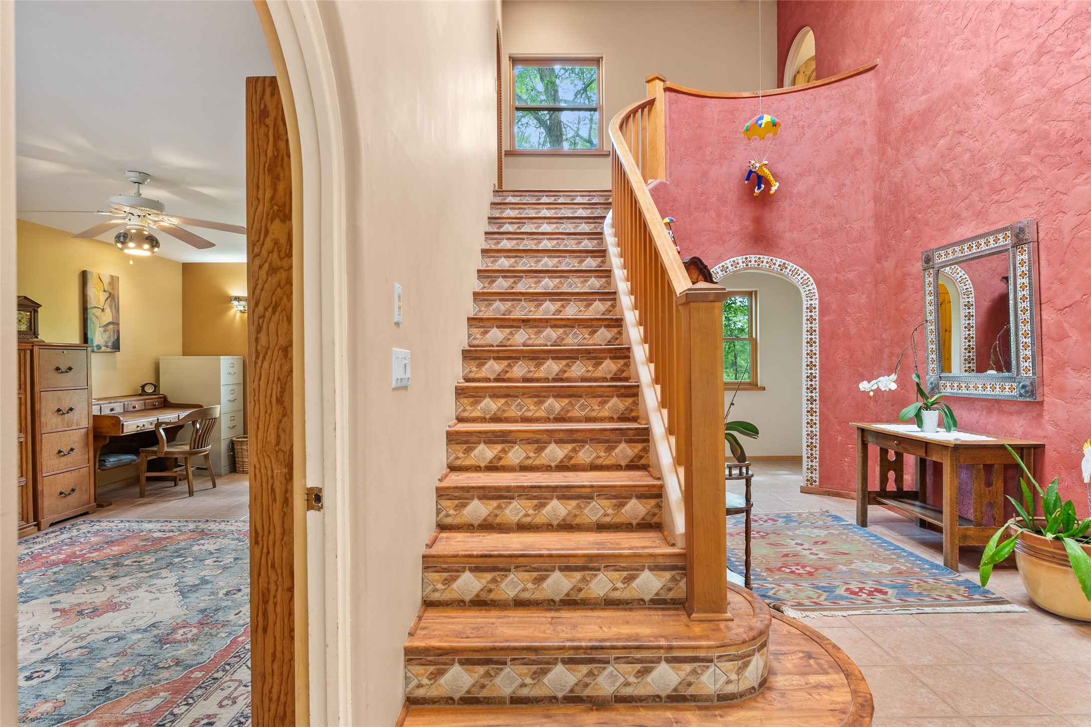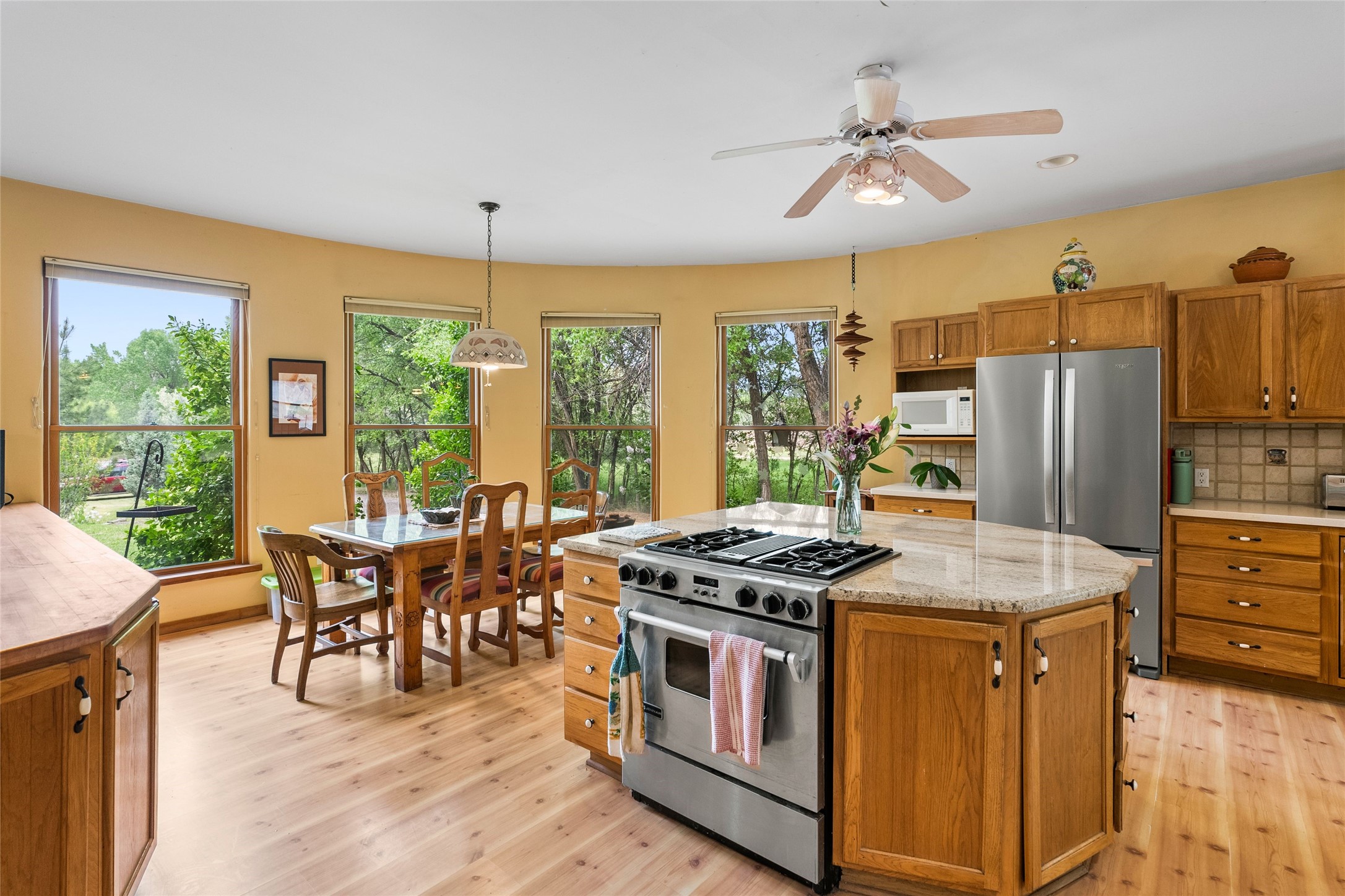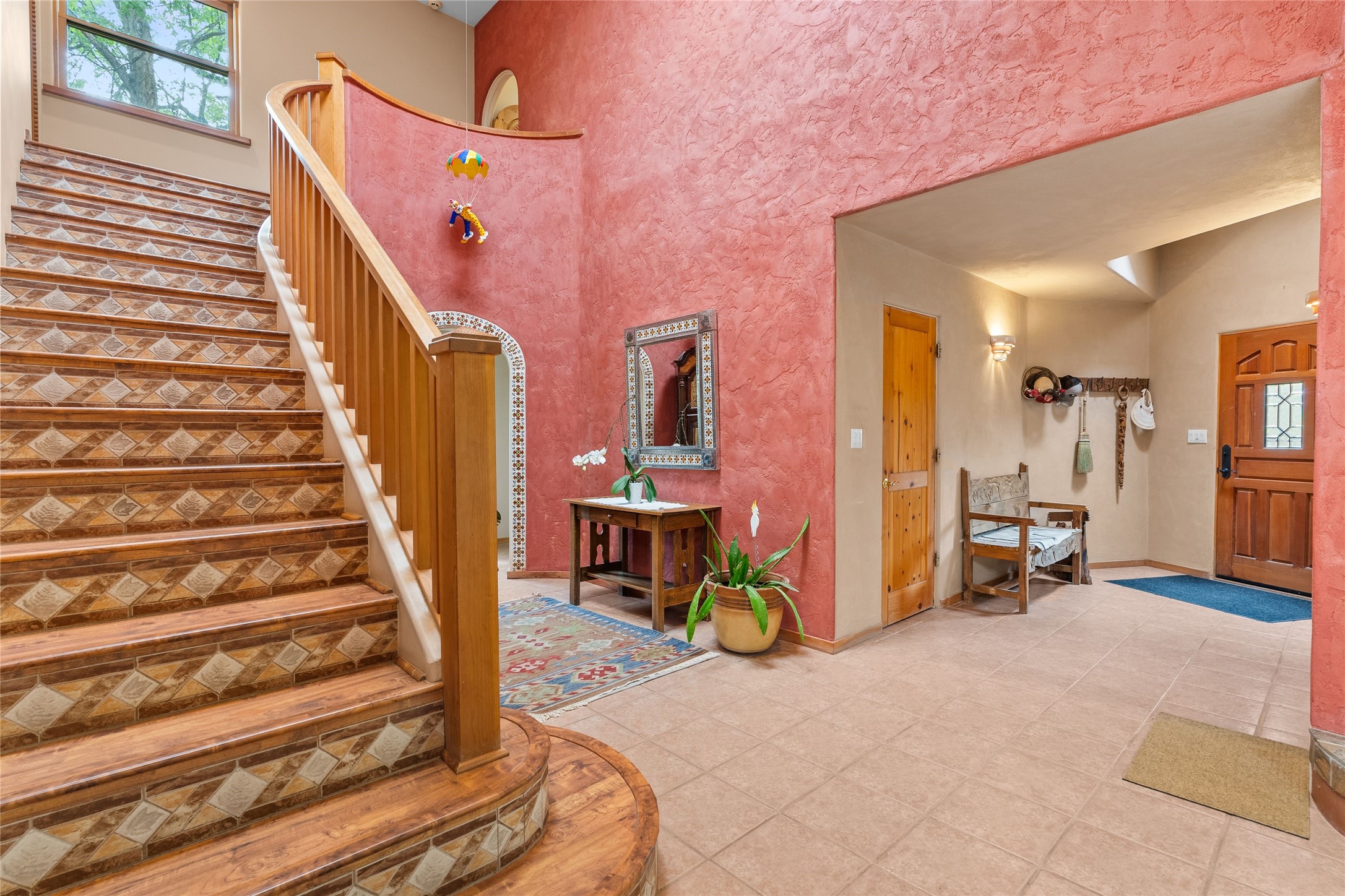 Welcome to 65 E. Sombrillo--Private and secluded--a stunning rural retreat nestled in a peaceful valley between mountain ranges and surrounded by small farming parcels. This custom-built, 4,007 sq. ft single-family home offers 3 bedrooms and 3 bathrooms, office and chapel, on over 2 acres of private, gated land. Built by Tyaga and Company, the home combines modern comfort with country charm, featuring active solar panels, radiant floor heating, ceiling fans in every room, and mini-split systems for efficient heating and cooling. Enjoy cozy evenings with 2 wood-burning fireplaces and a wood stove. The property includes a new boiler and hot water heater, a private well, 2.4 acre-feet of surface irrigation rights (just $150/year), underground sprinklers, a fully enclosed 350 sq ft chicken coop and a 75' by 30' fully enclosed dog run. The GACO-upgraded roof includes a 50-year warranty for peace of mind. River frontage, horse and farm animal-friendly, light-filled throughout, this home is perfect for those seeking tranquility without sacrificing convenience--located just 25 miles from of Santa Fe, with an easy commute to Los Alamos or Taos. Whether you're tending a garden, raising animals, or as a great base for hiking, river running and ski trips This property offers an exceptional lifestyle in the heart of Northern New Mexico.