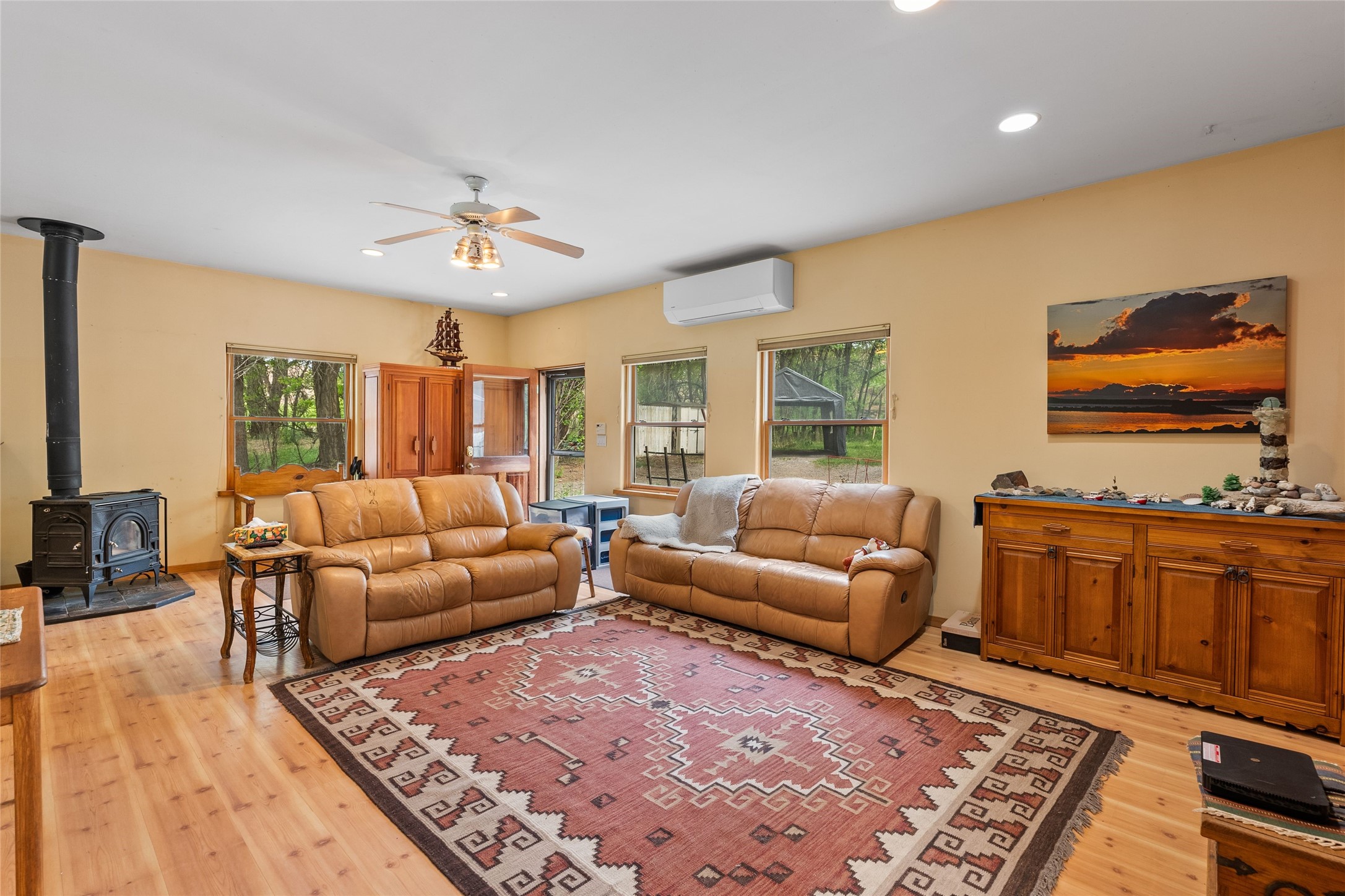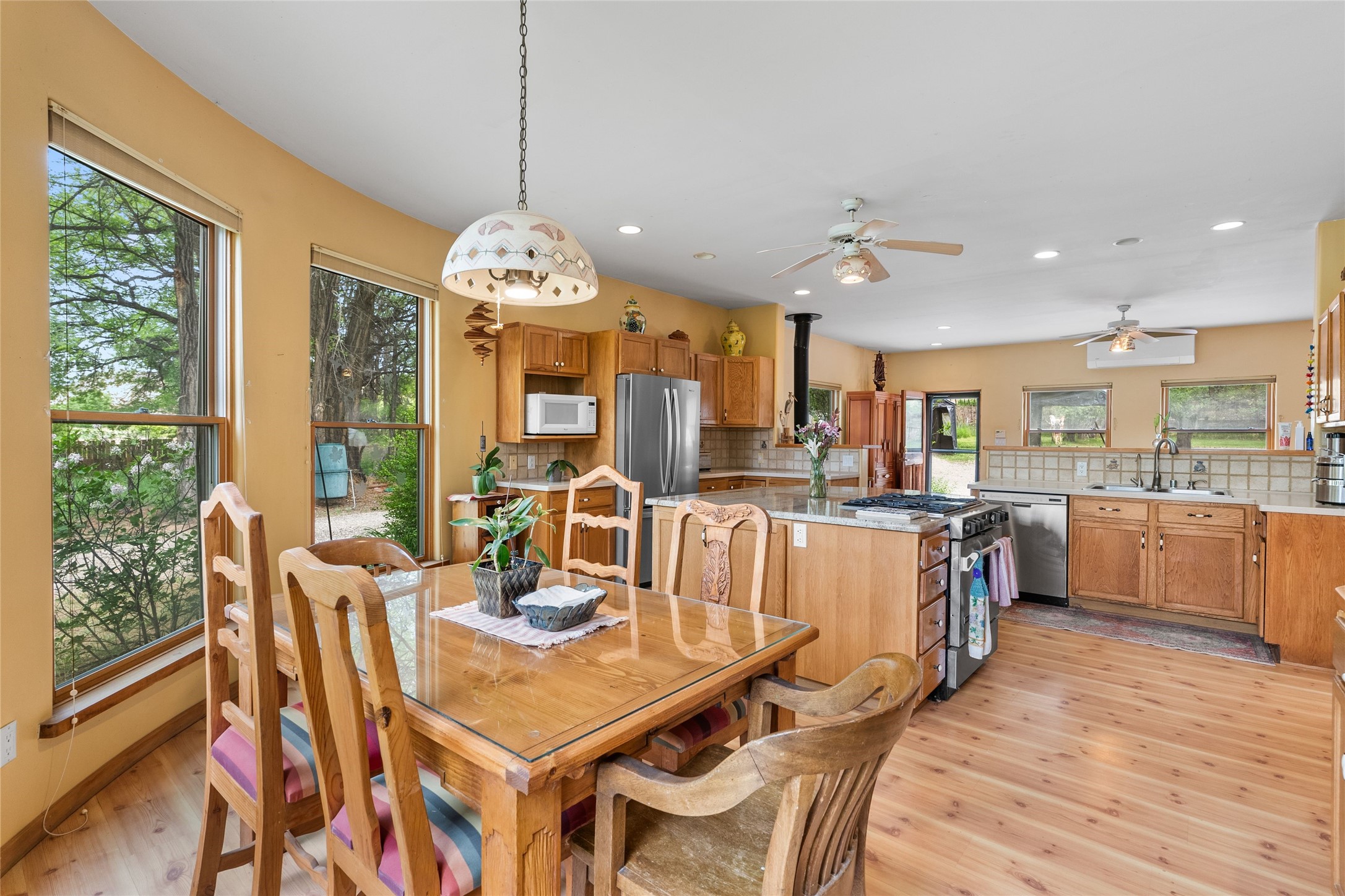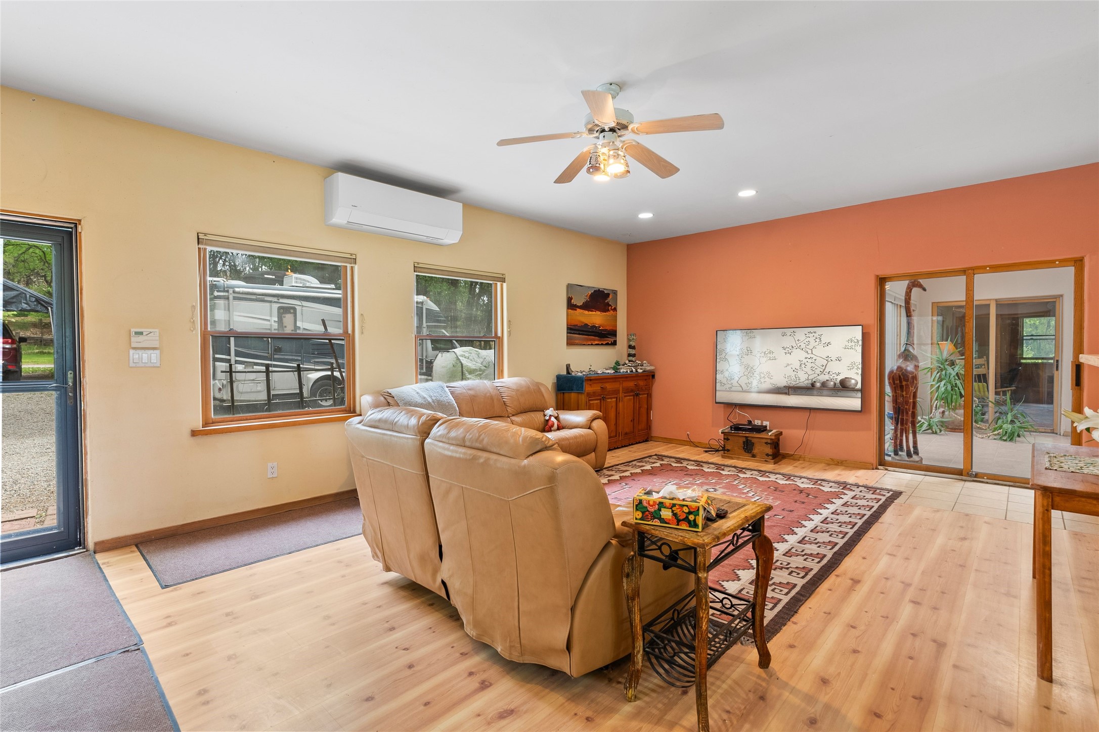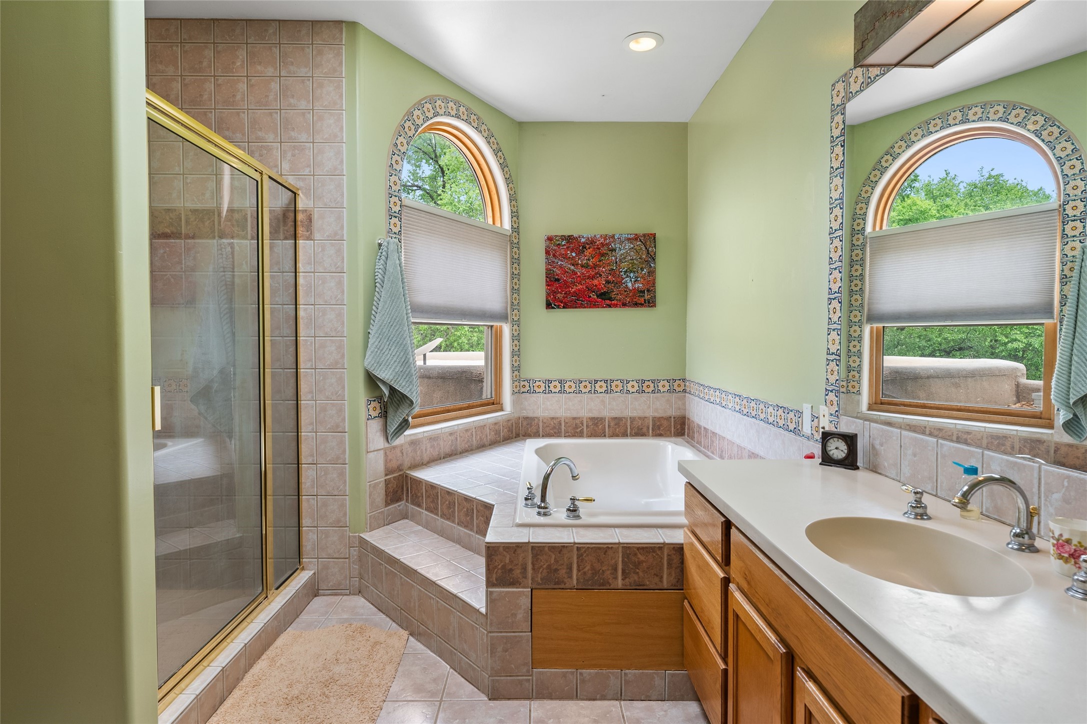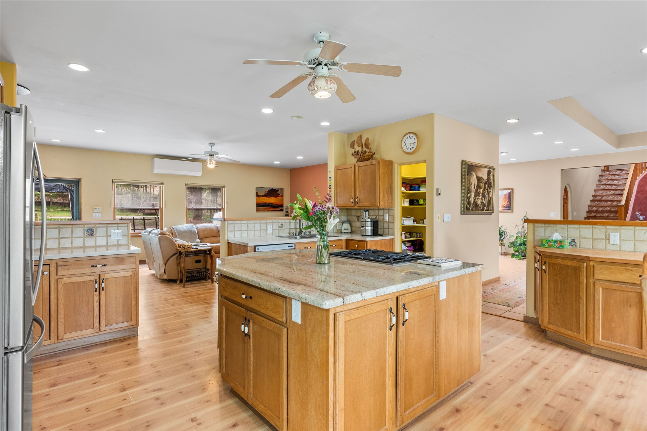 Welcome to 65 E. Sombrillo--Private and secluded--a stunning rural retreat nestled in a peaceful valley between mountain ranges and surrounded by small farming parcels. This custom-built, 4,007 sq. ft single-family home offers 3 bedrooms and 3 bathrooms, office and chapel, on over 2 acres of private, gated land. Built by Tyaga and Company, the home combines modern comfort with country charm, featuring active solar panels, radiant floor heating, ceiling fans in every room, and mini-split systems for efficient heating and cooling. Enjoy cozy evenings with 2 wood-burning fireplaces and a wood stove. The property includes a new boiler and hot water heater, a private well, 2.4 acre-feet of surface irrigation rights (just $150/year), underground sprinklers, a fully enclosed 350 sq ft chicken coop and a 75' by 30' fully enclosed dog run. The GACO-upgraded roof includes a 50-year warranty for peace of mind. River frontage, horse and farm animal-friendly, light-filled throughout, this home is perfect for those seeking tranquility without sacrificing convenience--located just 25 miles from of Santa Fe, with an easy commute to Los Alamos or Taos. Whether you're tending a garden, raising animals, or as a great base for hiking, river running and ski trips This property offers an exceptional lifestyle in the heart of Northern New Mexico.