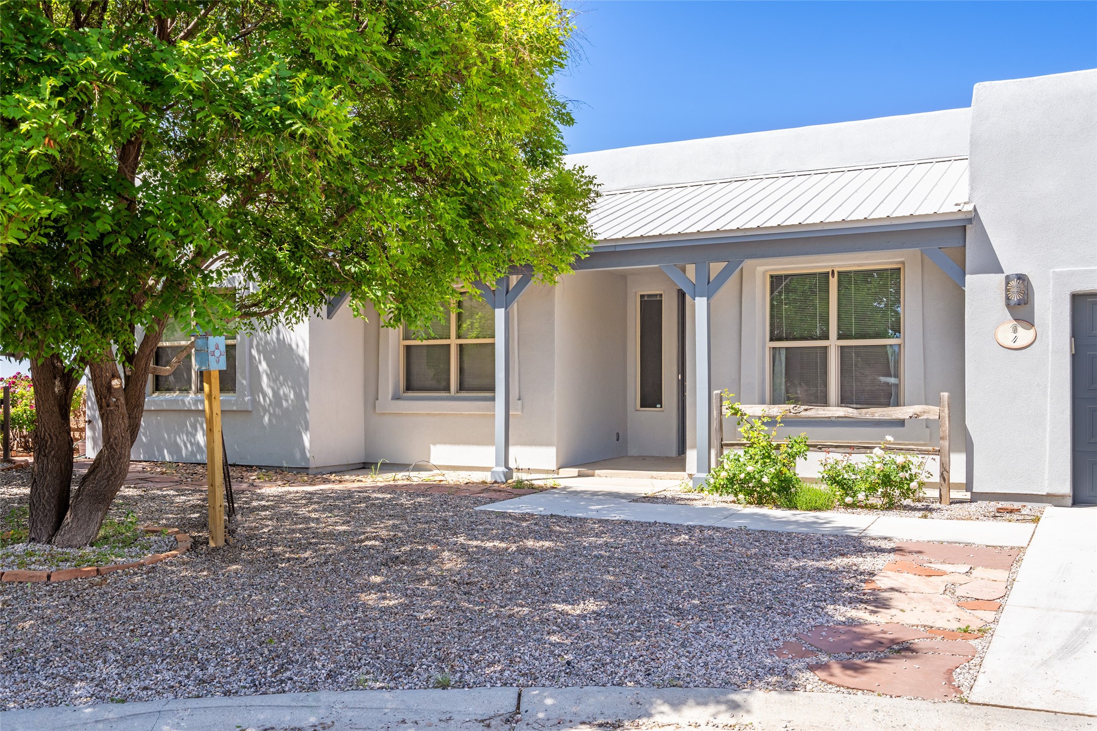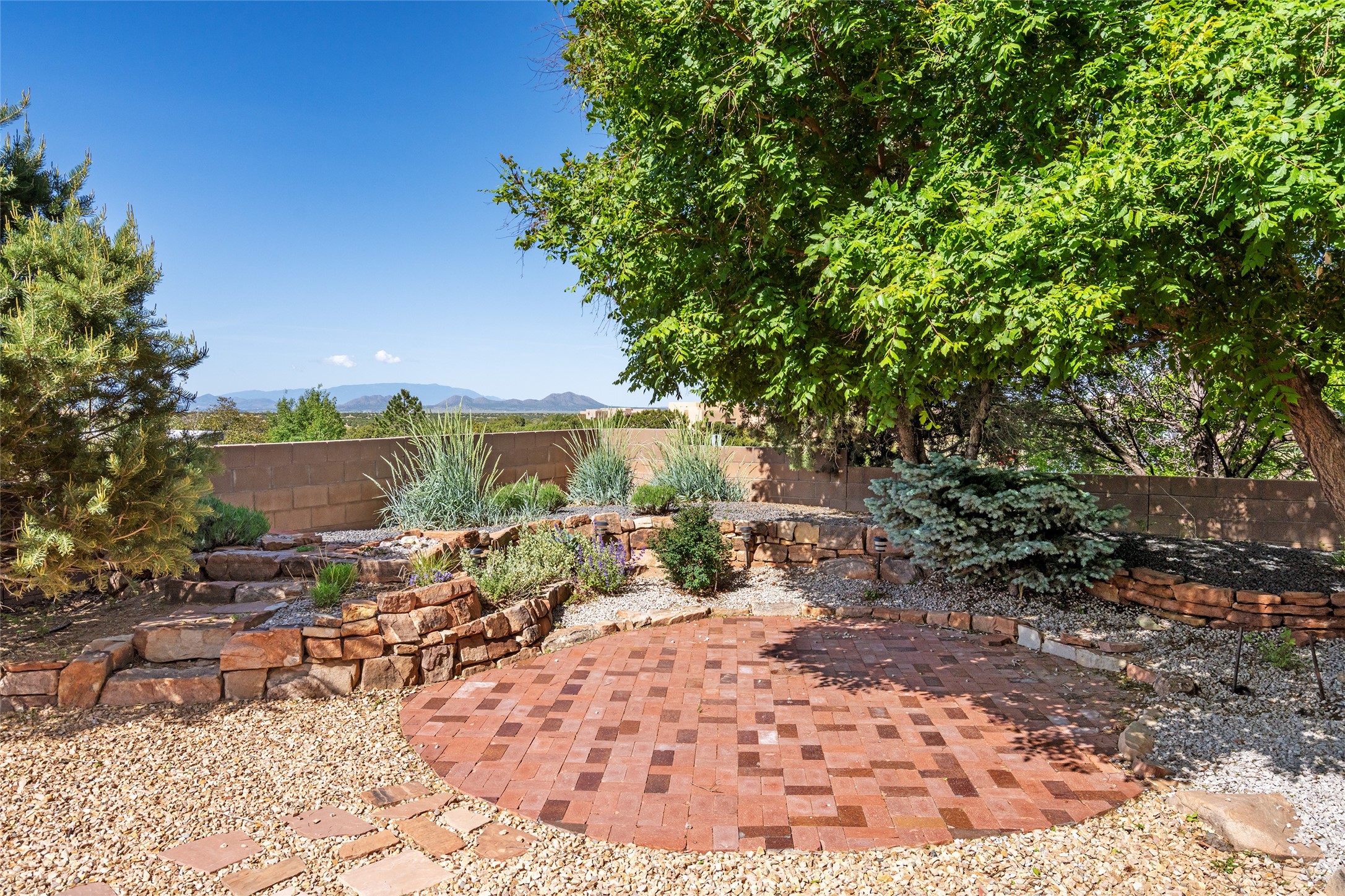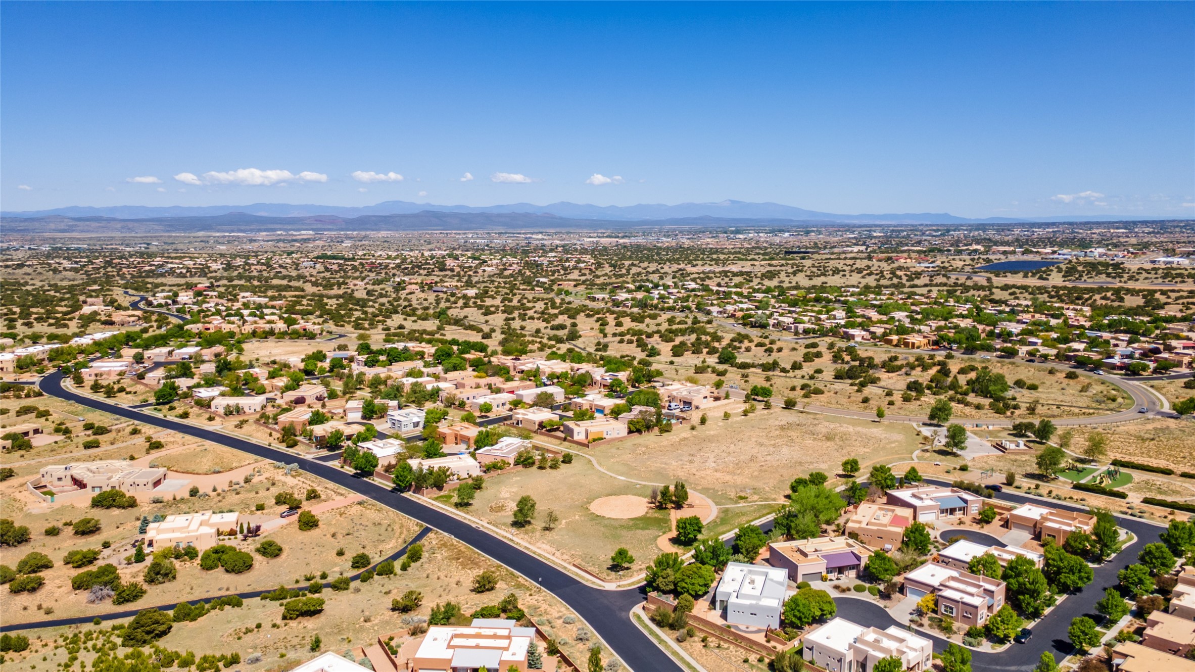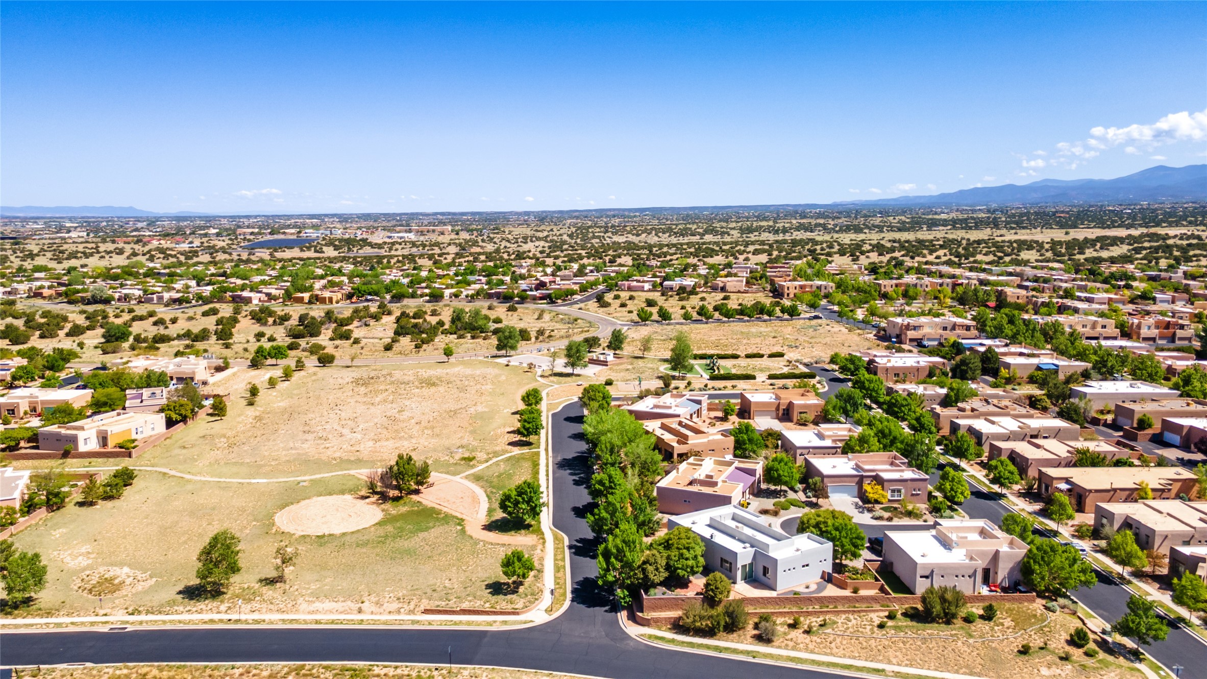 Enjoy panoramic views of the Ortiz and Sandia Mountains from this beautifully maintained single-level home in the sought-after community of Rancho Viejo. Thoughtfully designed for comfort and versatility, and painted to exude a contemporary flair, this open-concept residence features stylish tiled floors, a cozy kiva wood-burning fireplace, and abundant natural light throughout. The private primary suite is a true retreat, offering a fully updated bathroom with a stunning tiled walk-in shower, dual vanities, and a spacious walk-in closet. On the opposite side of the home, two additional bedrooms share a well-appointed guest bath--one of which makes an ideal home office or creative space. A flexible den just off the main living area provides additional options as a media room, formal dining space, hobby area, or second office--customize it to suit your lifestyle. Outside, the beautifully landscaped lot showcases native plants, mature trees, flowering rose bushes, and lovely flagstone patios and stone walkways. With no neighbors directly behind the home and views of a large community park and estate lots, the setting offers peace, privacy, and an exceptional sense of space. Rancho Viejo is a vibrant community offering over 15 miles of paved walking trails, several community parks, and well-maintained open spaces--all just 20 minutes from the Santa Fe Plaza. Dining, shopping, and daily conveniences are just minutes away. Don't miss the opportunity to own this serene and stylish home with unmatched views--schedule your showing today!