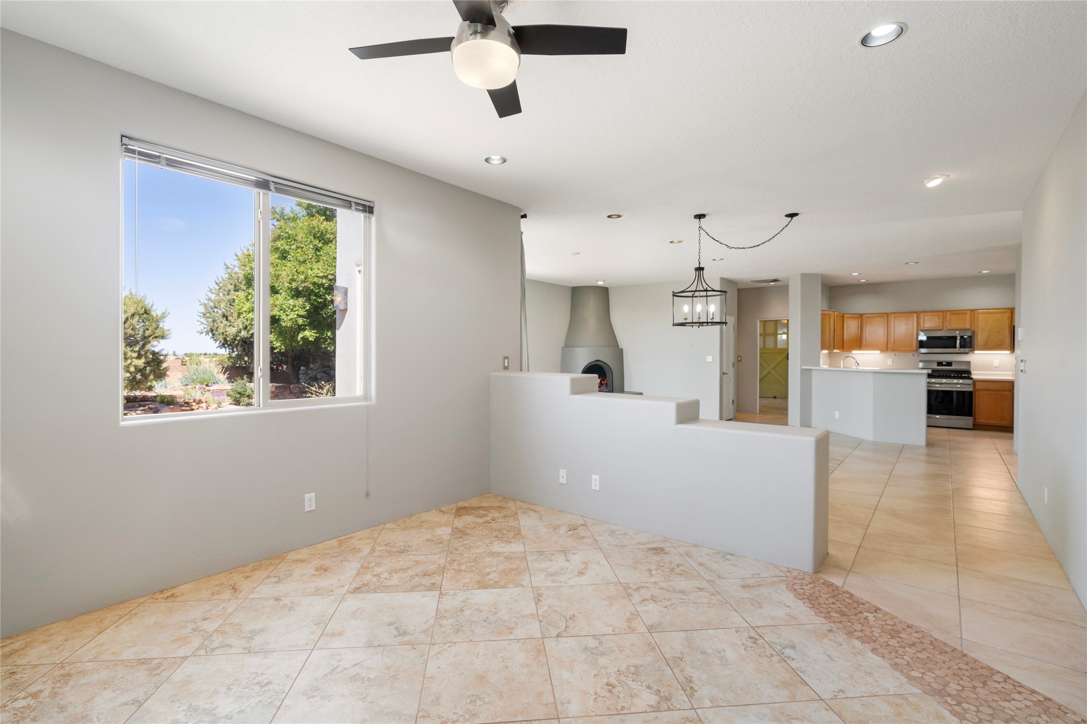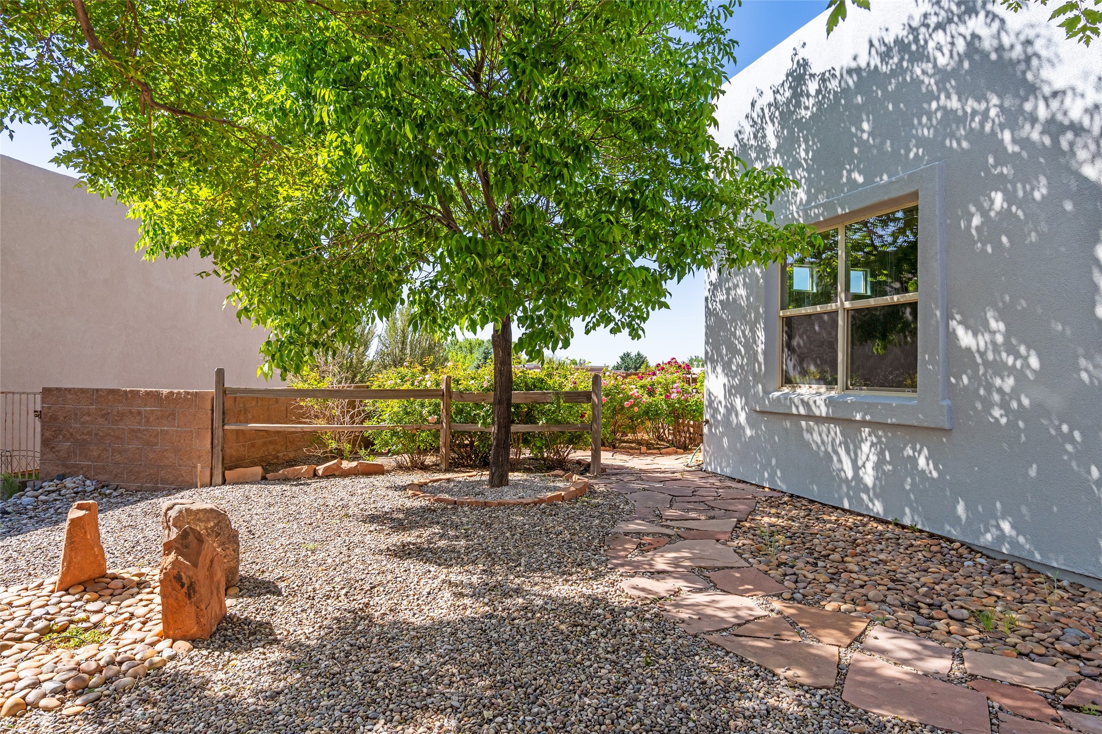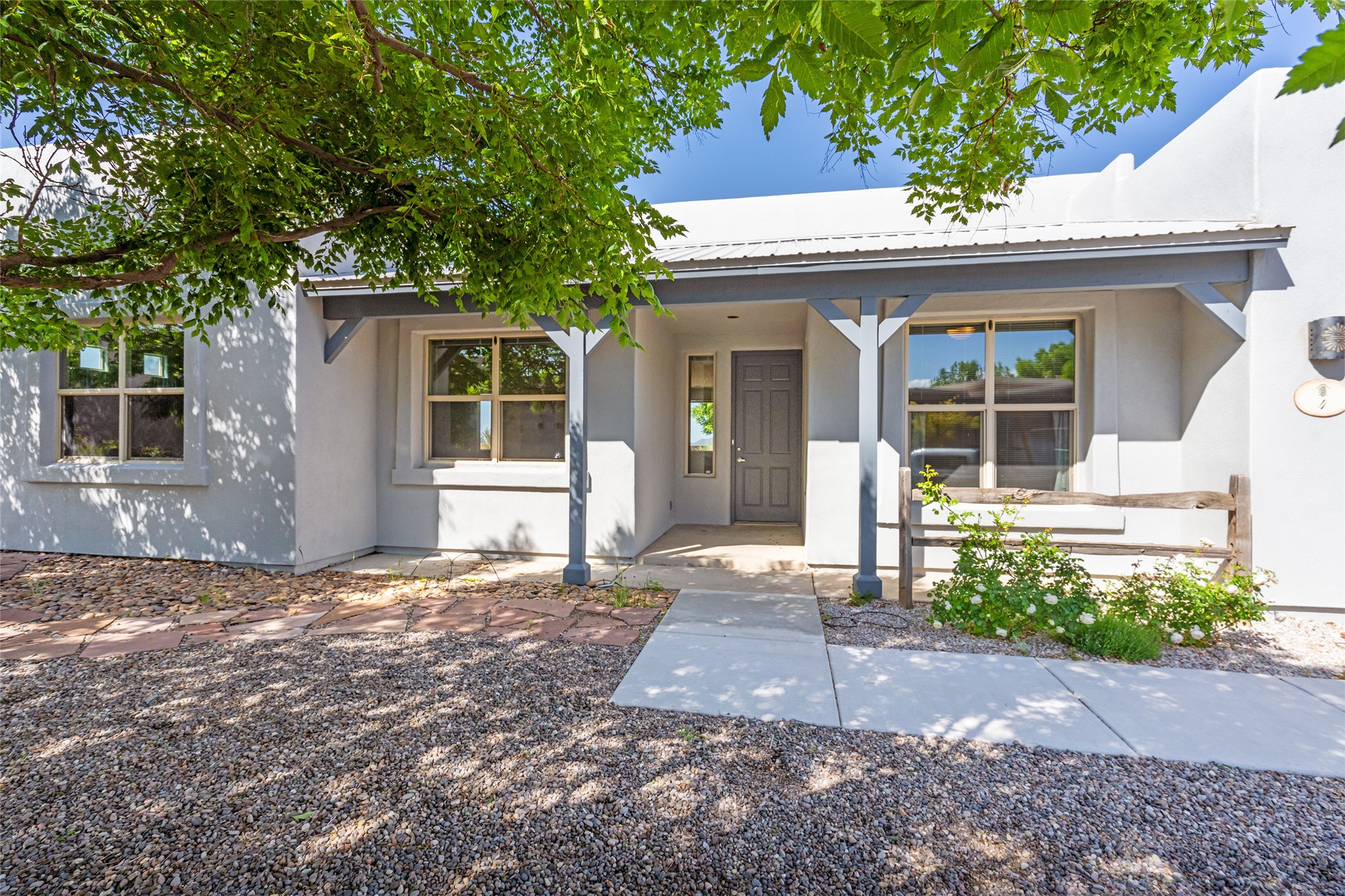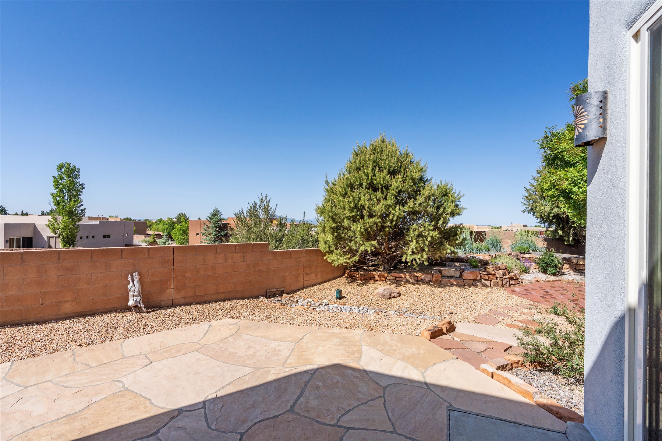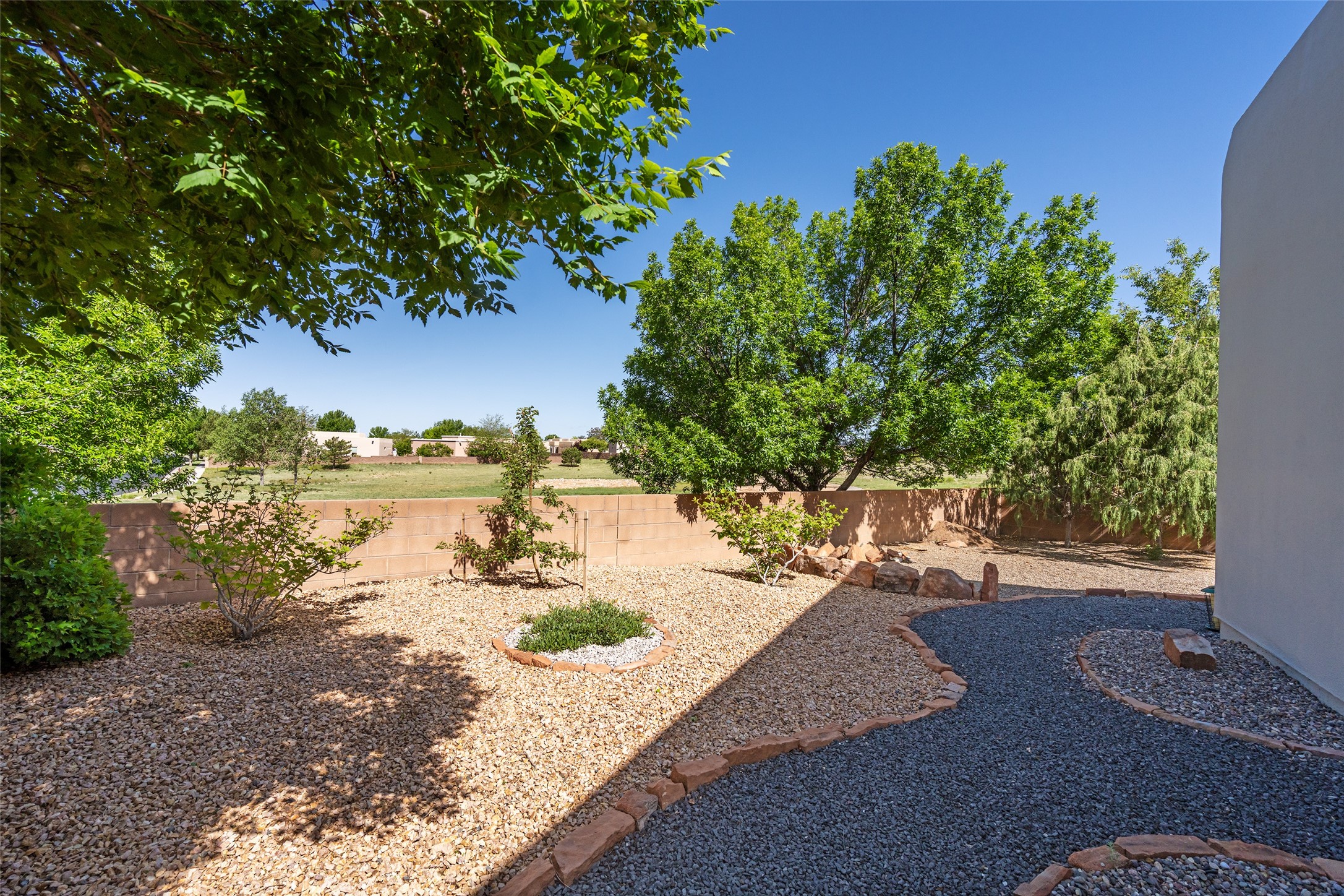 Enjoy panoramic views of the Ortiz and Sandia Mountains from this beautifully maintained single-level home in the sought-after community of Rancho Viejo. Thoughtfully designed for comfort and versatility, and painted to exude a contemporary flair, this open-concept residence features stylish tiled floors, a cozy kiva wood-burning fireplace, and abundant natural light throughout. The private primary suite is a true retreat, offering a fully updated bathroom with a stunning tiled walk-in shower, dual vanities, and a spacious walk-in closet. On the opposite side of the home, two additional bedrooms share a well-appointed guest bath--one of which makes an ideal home office or creative space. A flexible den just off the main living area provides additional options as a media room, formal dining space, hobby area, or second office--customize it to suit your lifestyle. Outside, the beautifully landscaped lot showcases native plants, mature trees, flowering rose bushes, and lovely flagstone patios and stone walkways. With no neighbors directly behind the home and views of a large community park and estate lots, the setting offers peace, privacy, and an exceptional sense of space. Rancho Viejo is a vibrant community offering over 15 miles of paved walking trails, several community parks, and well-maintained open spaces--all just 20 minutes from the Santa Fe Plaza. Dining, shopping, and daily conveniences are just minutes away. Don't miss the opportunity to own this serene and stylish home with unmatched views--schedule your showing today!
