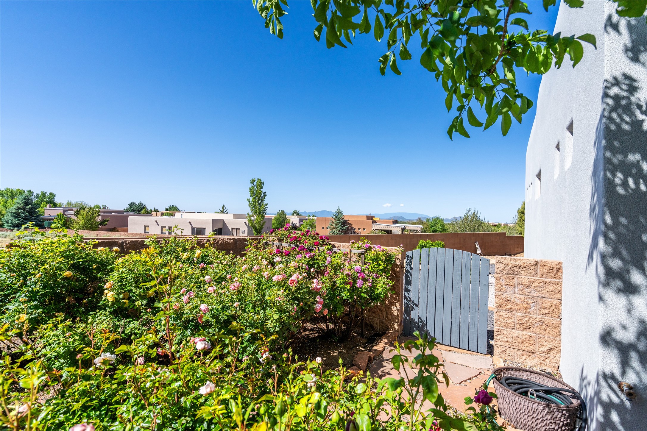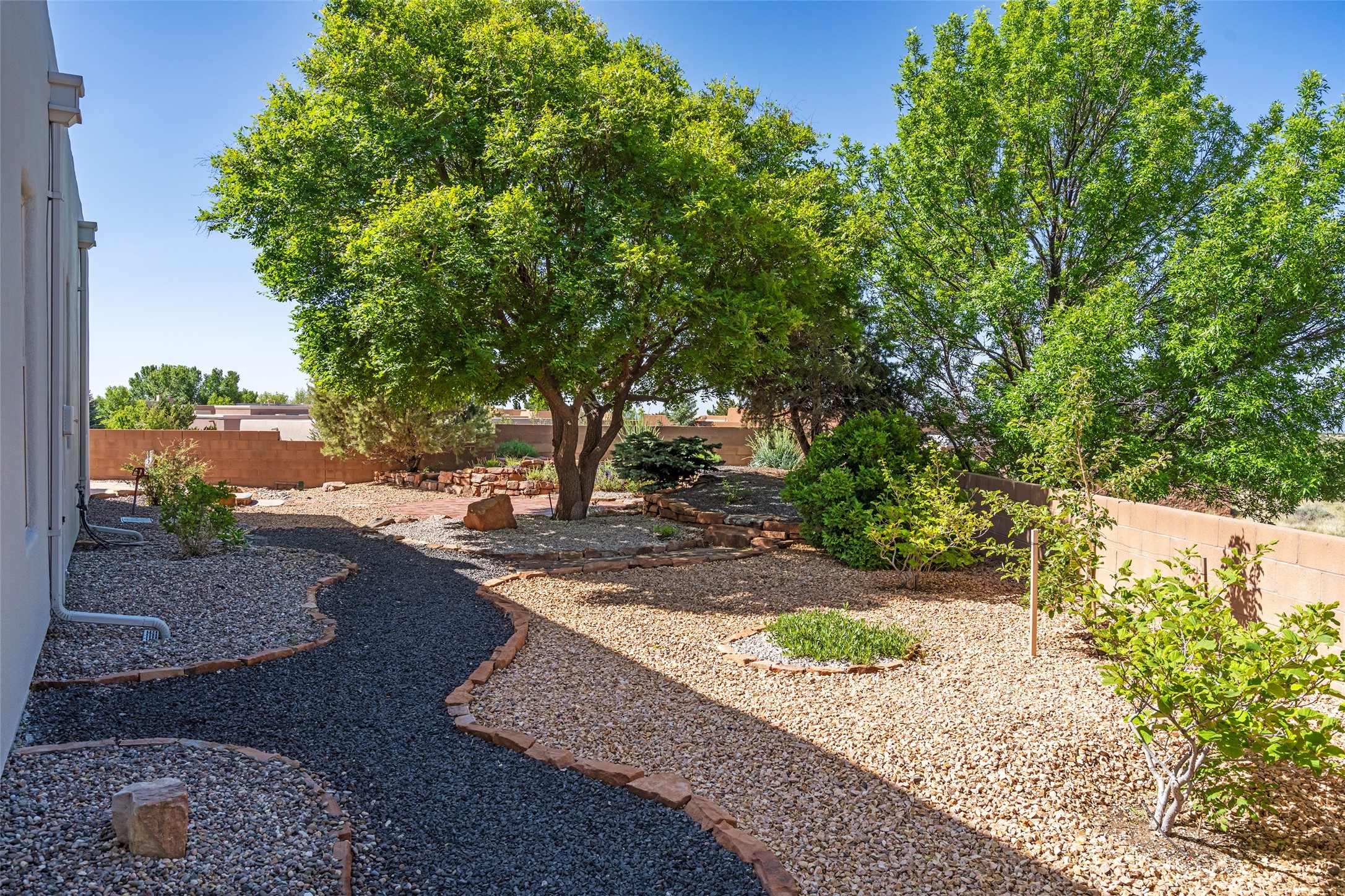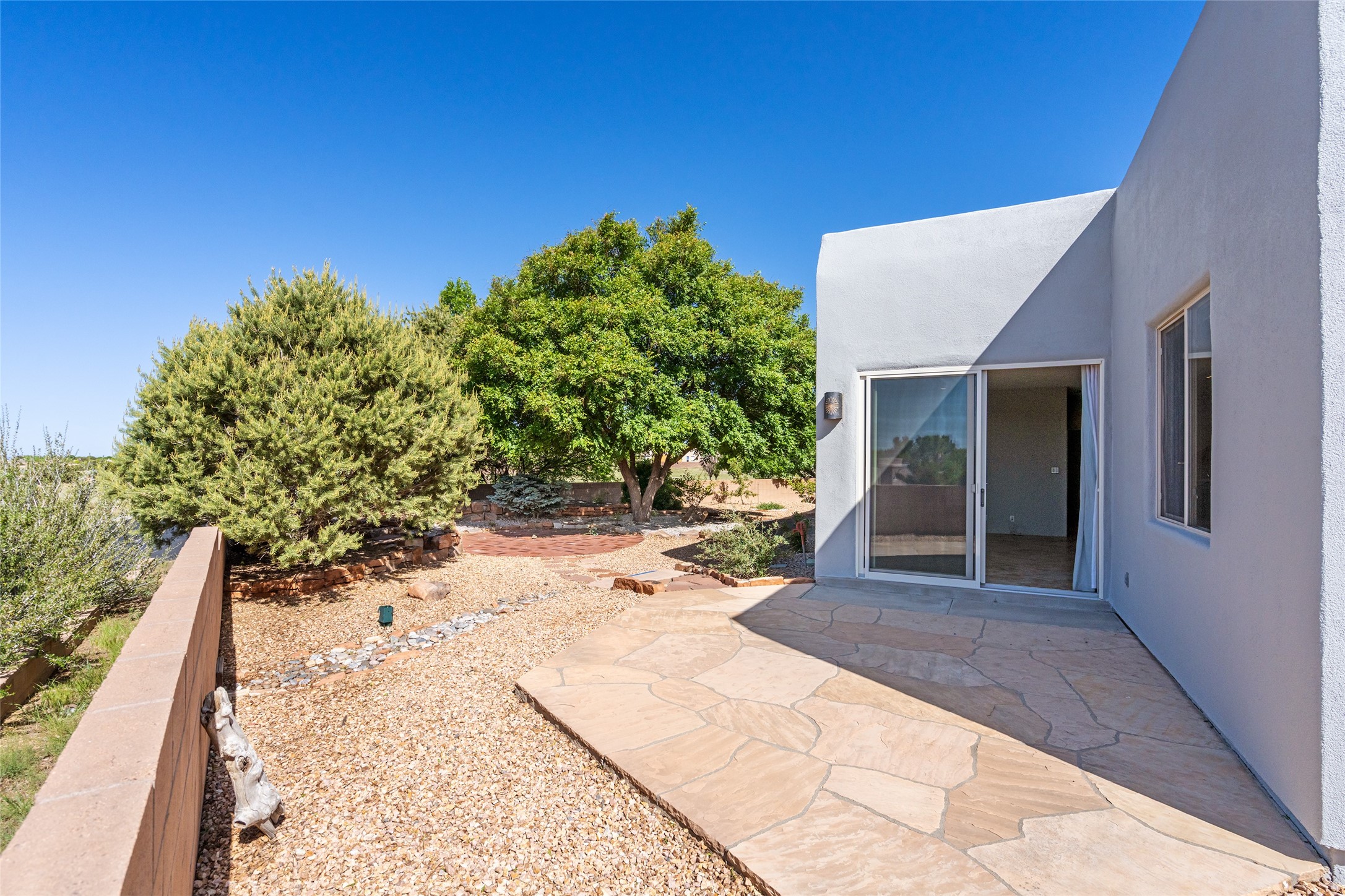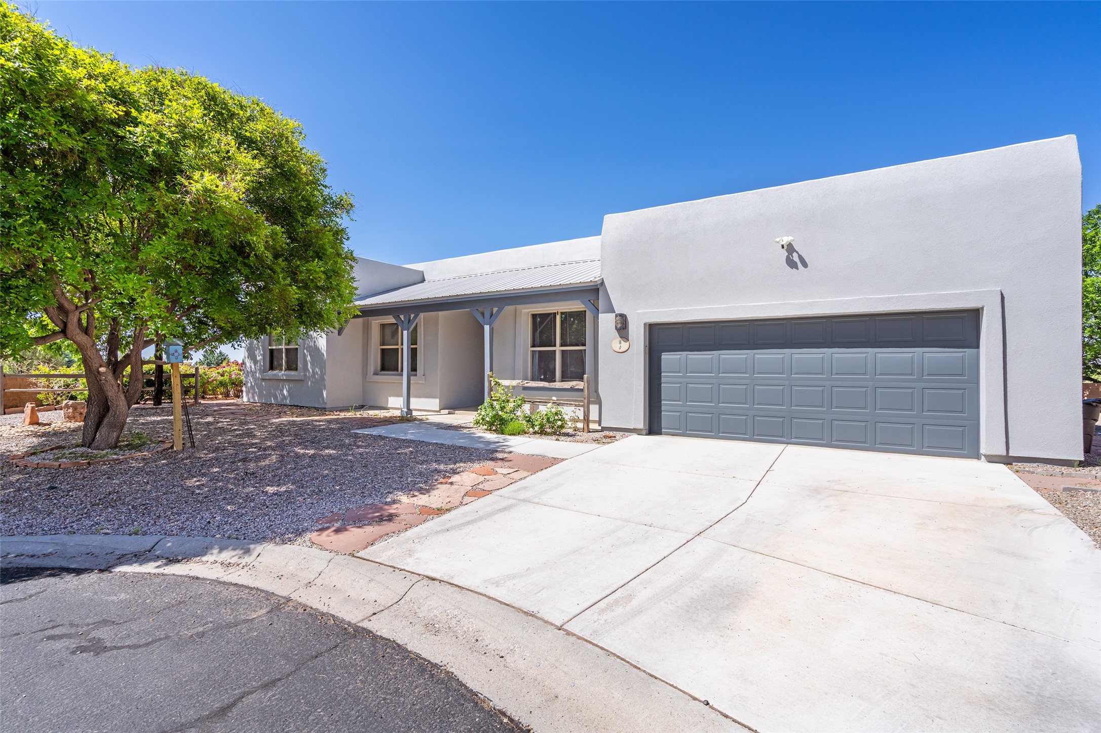 Enjoy panoramic views of the Ortiz and Sandia Mountains from this beautifully maintained single-level home in the sought-after community of Rancho Viejo. Thoughtfully designed for comfort and versatility, and painted to exude a contemporary flair, this open-concept residence features stylish tiled floors, a cozy kiva wood-burning fireplace, and abundant natural light throughout. The private primary suite is a true retreat, offering a fully updated bathroom with a stunning tiled walk-in shower, dual vanities, and a spacious walk-in closet. On the opposite side of the home, two additional bedrooms share a well-appointed guest bath--one of which makes an ideal home office or creative space. A flexible den just off the main living area provides additional options as a media room, formal dining space, hobby area, or second office--customize it to suit your lifestyle. Outside, the beautifully landscaped lot showcases native plants, mature trees, flowering rose bushes, and lovely flagstone patios and stone walkways. With no neighbors directly behind the home and views of a large community park and estate lots, the setting offers peace, privacy, and an exceptional sense of space. Rancho Viejo is a vibrant community offering over 15 miles of paved walking trails, several community parks, and well-maintained open spaces--all just 20 minutes from the Santa Fe Plaza. Dining, shopping, and daily conveniences are just minutes away. Don't miss the opportunity to own this serene and stylish home with unmatched views--schedule your showing today!