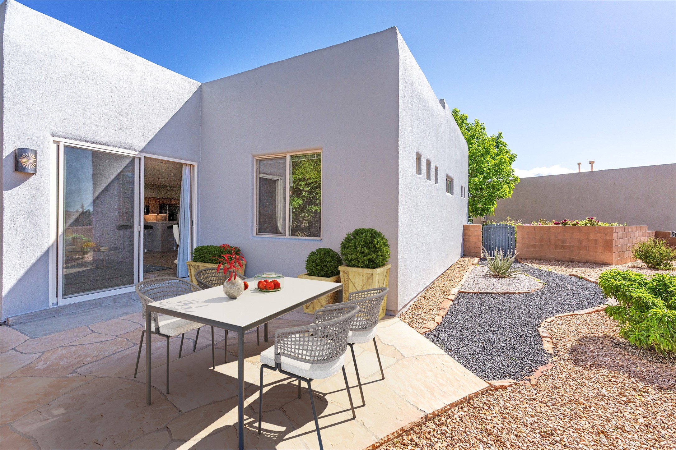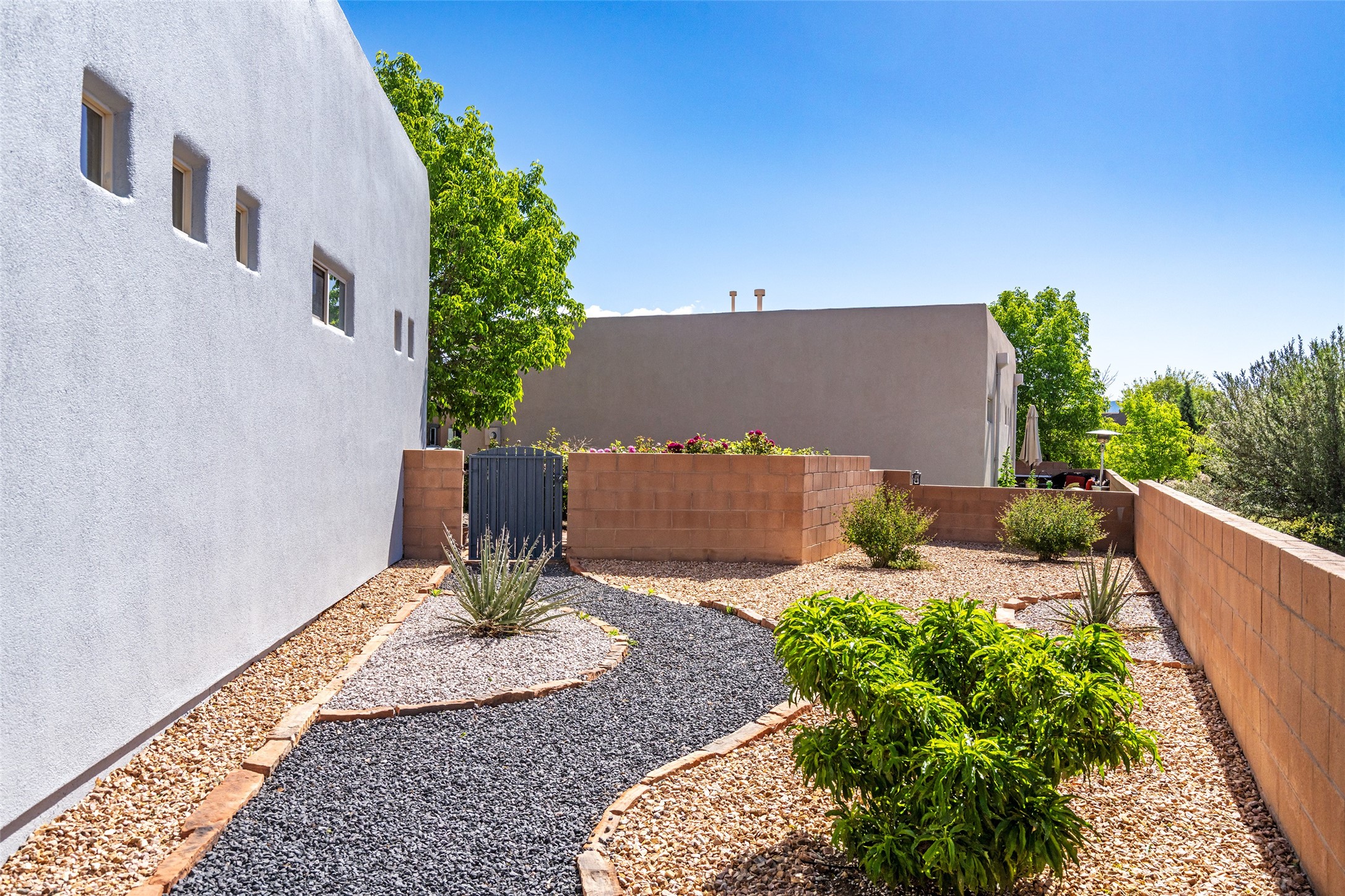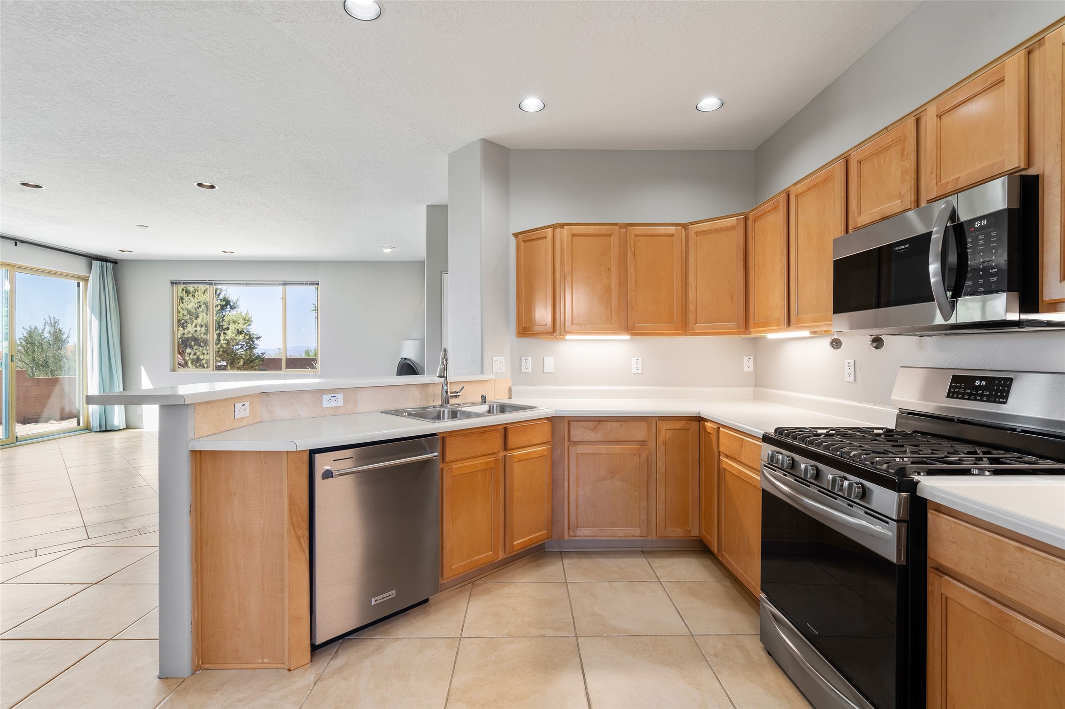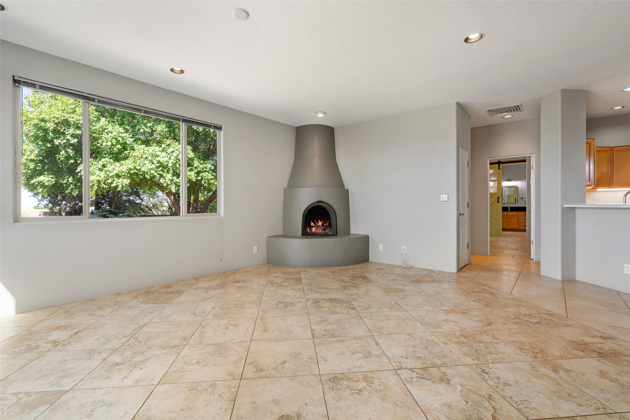 Enjoy panoramic views of the Ortiz and Sandia Mountains from this beautifully maintained single-level home in the sought-after community of Rancho Viejo. Thoughtfully designed for comfort and versatility, and painted to exude a contemporary flair, this open-concept residence features stylish tiled floors, a cozy kiva wood-burning fireplace, and abundant natural light throughout. The private primary suite is a true retreat, offering a fully updated bathroom with a stunning tiled walk-in shower, dual vanities, and a spacious walk-in closet. On the opposite side of the home, two additional bedrooms share a well-appointed guest bath--one of which makes an ideal home office or creative space. A flexible den just off the main living area provides additional options as a media room, formal dining space, hobby area, or second office--customize it to suit your lifestyle. Outside, the beautifully landscaped lot showcases native plants, mature trees, flowering rose bushes, and lovely flagstone patios and stone walkways. With no neighbors directly behind the home and views of a large community park and estate lots, the setting offers peace, privacy, and an exceptional sense of space. Rancho Viejo is a vibrant community offering over 15 miles of paved walking trails, several community parks, and well-maintained open spaces--all just 20 minutes from the Santa Fe Plaza. Dining, shopping, and daily conveniences are just minutes away. Don't miss the opportunity to own this serene and stylish home with unmatched views--schedule your showing today!