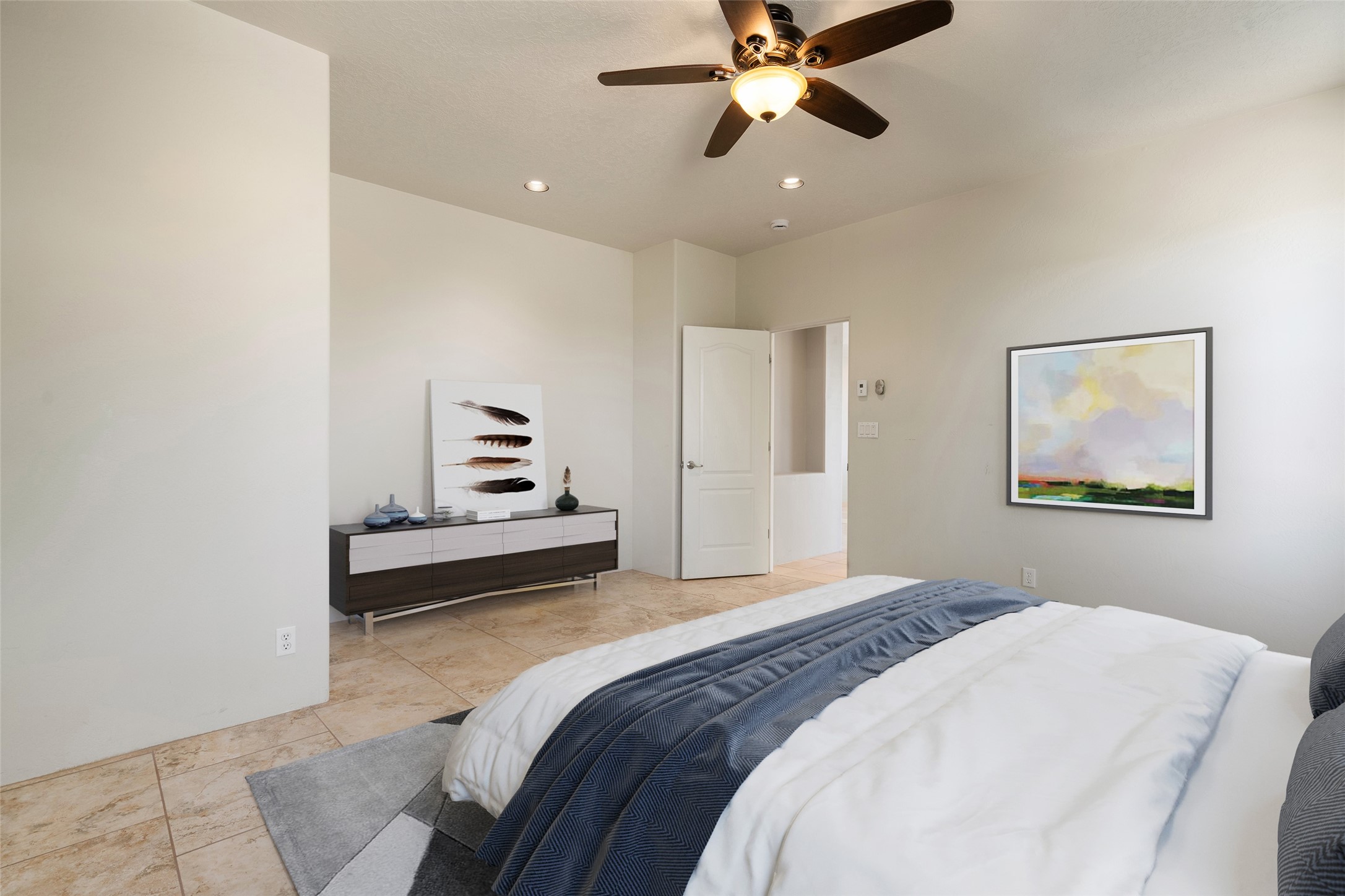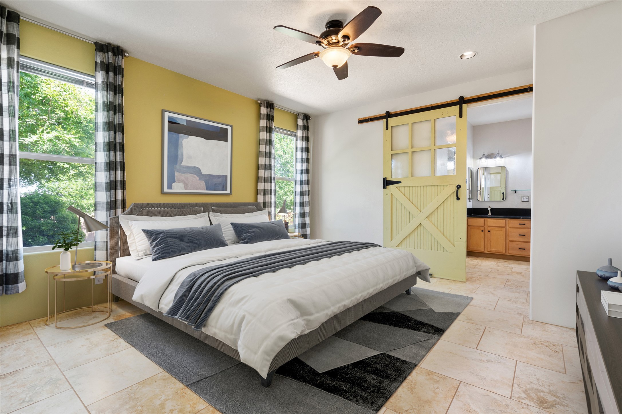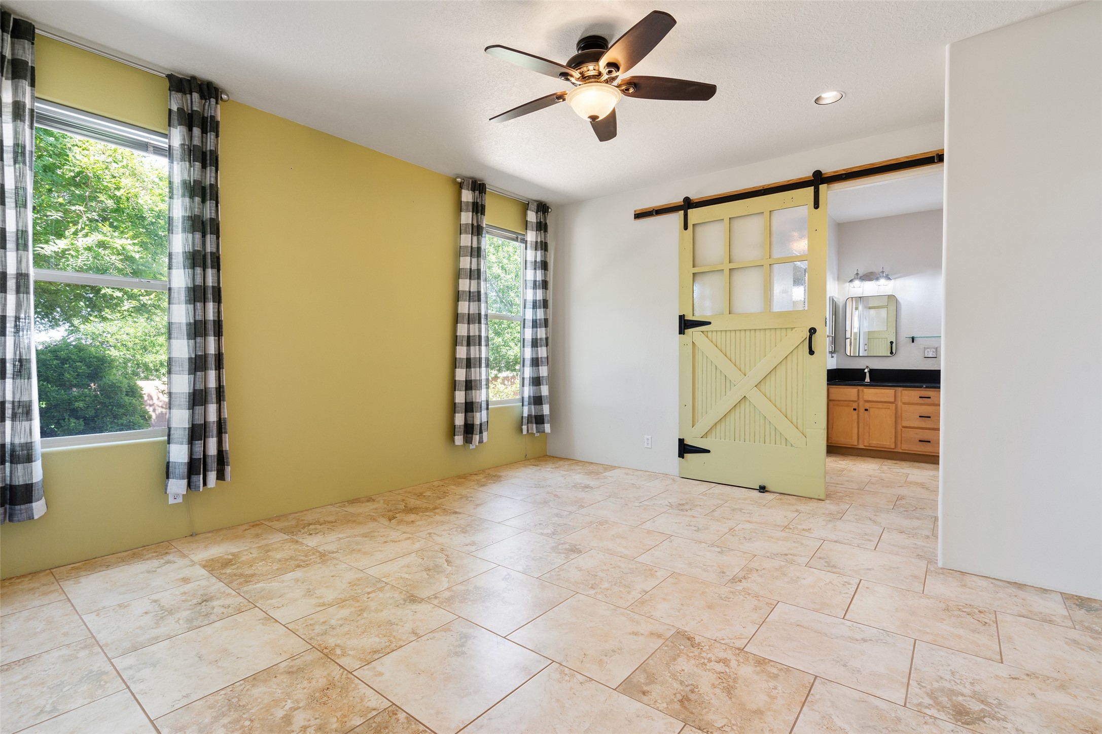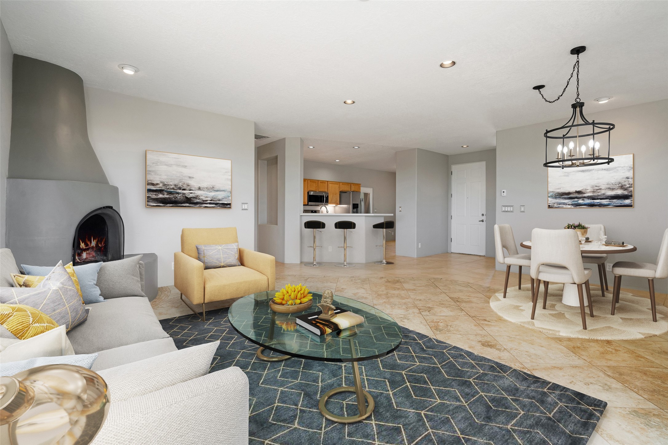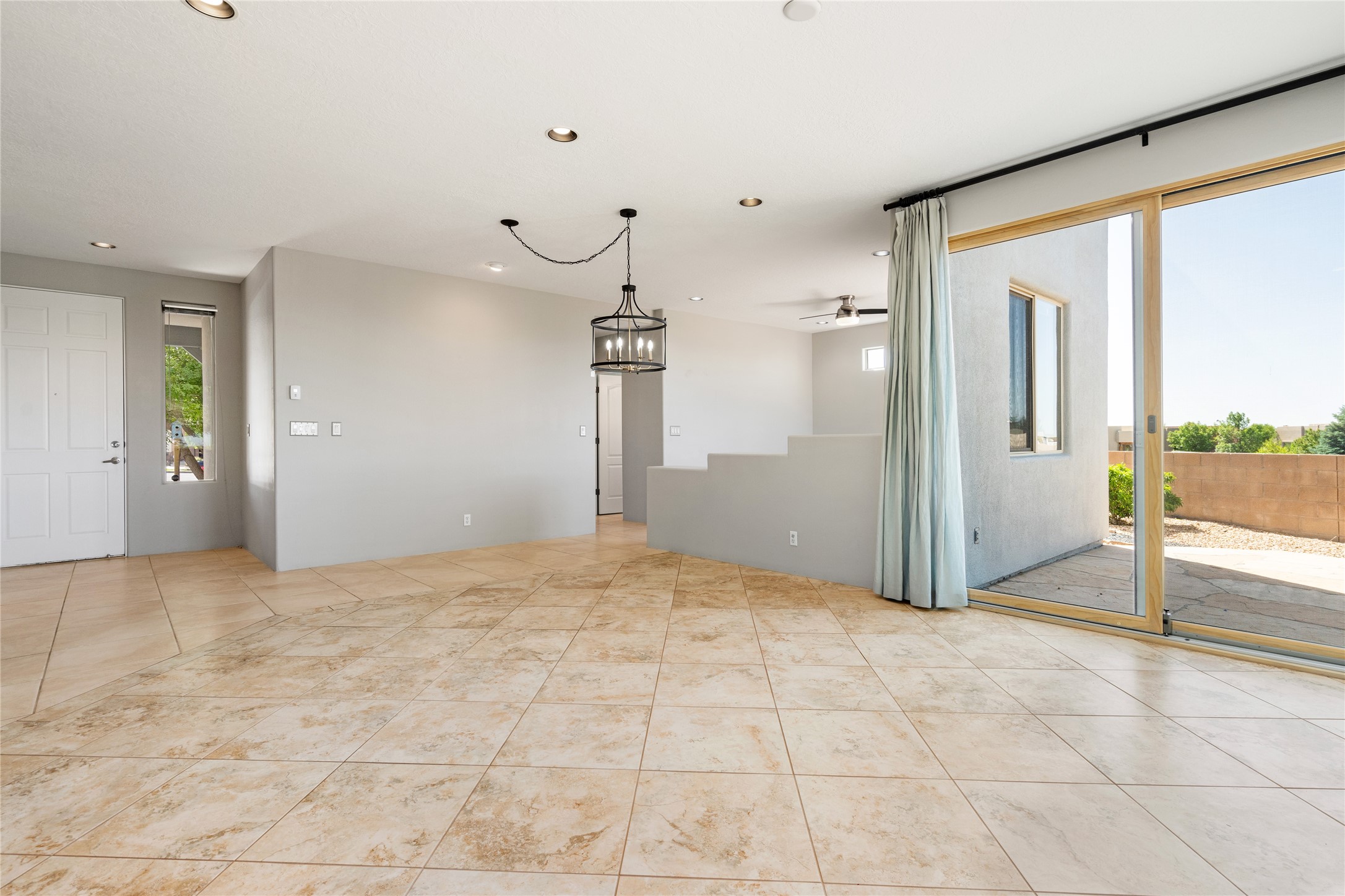 Enjoy panoramic views of the Ortiz and Sandia Mountains from this beautifully maintained single-level home in the sought-after community of Rancho Viejo. Thoughtfully designed for comfort and versatility, and painted to exude a contemporary flair, this open-concept residence features stylish tiled floors, a cozy kiva wood-burning fireplace, and abundant natural light throughout. The private primary suite is a true retreat, offering a fully updated bathroom with a stunning tiled walk-in shower, dual vanities, and a spacious walk-in closet. On the opposite side of the home, two additional bedrooms share a well-appointed guest bath--one of which makes an ideal home office or creative space. A flexible den just off the main living area provides additional options as a media room, formal dining space, hobby area, or second office--customize it to suit your lifestyle. Outside, the beautifully landscaped lot showcases native plants, mature trees, flowering rose bushes, and lovely flagstone patios and stone walkways. With no neighbors directly behind the home and views of a large community park and estate lots, the setting offers peace, privacy, and an exceptional sense of space. Rancho Viejo is a vibrant community offering over 15 miles of paved walking trails, several community parks, and well-maintained open spaces--all just 20 minutes from the Santa Fe Plaza. Dining, shopping, and daily conveniences are just minutes away. Don't miss the opportunity to own this serene and stylish home with unmatched views--schedule your showing today!