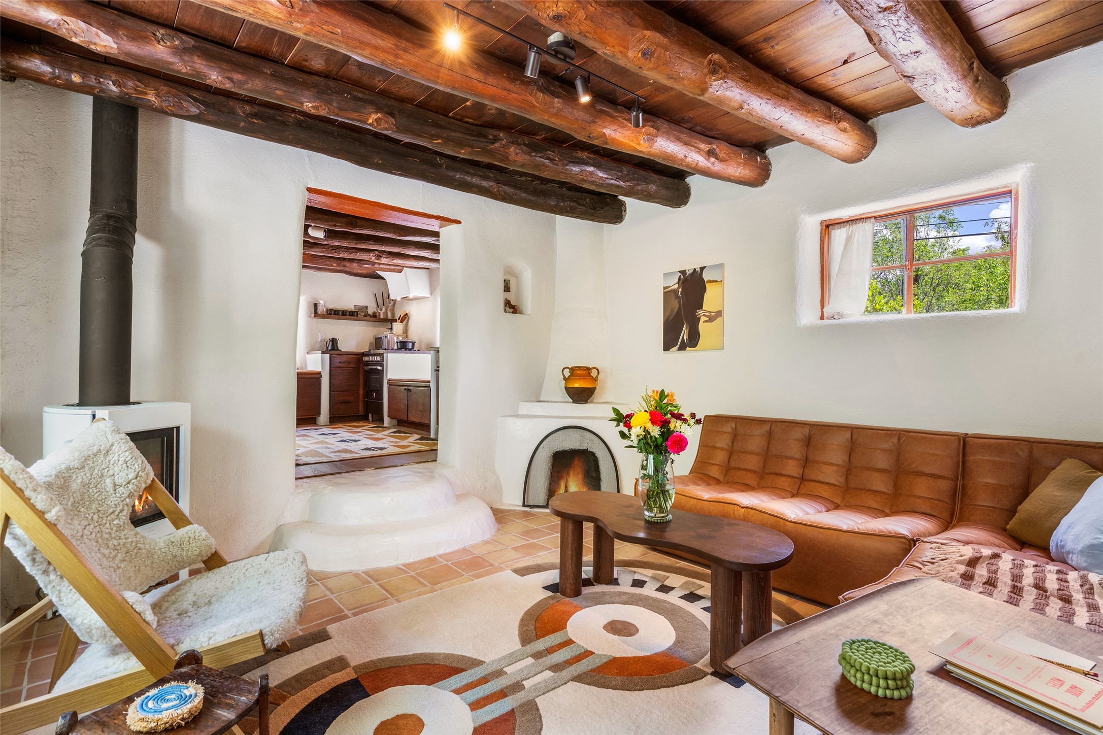 Adorable, authentic adobe home sits atop an absolutely perfect, lush 3/4 acre Canyon Road lot overlooking 260 feet of river frontage, huge trees, meadow with fields/orchard area. Simply charming adobe features 1 bedroom 1 bath with beautiful viga ceilings, 2 kiva fireplaces, gas freestanding stove, absolutely charming kitchen in the perfect Upper Canyon location. The home is beyond charming. Potential expansion available on this beautiful lot. Listen to sounds of the rushing Santa Fe River in your backyard and in the meadow below! Very special adobe casita, on an exquisite lot and in a tremendous location surrounded by grand multi-million dollar estates! If you love nature, hiking and the outdoors, this is a dream spot! Across the street from Dale Ball Trails and just down the street from the SF Conservancy and Randall Davey Auduban center. Please request proposed build plan of home and guest with beautiful orchard along the river! This can be a primary residence or a get-away cabin with so much more potential to expand! One-of-a-kind opportunity! Dale Ball trails directly out your front door and the River trail directly out your back door! Doesn't get any easier than this! Incredible!!