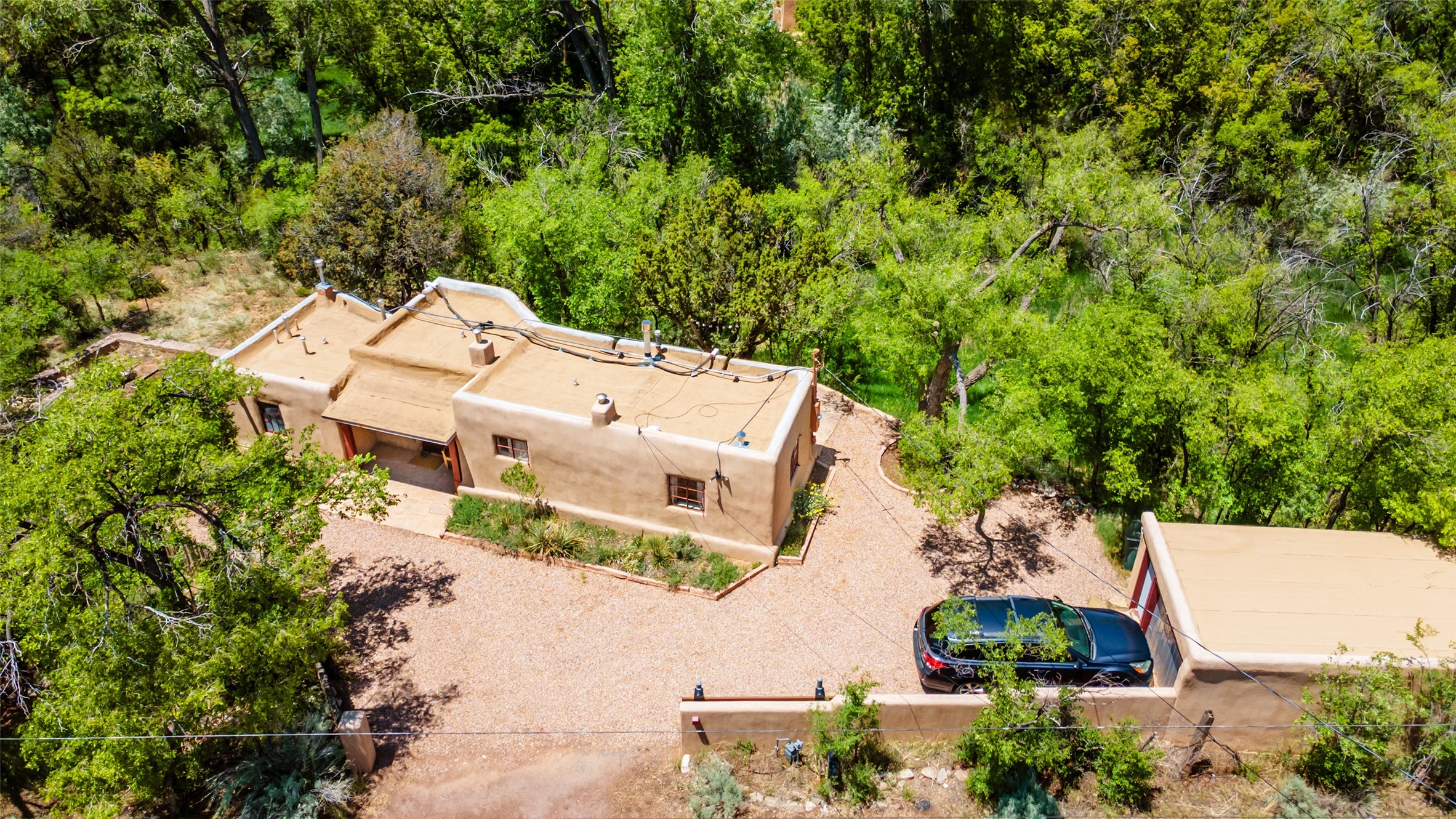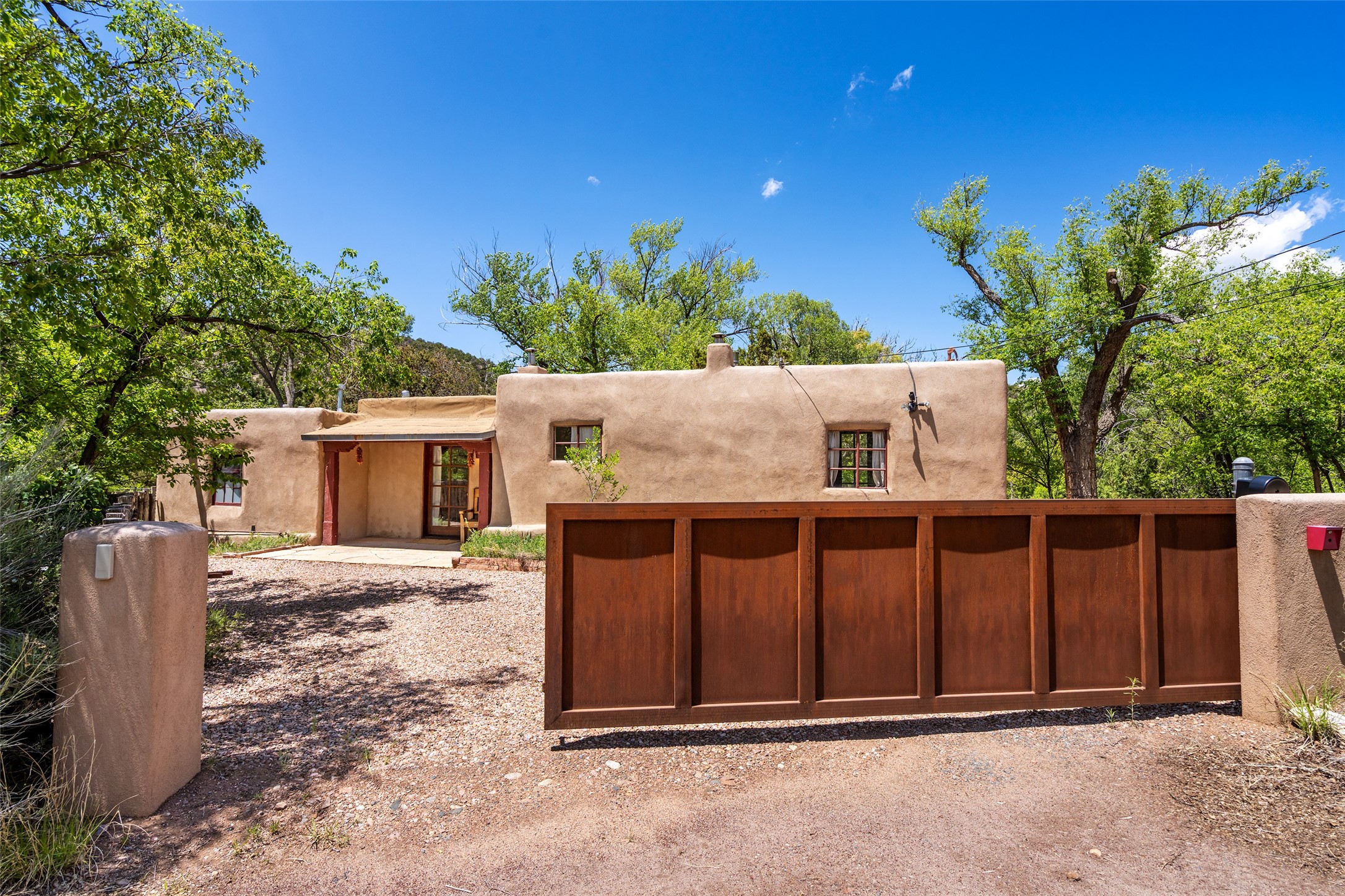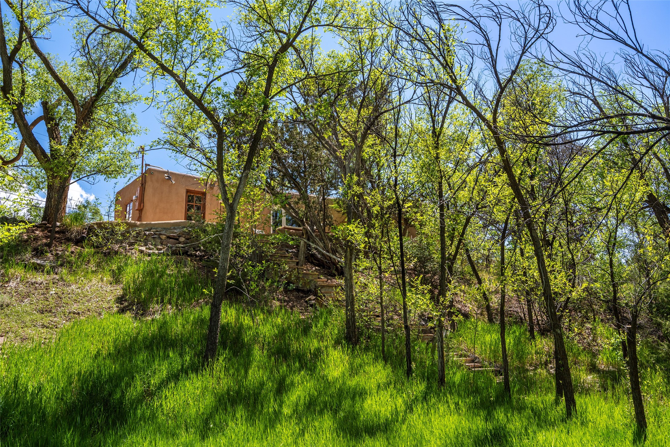 Adorable, authentic adobe home sits atop an absolutely perfect, lush 3/4 acre Canyon Road lot overlooking 260 feet of river frontage, huge trees, meadow with fields/orchard area. Simply charming adobe features 1 bedroom 1 bath with beautiful viga ceilings, 2 kiva fireplaces, gas freestanding stove, absolutely charming kitchen in the perfect Upper Canyon location. The home is beyond charming. Potential expansion available on this beautiful lot. Listen to sounds of the rushing Santa Fe River in your backyard and in the meadow below! Very special adobe casita, on an exquisite lot and in a tremendous location surrounded by grand multi-million dollar estates! If you love nature, hiking and the outdoors, this is a dream spot! Across the street from Dale Ball Trails and just down the street from the SF Conservancy and Randall Davey Auduban center. Please request proposed build plan of home and guest with beautiful orchard along the river! This can be a primary residence or a get-away cabin with so much more potential to expand! One-of-a-kind opportunity! Dale Ball trails directly out your front door and the River trail directly out your back door! Doesn't get any easier than this! Incredible!!
