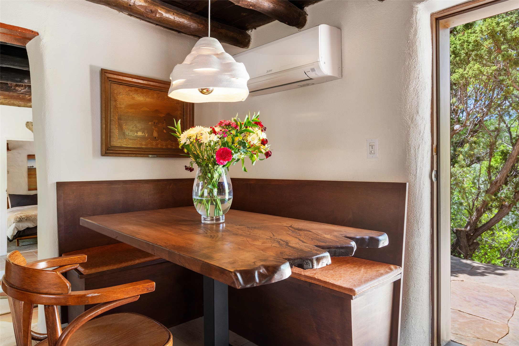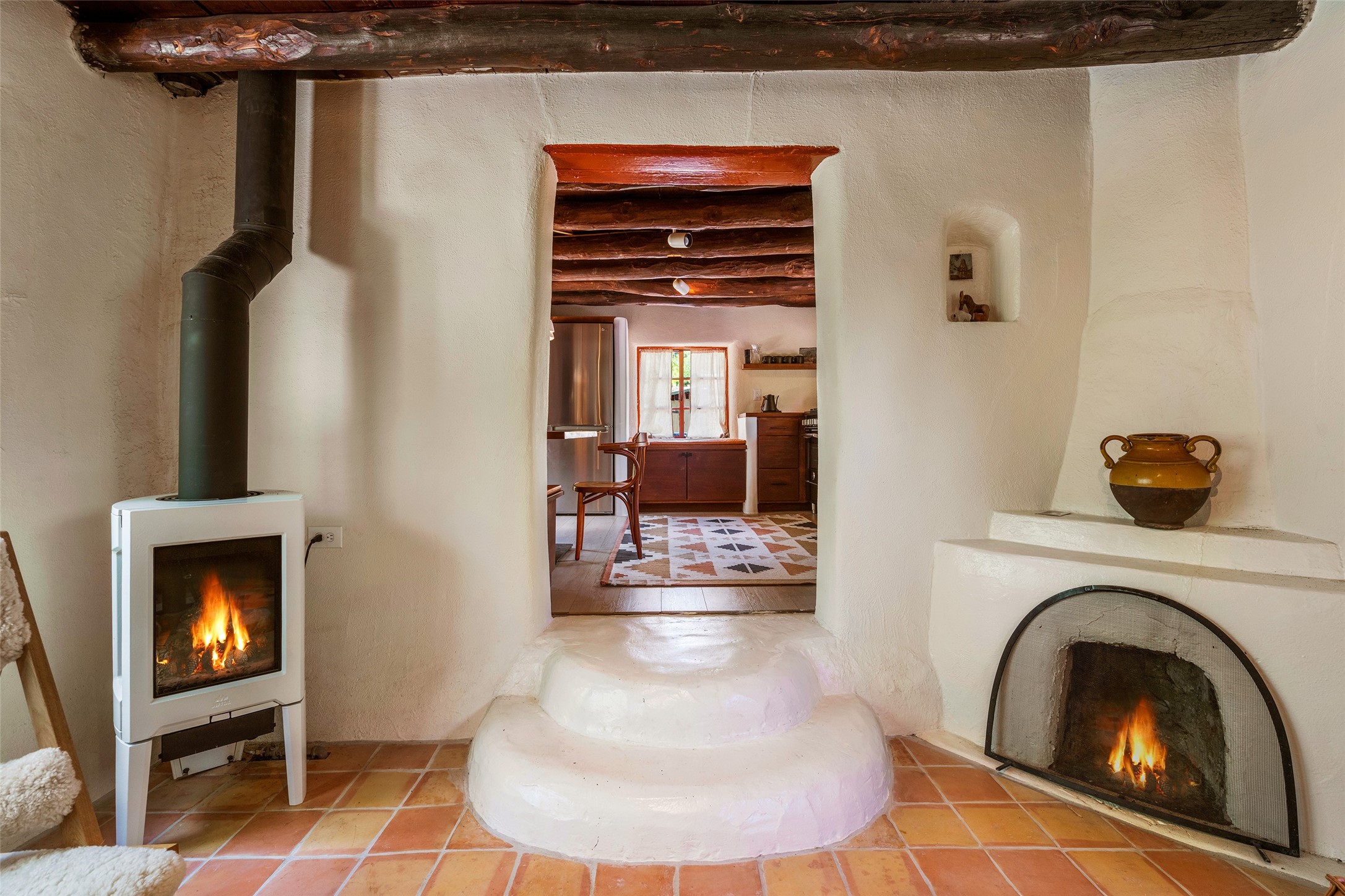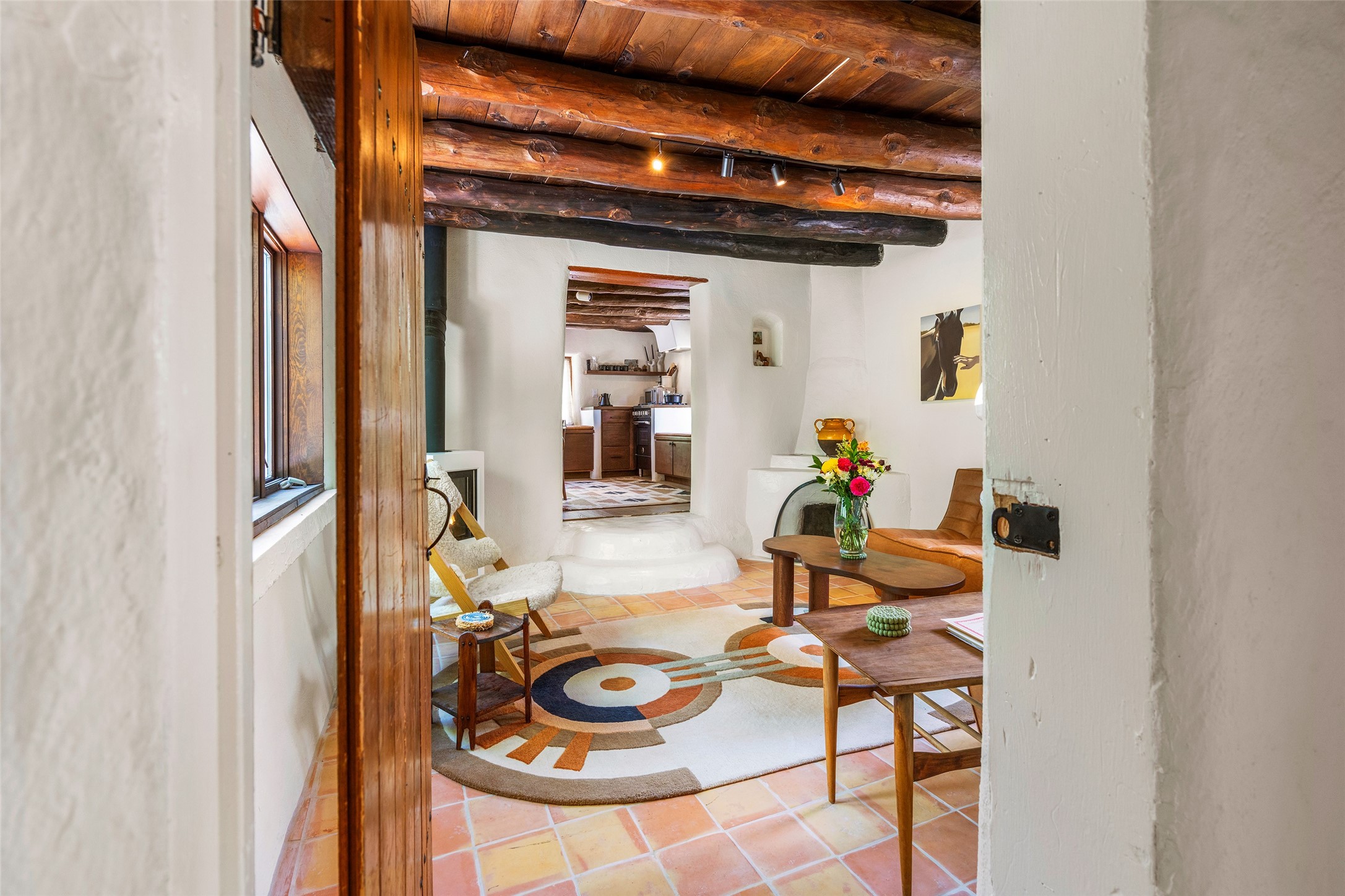Adorable, authentic adobe home sits atop an absolutely perfect, lush 3/4 acre Canyon Road lot overlooking 260 feet of river frontage, huge trees, meadow with fields/orchard area. Simply charming adobe features 1 bedroom 1 bath with beautiful viga ceilings, 2 kiva fireplaces, gas freestanding stove, absolutely charming kitchen in the perfect Upper Canyon location. The home is beyond charming. Potential expansion available on this beautiful lot. Listen to sounds of the rushing Santa Fe River in your backyard and in the meadow below! Very special adobe casita, on an exquisite lot and in a tremendous location surrounded by grand multi-million dollar estates! If you love nature, hiking and the outdoors, this is a dream spot! Across the street from Dale Ball Trails and just down the street from the SF Conservancy and Randall Davey Auduban center. Please request proposed build plan of home and guest with beautiful orchard along the river! This can be a primary residence or a get-away cabin with so much more potential to expand! One-of-a-kind opportunity! Dale Ball trails directly out your front door and the River trail directly out your back door! Doesn't get any easier than this! Incredible!!