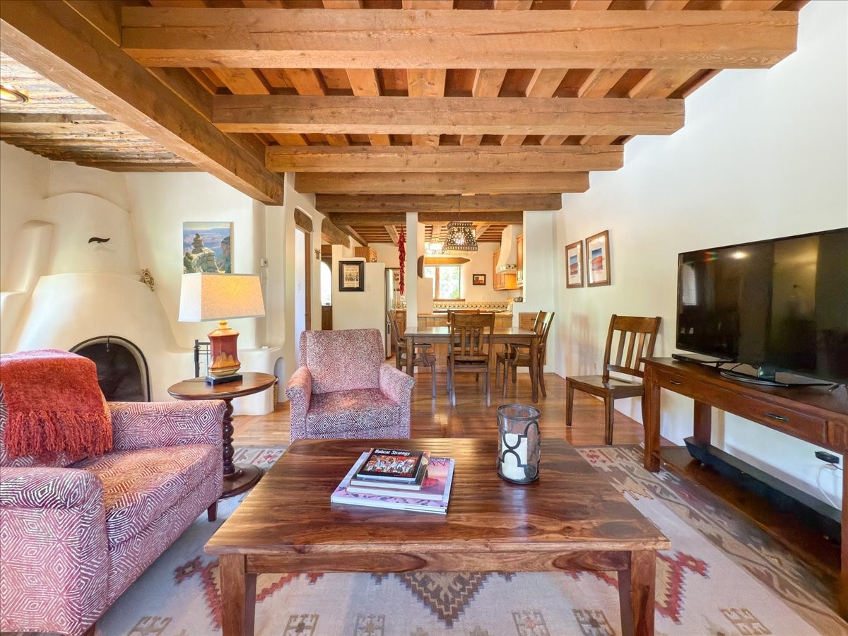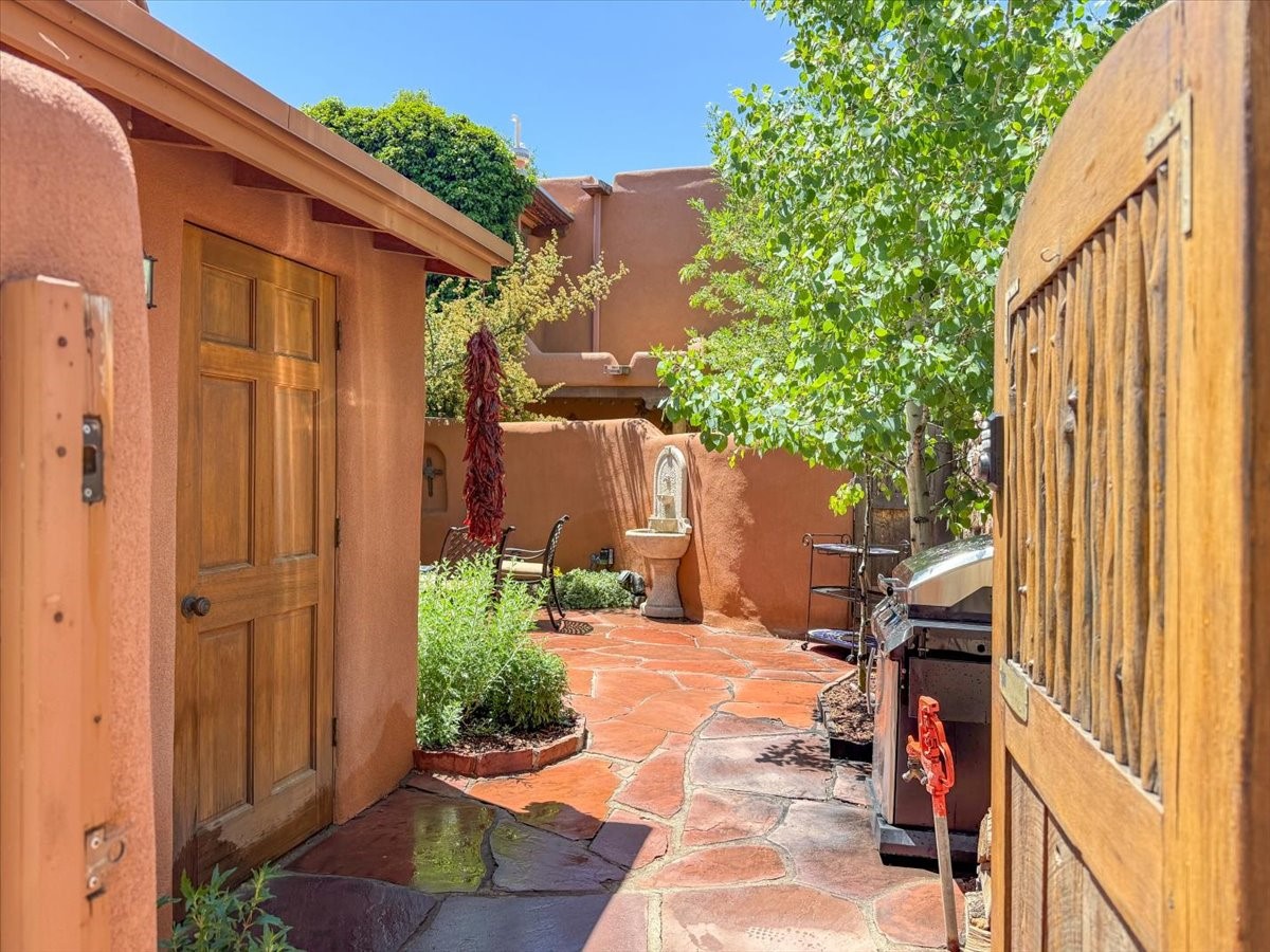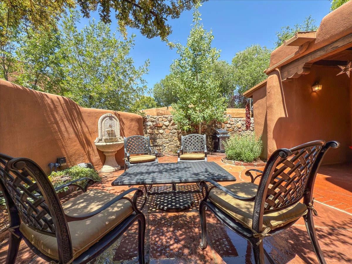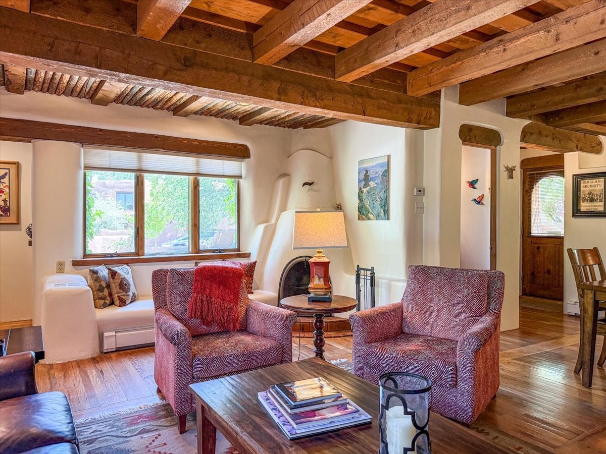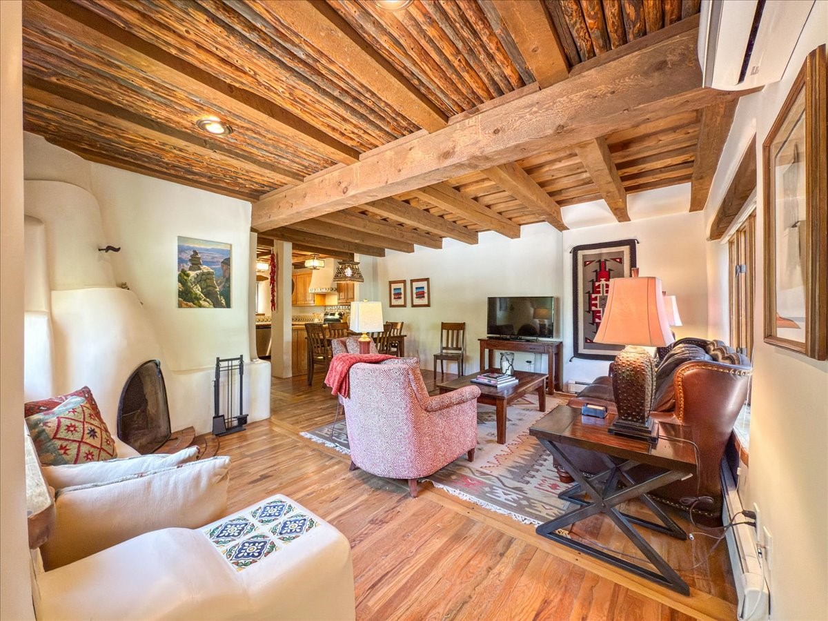 If you're dreaming of classic Santa Fe charm in the heart of it all, this private gem at the end of a cul-de-sac is the one. Nestled in the highly sought-after South Capitol neighborhood, this tri-level condo puts you just moments from the Plaza, Canyon Road, and the bustling Railyard District--home to galleries, restaurants, and the award-winning Santa Fe Farmers Market. Inside, you'll find timeless Santa Fe style at every turn: beautiful wood and tile floors, warm kiva fireplaces, hand-troweled plaster walls, traditional ceilings, and colorful Mexican tile. Built with true adobe and meticulously maintained by the current owners, this home is the real deal--Santa Fe style inside and out. They're also offering a beautifully curated furniture package, making it easy to step right into the Santa Fe lifestyle, no unpacking required. With two spacious primary suites--one upstairs and one on the lower level with a private sitting area--this home is ideal for couples traveling together or anyone who values flexible living. And can we talk about comfort? With baseboard hot water radiant heat and mini splits for cooling, you'll always be cozy and comfy. The walled courtyard is the perfect spot for a morning coffee, an evening glass of wine, or simply soaking up the Santa Fe sunshine. This property has a successful history as a short-term rental (permit not transferable), and would make a wonderful full-time home or lock-and-leave getaway. One of just four residences in a charming compound, this home sits at the front of the property--giving it the most natural light, the most breathing room, and the feeling of a private retreat right in the heart of town. Best of all? It's priced under $500 per square foot--an exceptional value this close to the center of town. Don't miss this rare opportunity to own a piece of Santa Fe magic.