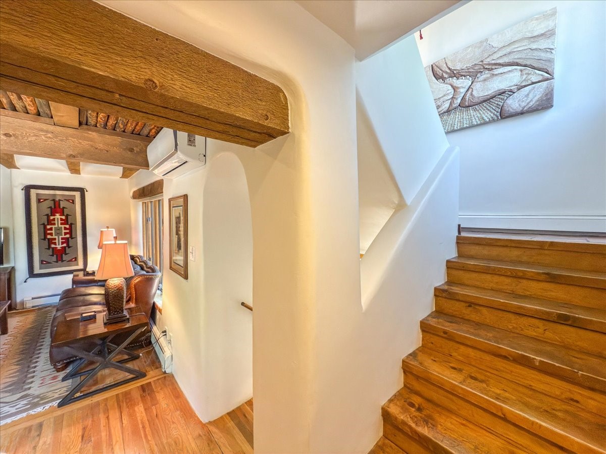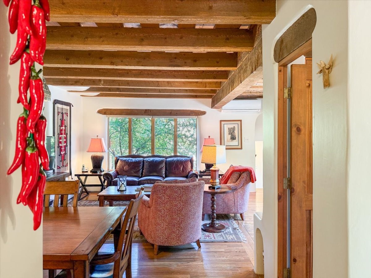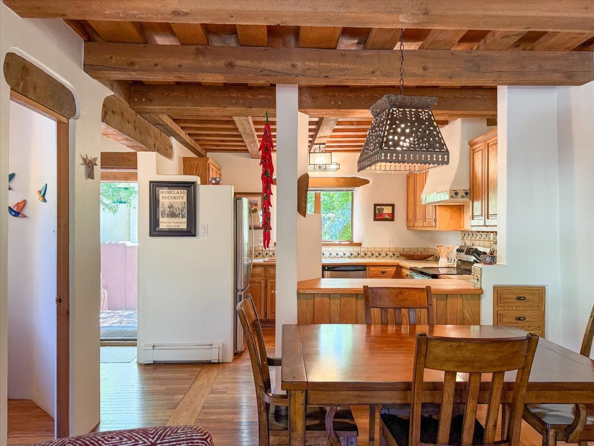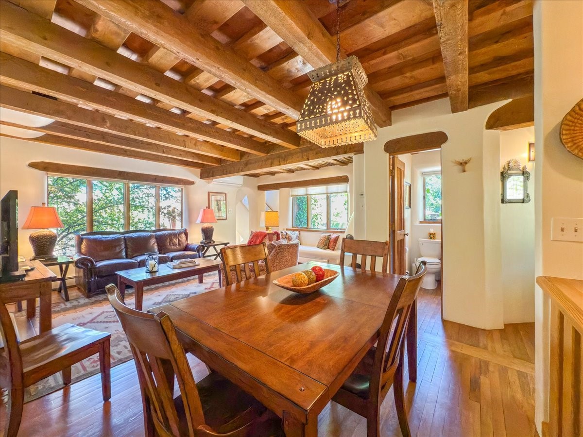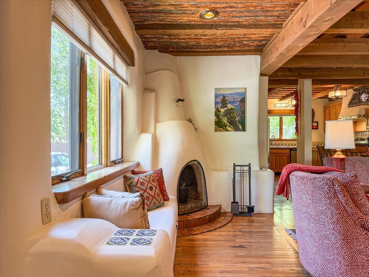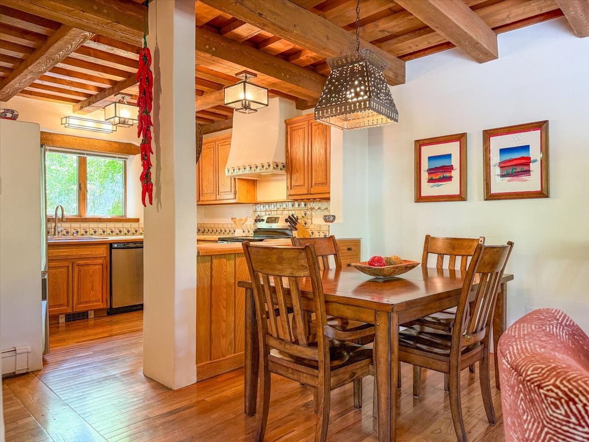 If you're dreaming of classic Santa Fe charm in the heart of it all, this private gem at the end of a cul-de-sac is the one. Nestled in the highly sought-after South Capitol neighborhood, this tri-level condo puts you just moments from the Plaza, Canyon Road, and the bustling Railyard District--home to galleries, restaurants, and the award-winning Santa Fe Farmers Market. Inside, you'll find timeless Santa Fe style at every turn: beautiful wood and tile floors, warm kiva fireplaces, hand-troweled plaster walls, traditional ceilings, and colorful Mexican tile. Built with true adobe and meticulously maintained by the current owners, this home is the real deal--Santa Fe style inside and out. They're also offering a beautifully curated furniture package, making it easy to step right into the Santa Fe lifestyle, no unpacking required. With two spacious primary suites--one upstairs and one on the lower level with a private sitting area--this home is ideal for couples traveling together or anyone who values flexible living. And can we talk about comfort? With baseboard hot water radiant heat and mini splits for cooling, you'll always be cozy and comfy. The walled courtyard is the perfect spot for a morning coffee, an evening glass of wine, or simply soaking up the Santa Fe sunshine. This property has a successful history as a short-term rental (permit not transferable), and would make a wonderful full-time home or lock-and-leave getaway. One of just four residences in a charming compound, this home sits at the front of the property--giving it the most natural light, the most breathing room, and the feeling of a private retreat right in the heart of town. Best of all? It's priced under $500 per square foot--an exceptional value this close to the center of town. Don't miss this rare opportunity to own a piece of Santa Fe magic.