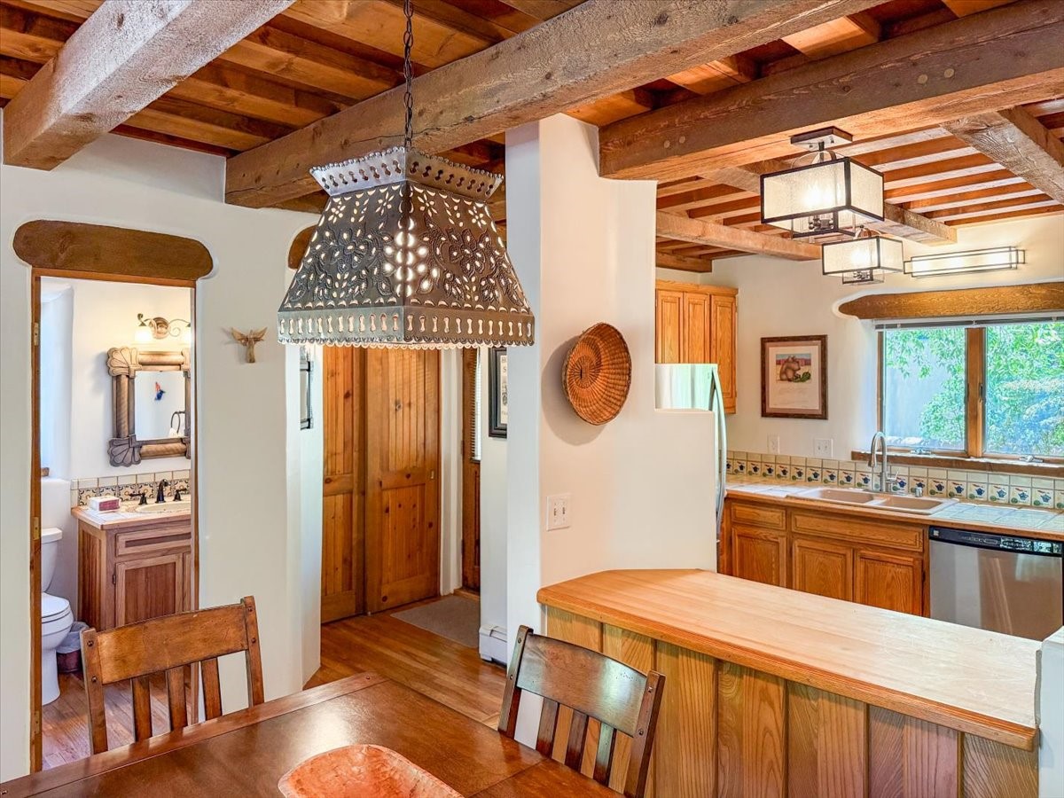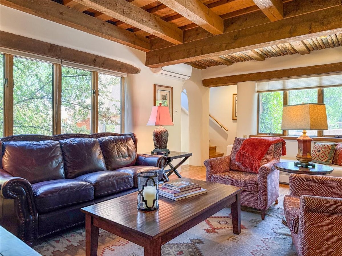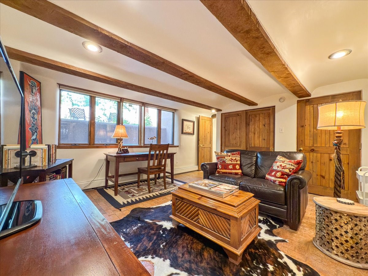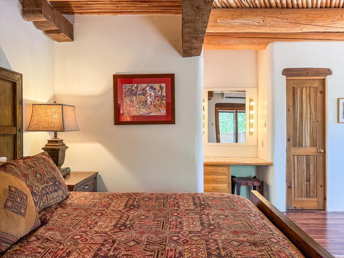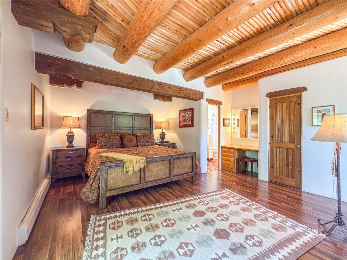 If you're dreaming of classic Santa Fe charm in the heart of it all, this private gem at the end of a cul-de-sac is the one. Nestled in the highly sought-after South Capitol neighborhood, this tri-level condo puts you just moments from the Plaza, Canyon Road, and the bustling Railyard District--home to galleries, restaurants, and the award-winning Santa Fe Farmers Market. Inside, you'll find timeless Santa Fe style at every turn: beautiful wood and tile floors, warm kiva fireplaces, hand-troweled plaster walls, traditional ceilings, and colorful Mexican tile. Built with true adobe and meticulously maintained by the current owners, this home is the real deal--Santa Fe style inside and out. They're also offering a beautifully curated furniture package, making it easy to step right into the Santa Fe lifestyle, no unpacking required. With two spacious primary suites--one upstairs and one on the lower level with a private sitting area--this home is ideal for couples traveling together or anyone who values flexible living. And can we talk about comfort? With baseboard hot water radiant heat and mini splits for cooling, you'll always be cozy and comfy. The walled courtyard is the perfect spot for a morning coffee, an evening glass of wine, or simply soaking up the Santa Fe sunshine. This property has a successful history as a short-term rental (permit not transferable), and would make a wonderful full-time home or lock-and-leave getaway. One of just four residences in a charming compound, this home sits at the front of the property--giving it the most natural light, the most breathing room, and the feeling of a private retreat right in the heart of town. Best of all? It's priced under $500 per square foot--an exceptional value this close to the center of town. Don't miss this rare opportunity to own a piece of Santa Fe magic.
