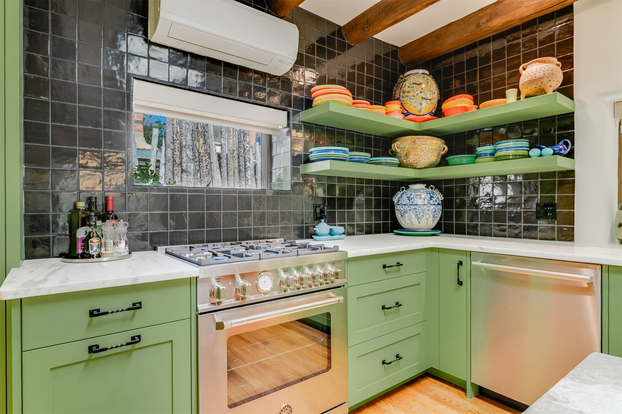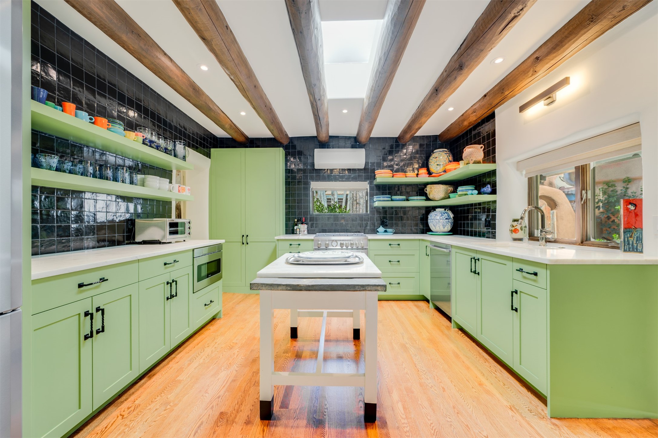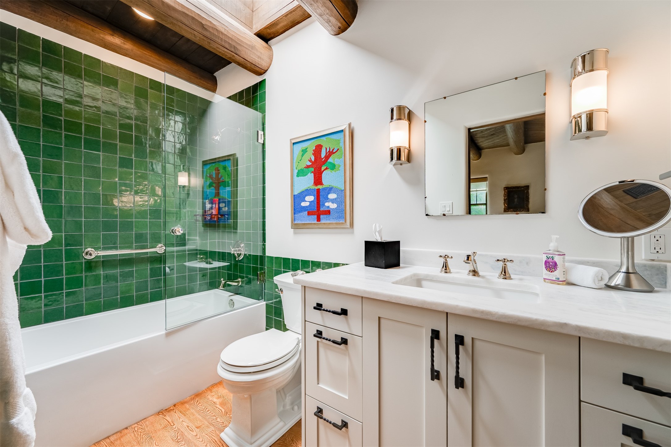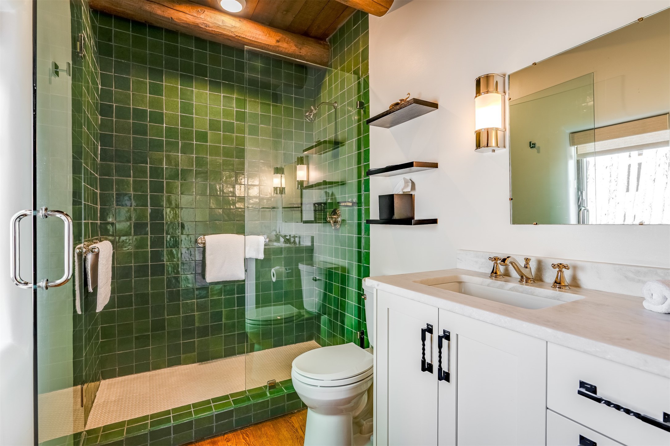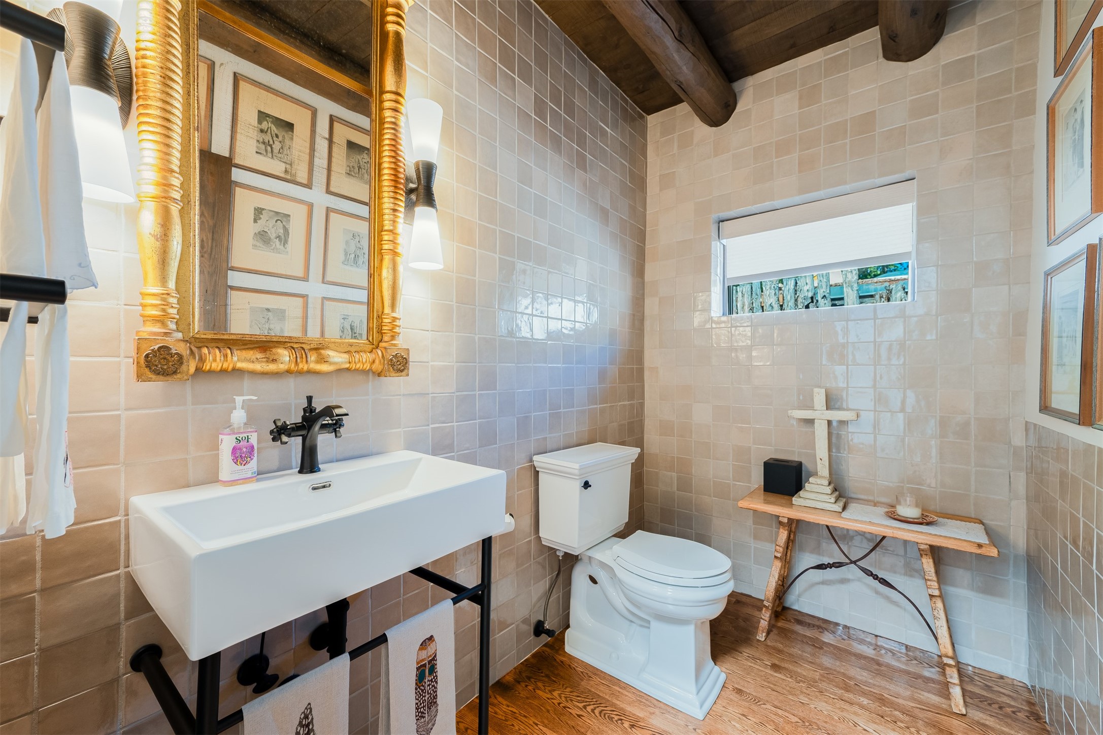 This entirely remodeled condo is free standing in historic downtown Santa Fe.. Fine dining, Canyon Road galleries and shopping is at your fingertips. No stone is left unturned in this romantic well appointed 2 bedroom each ensuite including an office, and powder room.. The inviting open kitchen & dining is spacious and light with access to two courtyards behind adobe walls and coyote fencing. Styled with a designer's detailed eye, this is rare perfection. Enter the private courtyard through a traditional gate. An oasis awaits with mature landscaping, roses, fruit trees all irrigated. This home has more than you expect of a gracious Eastside adobe. A one car garage, alarm system throughout and off street parking down a sleepy lane on the historic Acequia Madre make this the best Santa Fe get-a-way/lock up and go.