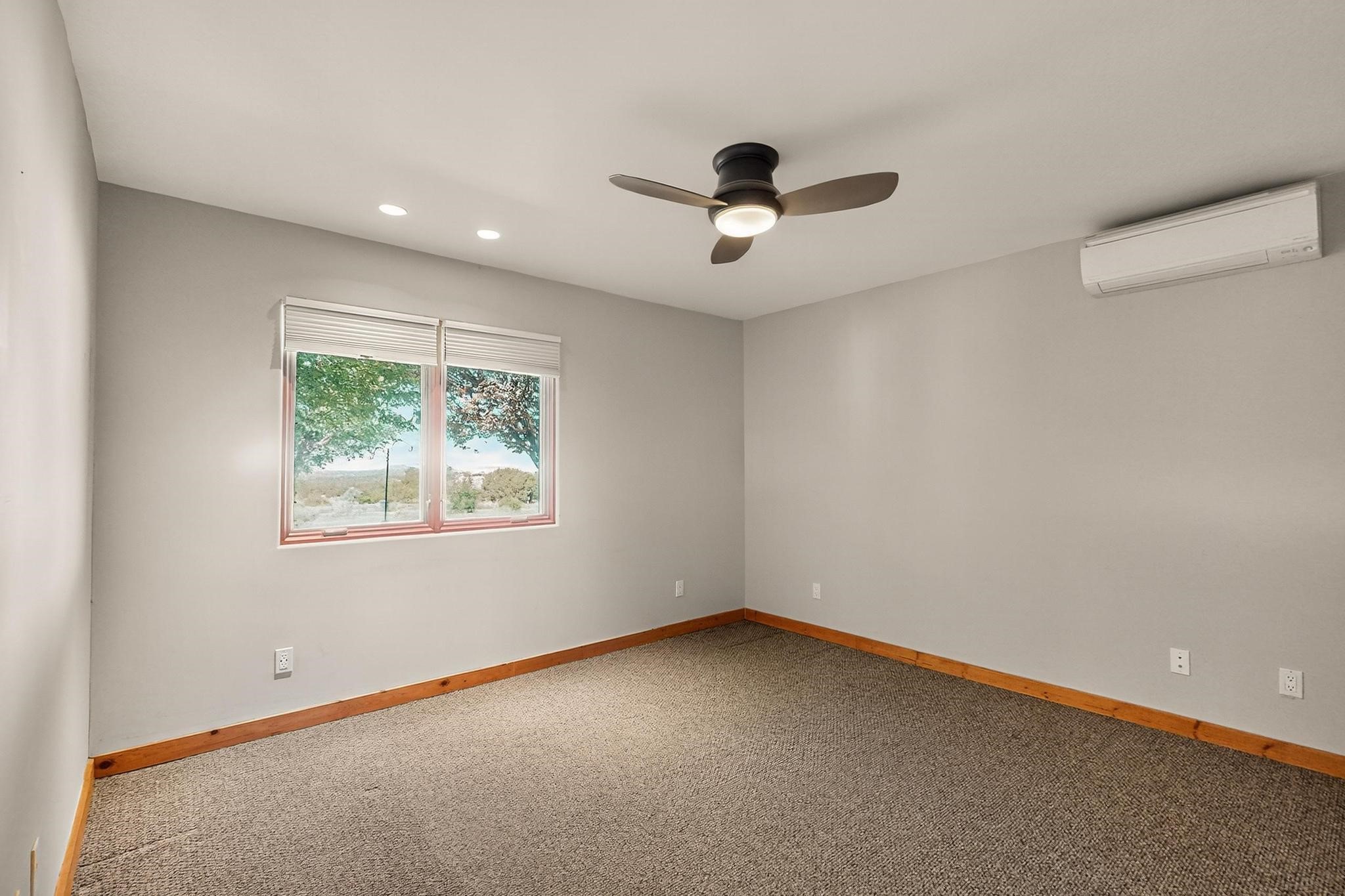 Priced to Sell! Potential multigenerational living. Expansive contemporary pueblo, split bedroom open plan design with high ceilings throughout. The main home includes a formal dining area, spacious great room with kiva fireplace, a large primary suite with kiva fireplace, large walk in closet and spa-like bathroom. Excellent separation from the two guest bedrooms and bath, plus a den/study. The kitchen has been remodeled including an induction range top, custom lighted cabinetry and pantry. The radiant heating is supplemented by 5 mini splits to keep a comfortable temperature summer and winter. There is a large heated storage room/workroom for hobbies and toys plus an oversized 2 car garage. Behind the home sits a detached 478 sq.ft. heated 2 room studio/guest with a 3/4 bathroom for extra guests/office or studio with a separate septic system. A lovely walled garden with a 3rd kiva fireplace for enjoyment plus a large portal for morning or evening outside entertainment. Enjoy the historic railway and rail trail bordering the back of your land. Plenty of guest parking with a paved driveway and easy access to Eldorado amenities, local shopping only minutes into Santa Fe.