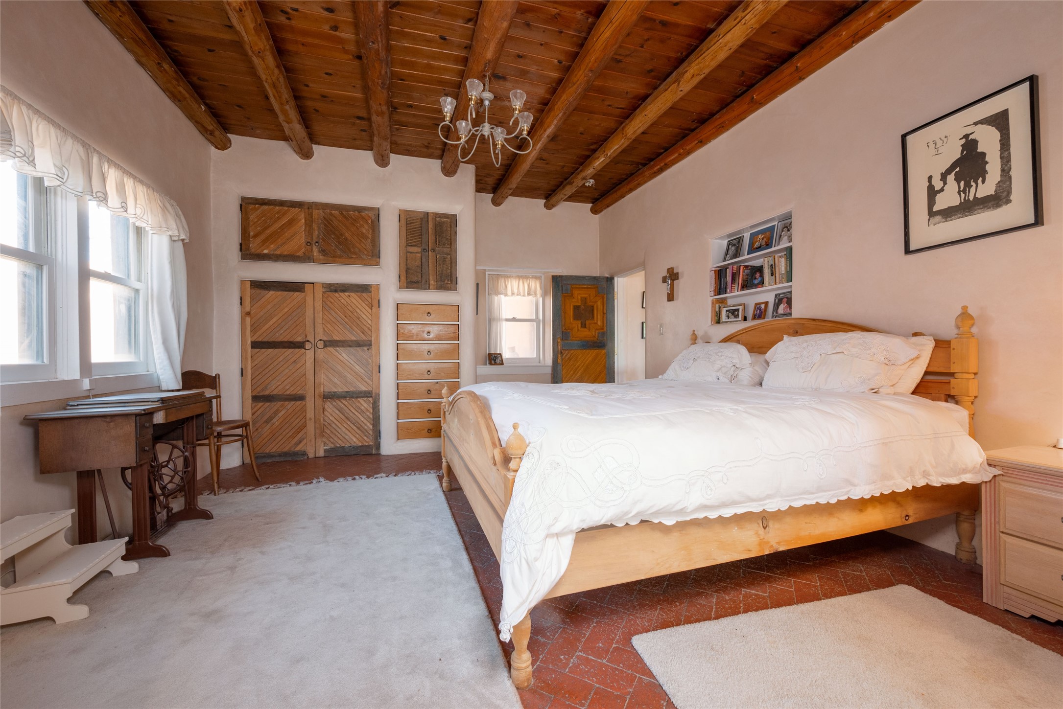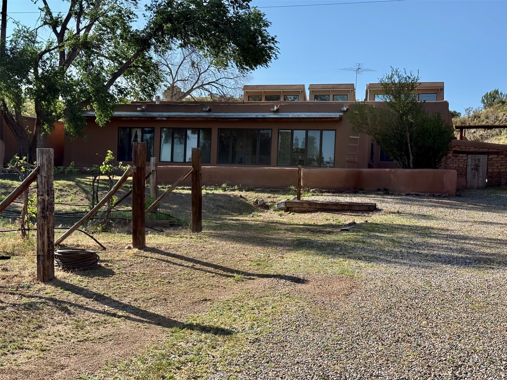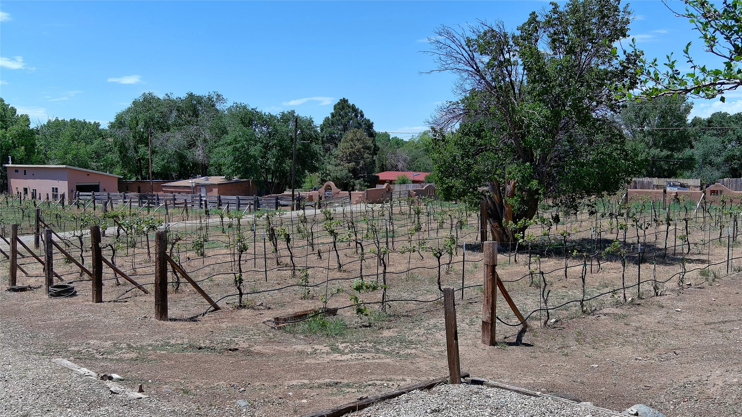 La Cienega Vineyard Estate - Four Parcels with Adobe Homes, Studios & Acequia Water Rights. Discover a unique opportunity in the heart of historic La Cienega--a vibrant 6-acre vineyard comprising four separately deeded parcels, rich with potential and authentic New Mexico charm. Anchored by two traditional adobe homes, the estate is steeped in regional character and surrounded by natural beauty. The main house features 3 bedrooms, 2 baths, and showcases classic Santa Fe style with brick floors, vigas, and elegant touches throughout. The adobe main residence is a quintessential historic home in the La Cienega Village. The second adobe home offers additional living space or rental income potential. In addition to the homes, the property includes a partially completed two-story apartment--ready for your finishing touches--and several studio structures that could be transformed into creative workspaces, studios, rentals or other uses associated with the Vineyard. The well-maintained vineyard is nourished by valuable acequia water rights, ensuring sustainable growth and offering agricultural possibilities for wine production, agritourism, or farm-to-table ventures. With flexible uses and multiple dwellings already in place, this rare offering is ideal for a variety of uses--live/work, multi-generational living, a creative retreat, or a boutique vineyard business. Properties with this combination of history, water, and opportunity are seldom available in La Cienega