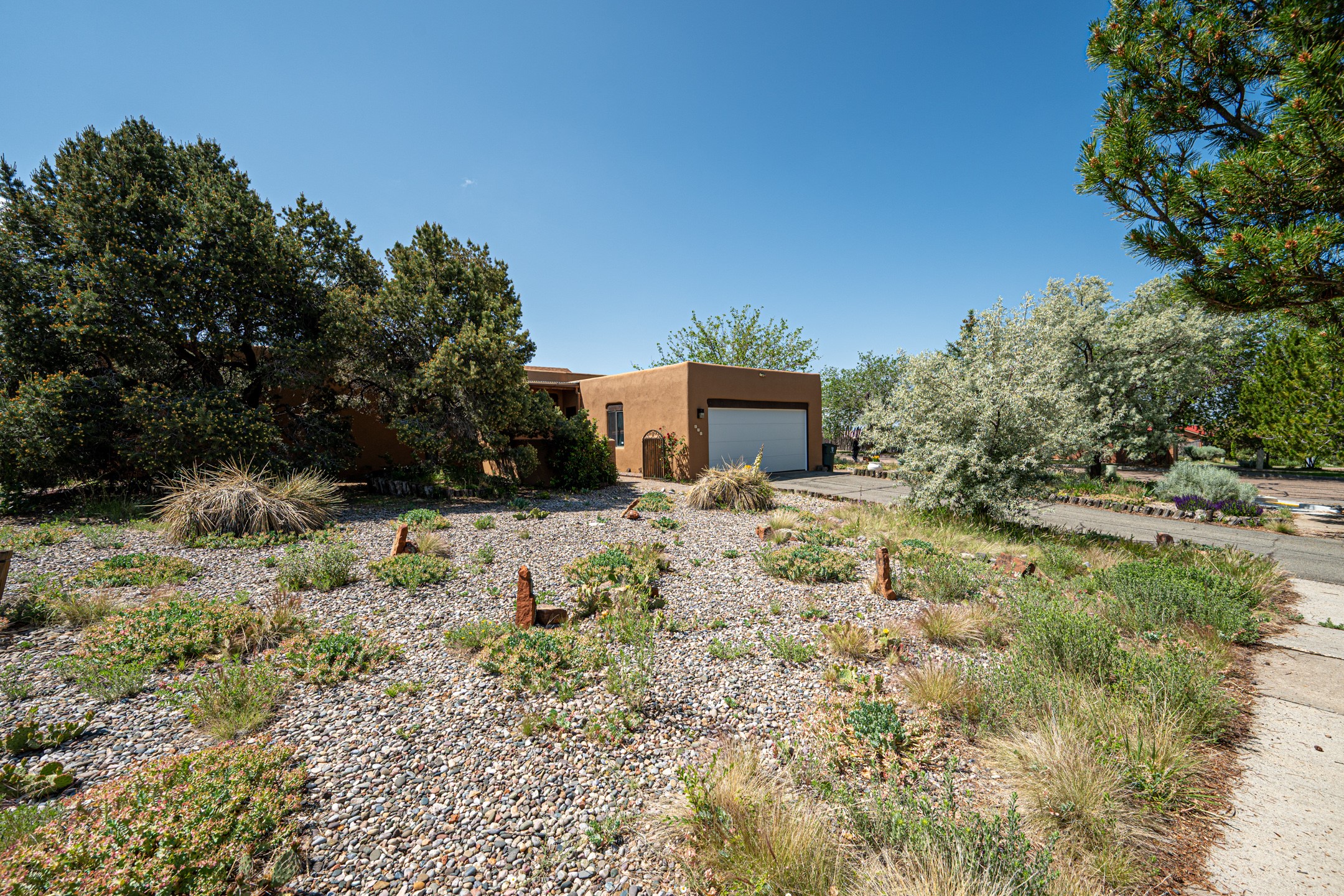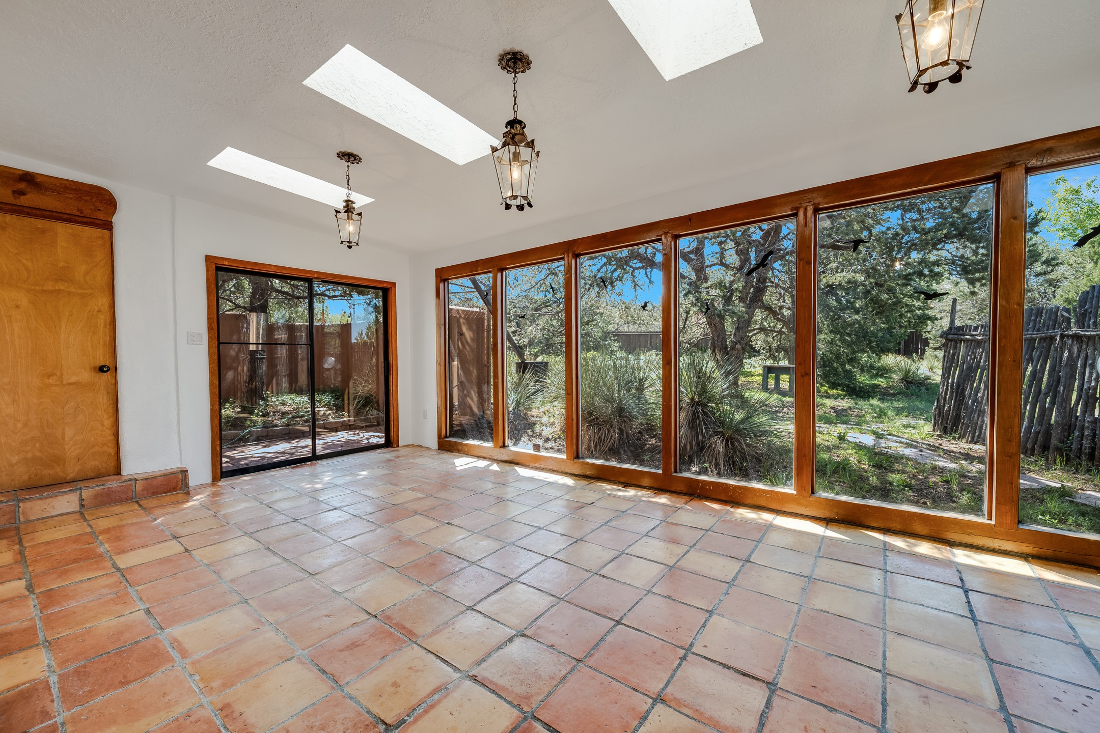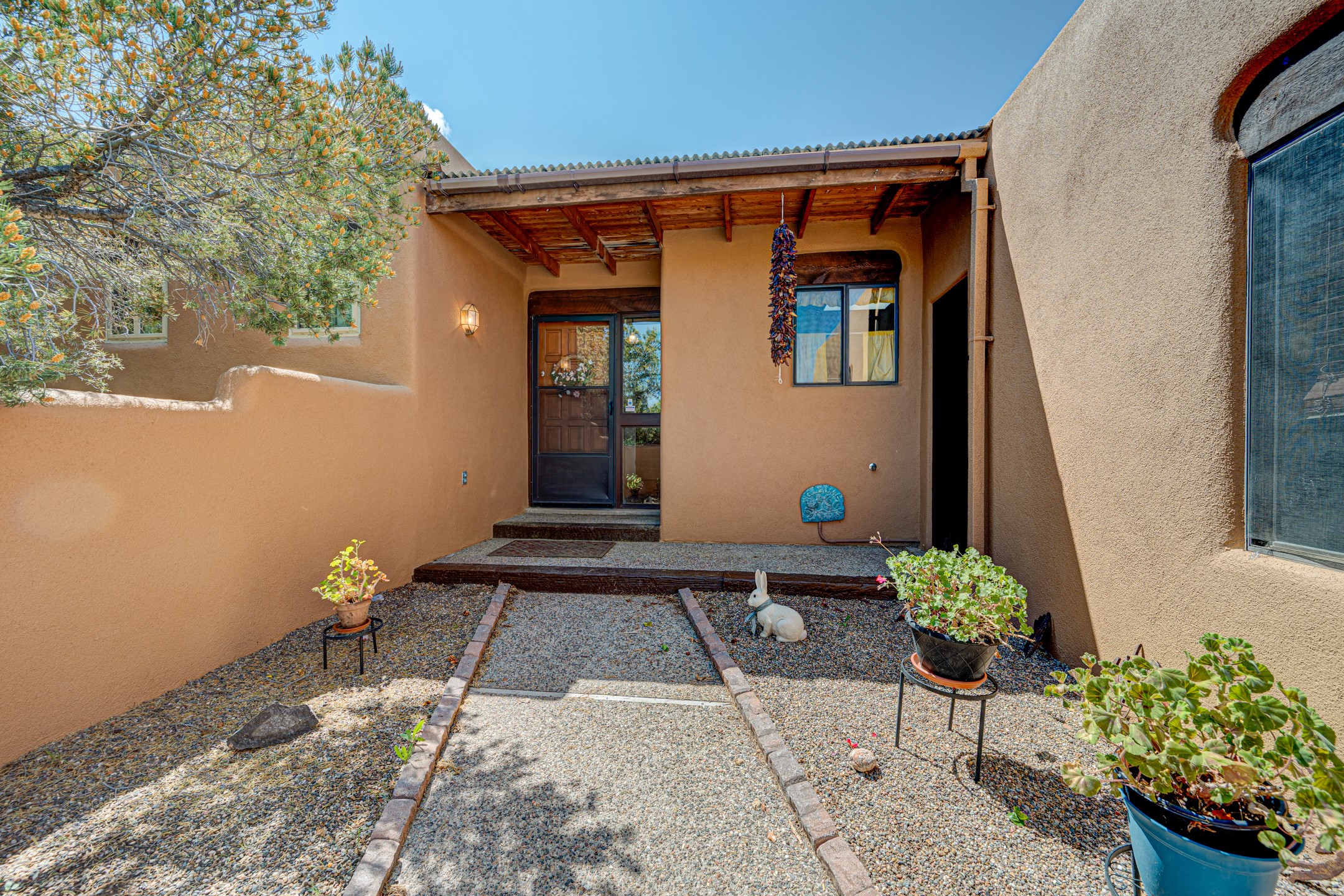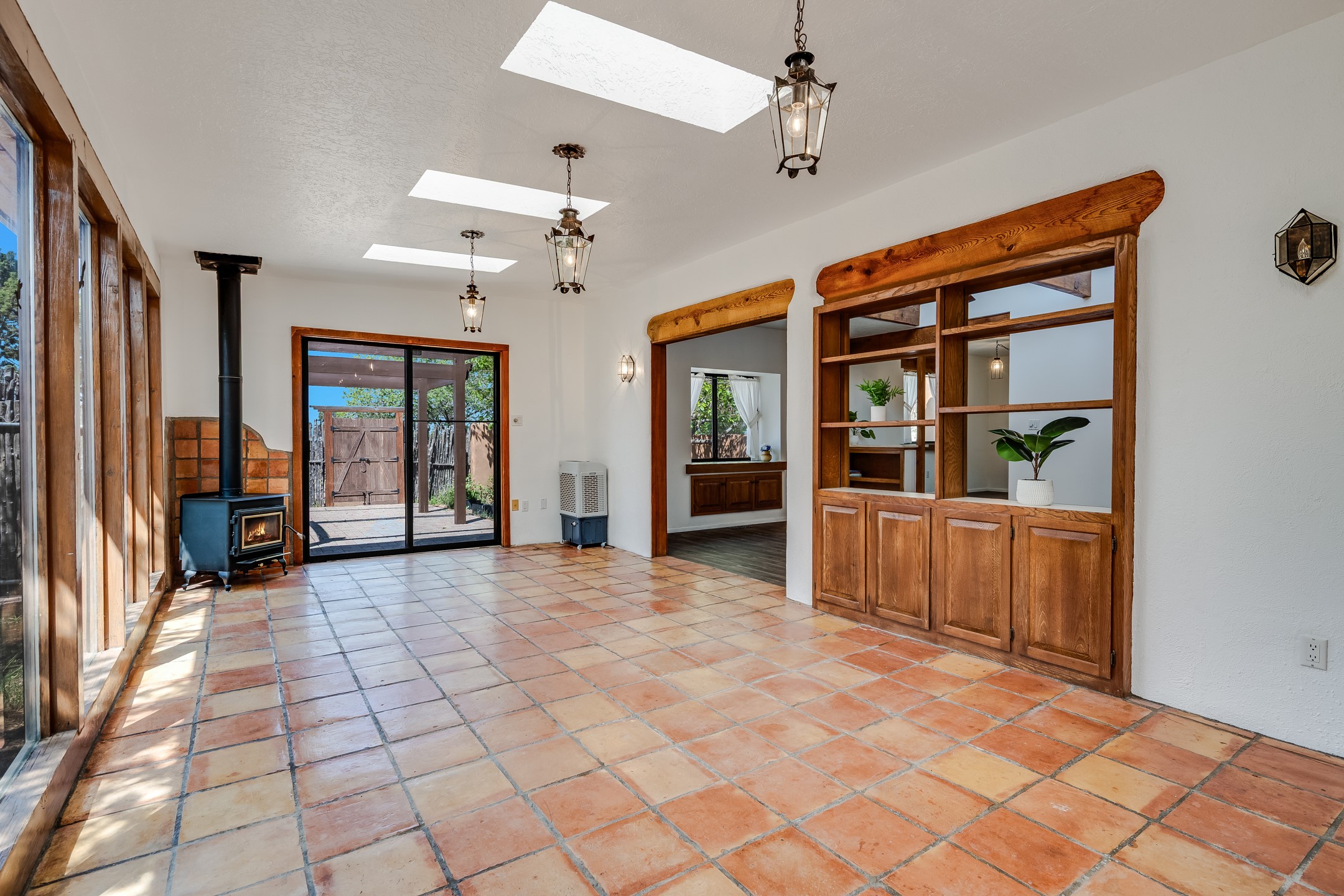 This move-in ready, DeVargas Heights home offers +/- 1,900 square feet of comfortable living space on a generous corner lot. The well maintained home features a classic, single-level floorpan with 3 bedrooms and 2 bathrooms, a central kitchen, dedicated living & dining areas, plus a large bonus sunroom with wood-burning stove. Tile flooring, high ceilings, and a cozy kiva fireplace add warmth and light to the interior. Outfitted with stainless steel appliances, and new countertops to enhance the sturdy cabinetry, the kitchen seamlessly transitions from intimate dinners to entertaining guests. The spacious primary bedroom is a peaceful retreat, while the two additional bedrooms offer flexibility for guests or a home office. Outside, the expansive 0.4 acre property boasts mature trees, established high desert plantings, outdoor patio with pergola, and ample room for outdoor living or gardening. A two-car garage offers additional storage or space for hobbies while the new roof c. 2018 and recent stucco will provide peace of mind for years to come. Located near parks, healthcare facilities, and within the Wood Gormley Elementary School footprint, this home combines comfort and practical amenities with Santa Fe charm, in a sought-after Santa Fe neighborhood. **See Broker Remarks for additional details, as provided by Seller.
