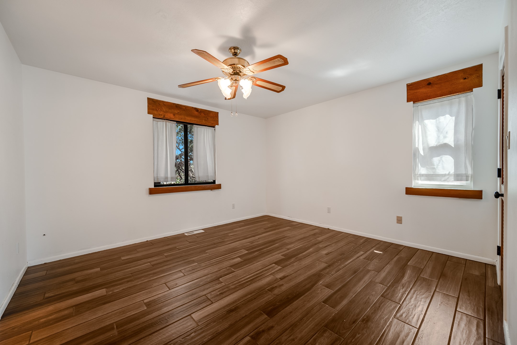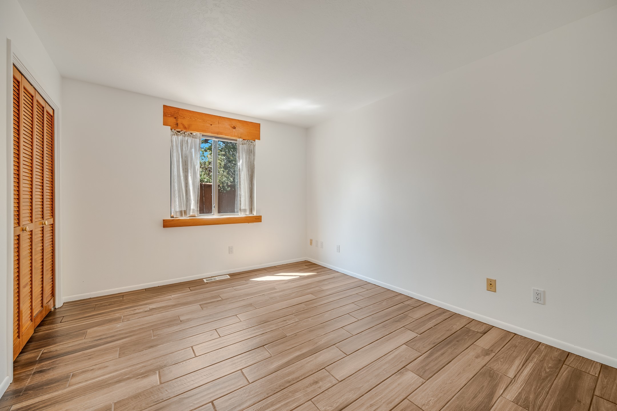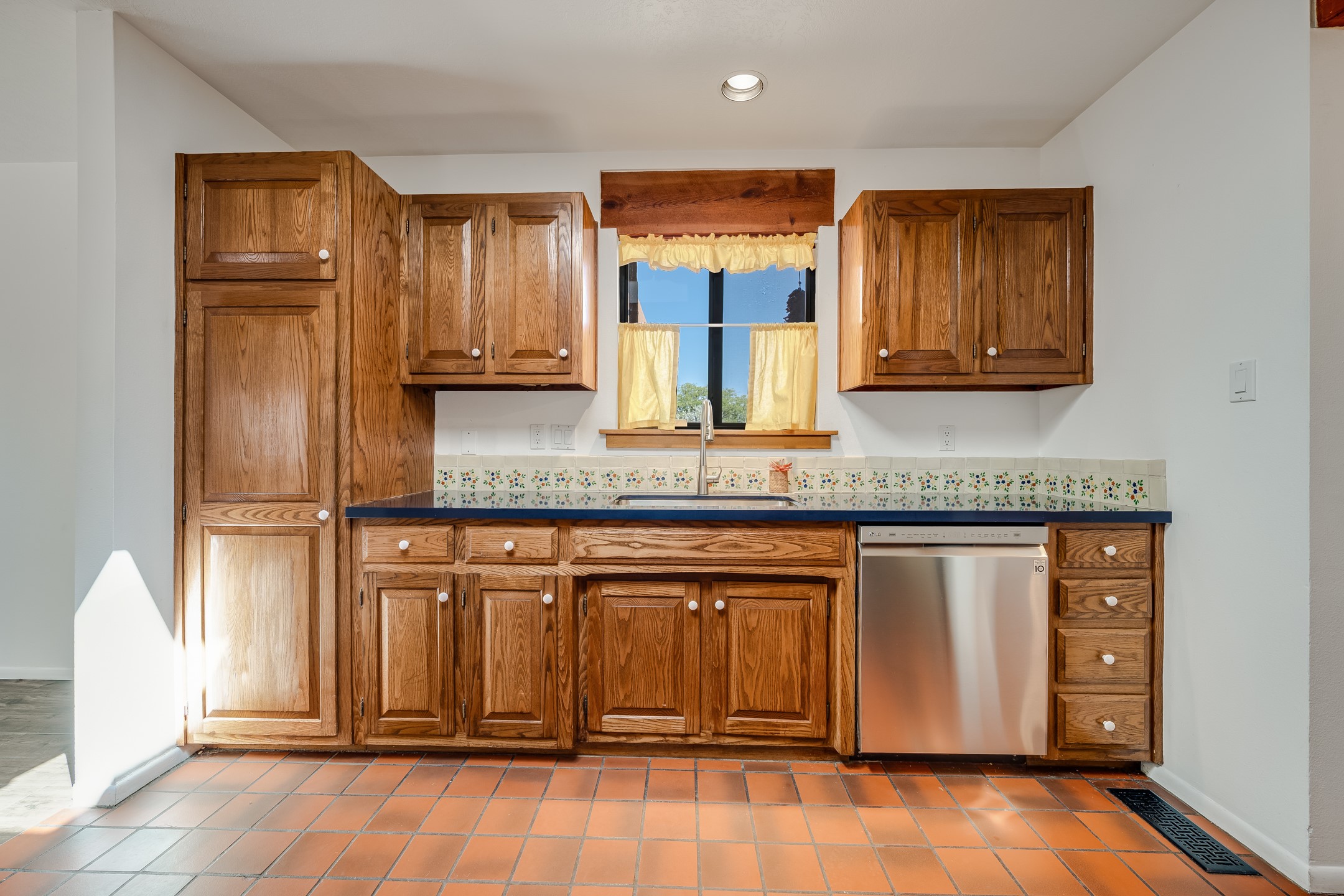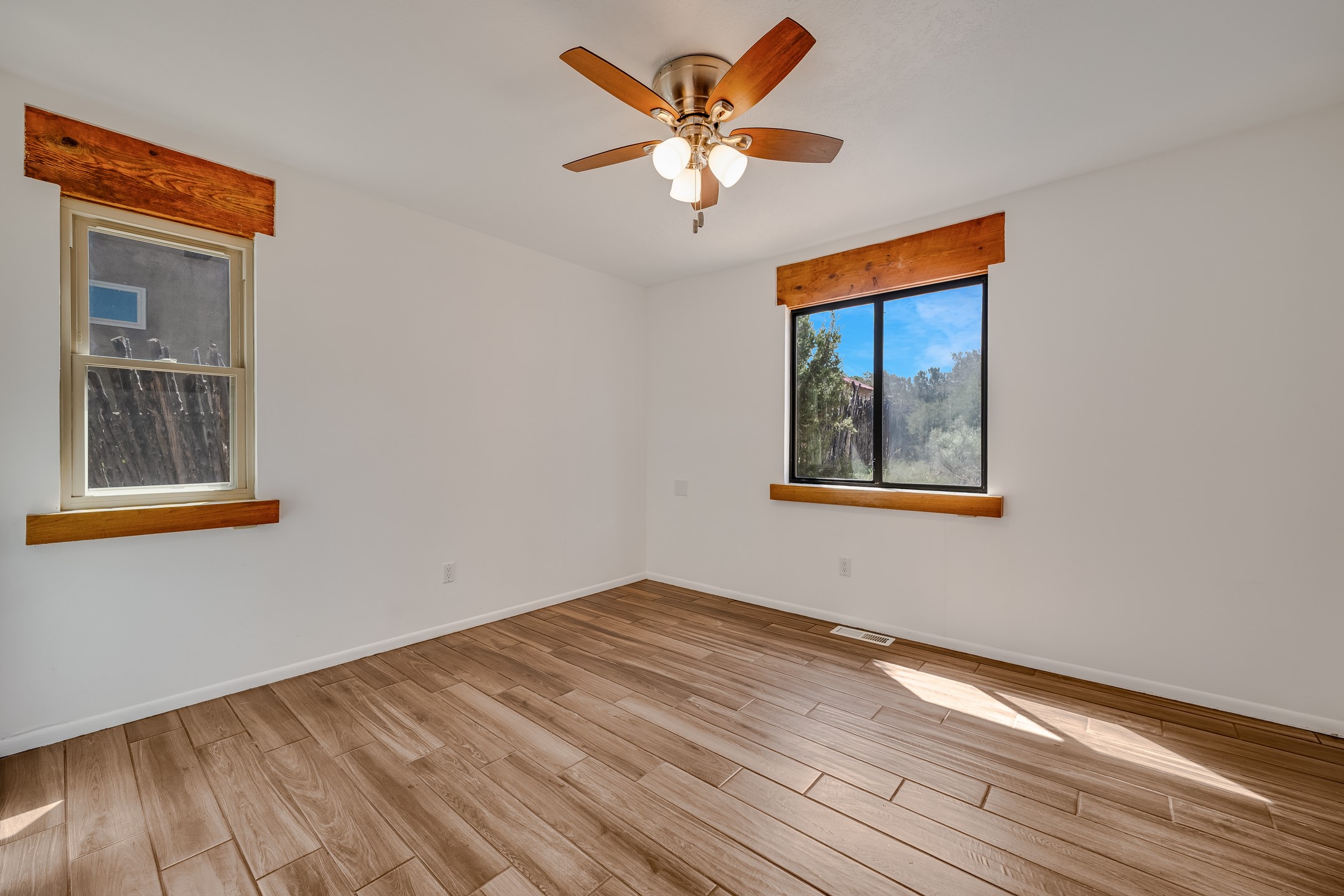 This move-in ready, DeVargas Heights home offers +/- 1,900 square feet of comfortable living space on a generous corner lot. The well maintained home features a classic, single-level floorpan with 3 bedrooms and 2 bathrooms, a central kitchen, dedicated living & dining areas, plus a large bonus sunroom with wood-burning stove. Tile flooring, high ceilings, and a cozy kiva fireplace add warmth and light to the interior. Outfitted with stainless steel appliances, and new countertops to enhance the sturdy cabinetry, the kitchen seamlessly transitions from intimate dinners to entertaining guests. The spacious primary bedroom is a peaceful retreat, while the two additional bedrooms offer flexibility for guests or a home office. Outside, the expansive 0.4 acre property boasts mature trees, established high desert plantings, outdoor patio with pergola, and ample room for outdoor living or gardening. A two-car garage offers additional storage or space for hobbies while the new roof c. 2018 and recent stucco will provide peace of mind for years to come. Located near parks, healthcare facilities, and within the Wood Gormley Elementary School footprint, this home combines comfort and practical amenities with Santa Fe charm, in a sought-after Santa Fe neighborhood. **See Broker Remarks for additional details, as provided by Seller.