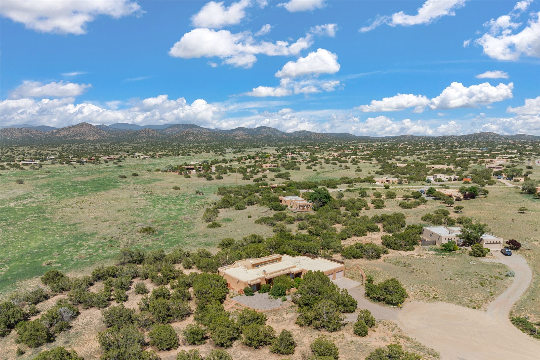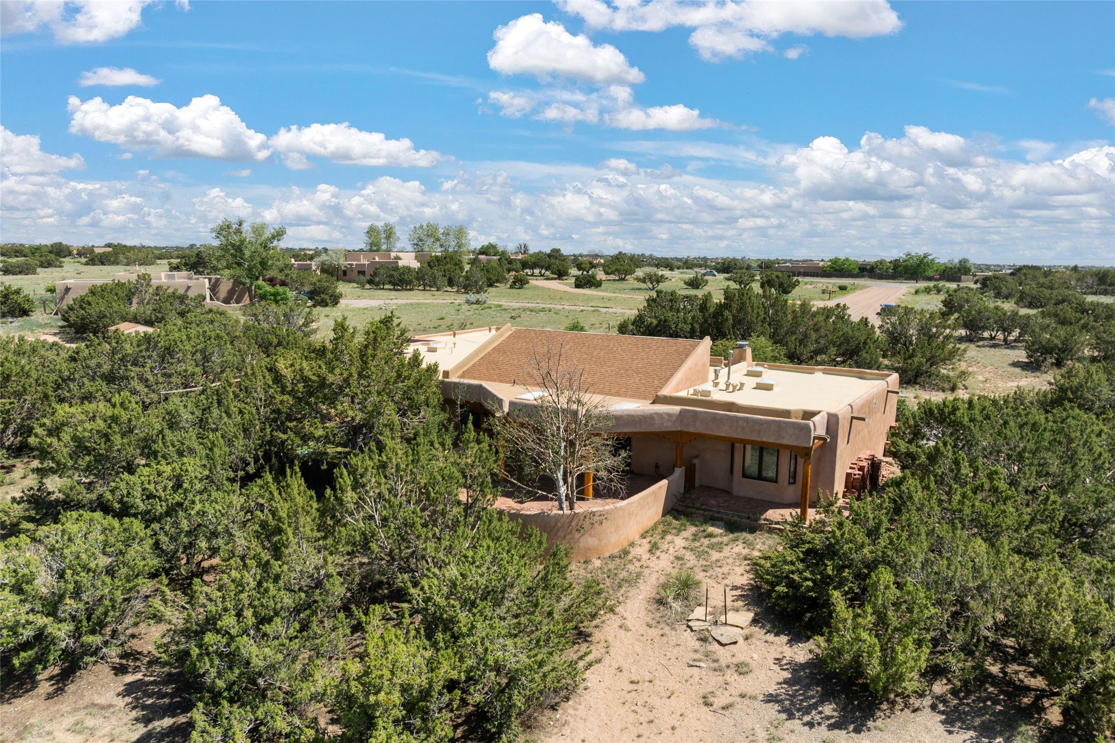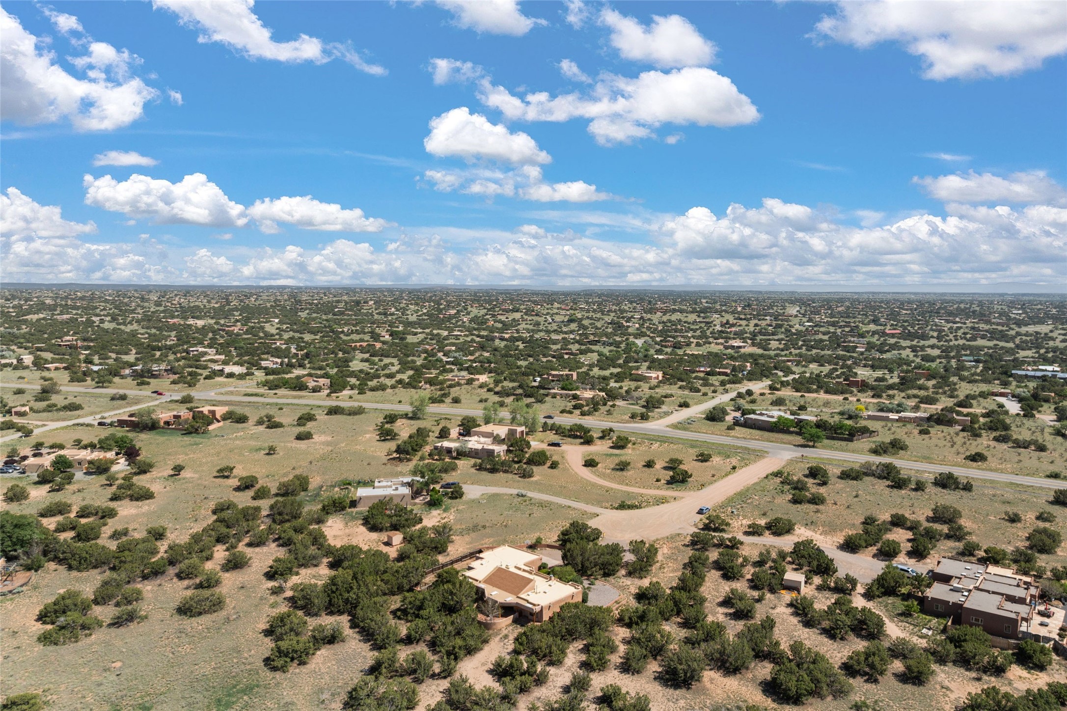 Great four-bedroom, four-bathroom home with a three-car garage, offering ample office or workspaces and storage. The home features a brand-new roof! This beautiful home backs up to open space and is located on a quiet cul-de-sac. It also has a private well. The floor plan features a mudroom entry, a separation of bedrooms, and one bedroom that could serve as an office. Additionally, there are built-in desks in the supporting bedrooms and window bancos, as well as formal and informal dining rooms, and a large kitchen with excellent counter space in the gourmet kitchen. The living room has Vigas and a gas Kiva fireplace. Be sure to take a look at this home!
