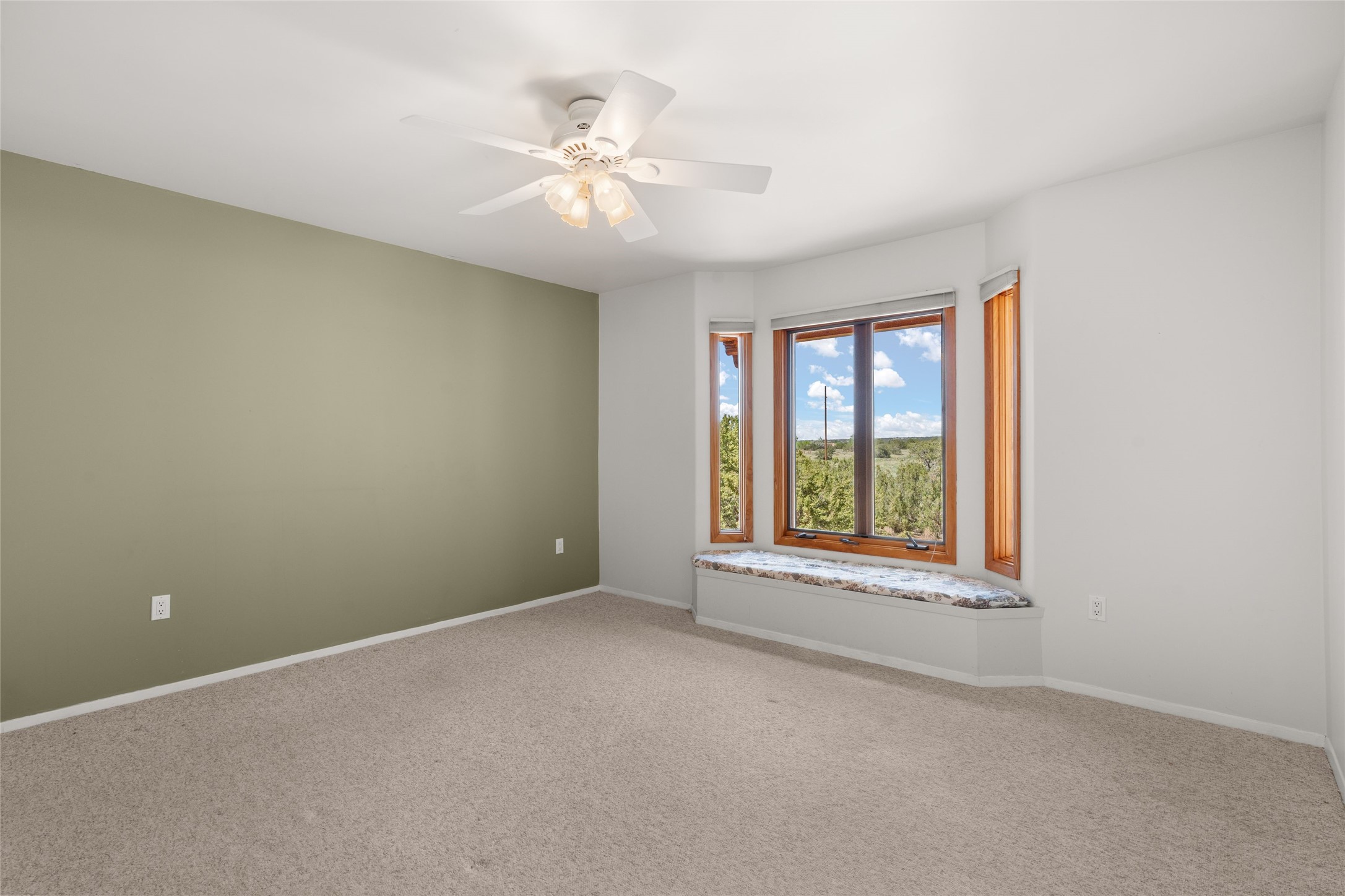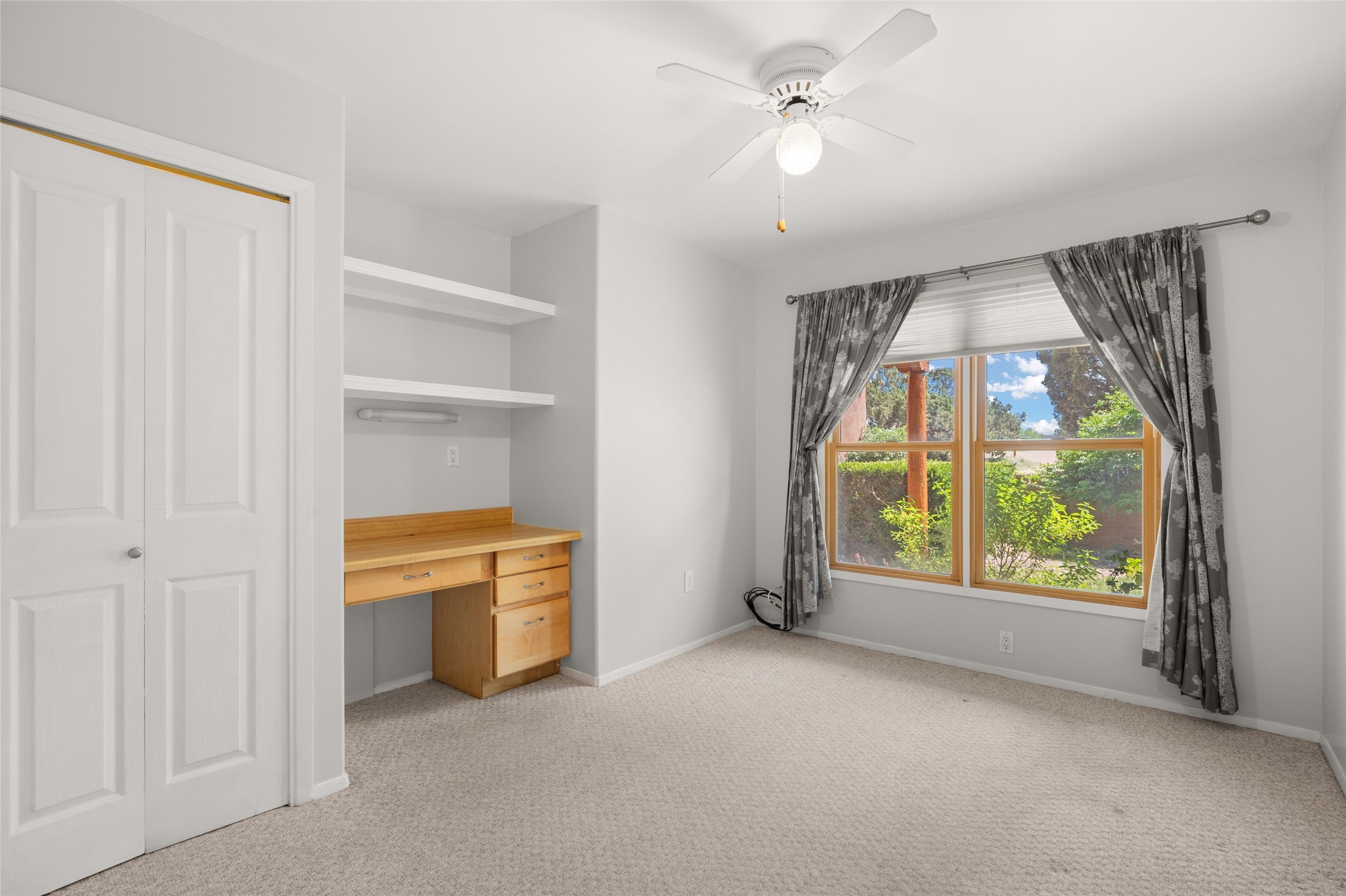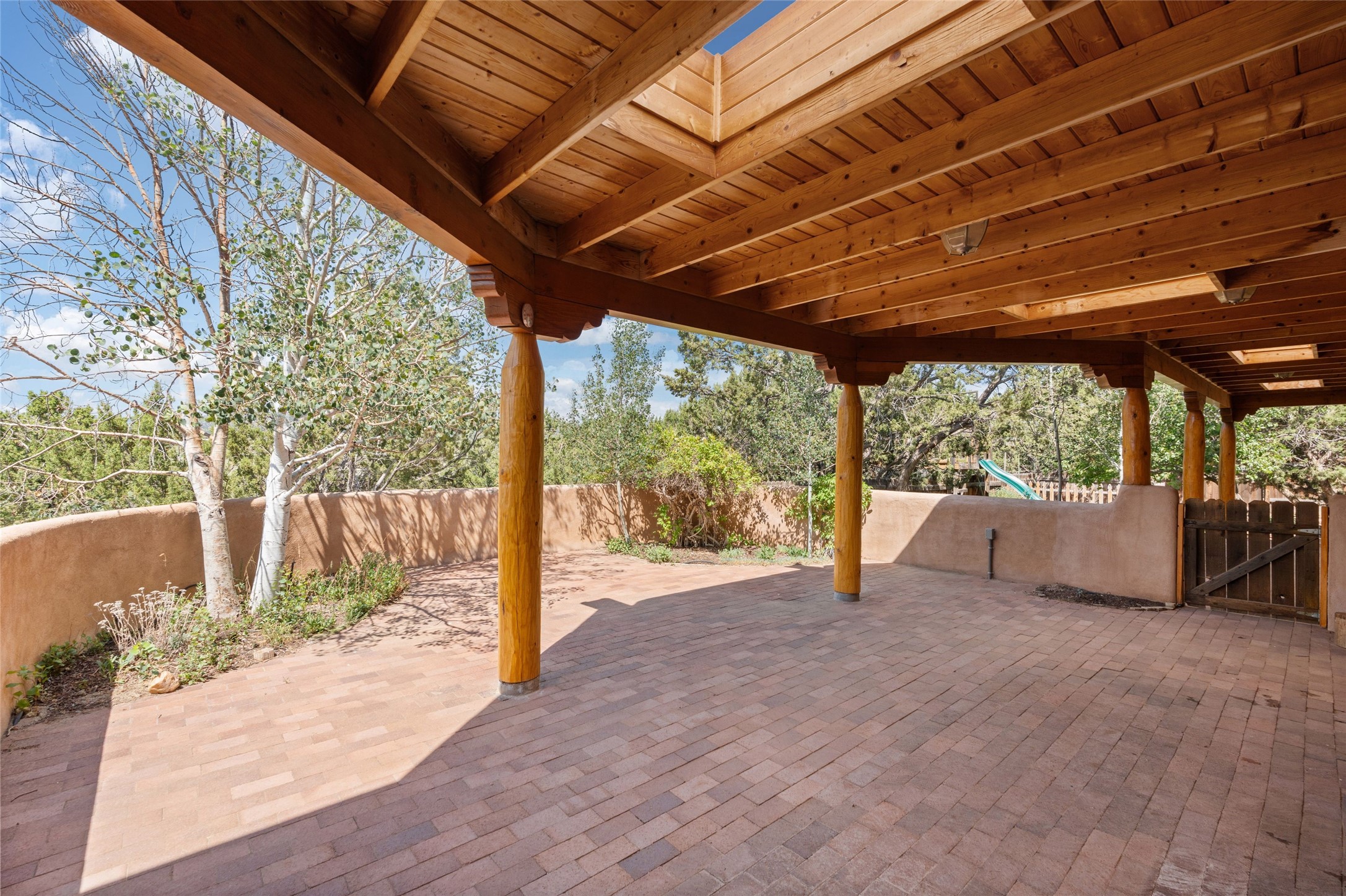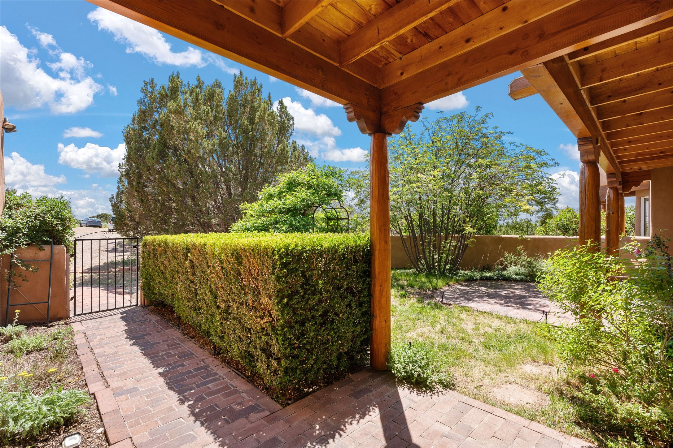 Great four-bedroom, four-bathroom home with a three-car garage, offering ample office or workspaces and storage. The home features a brand-new roof! This beautiful home backs up to open space and is located on a quiet cul-de-sac. It also has a private well. The floor plan features a mudroom entry, a separation of bedrooms, and one bedroom that could serve as an office. Additionally, there are built-in desks in the supporting bedrooms and window bancos, as well as formal and informal dining rooms, and a large kitchen with excellent counter space in the gourmet kitchen. The living room has Vigas and a gas Kiva fireplace. Be sure to take a look at this home!