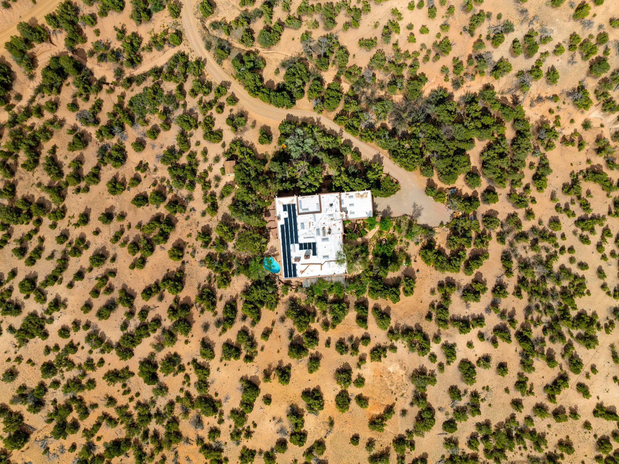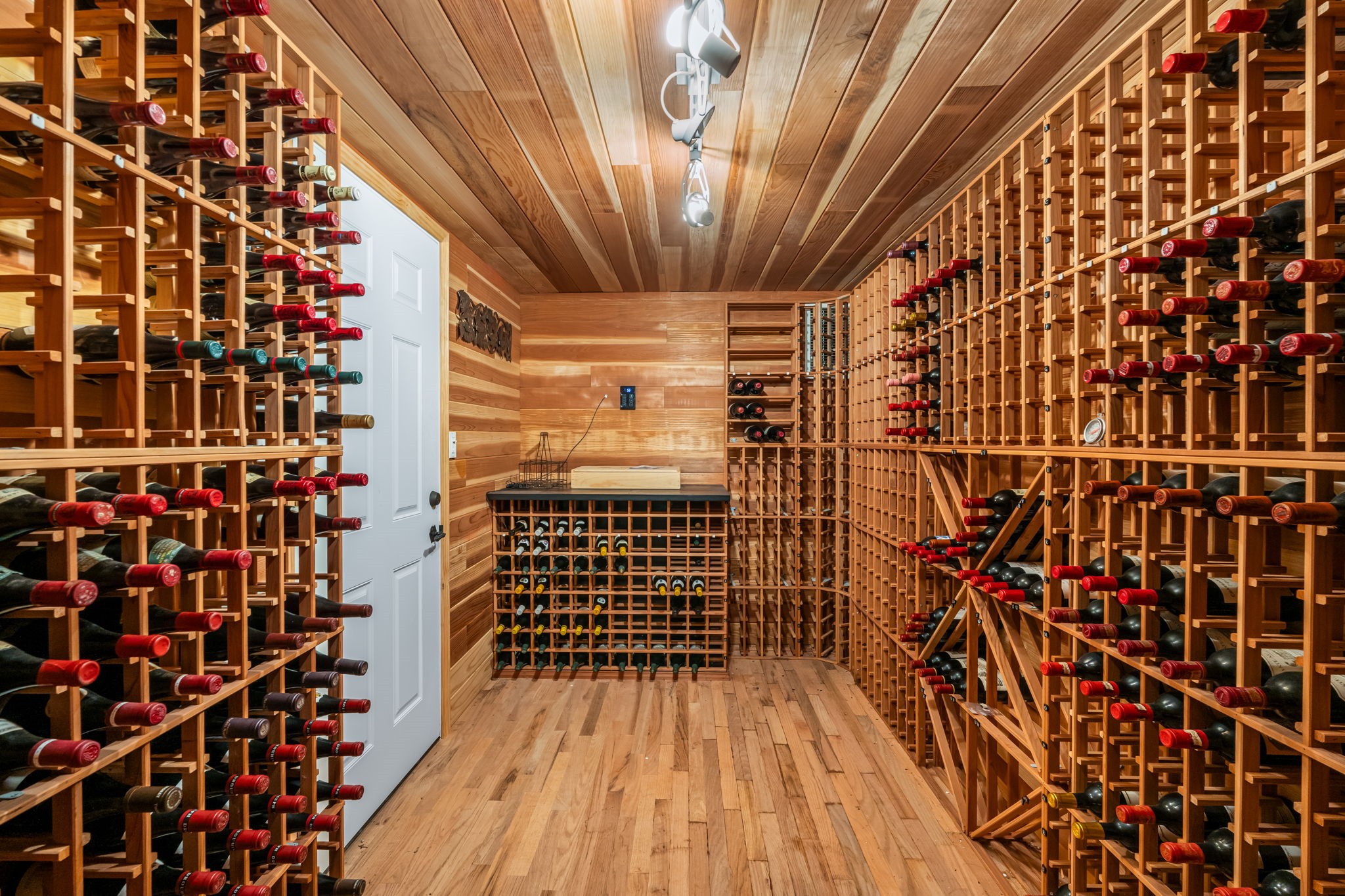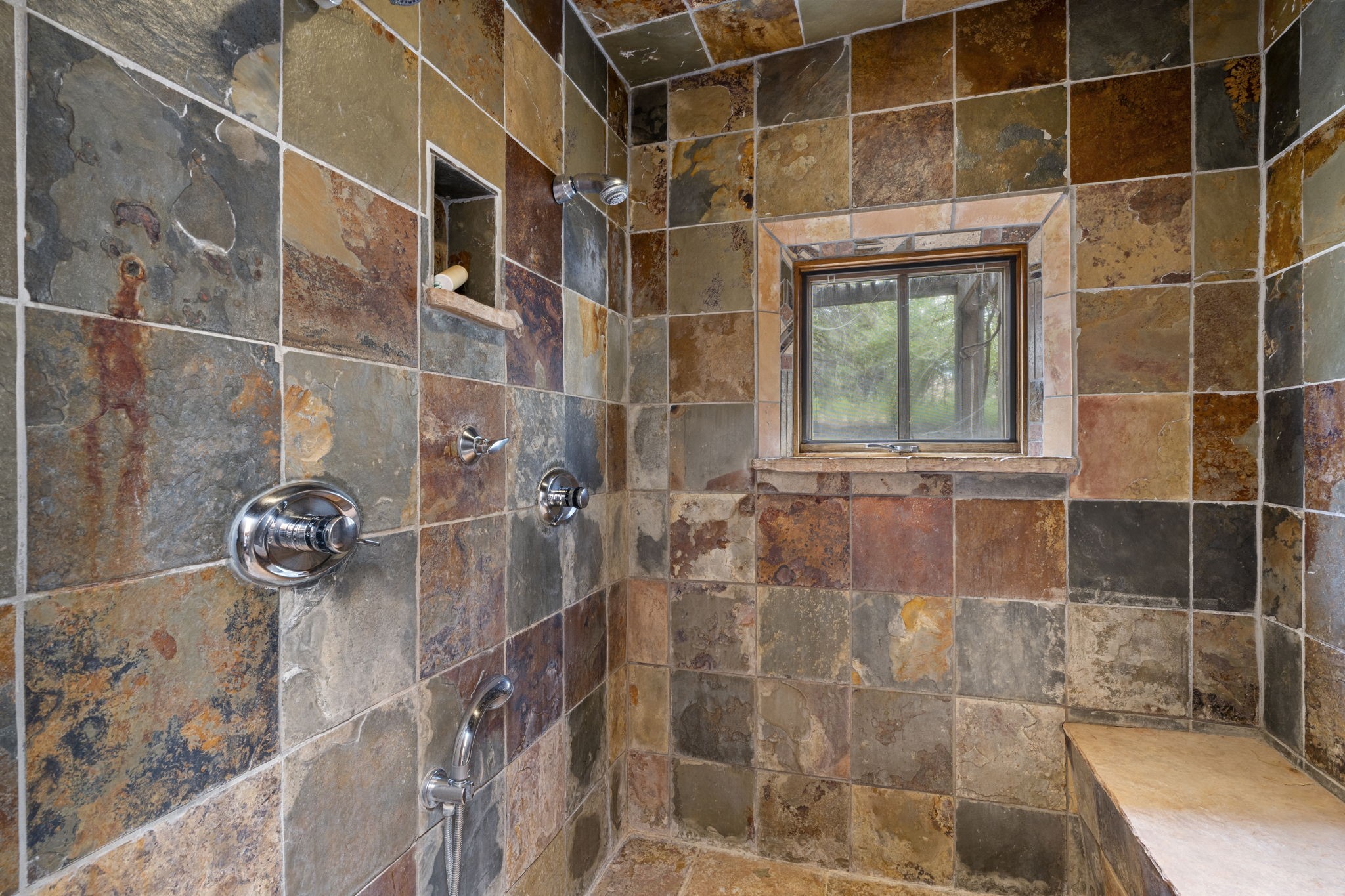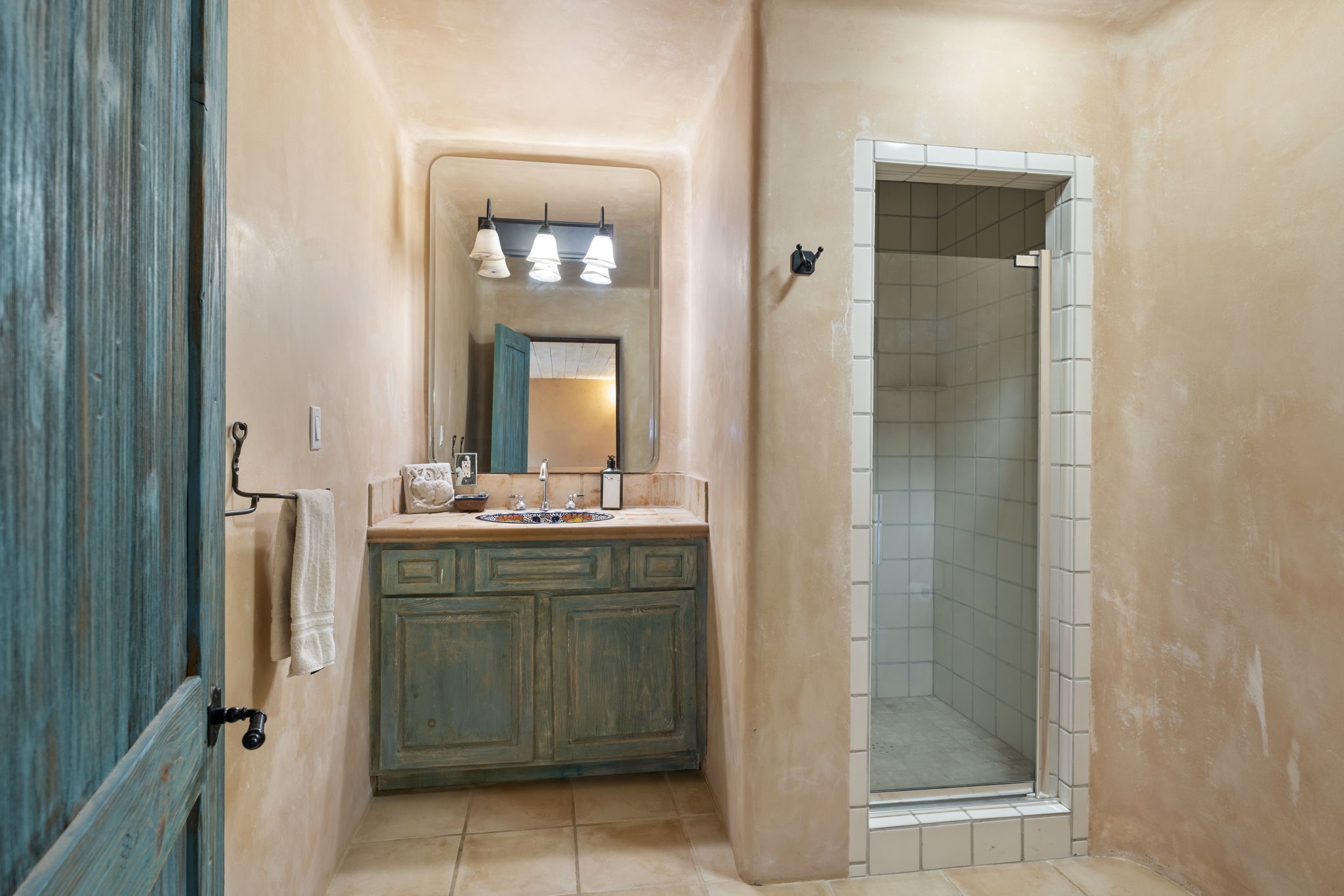 What kind of story are you ready for?? Santa Fe style meets European Country Estate! This 4 bedroom, 4 bathroom, high-quality Rastra construction features soaring ceilings, hand carved vigas, and far-reaching mountain views. Walking into the grand entrance, you are greeted by voluminous curved walls, golden-soft natural light, wide-plank pine floors, and a stately fireplace, which set the stage for an elegant Santa Fe lifestyle. The open concept French country kitchen faces a spacious den with views framed by large picture windows, and features an oversized island topped with granite. There is plenty of counter space for cooking and for entertaining guests. High-end appliances include a large Sub-Zero refrigerator, a six-burner Viking range, and a Bosch dishwasher. Additionally, this home's temperature-controlled wine cave accommodates 1500-2000 bottles for the serious aficionado. Relax in front of one of five fireplaces, and enjoy a large, formal dining room with views that will sweep guests off their feet! Or, linger over a morning cup of coffee on the grand portal overlooking the koi pond and the Jemez mountains. The lavish primary suite is on the main level and will have you living in luxury with a large deep, soaking tub, a private cedar-lined sauna, and a steam shower. There are several rooms downstairs (including a bathroom) which could be used as a mother-in-law suite, offices, or an artist studio. Complete with a TPO roof, an oversized two-car garage, and beautiful landscaping on drip irrigation, this is a timeless space you'll never want to leave. Rastra construction and owned solar panels create an extremely energy efficient environment, with almost non-existent electric bills. New stucco was done in 2025. Enjoy proximity to the club at Las Campanas, but without the high HOA fees. Don't miss this chance to live your dream Santa Fe lifestyle!