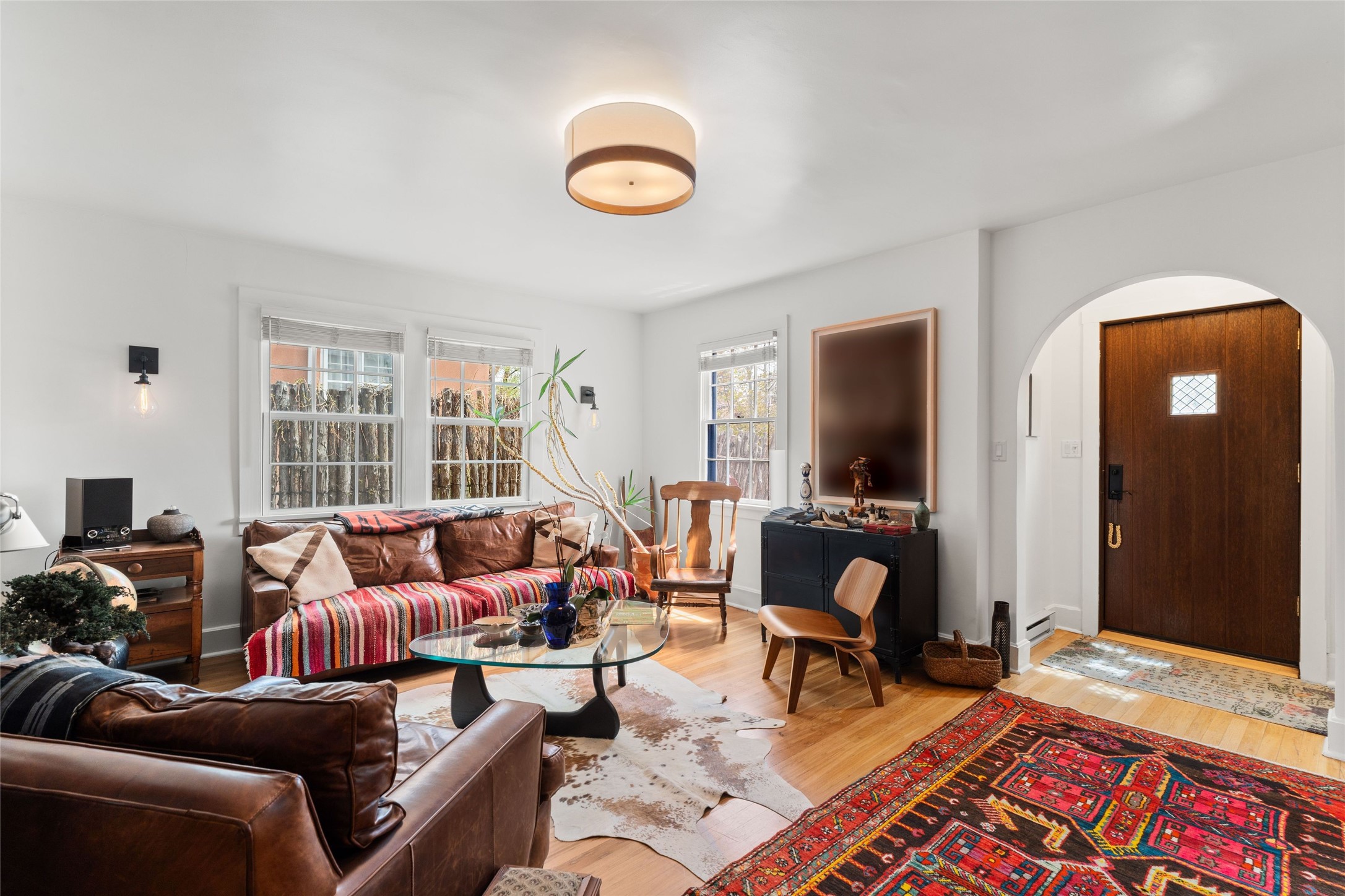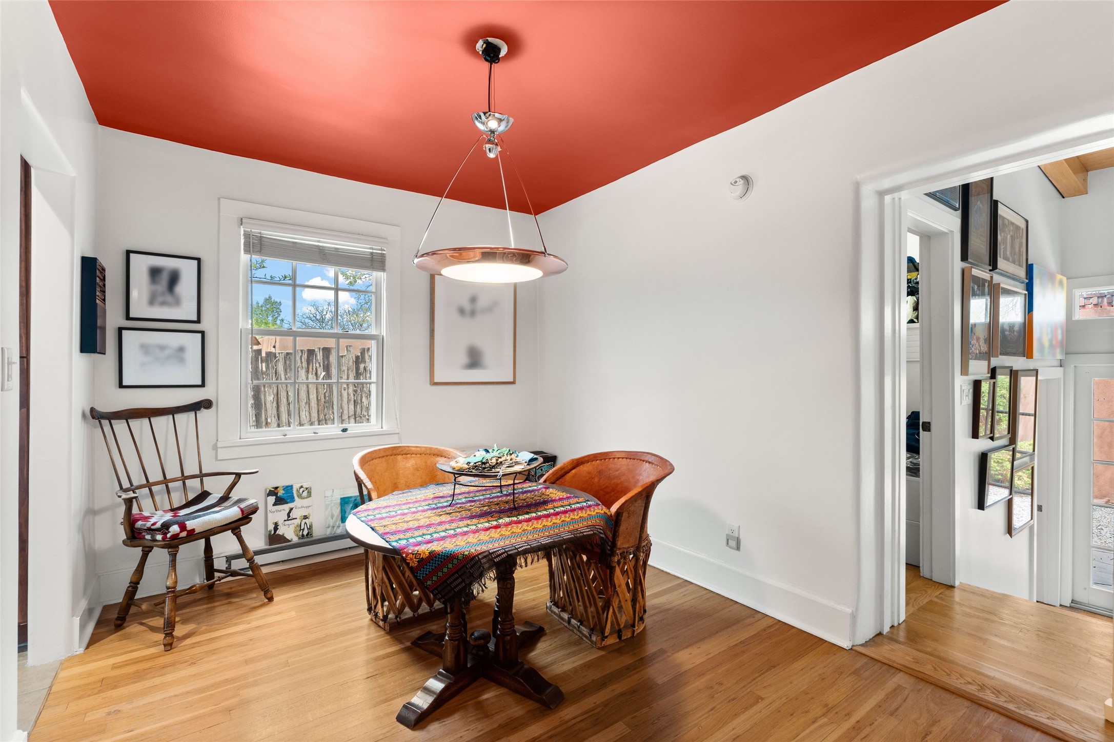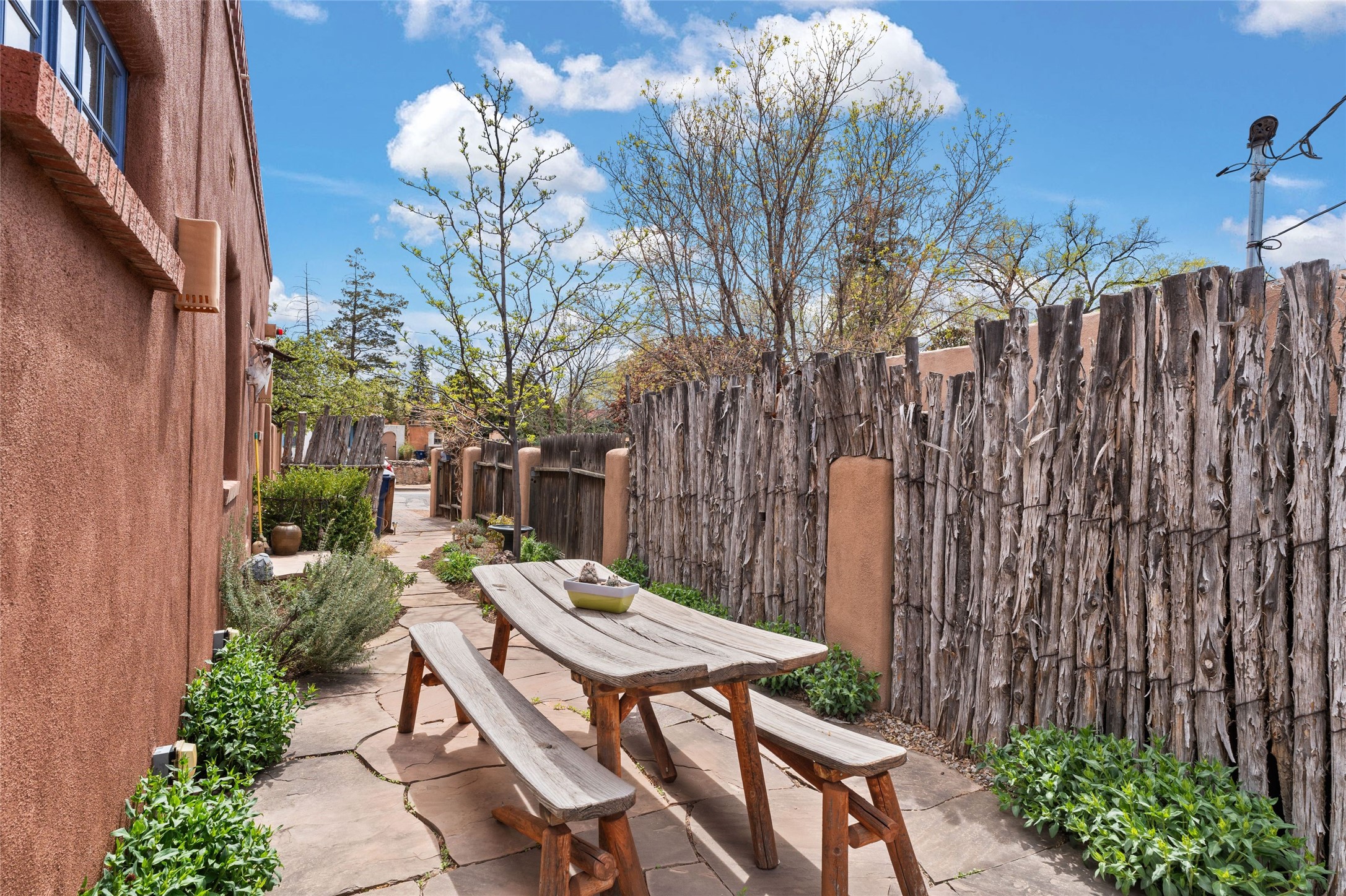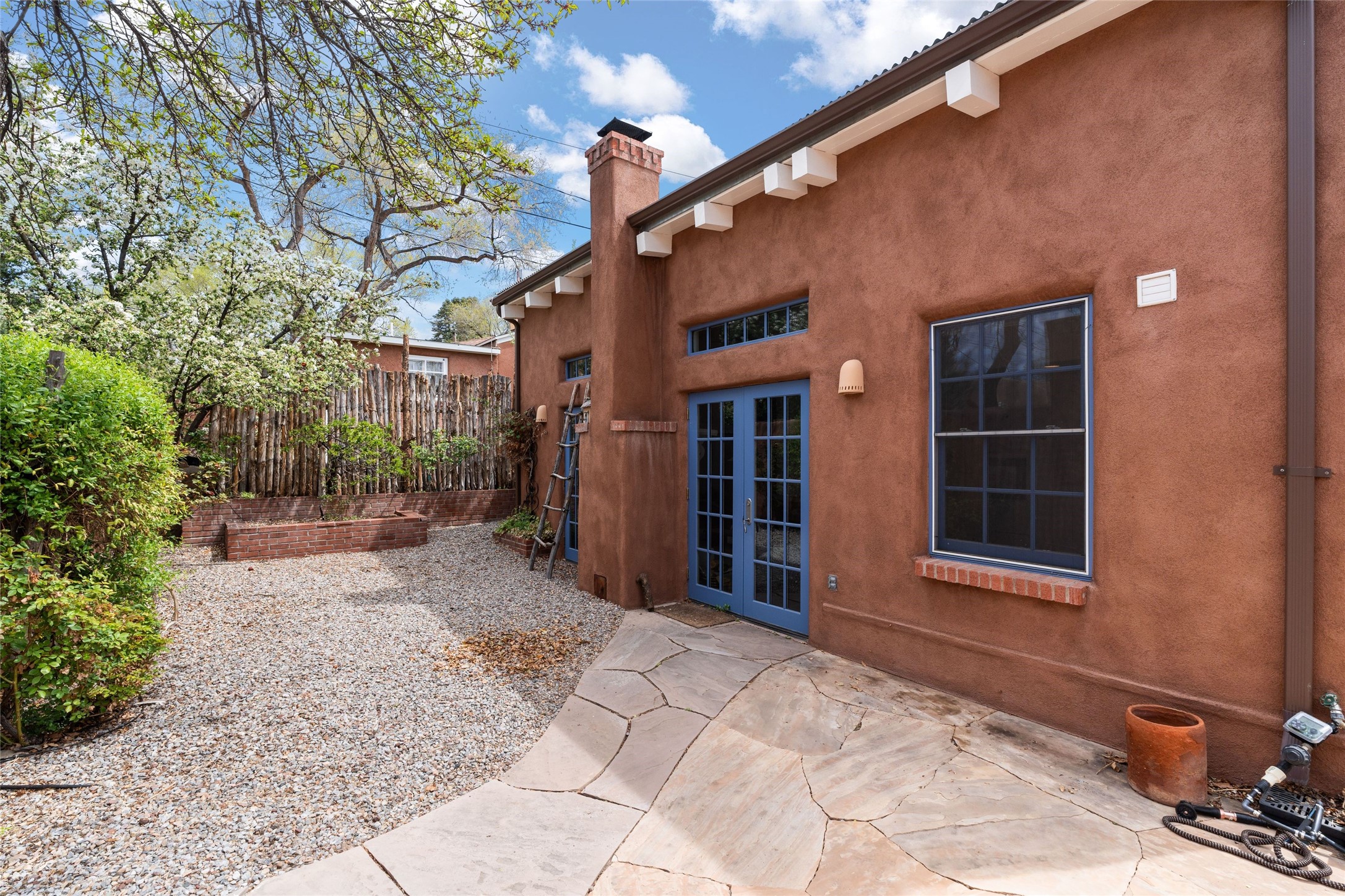 Perfect downtown pied--terre located in the heart of Santa Fe's South Capitol neighborhood. This residence combines classic architecture with modern amenities, creating an inviting atmosphere in a sought-after area. With 1,273 square feet, the main house features a thoughtfully designed layout that includes two spacious bedrooms and two bathrooms. The separate dining room offers an ideal space for gatherings, while the primary suite is a true highlight, complete with its own fireplace and French doors that open to a picturesque courtyard. Culinary enthusiasts will appreciate the well-appointed kitchen, which features a Wolf range and a built-in refrigerator. The charm extends beyond the main house with a detached guesthouse, offering 390 square feet of additional living space. This cozy retreat includes a kitchenette and a full bath, perfect for hosting visitors or enjoying personal time. Outside, the private courtyard showcases lush landscaping, featuring fruit trees that invites relaxation. It serves as a serene escape, ideal for unwinding amidst nature's beauty. An extra bonus is a basement with a washer/dryer and additional storage space. Off street parking for one car. Conveniently positioned in Santa Fe's Historic District, this property is just a stone's throw away from notable attractions, including the Roundhouse, Whole Foods, the Railyard, the Farmers Market, and the lively Santa Fe Plaza.
